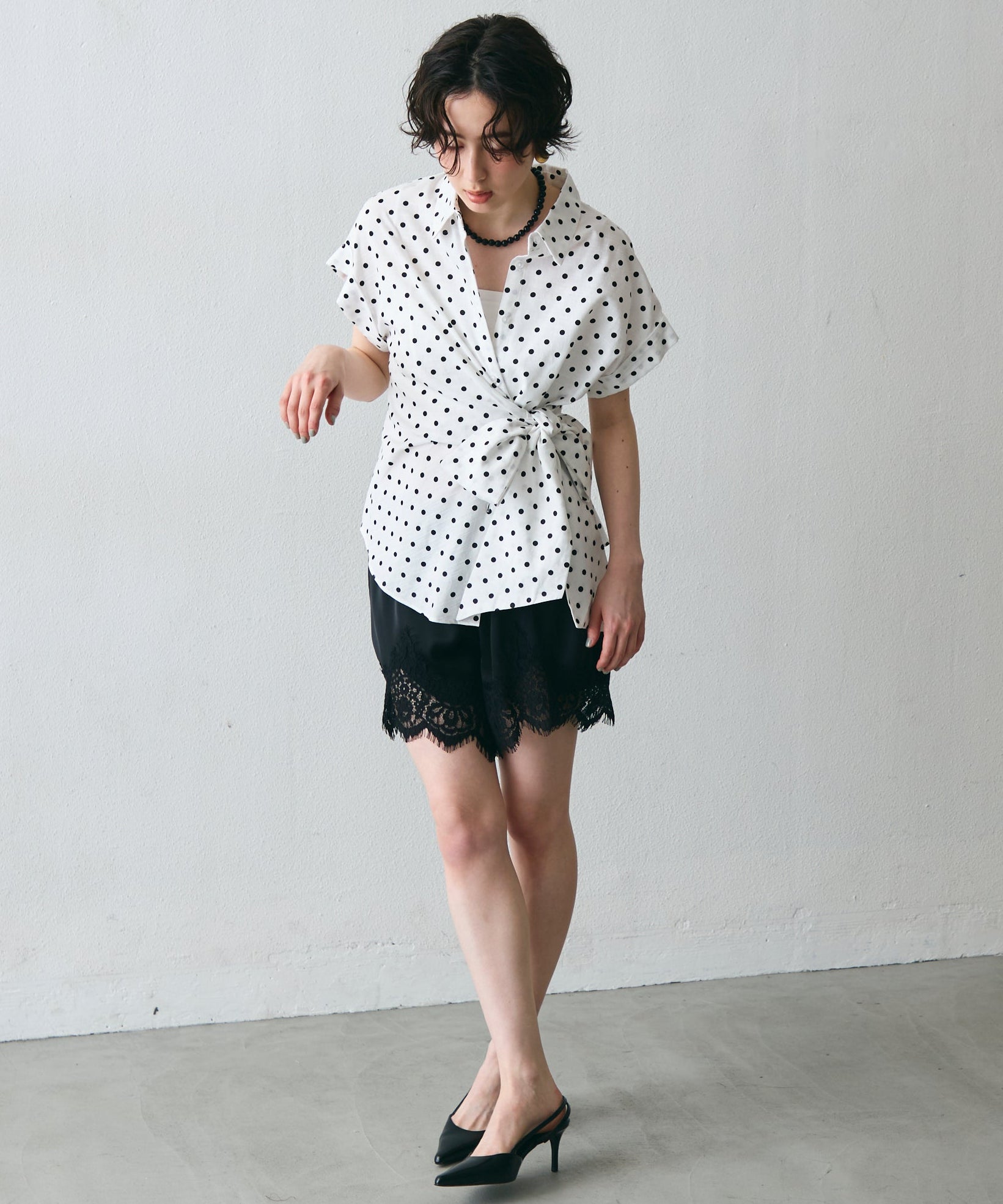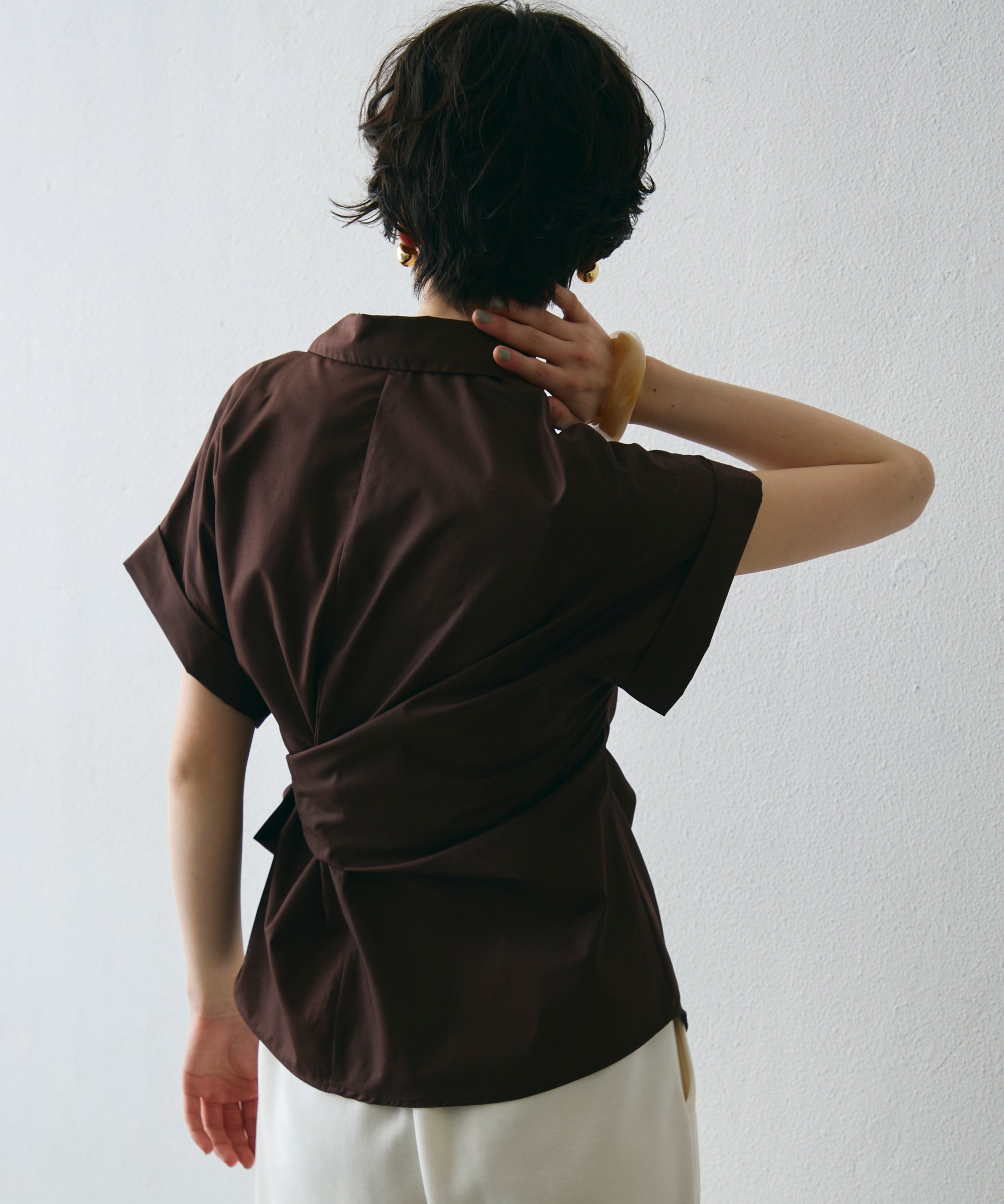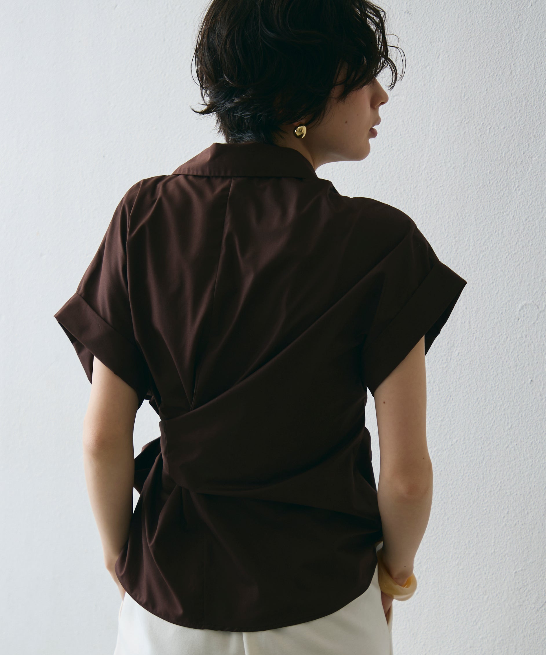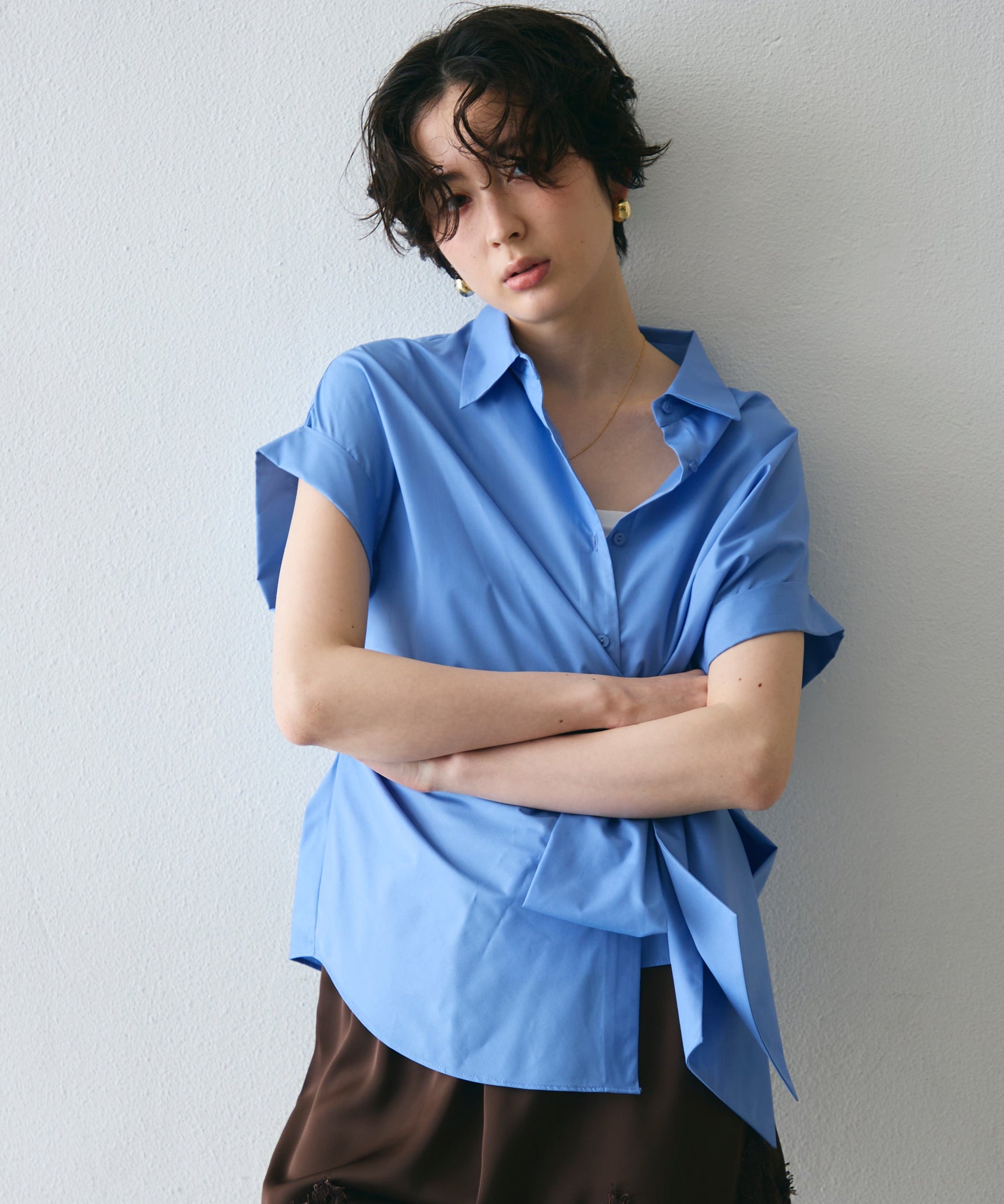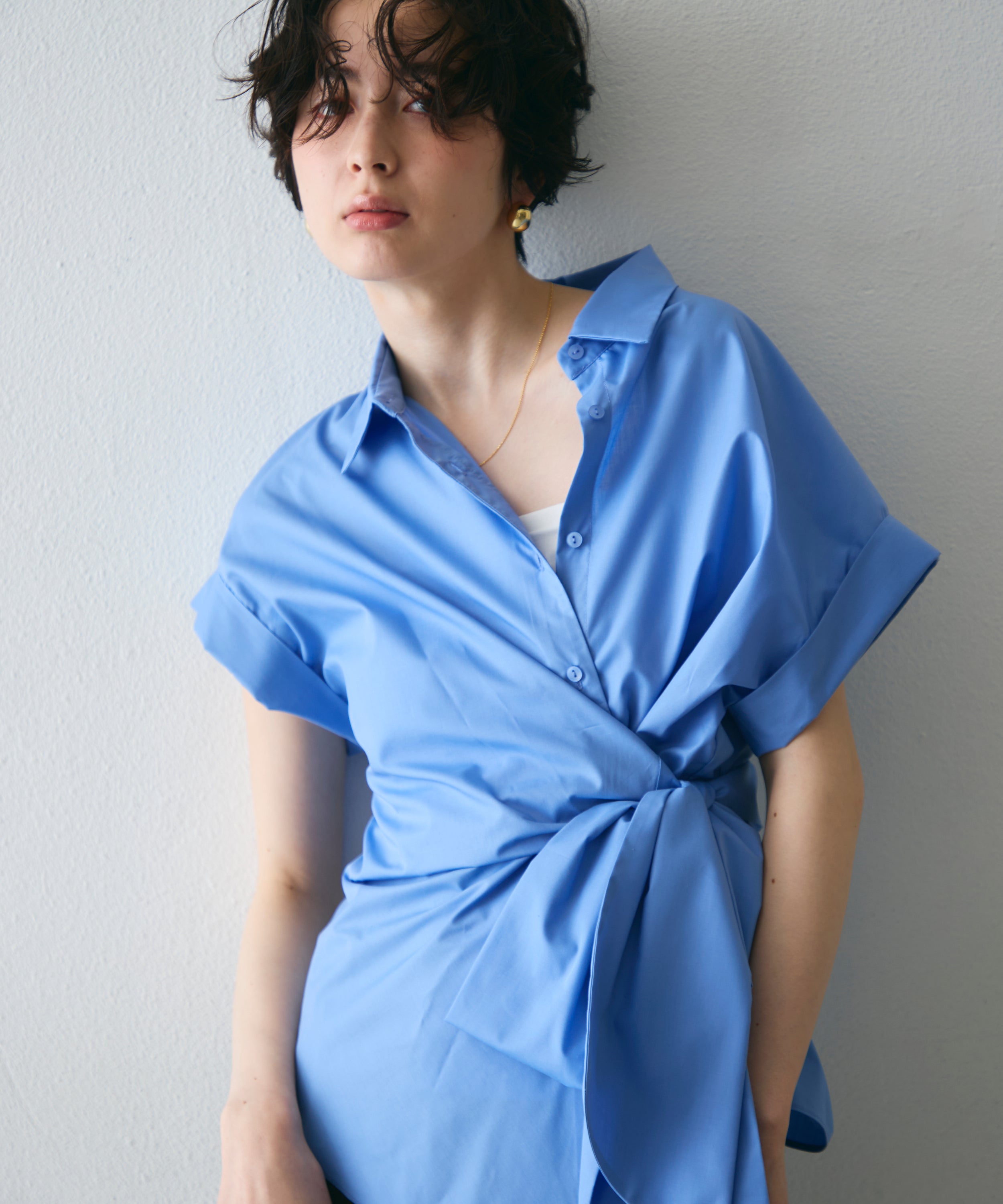 脇のリボンディテールがさりげないアクセントになるフレンチスリーブシャツ