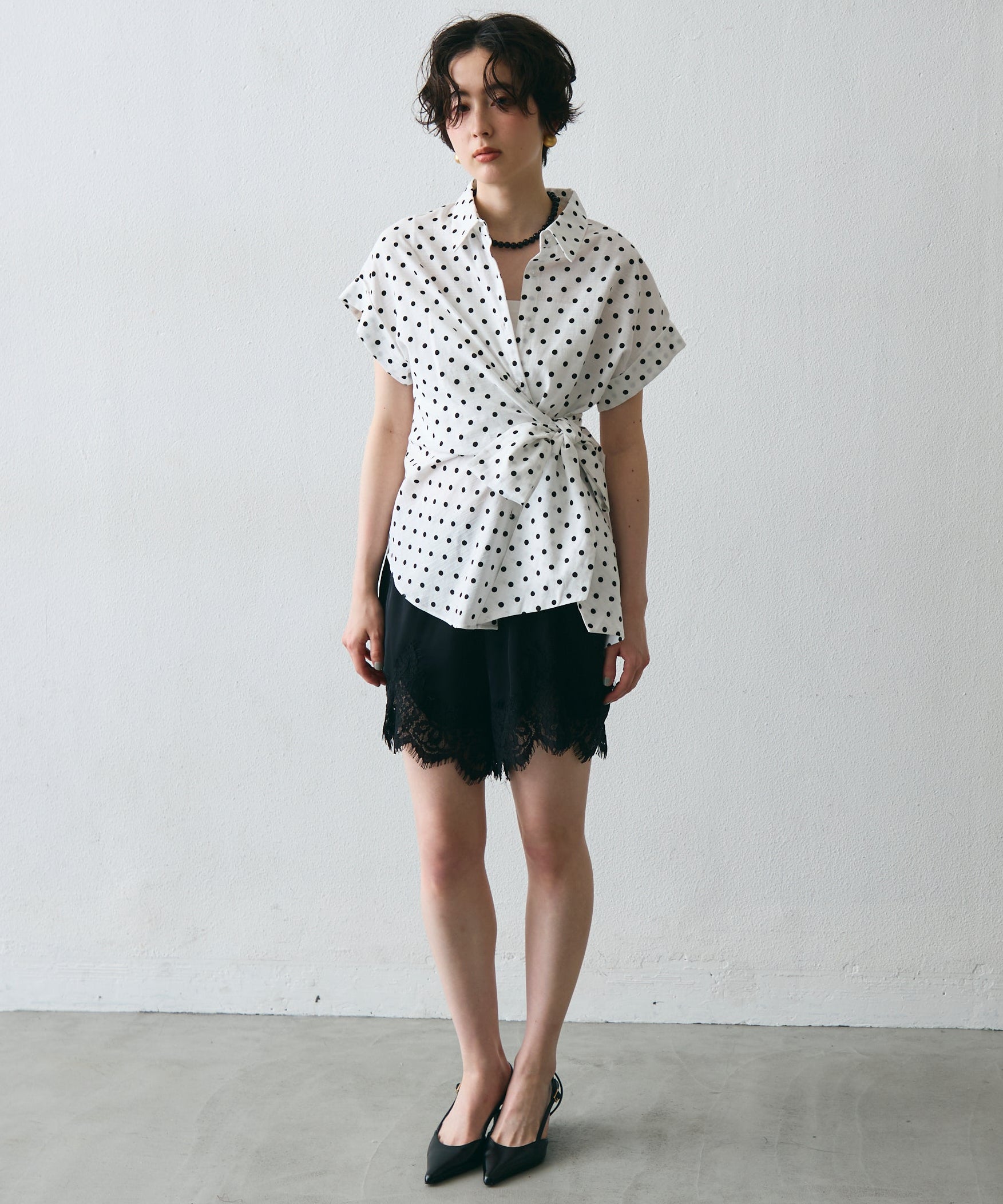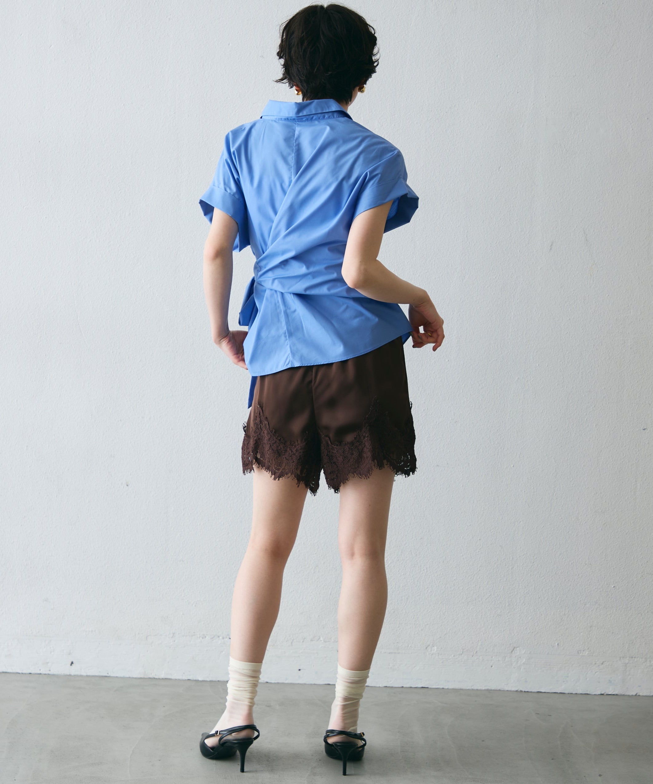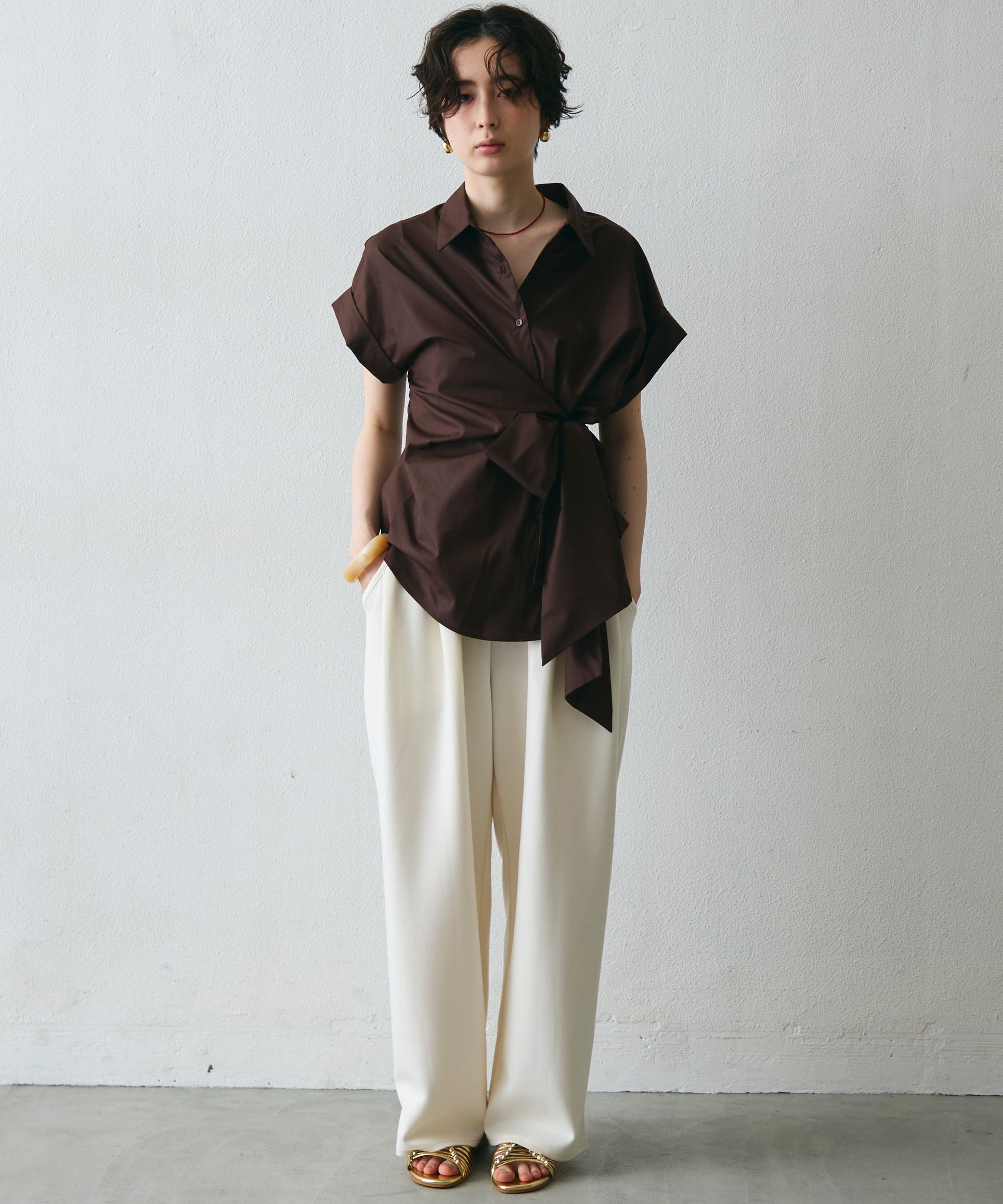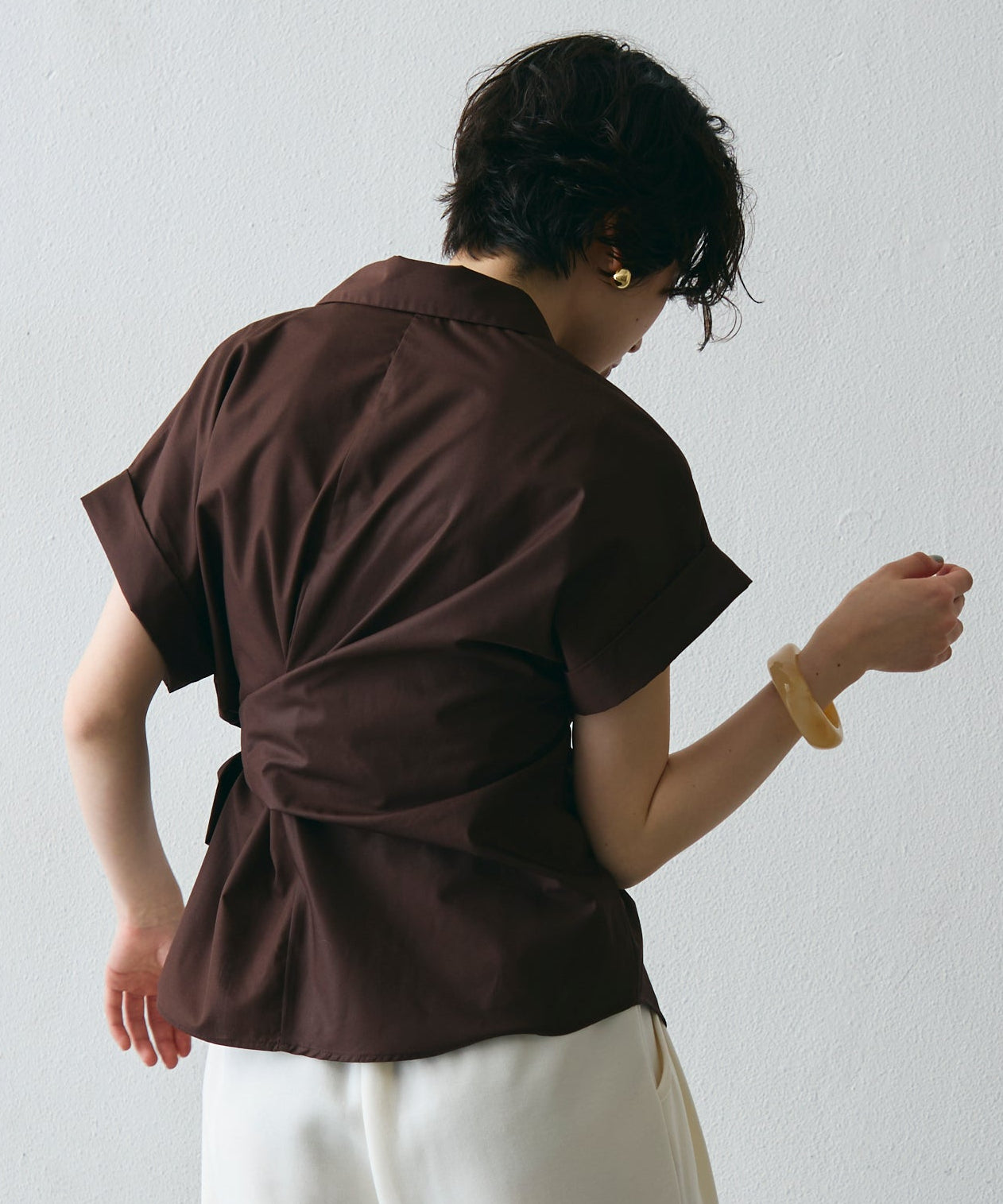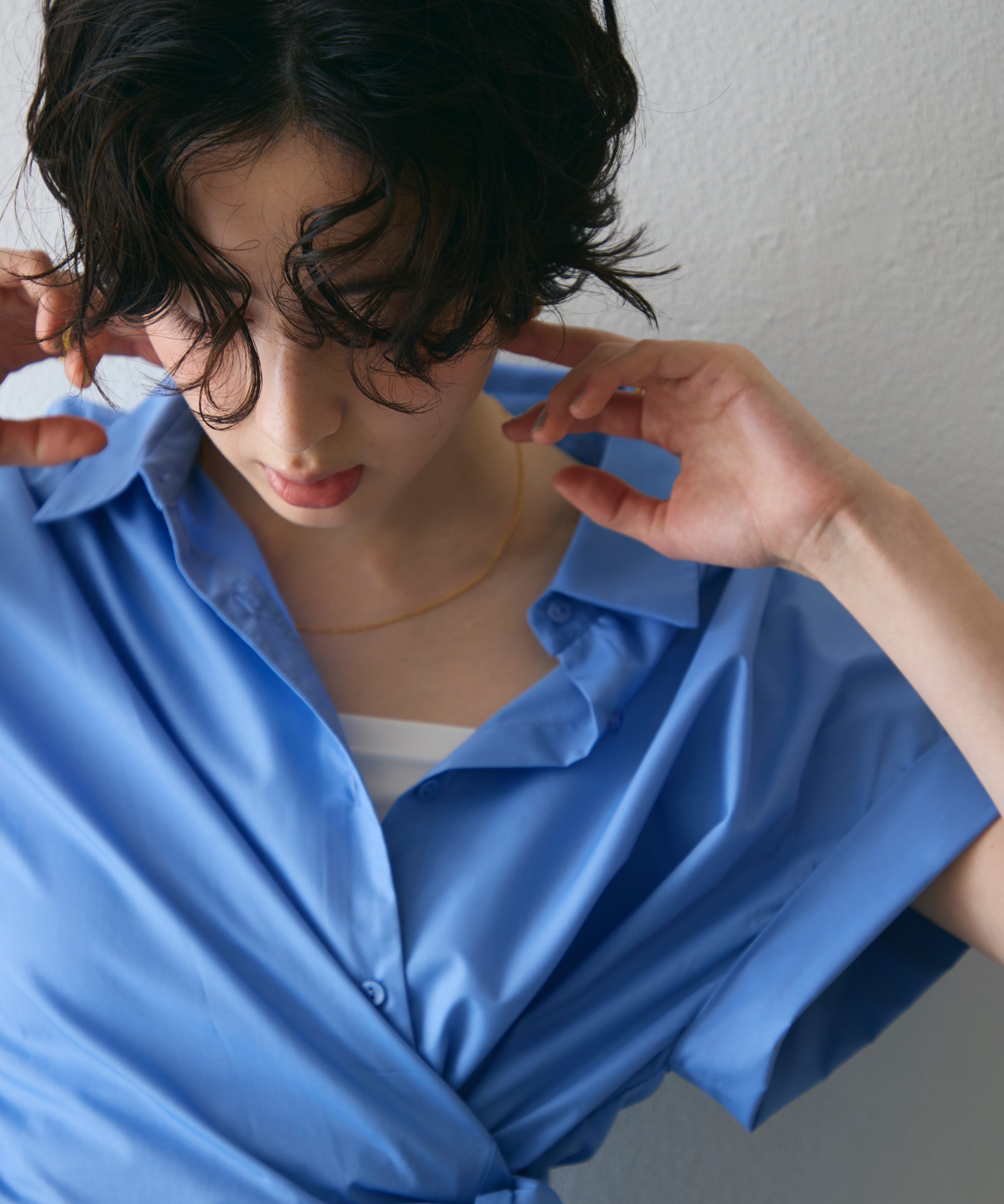脇のリボンディテールがさりげないアクセントになるフレンチスリーブシャツ