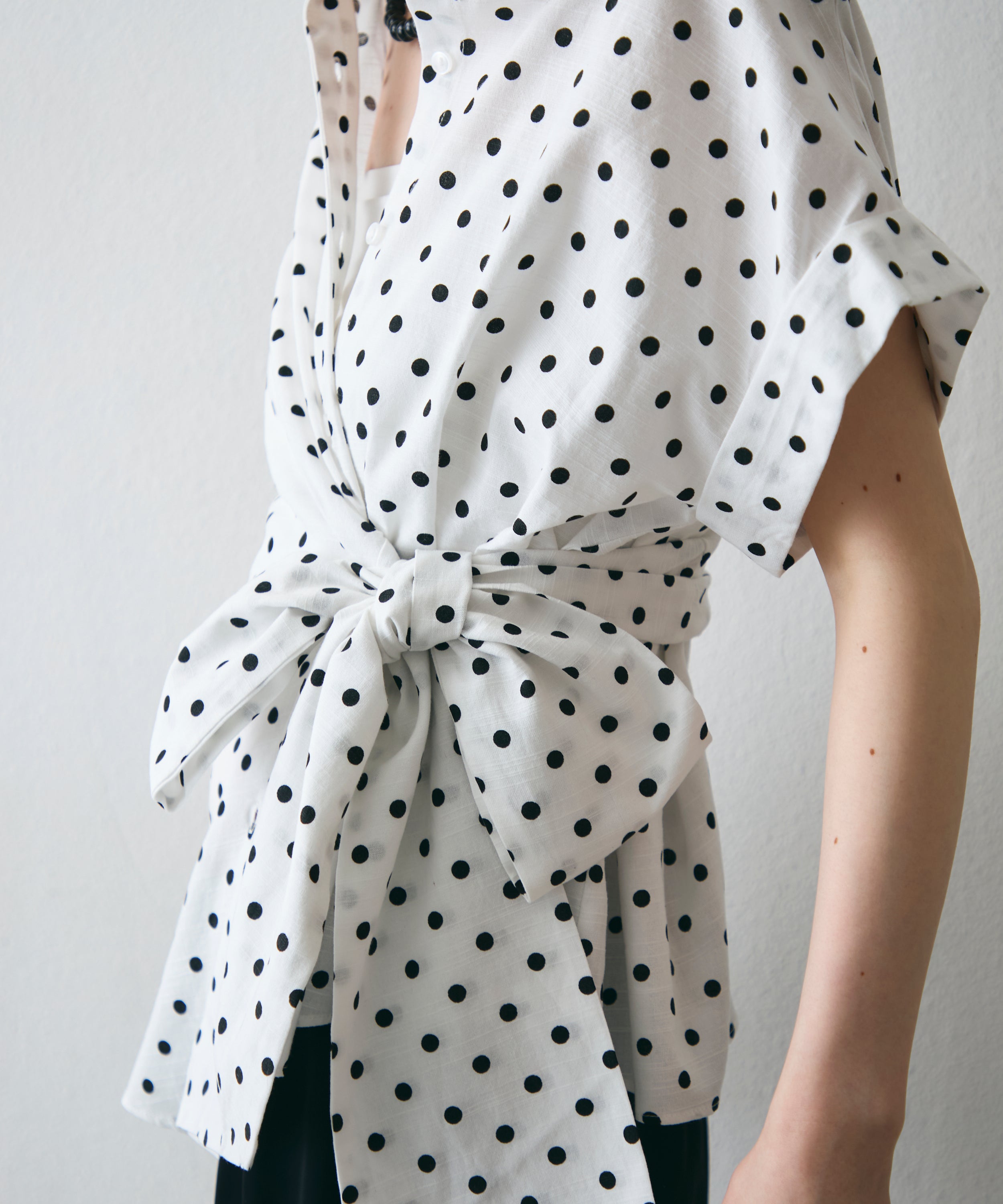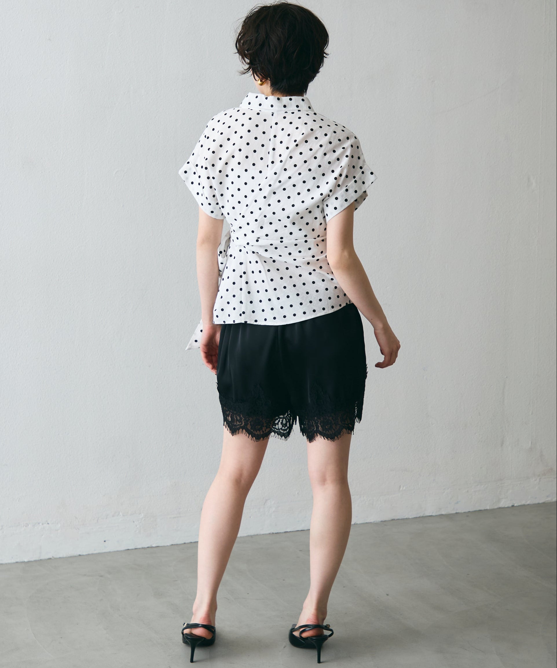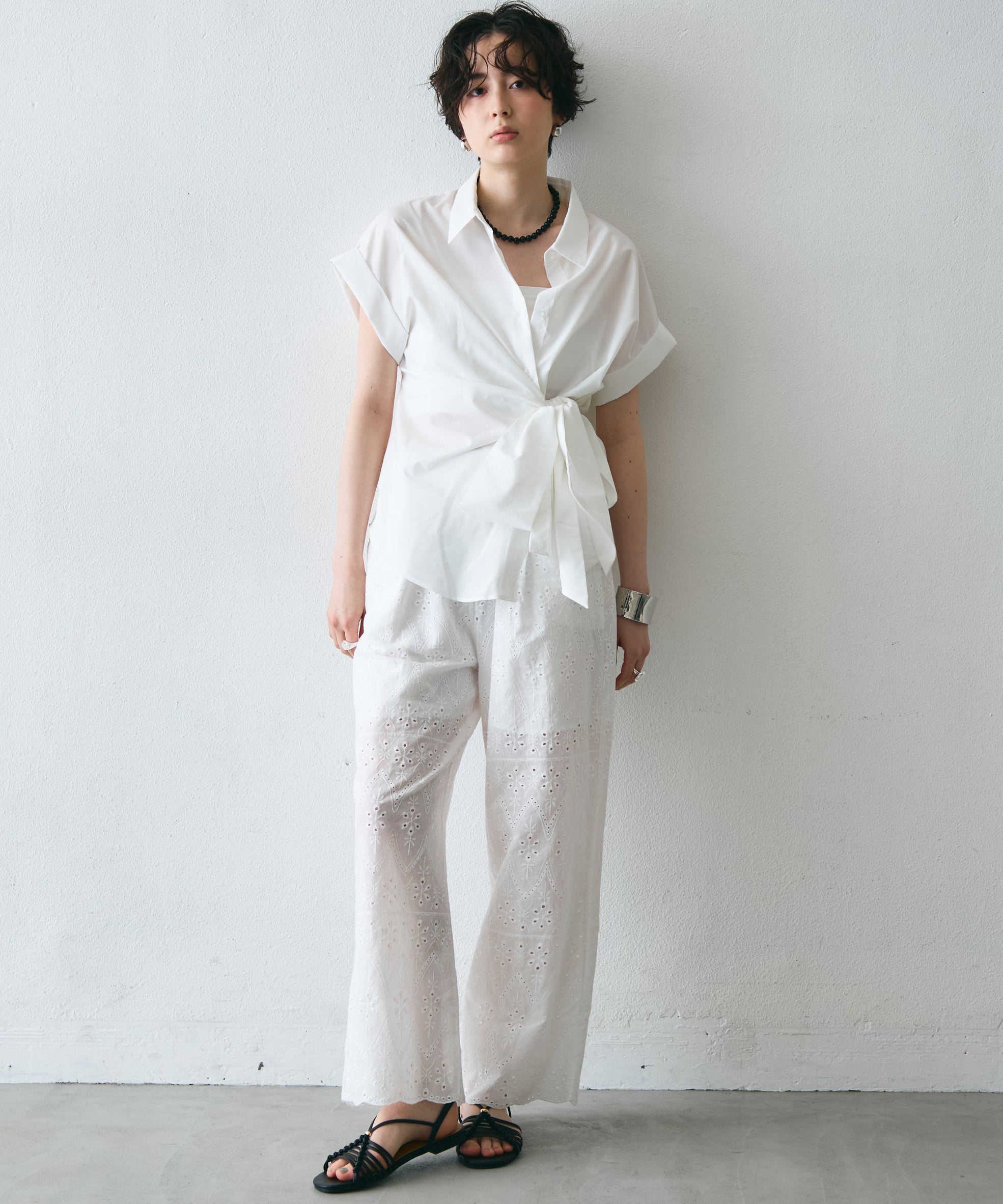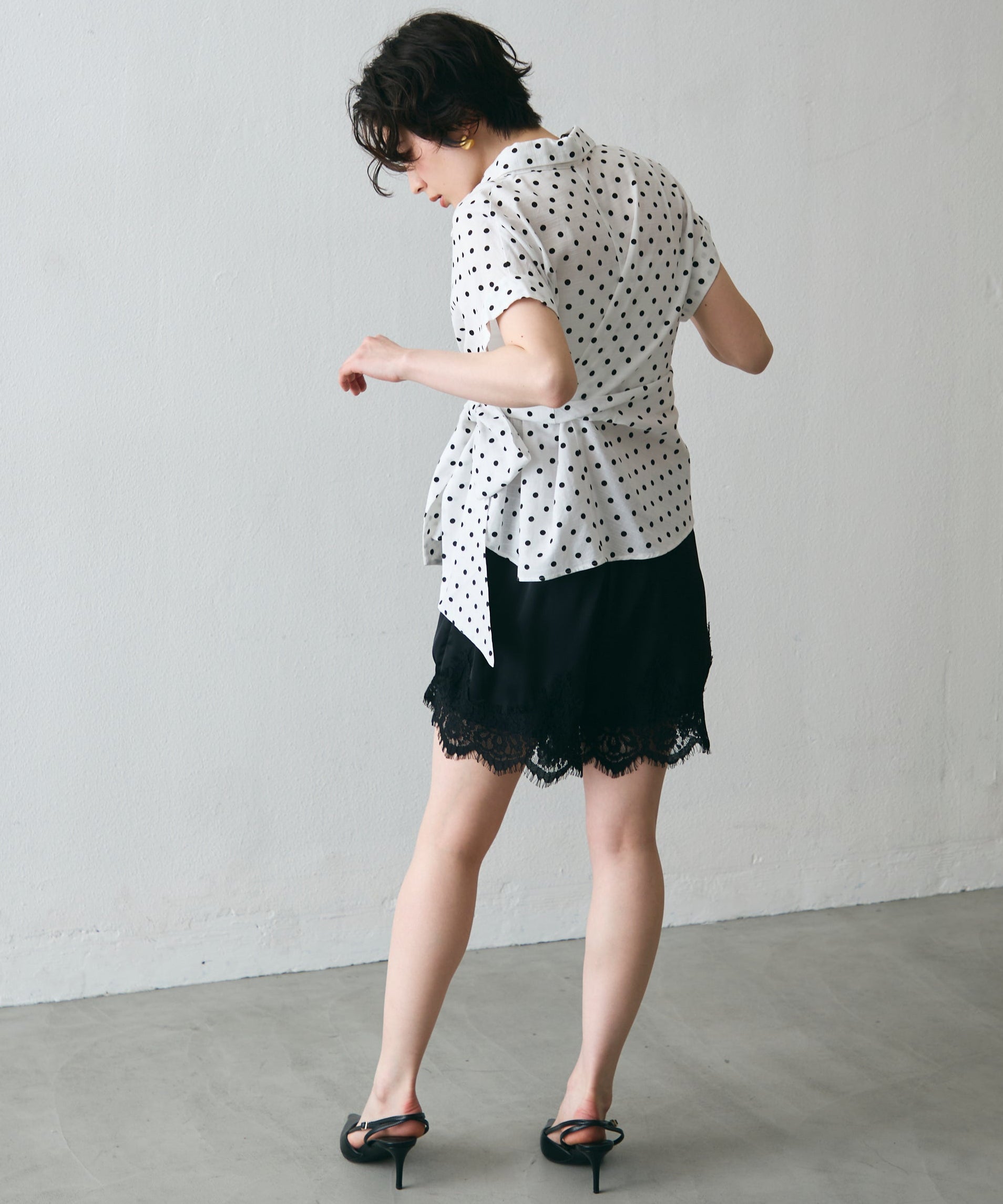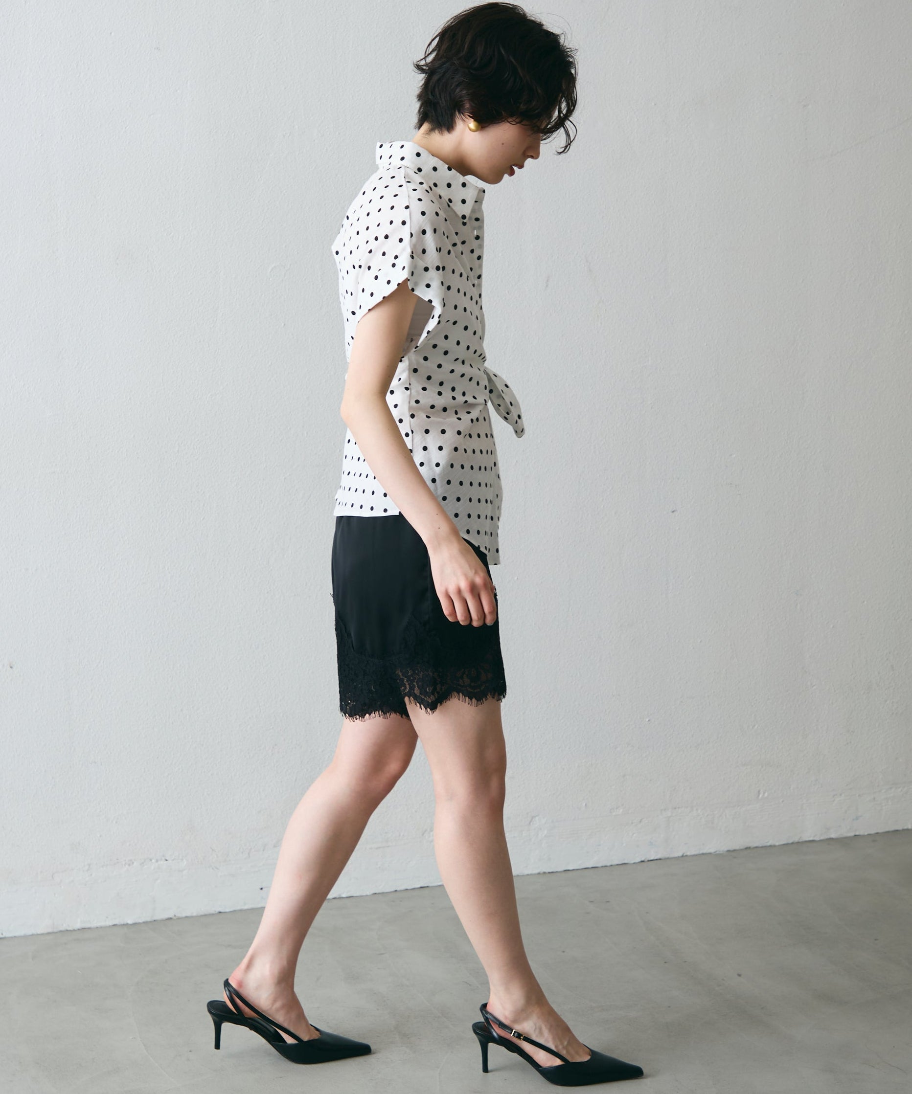 脇のリボンディテールがさりげないアクセントになるフレンチスリーブシャツ