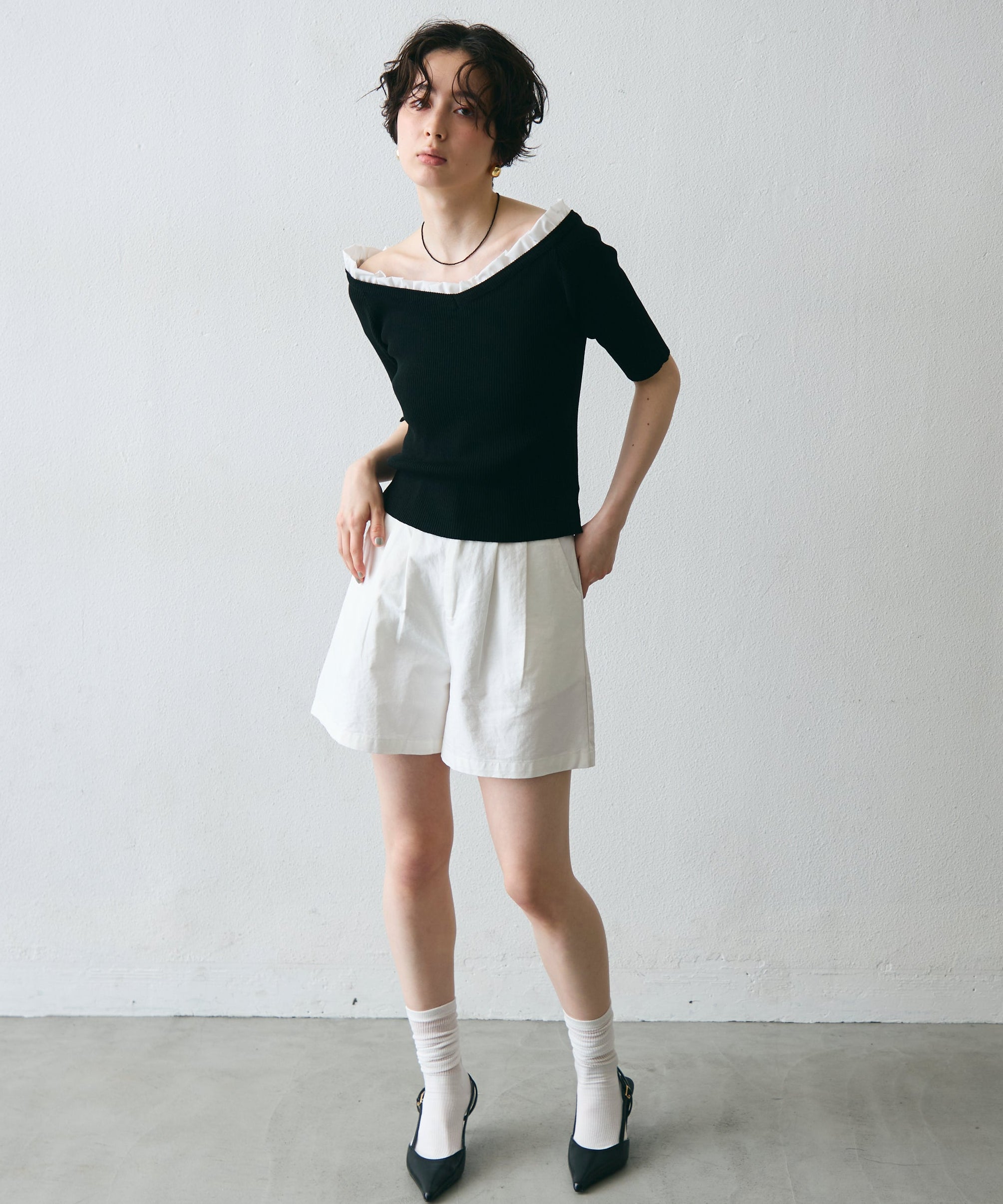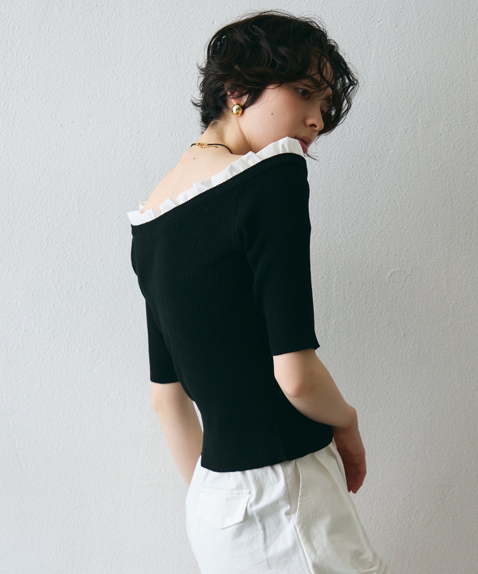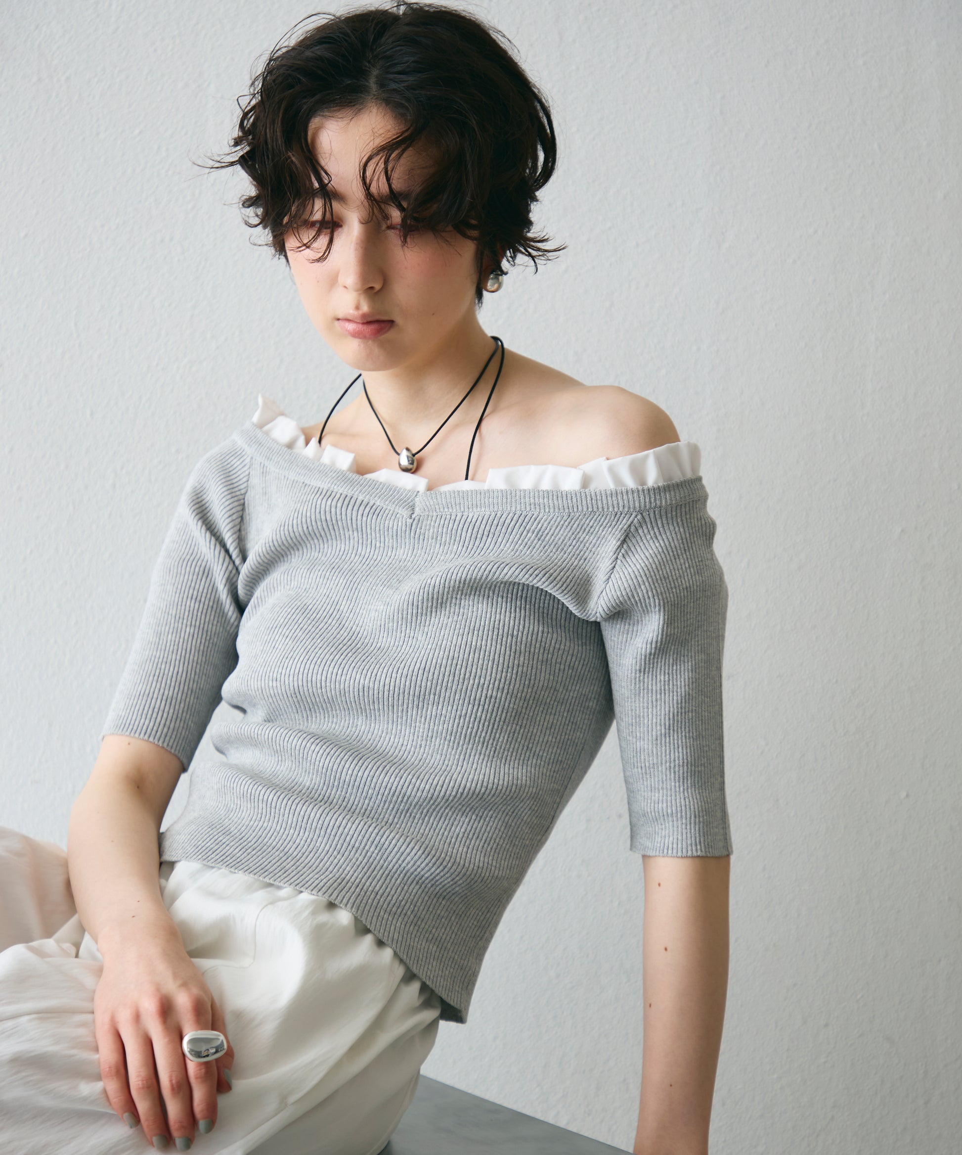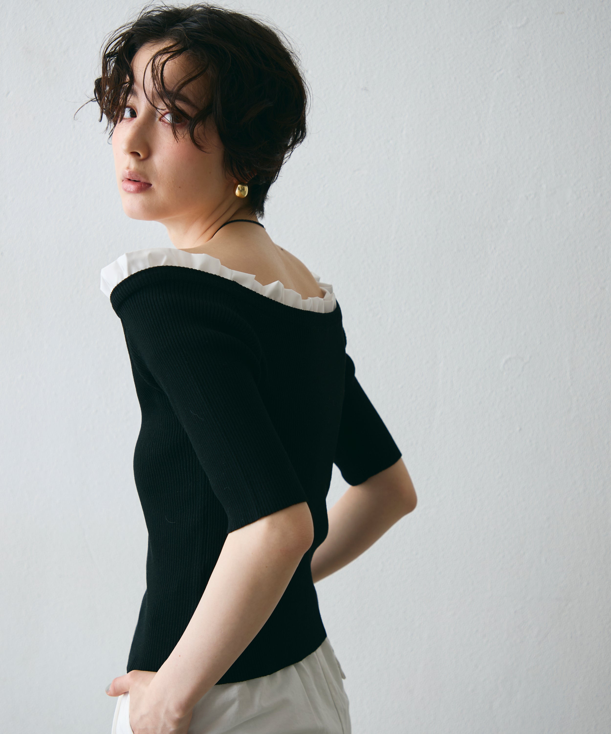デコルテを美しく見せるシルエットで、1枚でコーデが華やぐ主役アイテム。