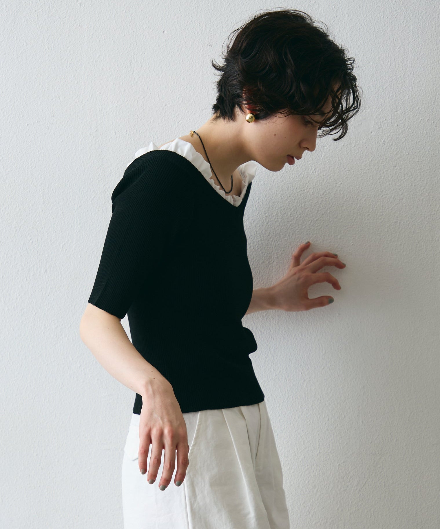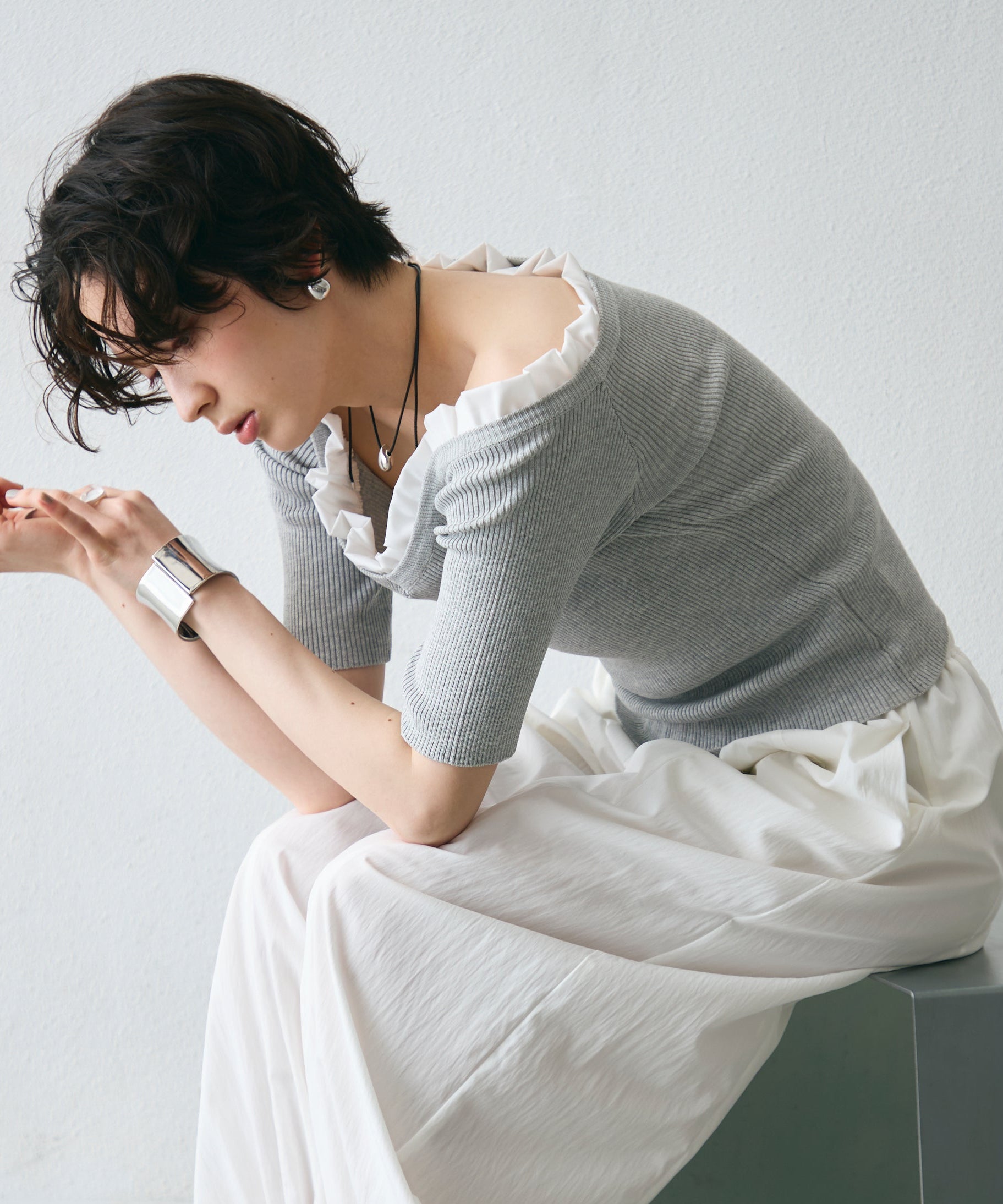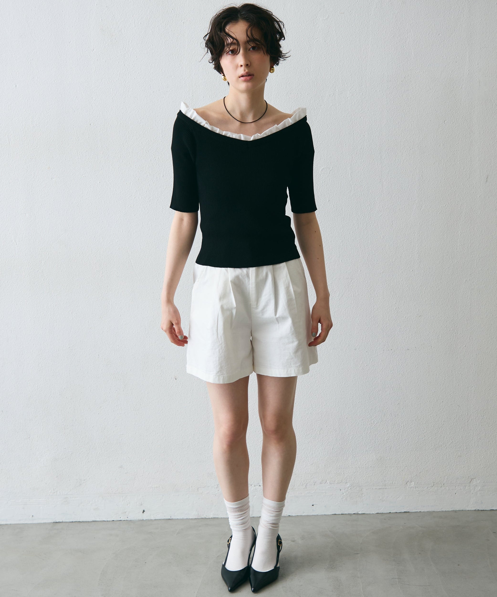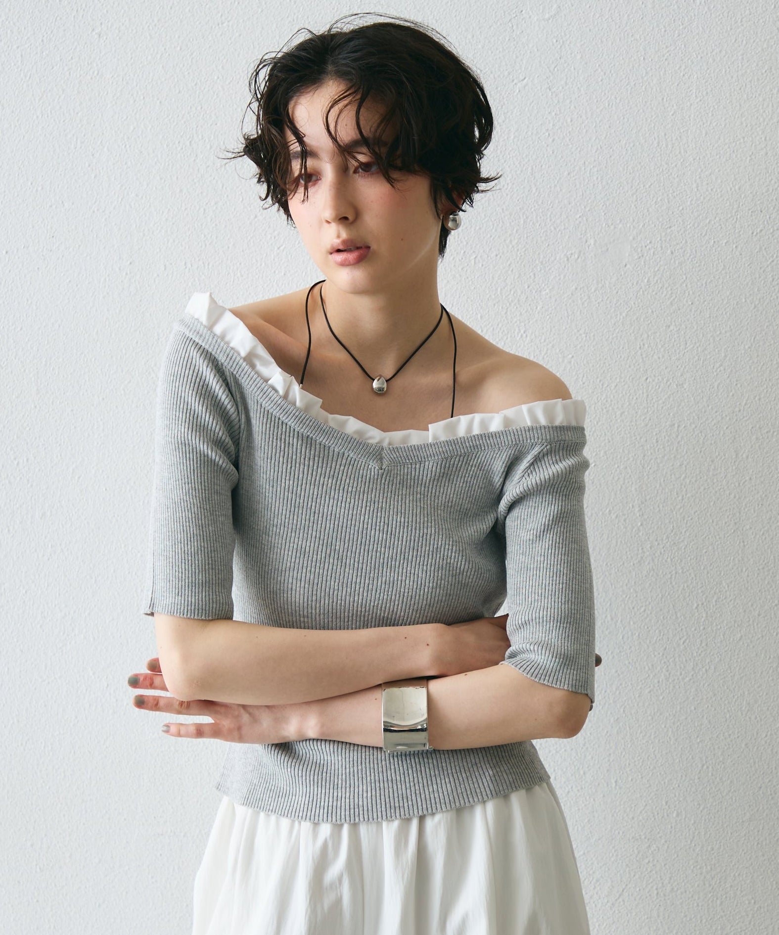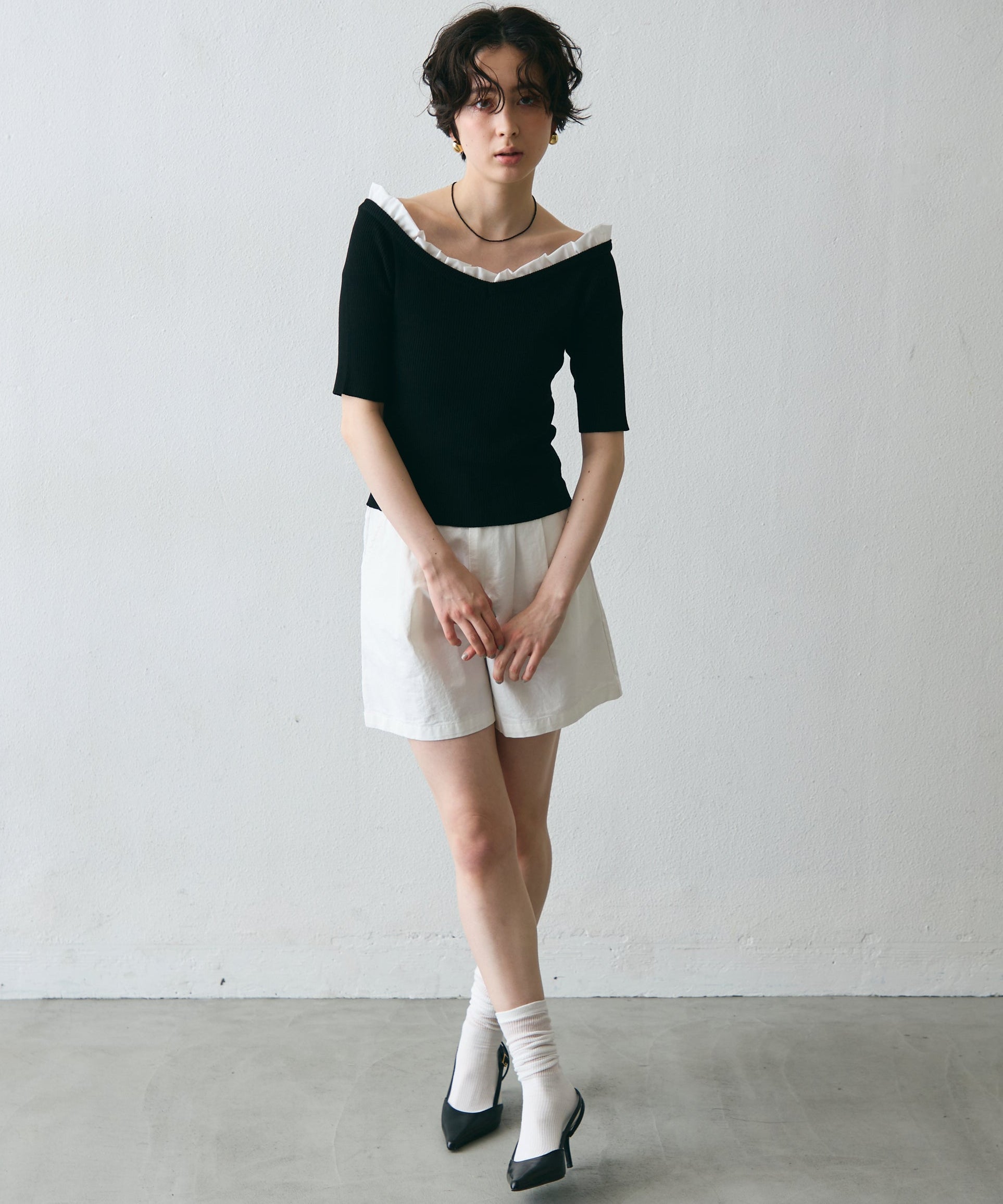デコルテを美しく見せるシルエットで、1枚でコーデが華やぐ主役アイテム。