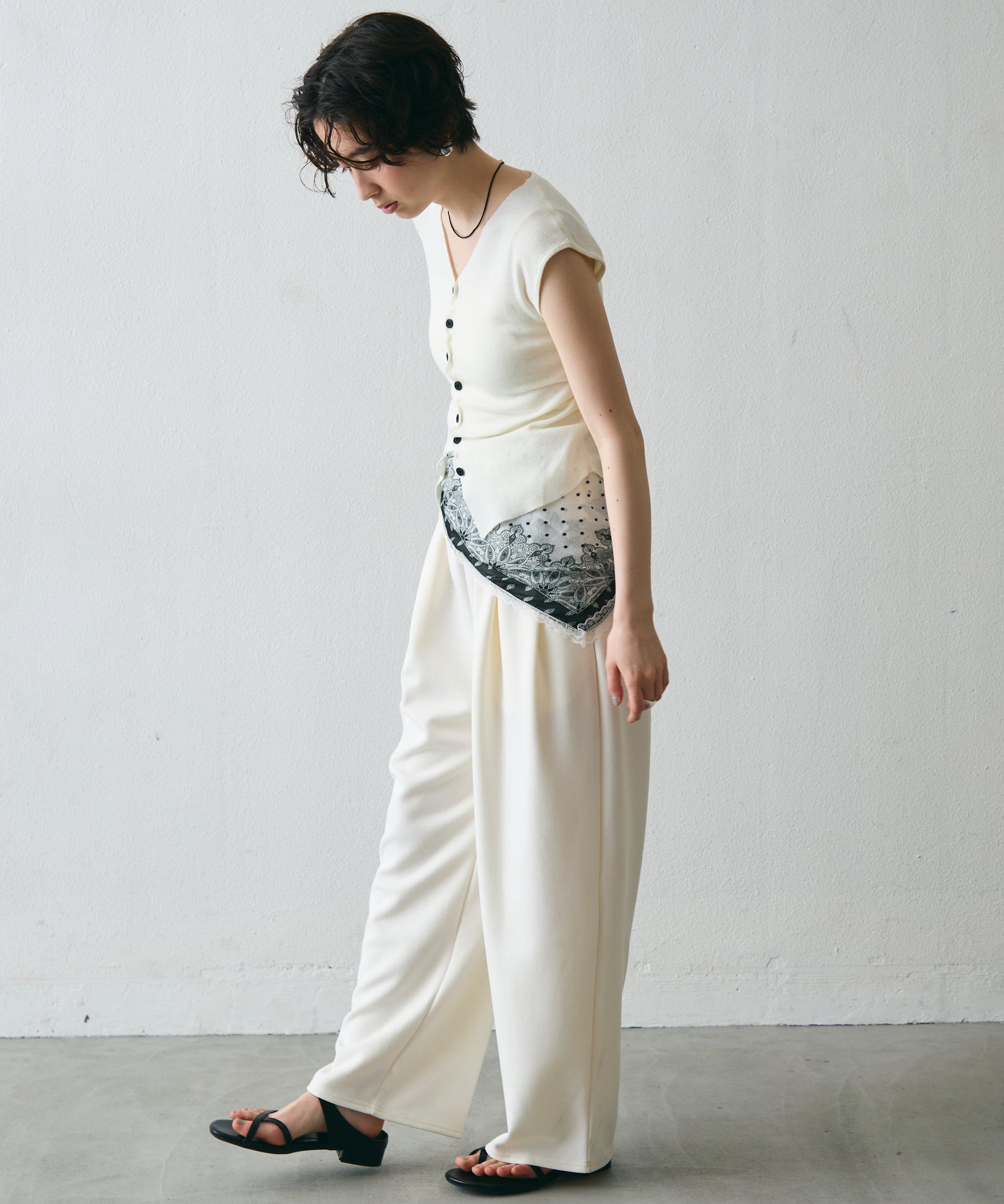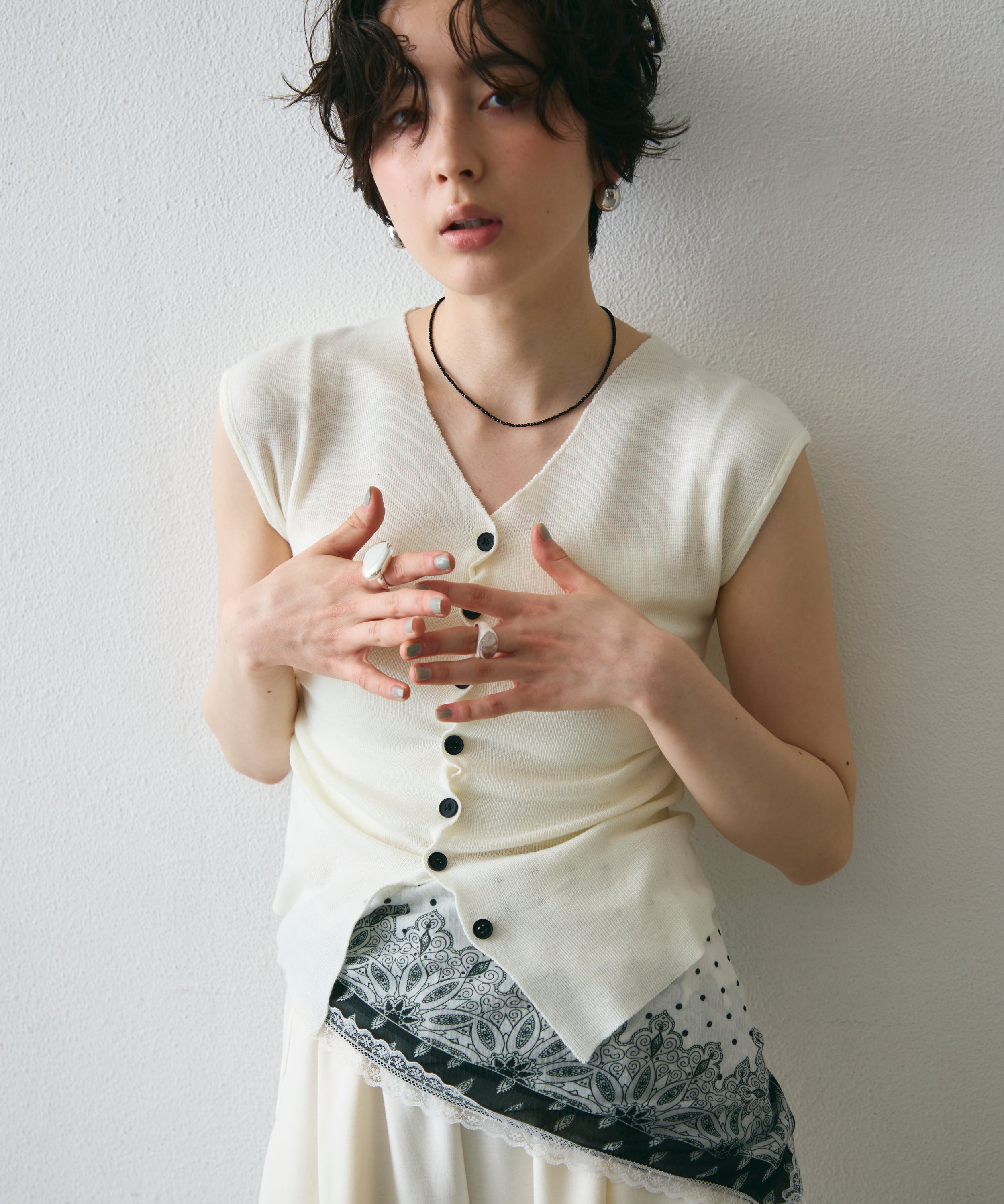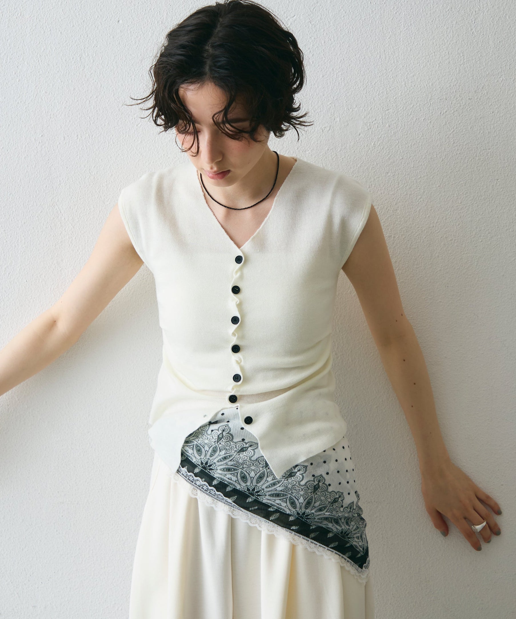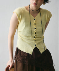 クロスボタンフレンチスリーブニット