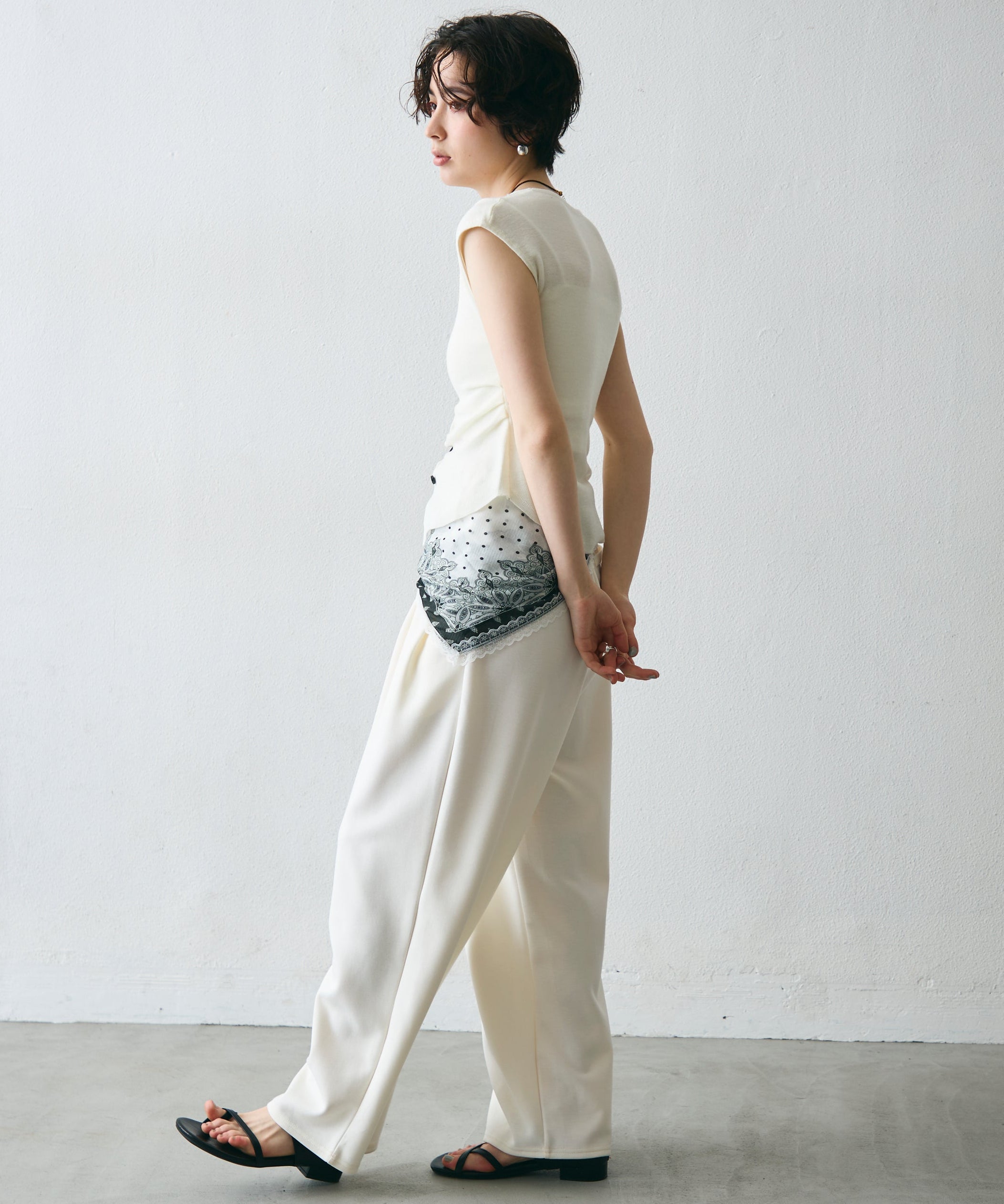 すっきりとしたシルエットで、1枚で上品な大人スタイルが完成。