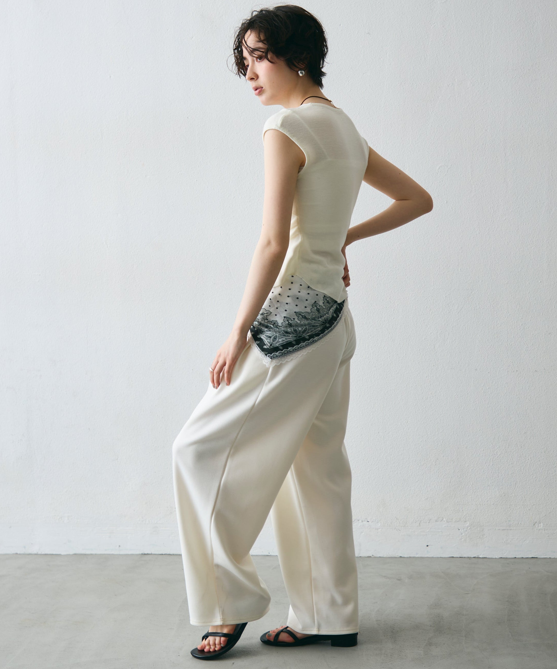 スカートにもパンツにも合わせやすい万能トップスです。