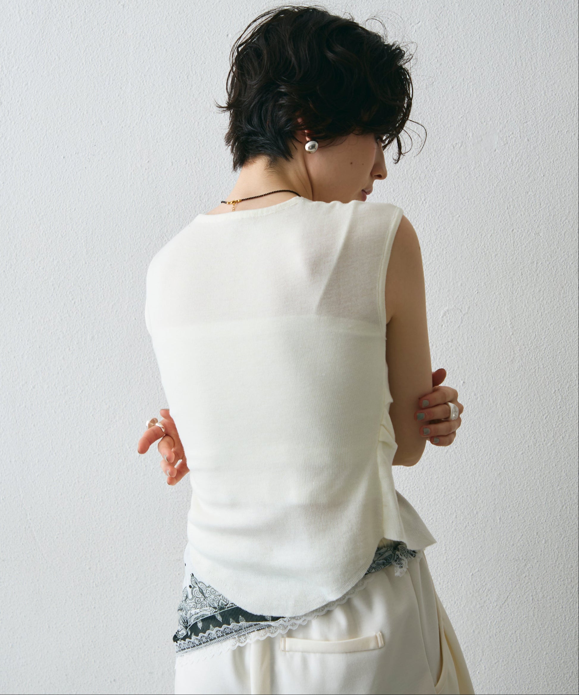 シンプルながらも表情のある一枚で、デニム合わせでもサマになるアイテム。