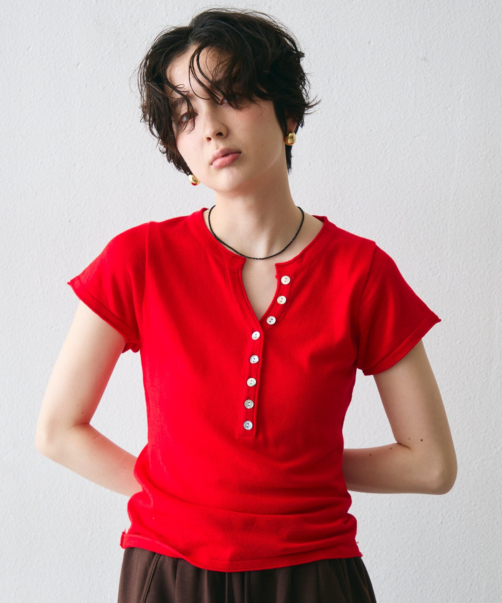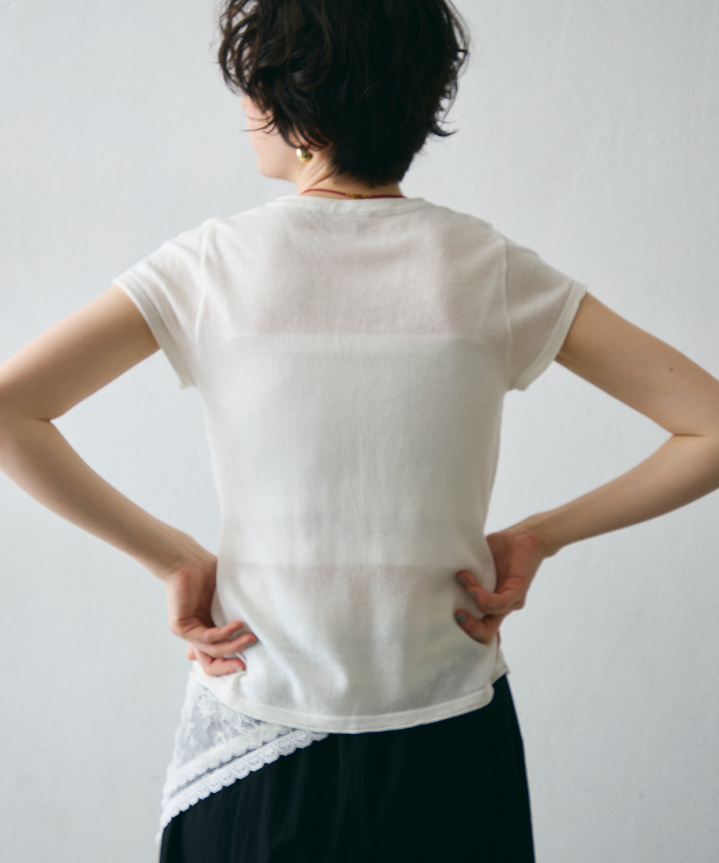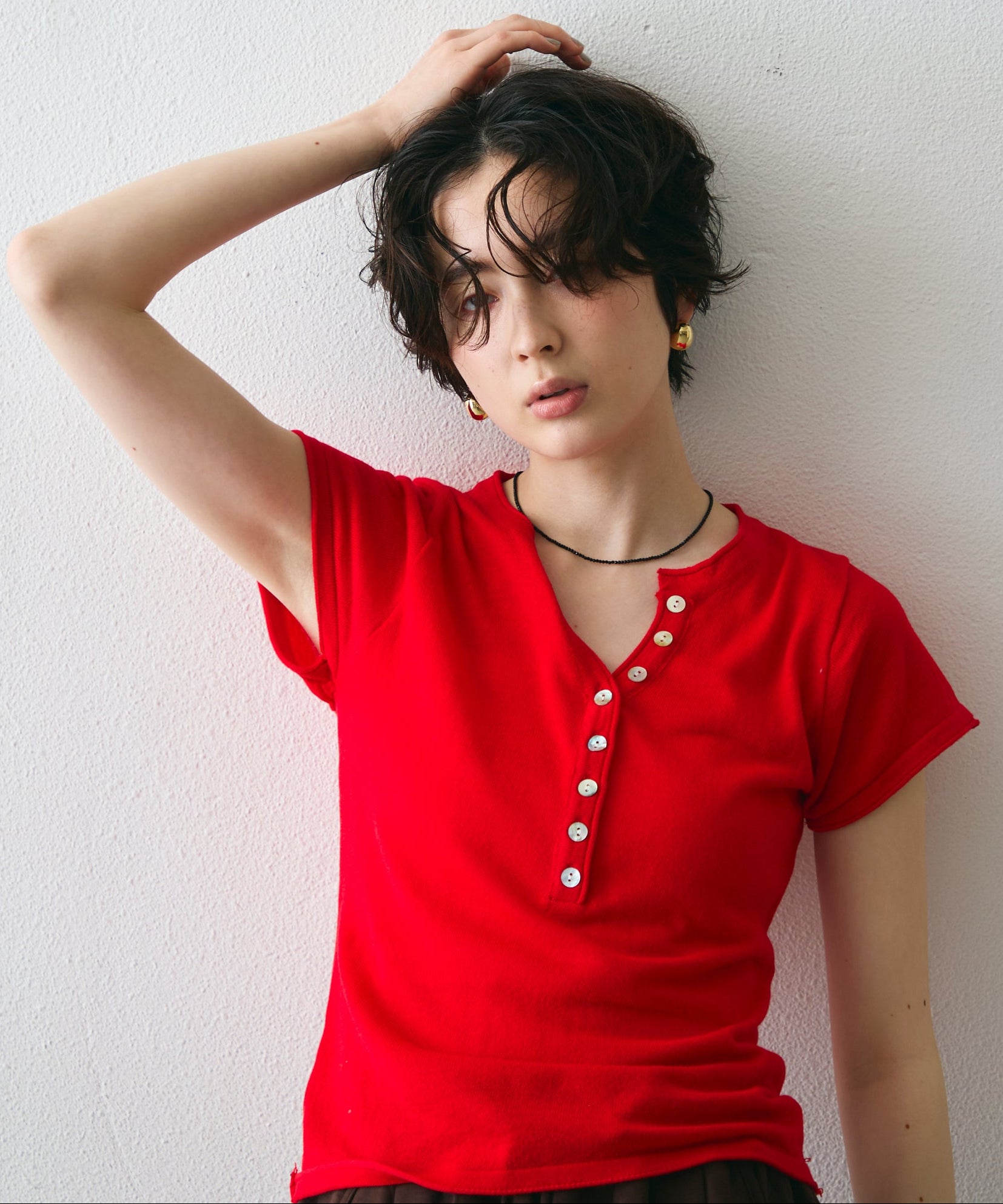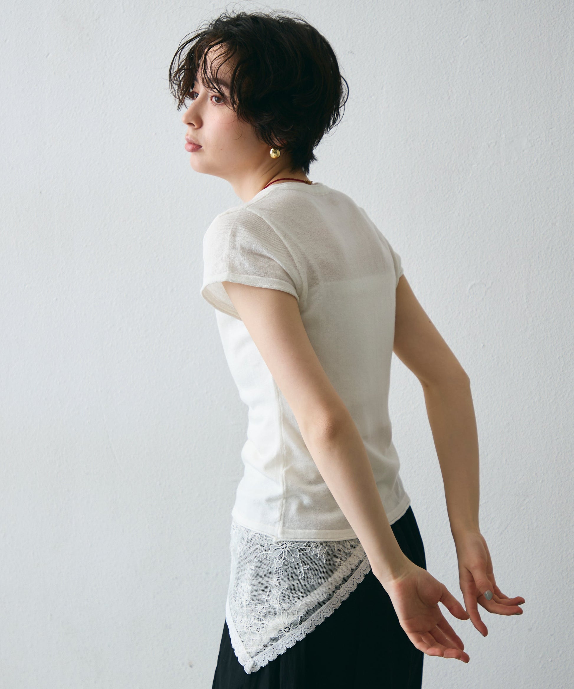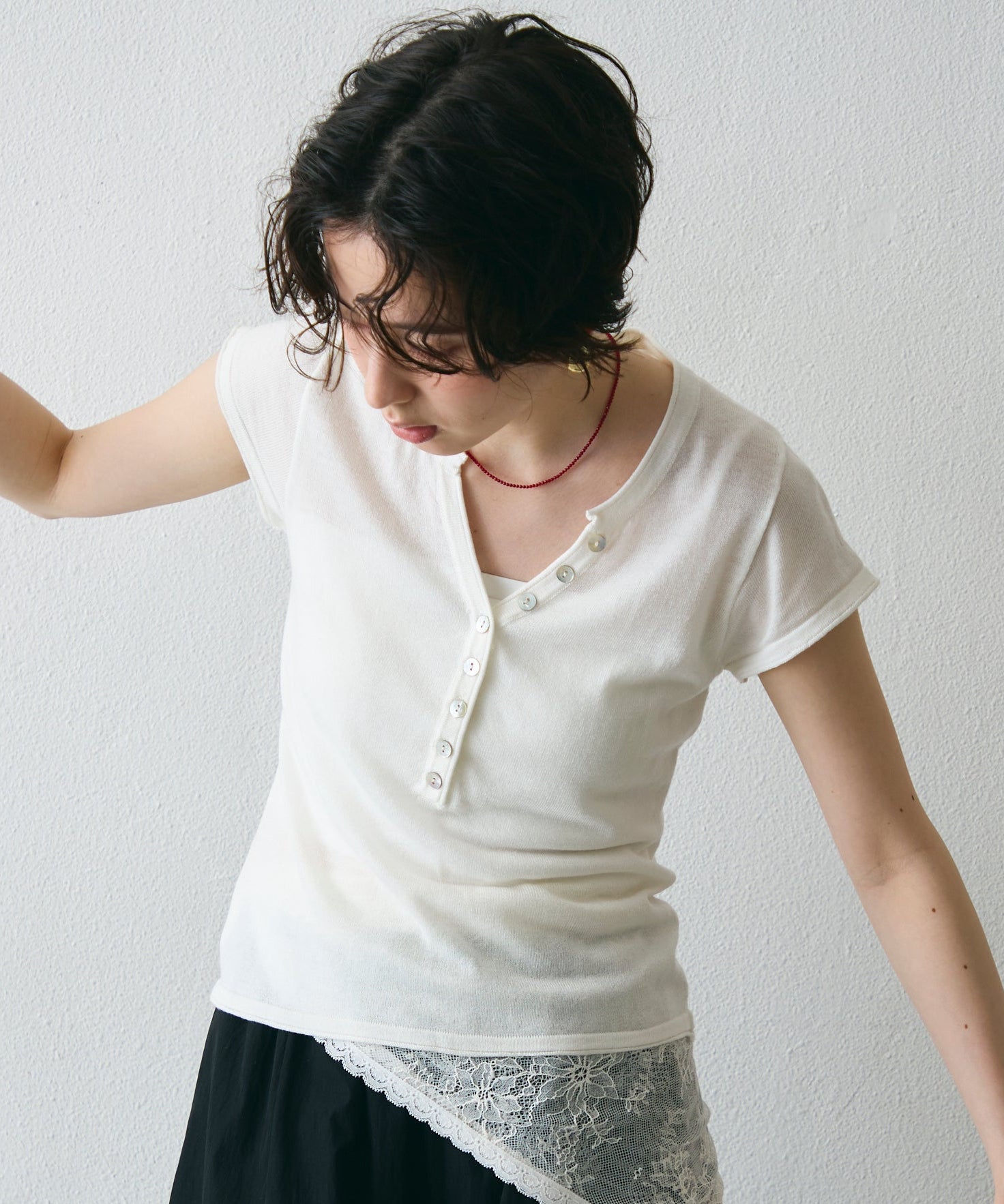 キーネックの抜け感とキャプスリーブの軽さが、大人のこなれ感をプラス