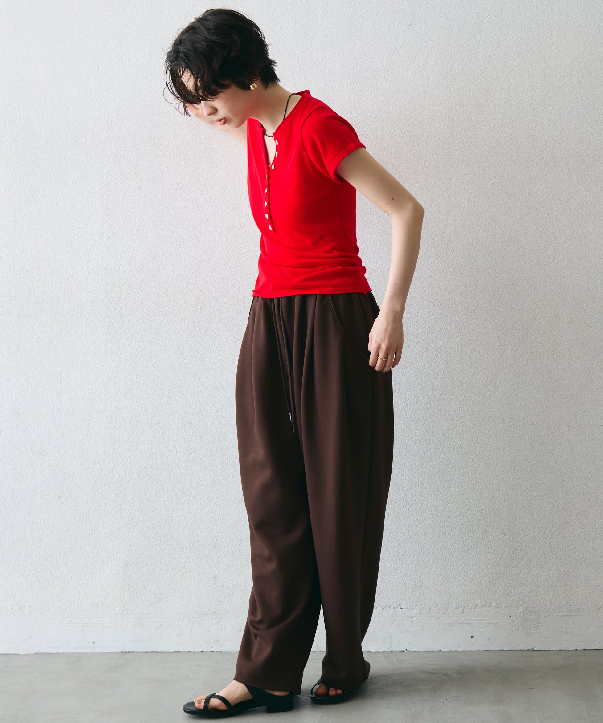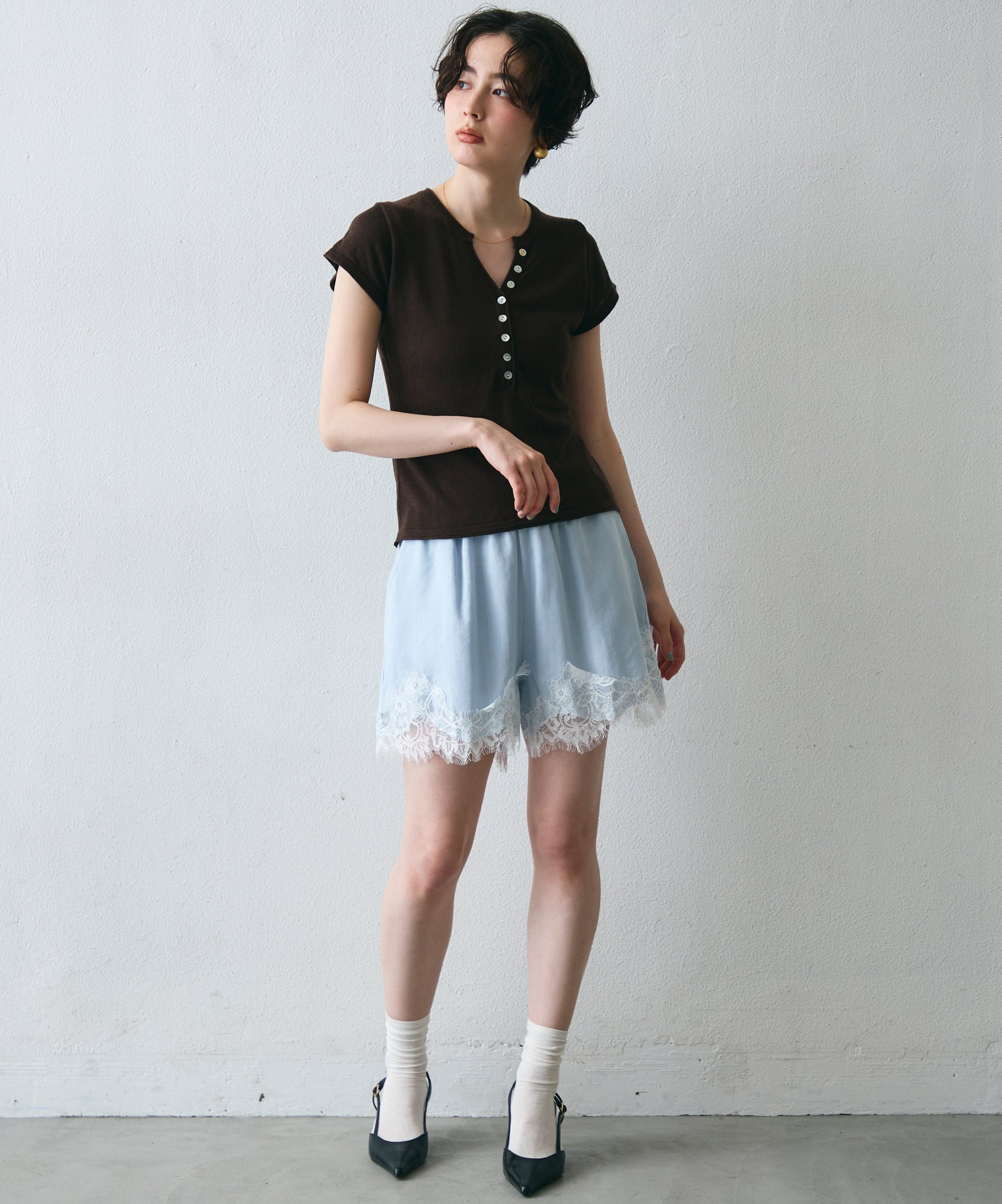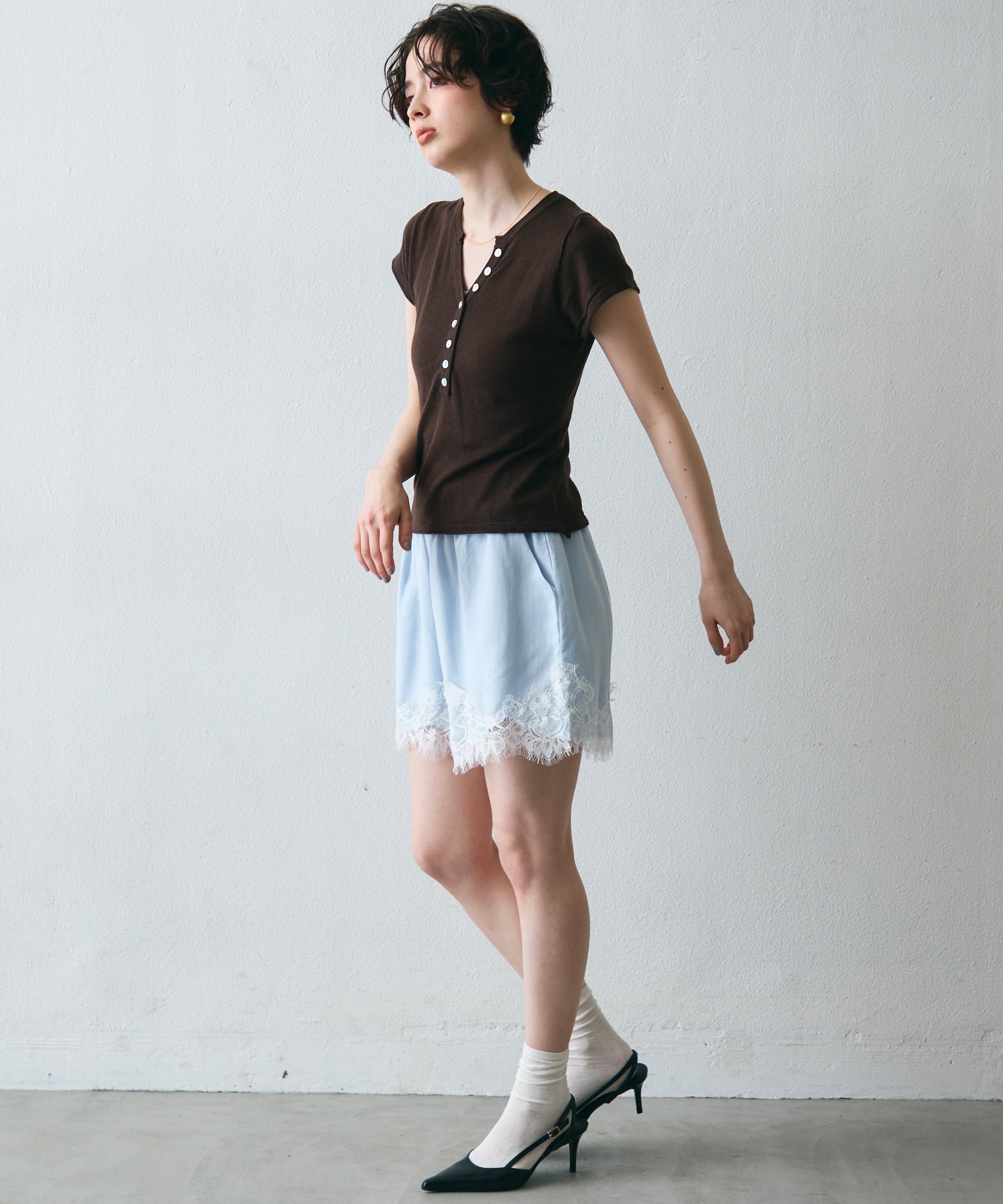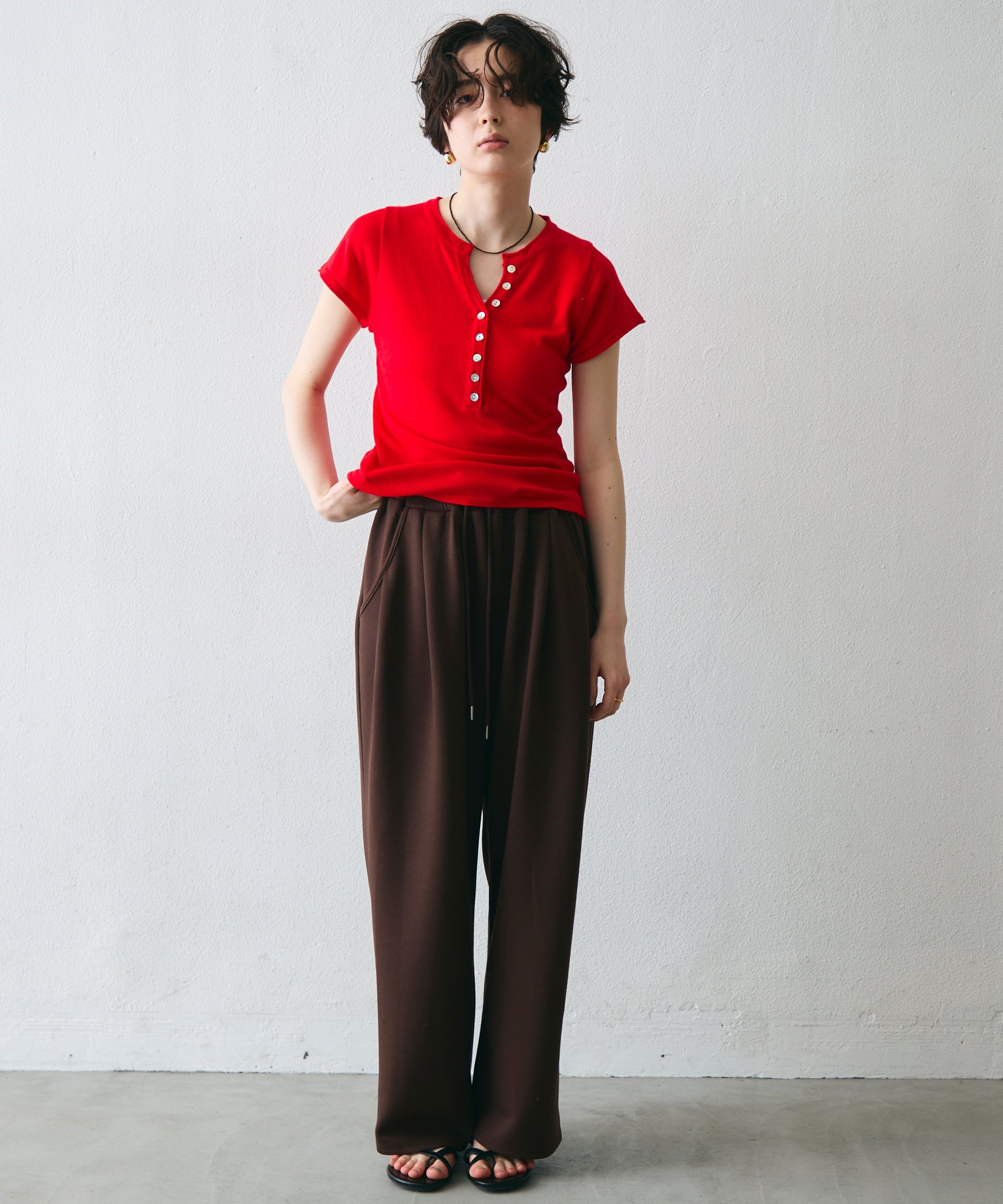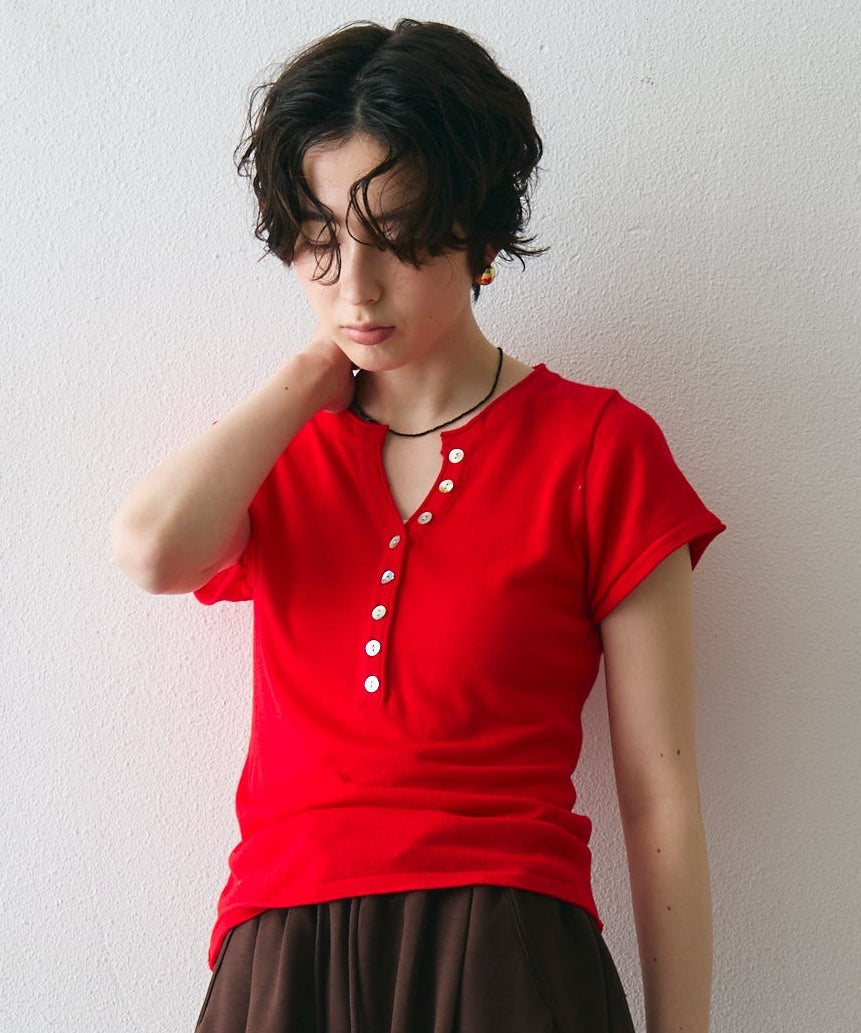 キーネックの抜け感とキャプスリーブの軽さが、大人のこなれ感をプラス
