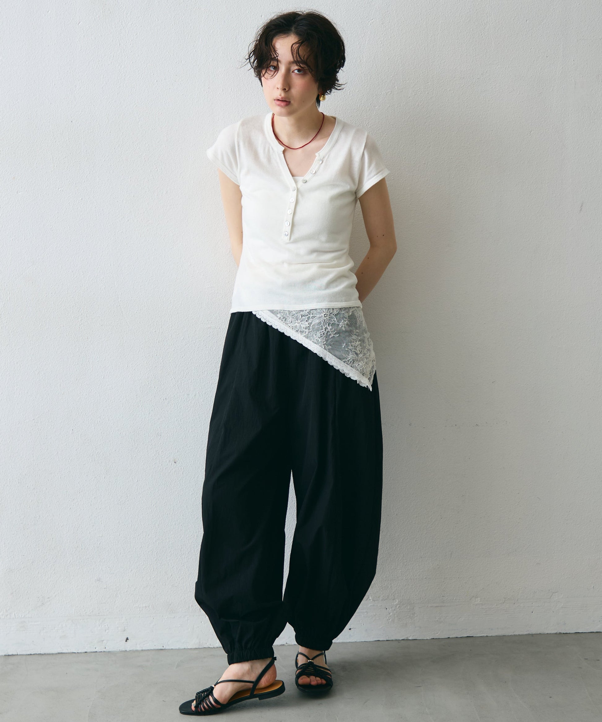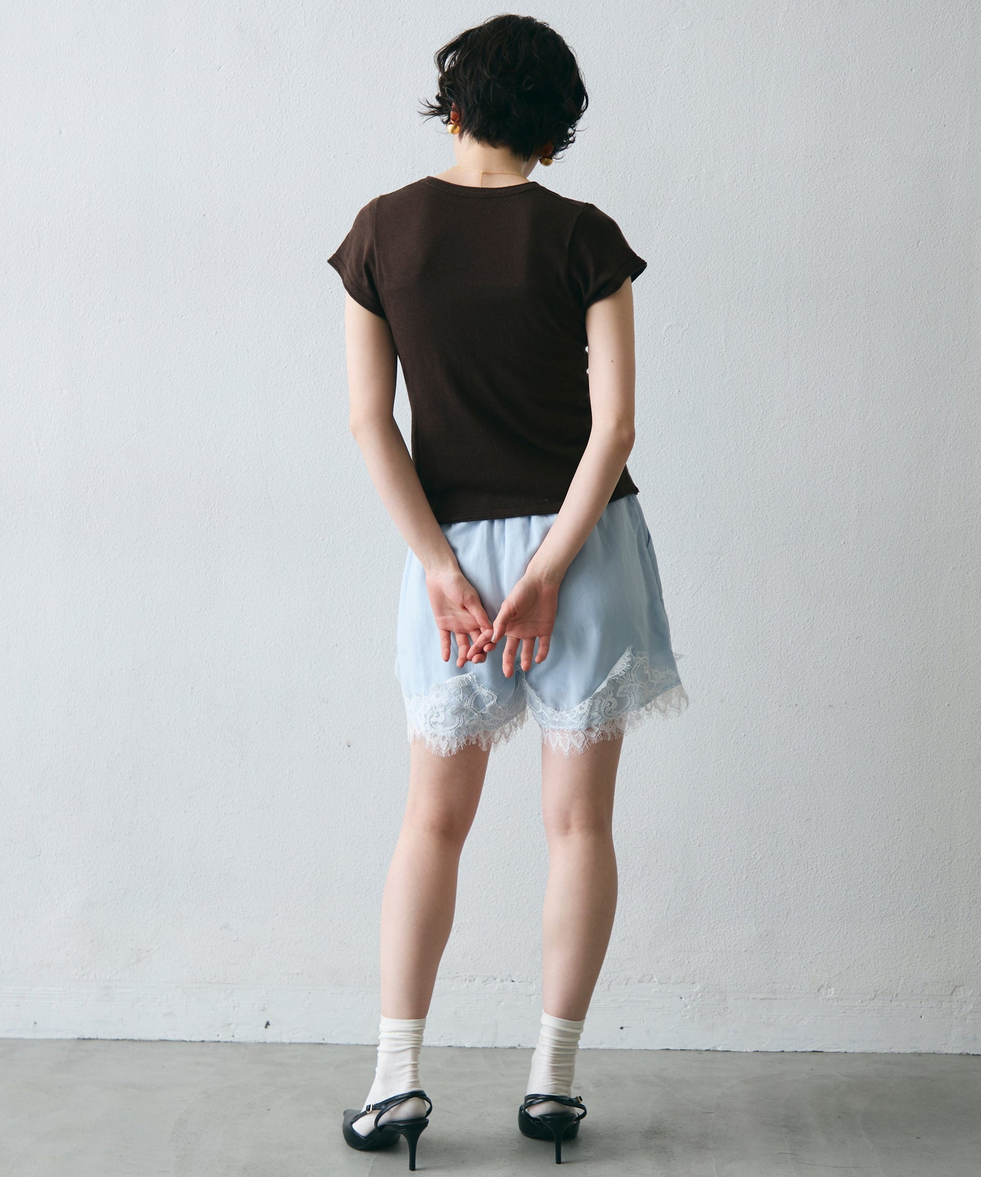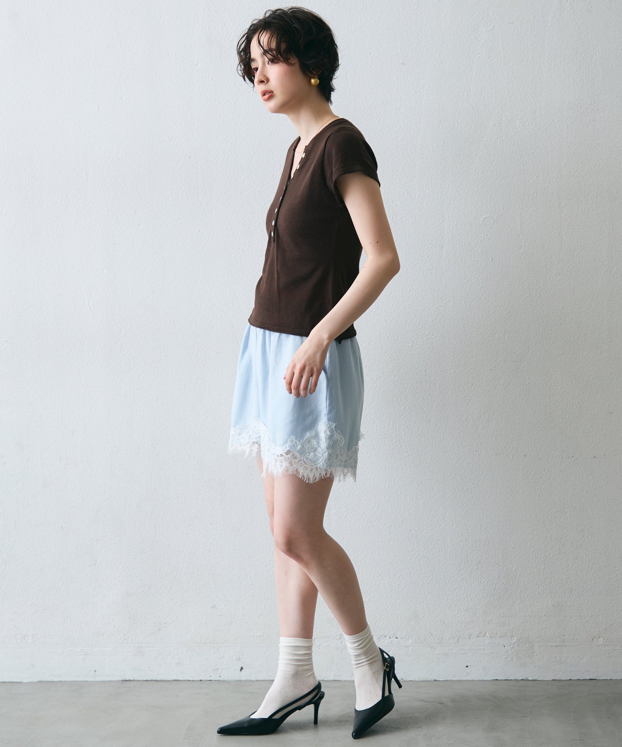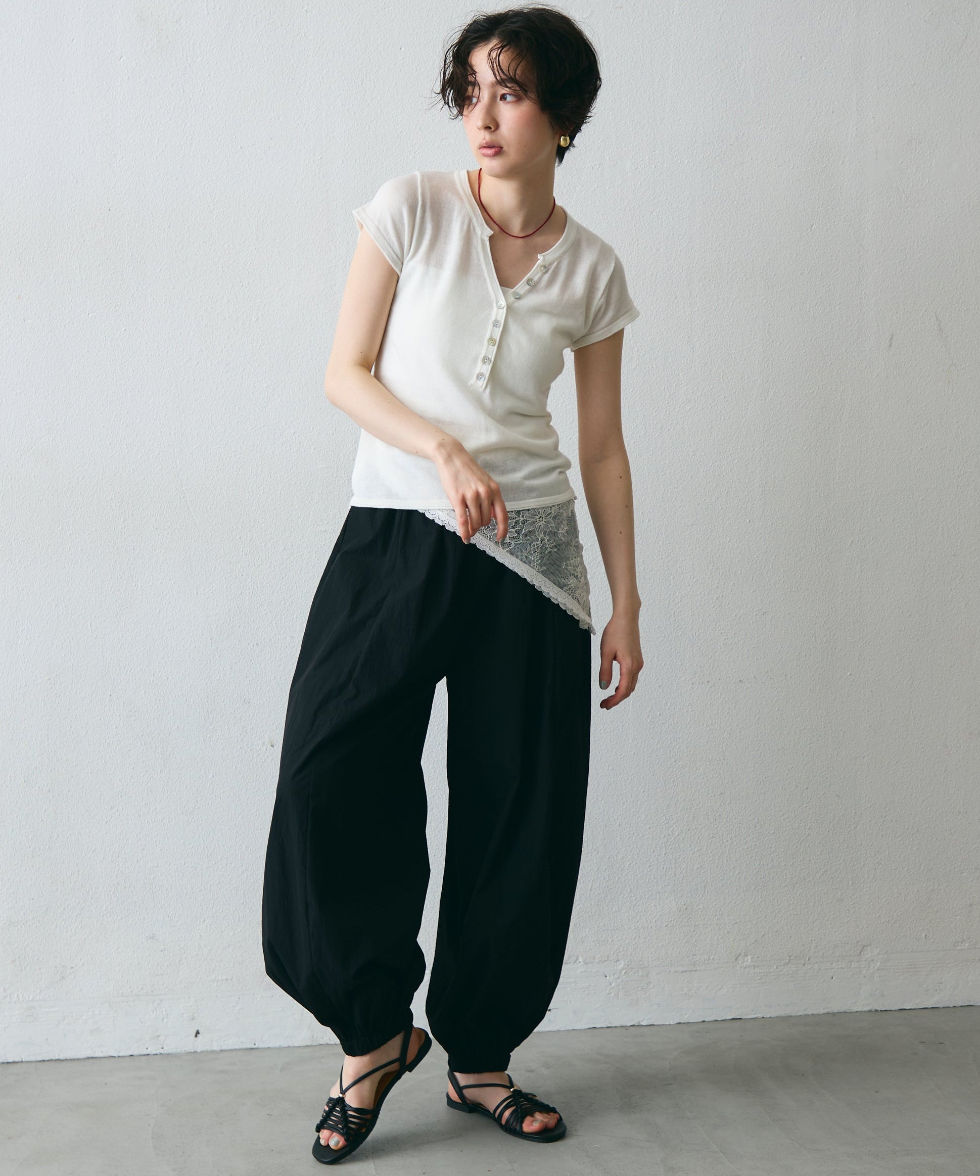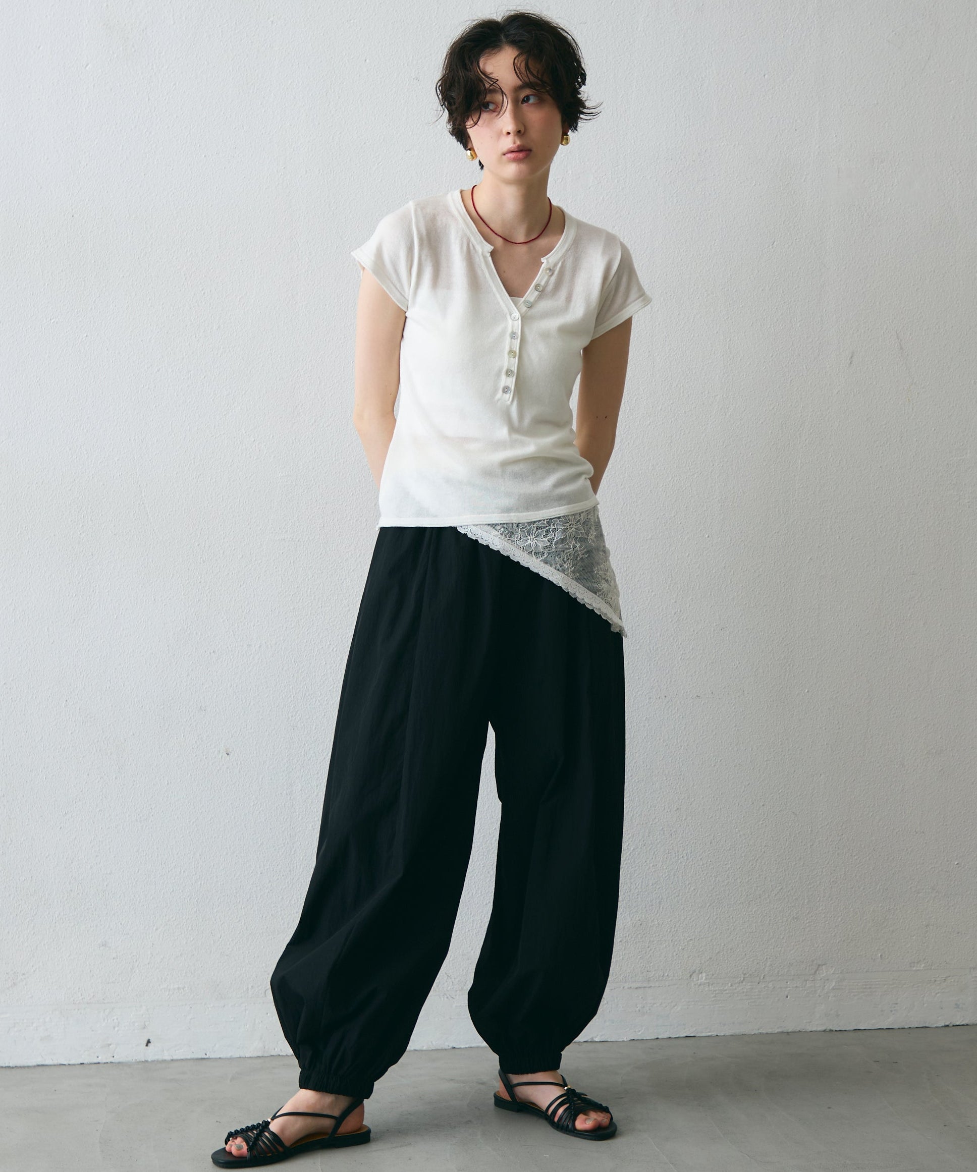 キーネックの抜け感とキャプスリーブの軽さが、大人のこなれ感をプラス