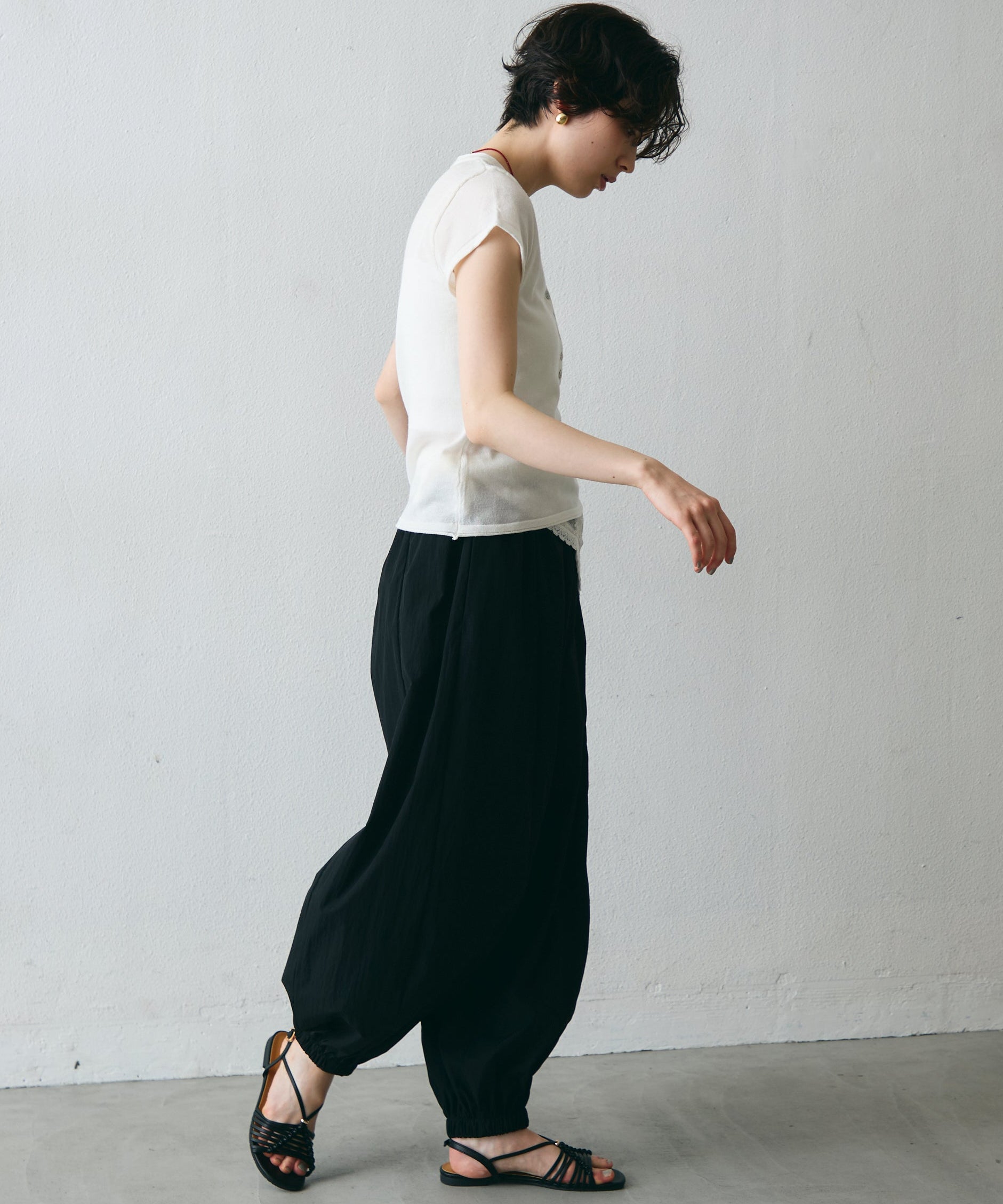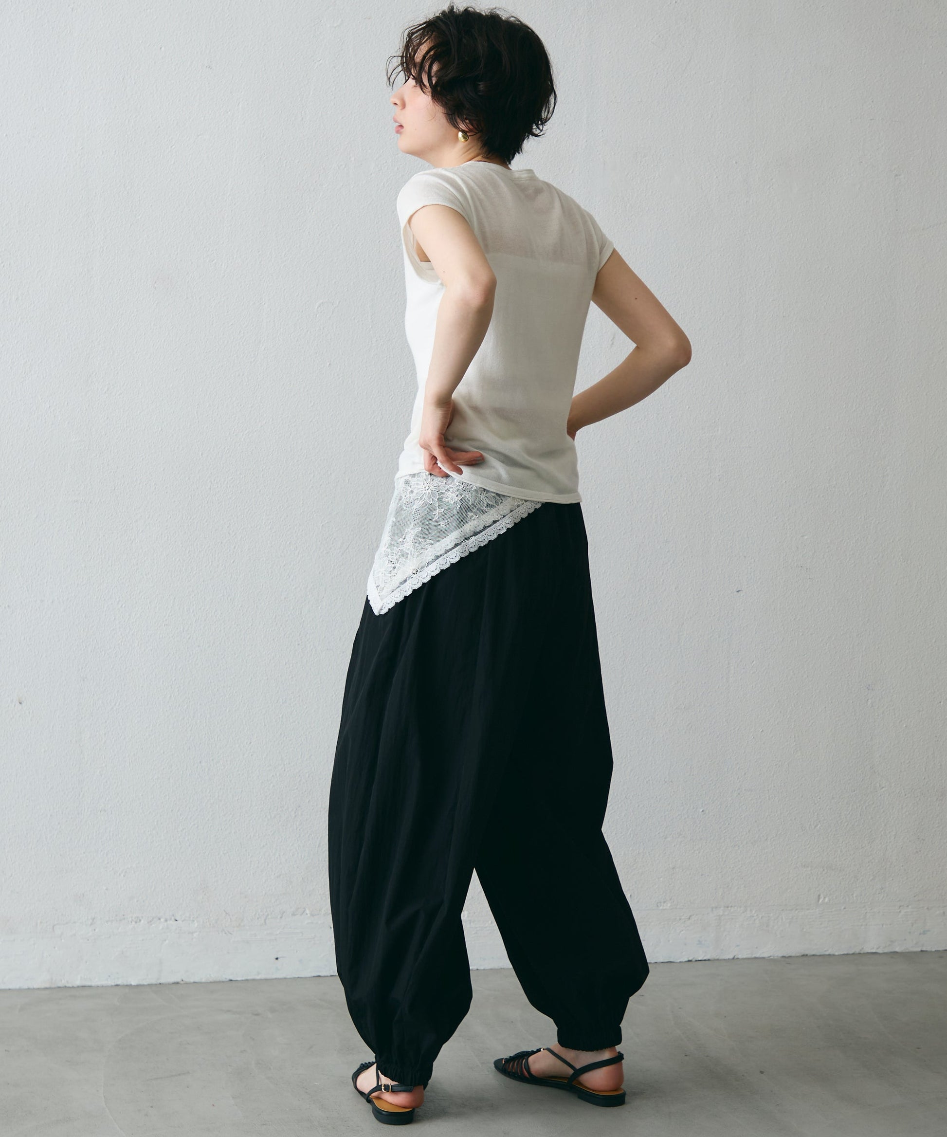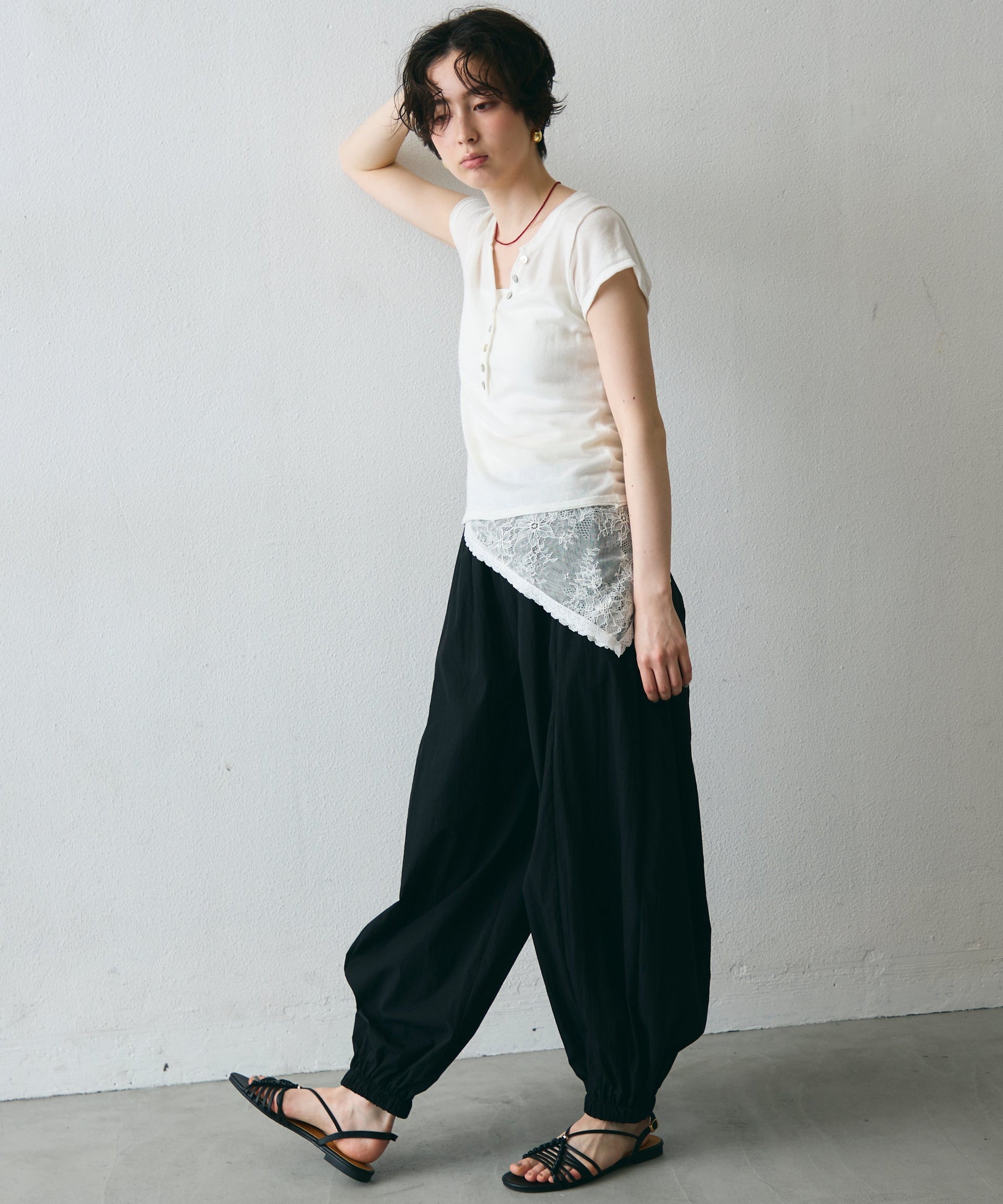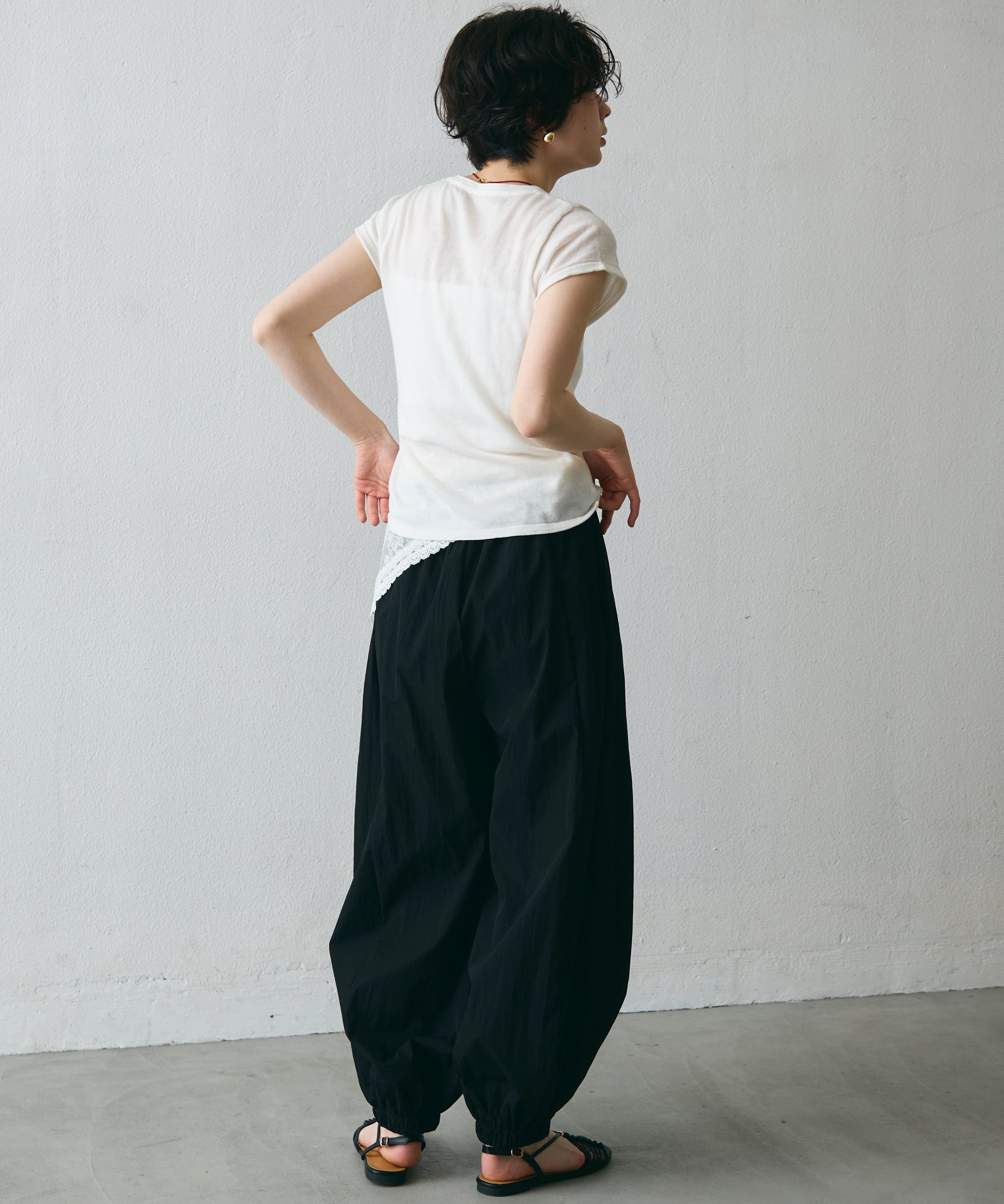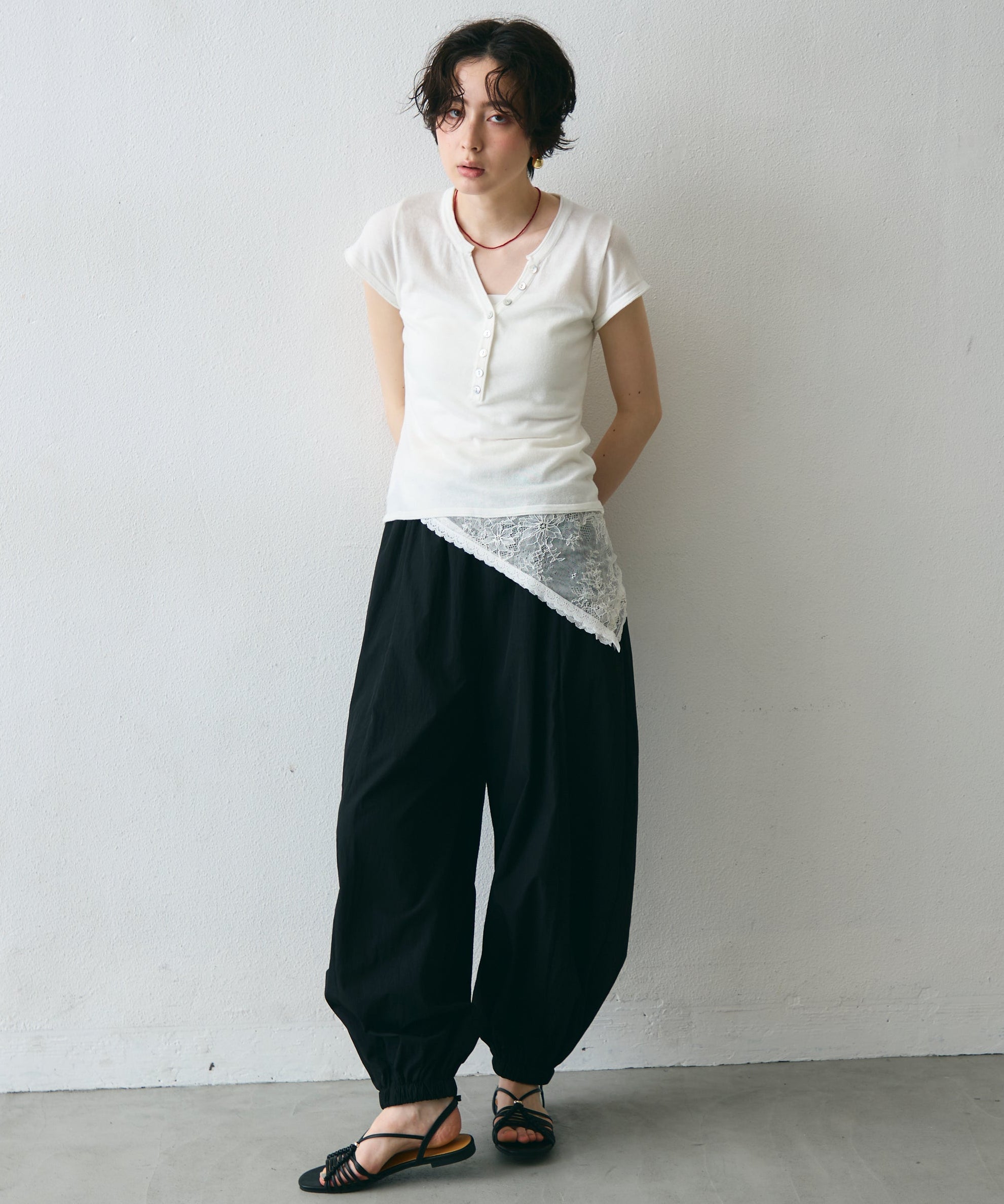 キーネックの抜け感とキャプスリーブの軽さが、大人のこなれ感をプラス