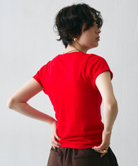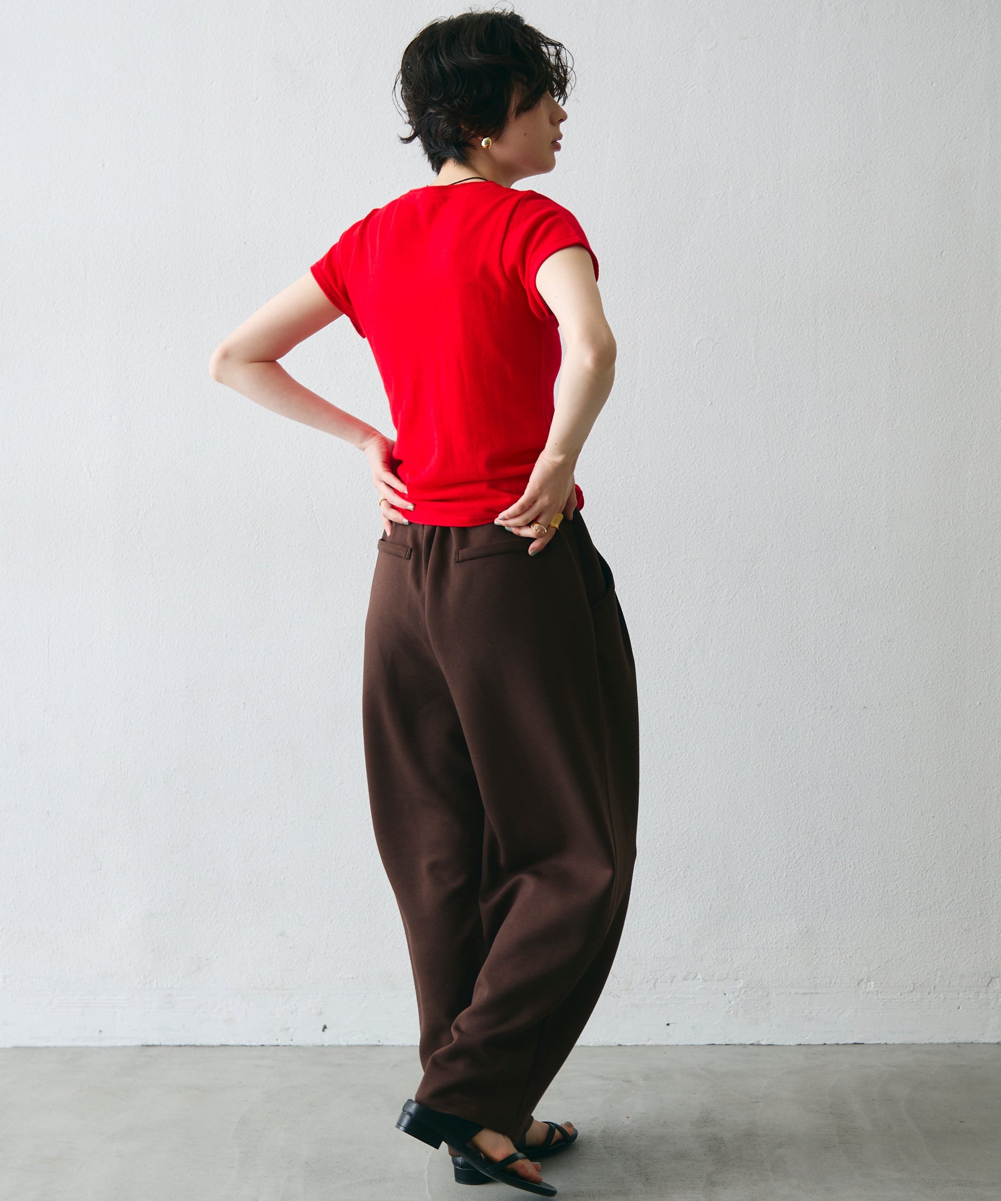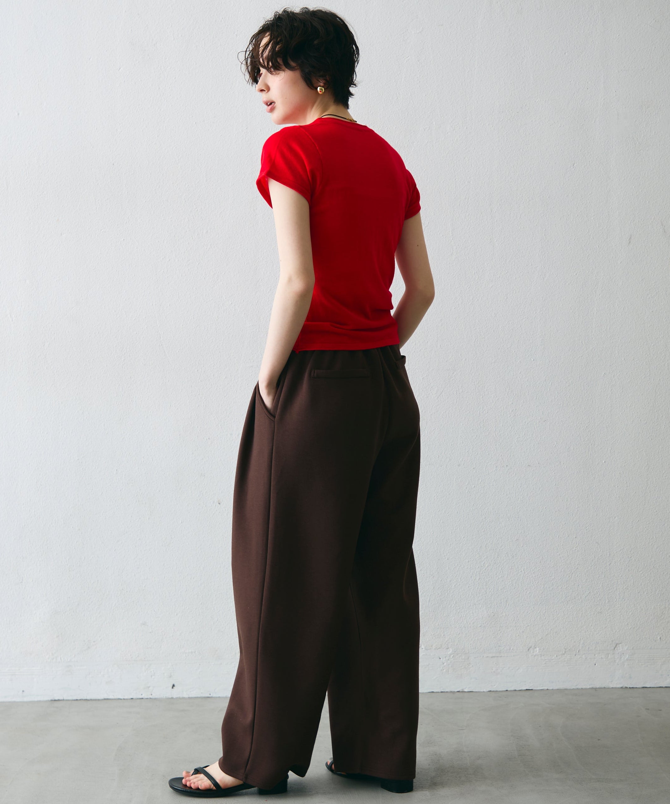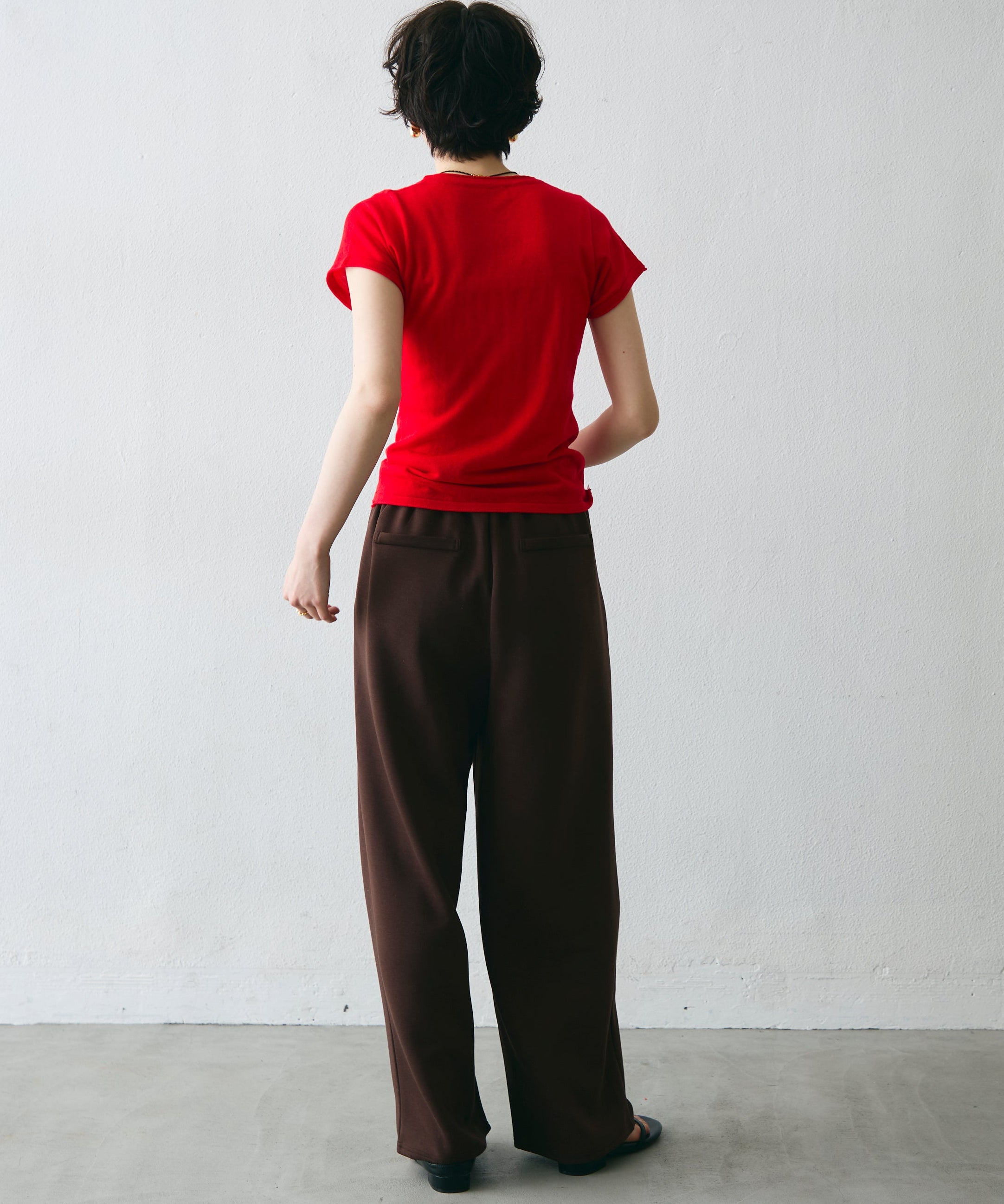 程よいフィット感で女性らしいシルエットを演出し、1枚で上品な印象に。