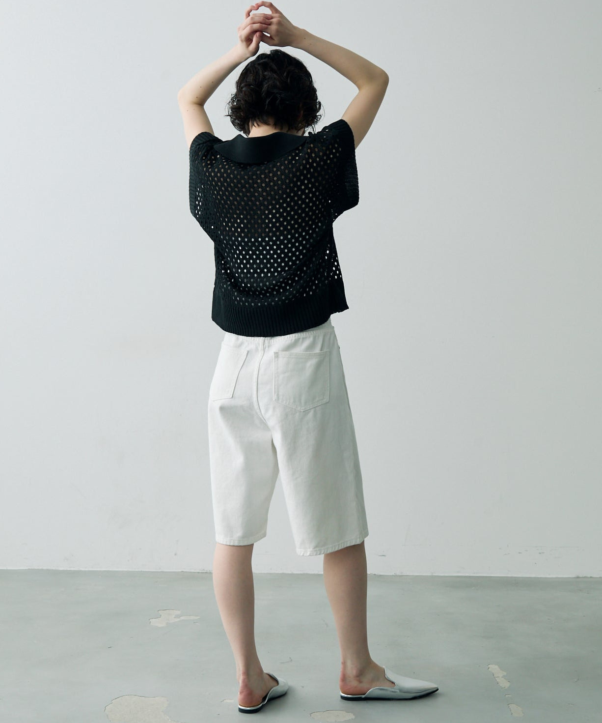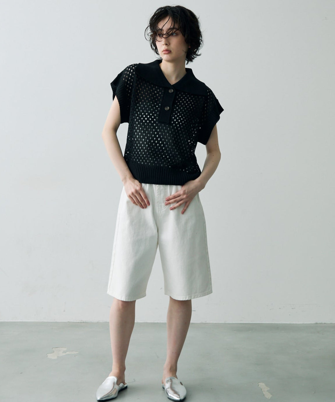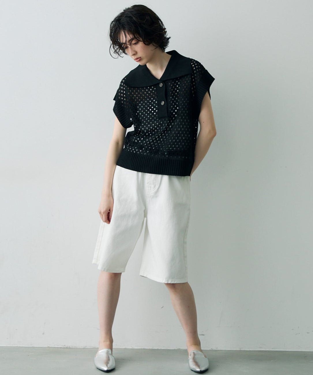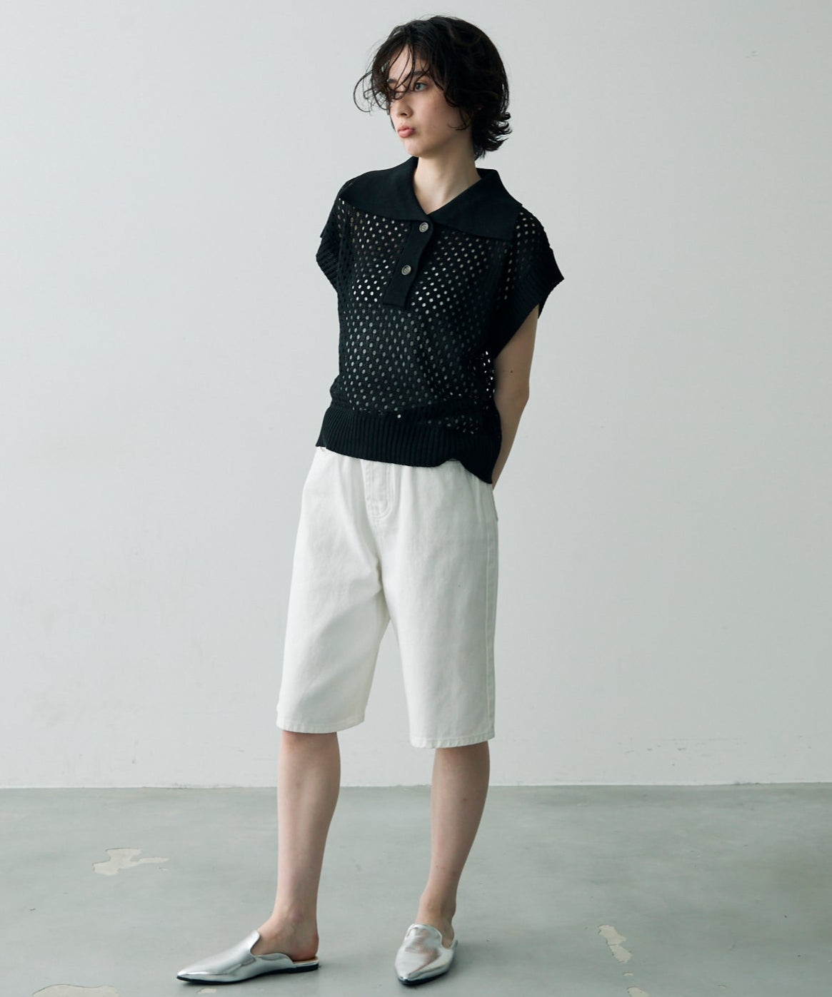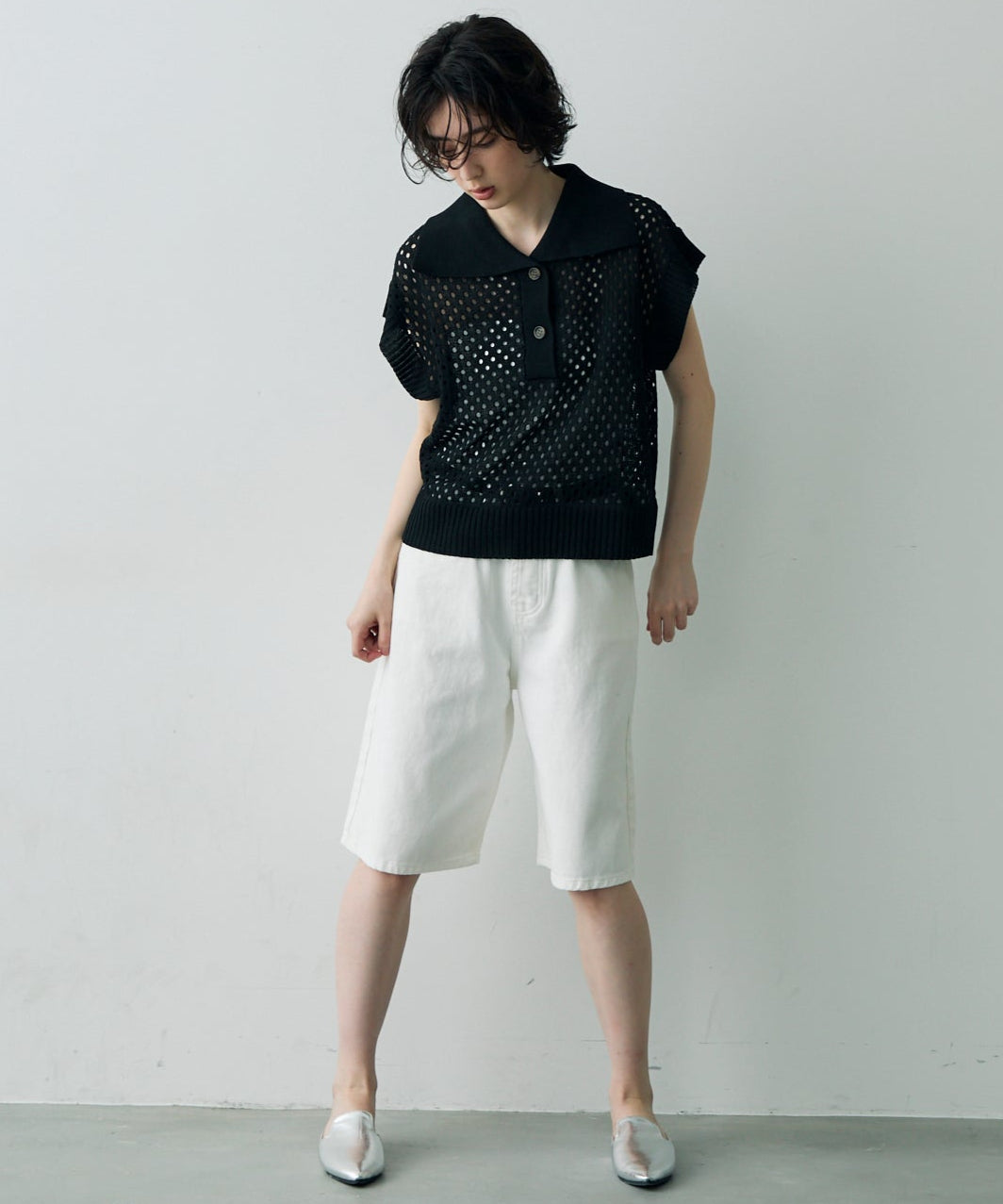 ざっくり編まれたボディに、大きめの襟が特徴のニットポロ。