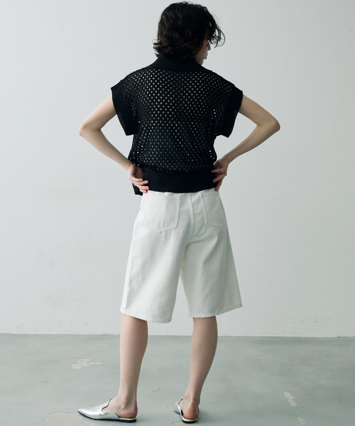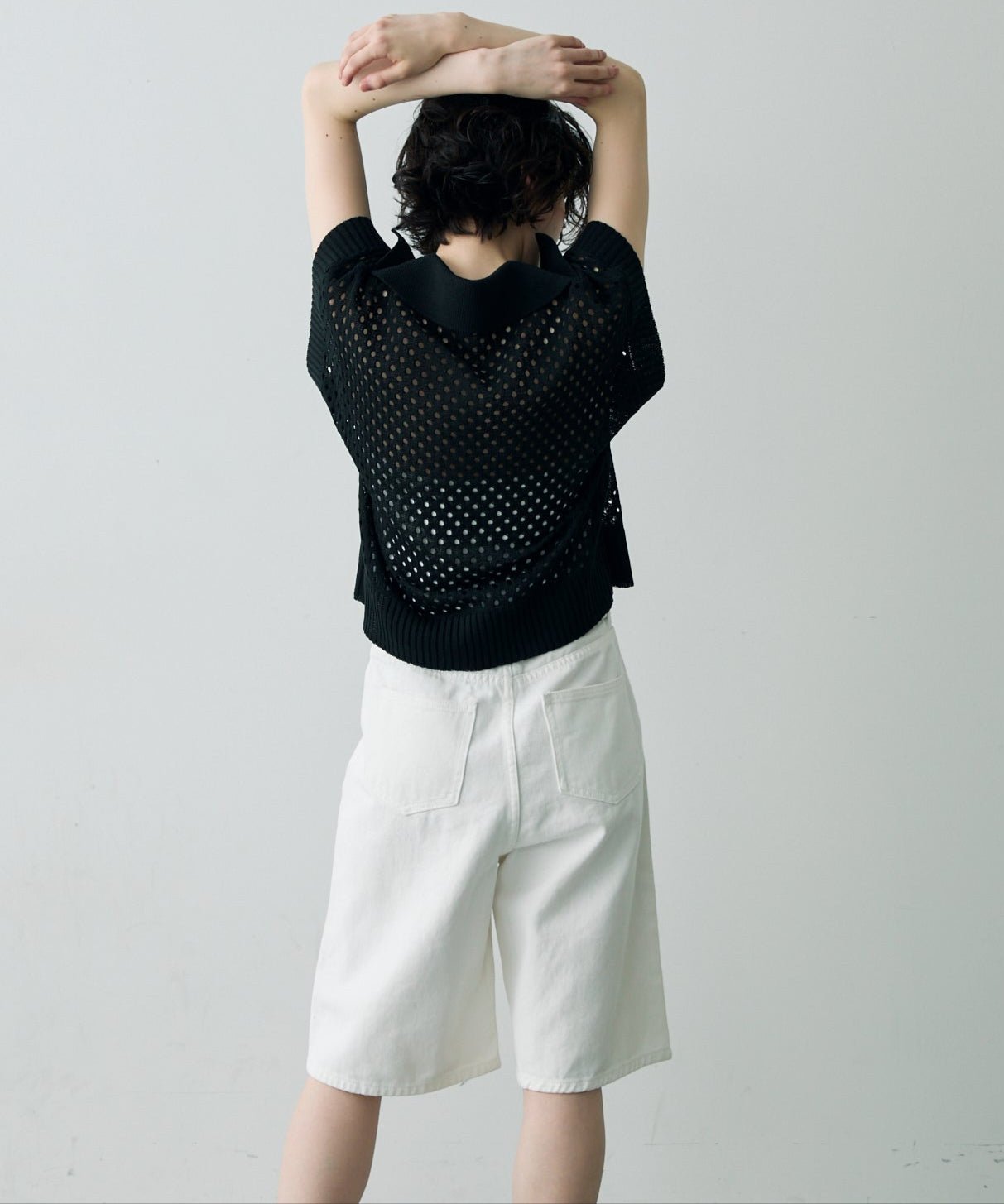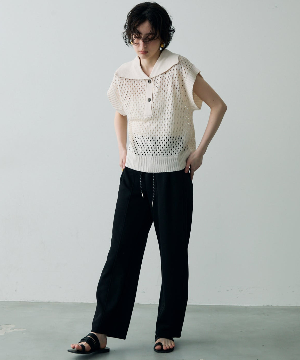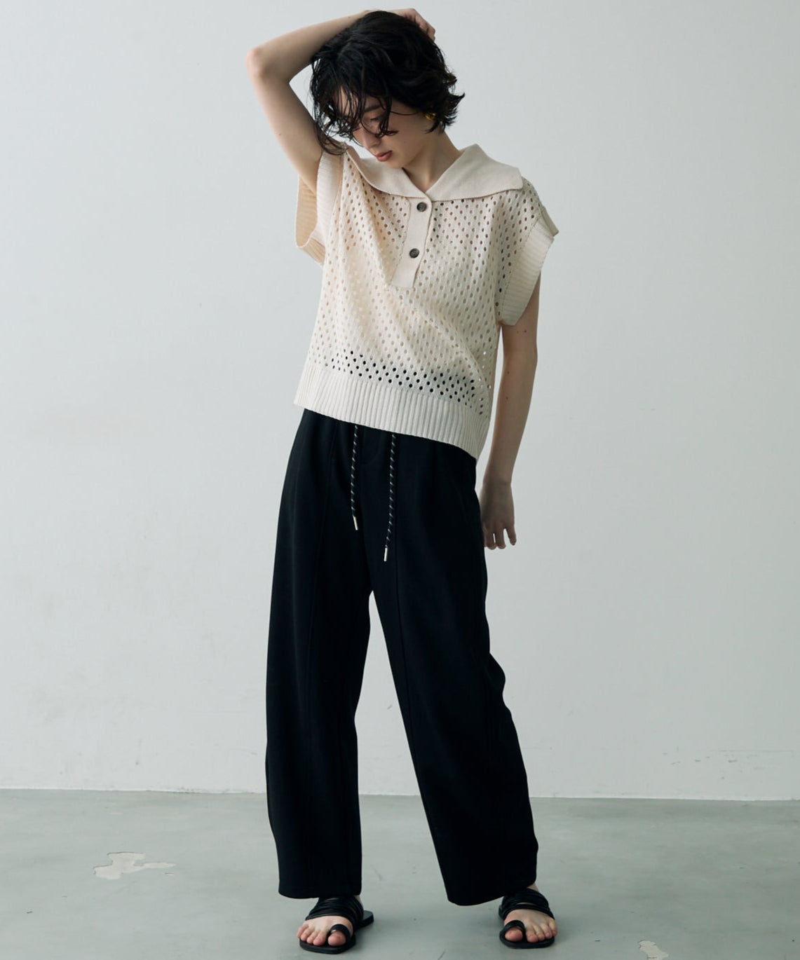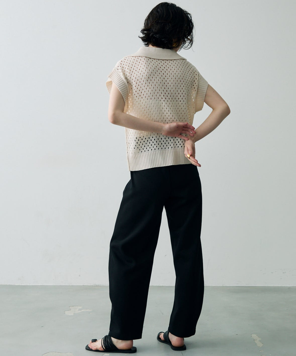 ざっくり編まれたボディに、大きめの襟が特徴のニットポロ。