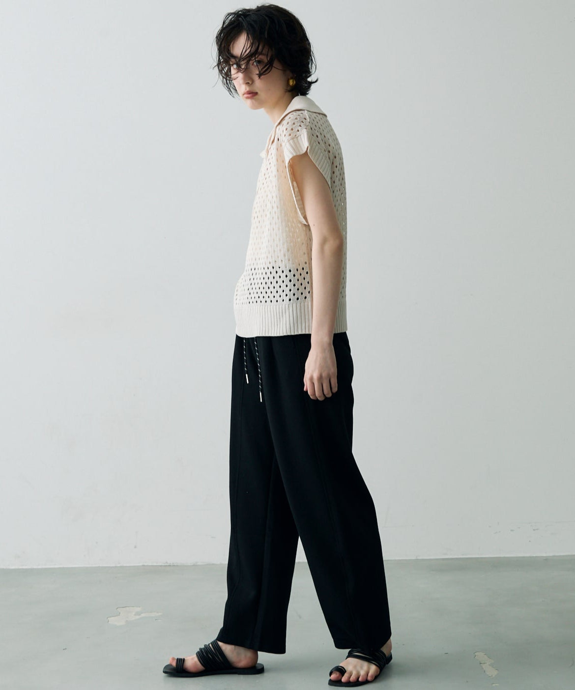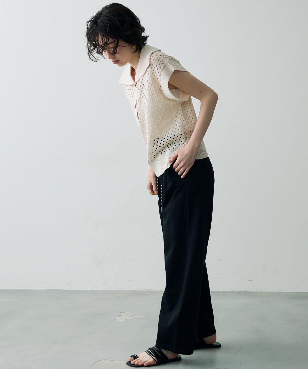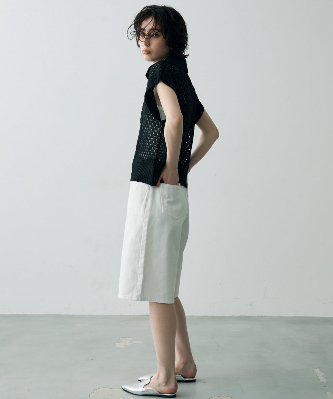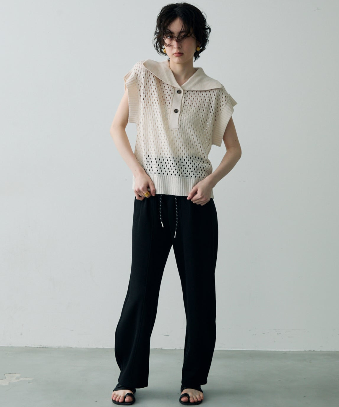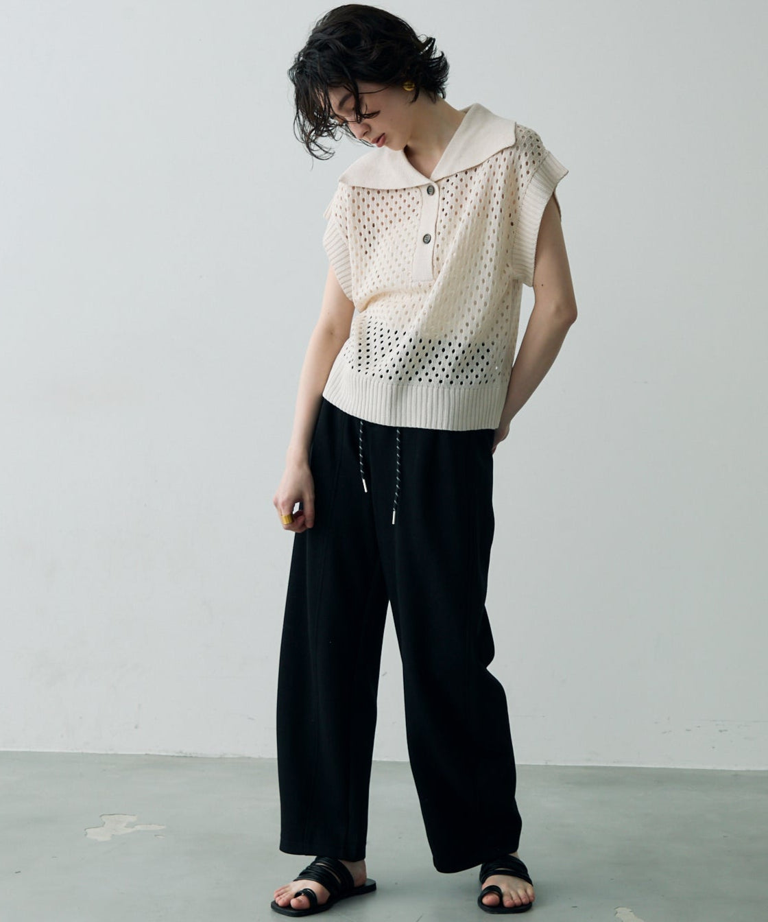 ざっくり編まれたボディに、大きめの襟が特徴のニットポロ。