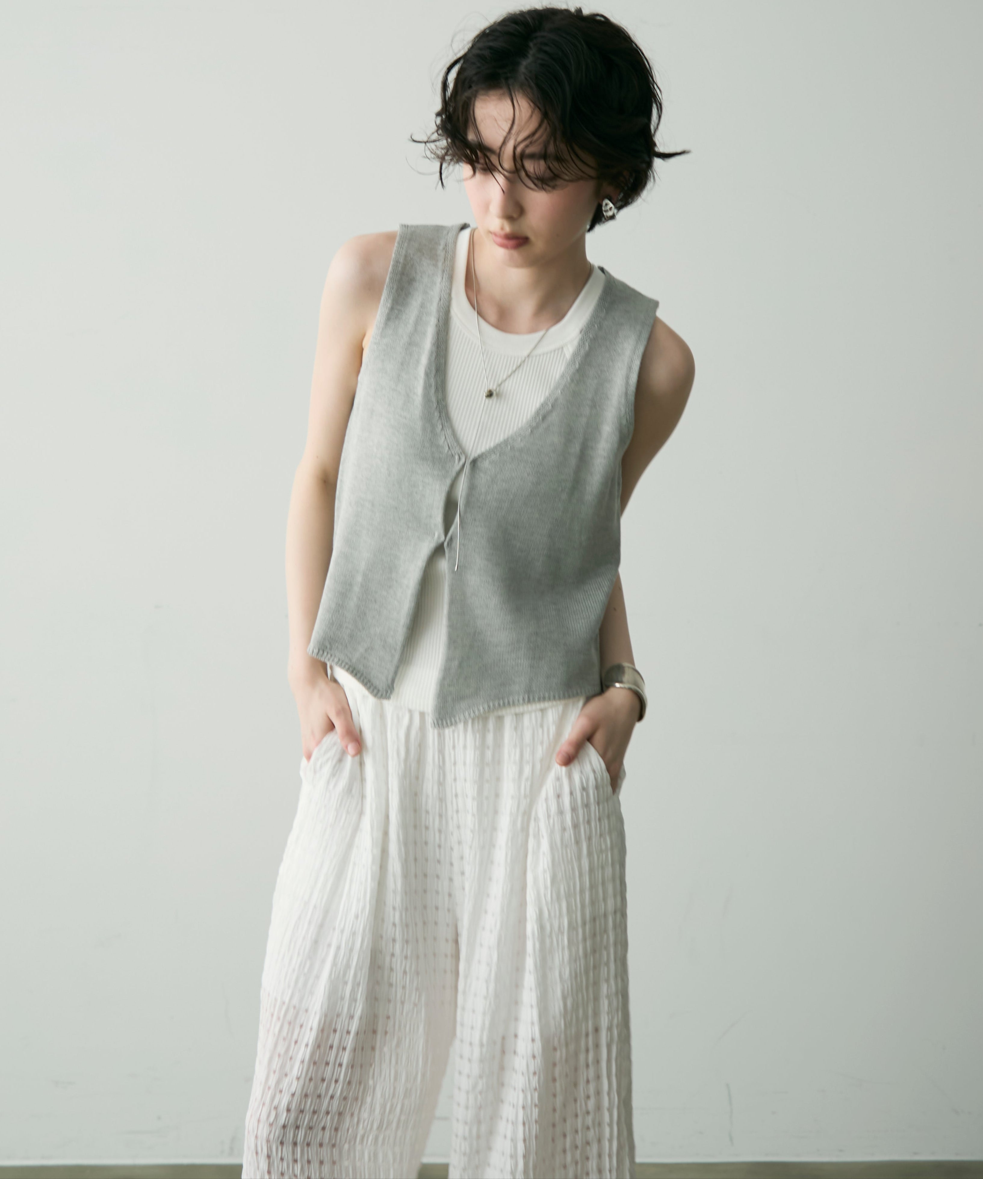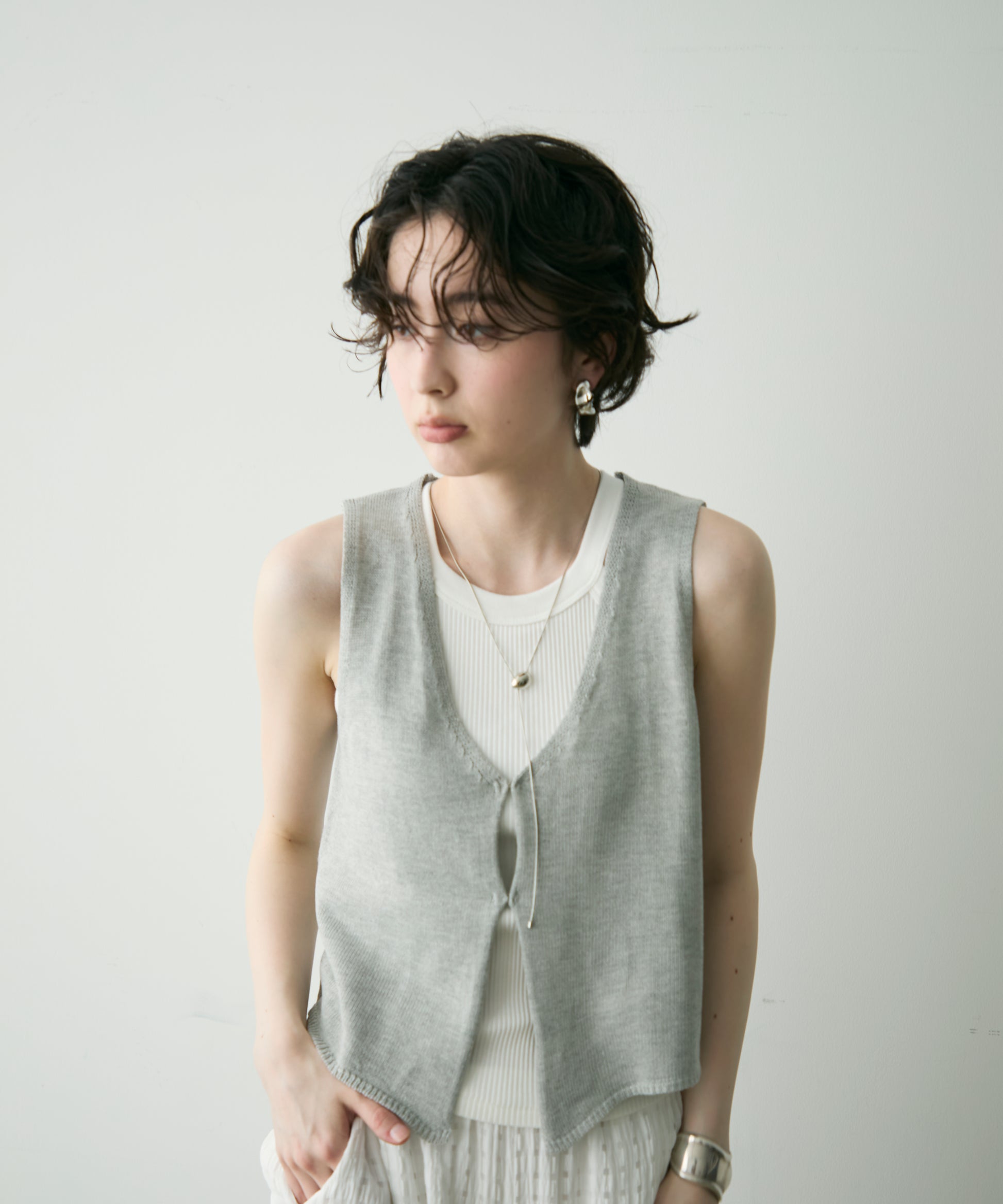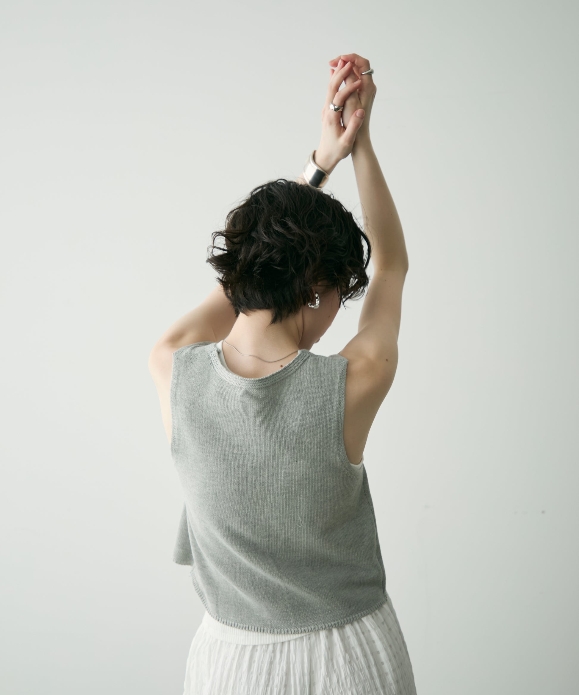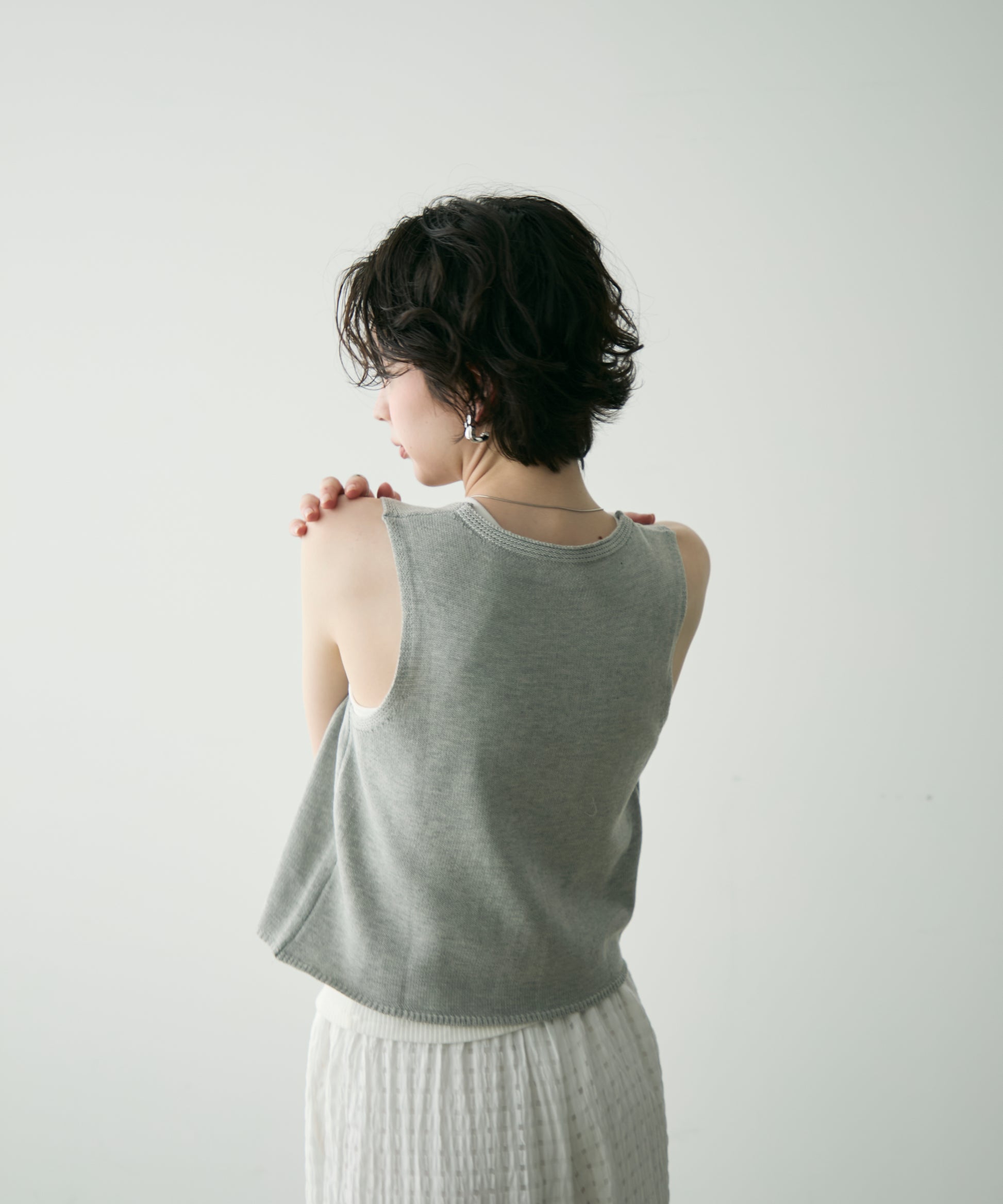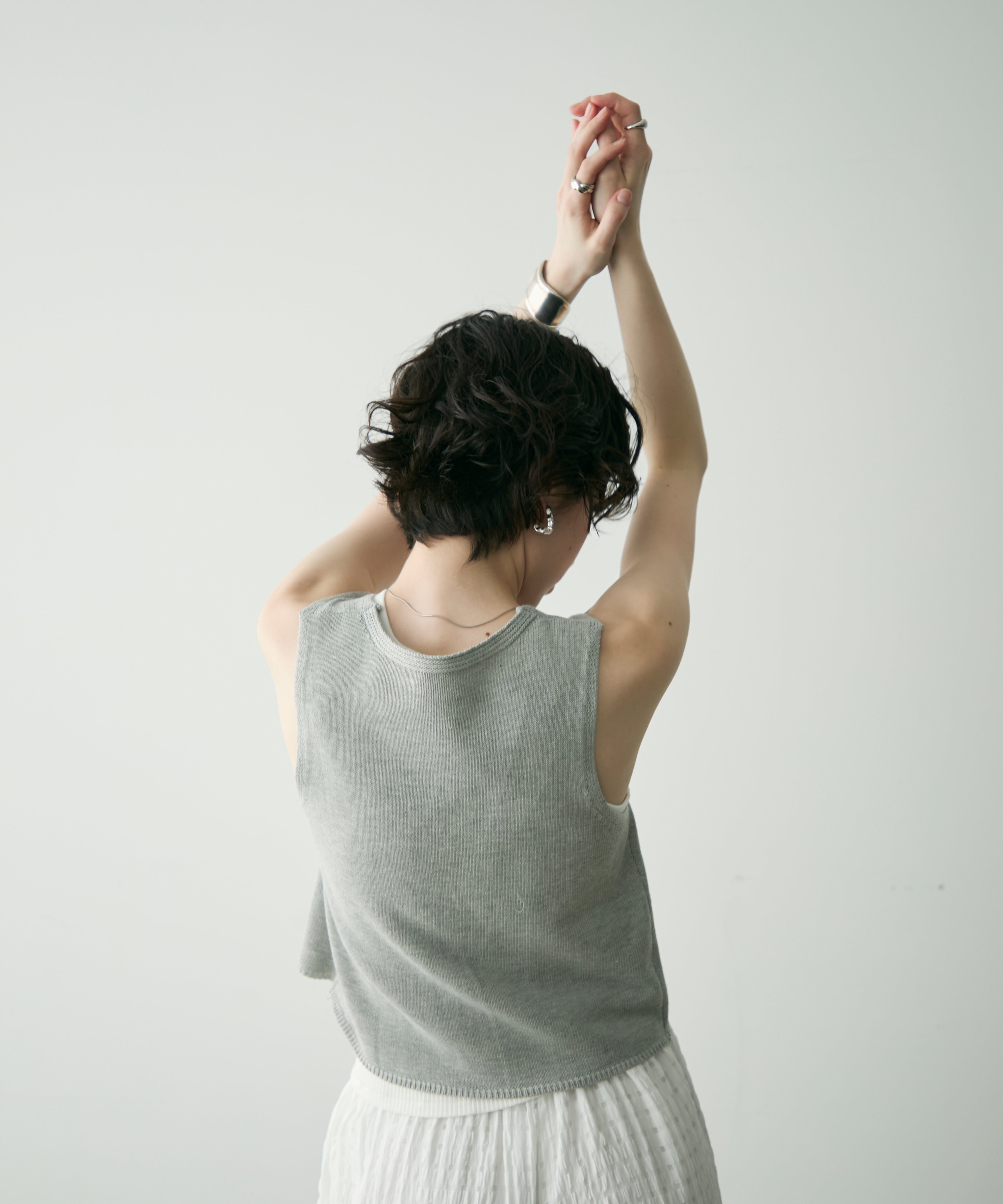 ノースリーブで涼しげな印象で着用いただくのはもちろんのこと、TシャツとレイヤードしてもOK。