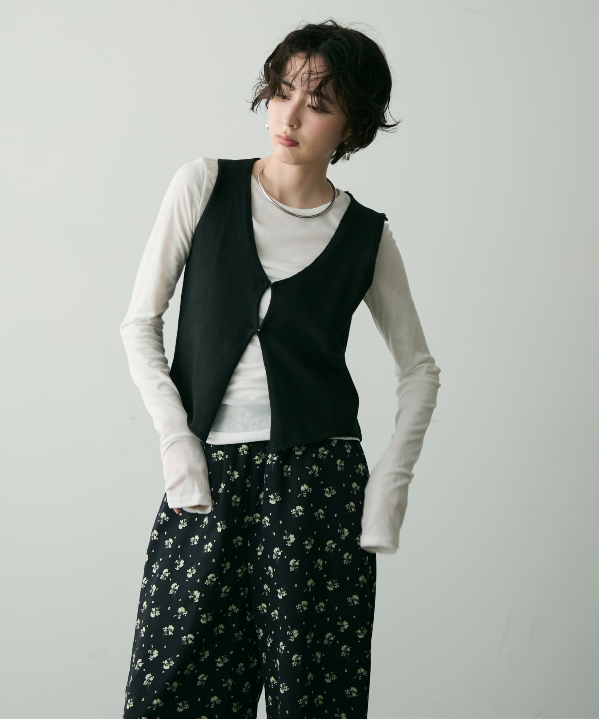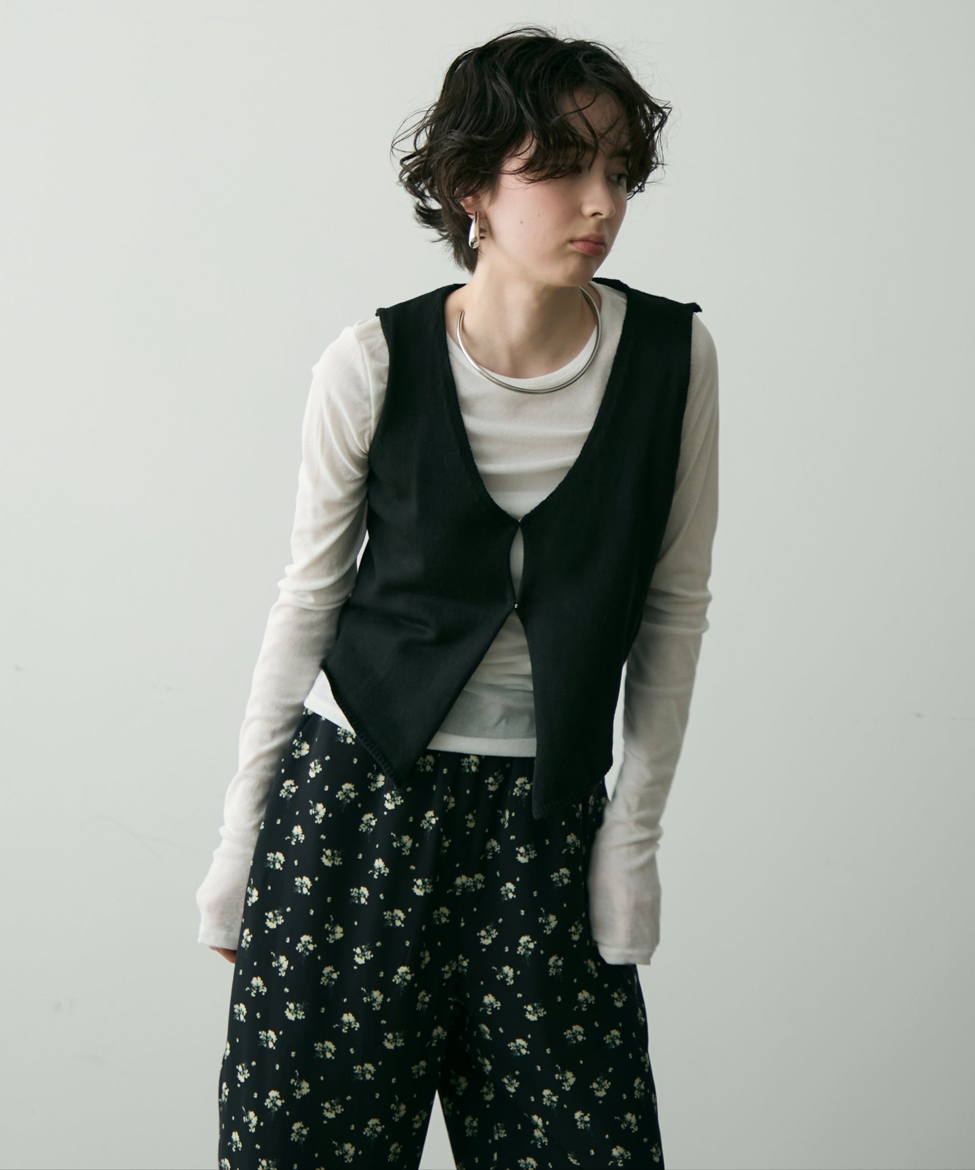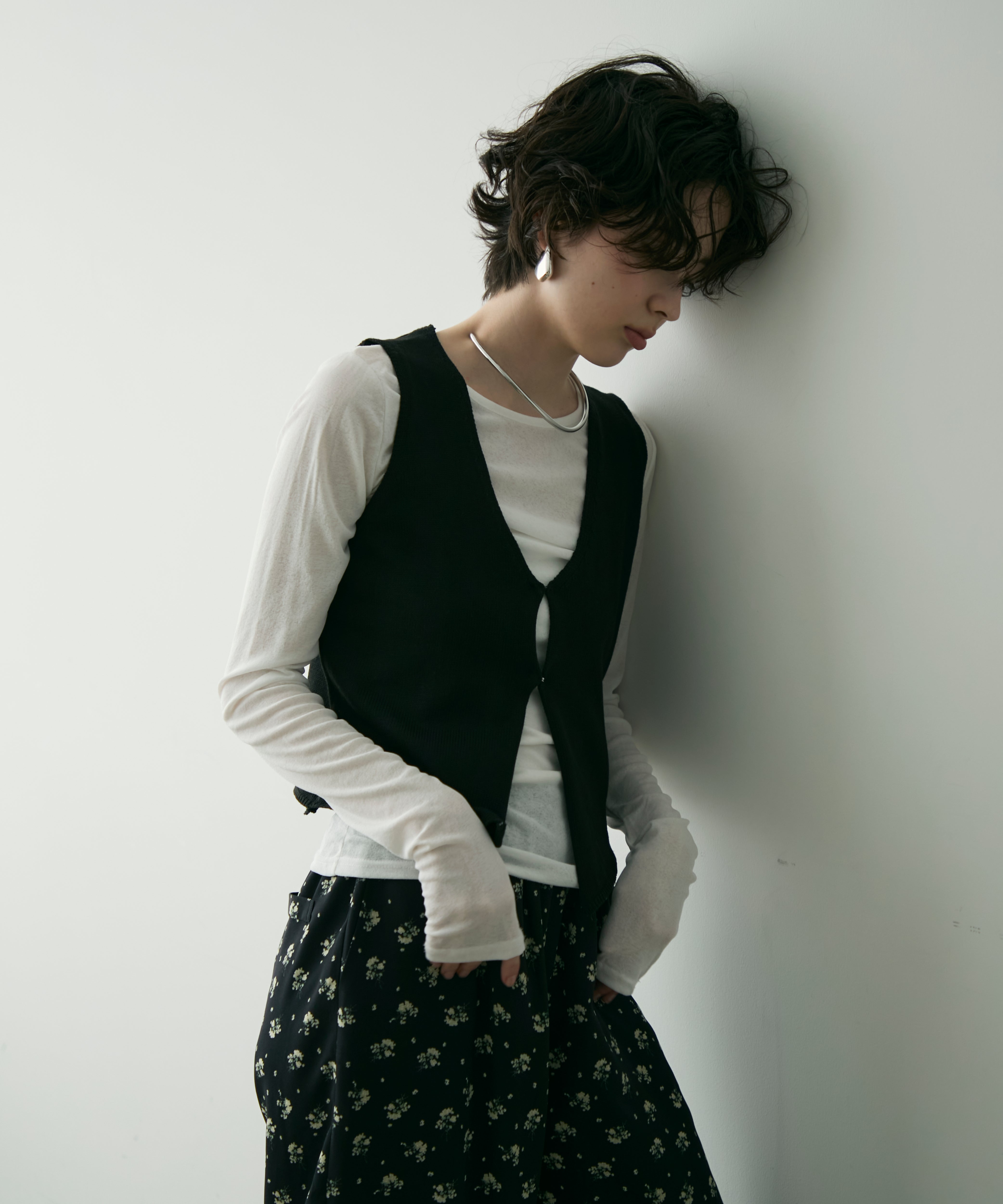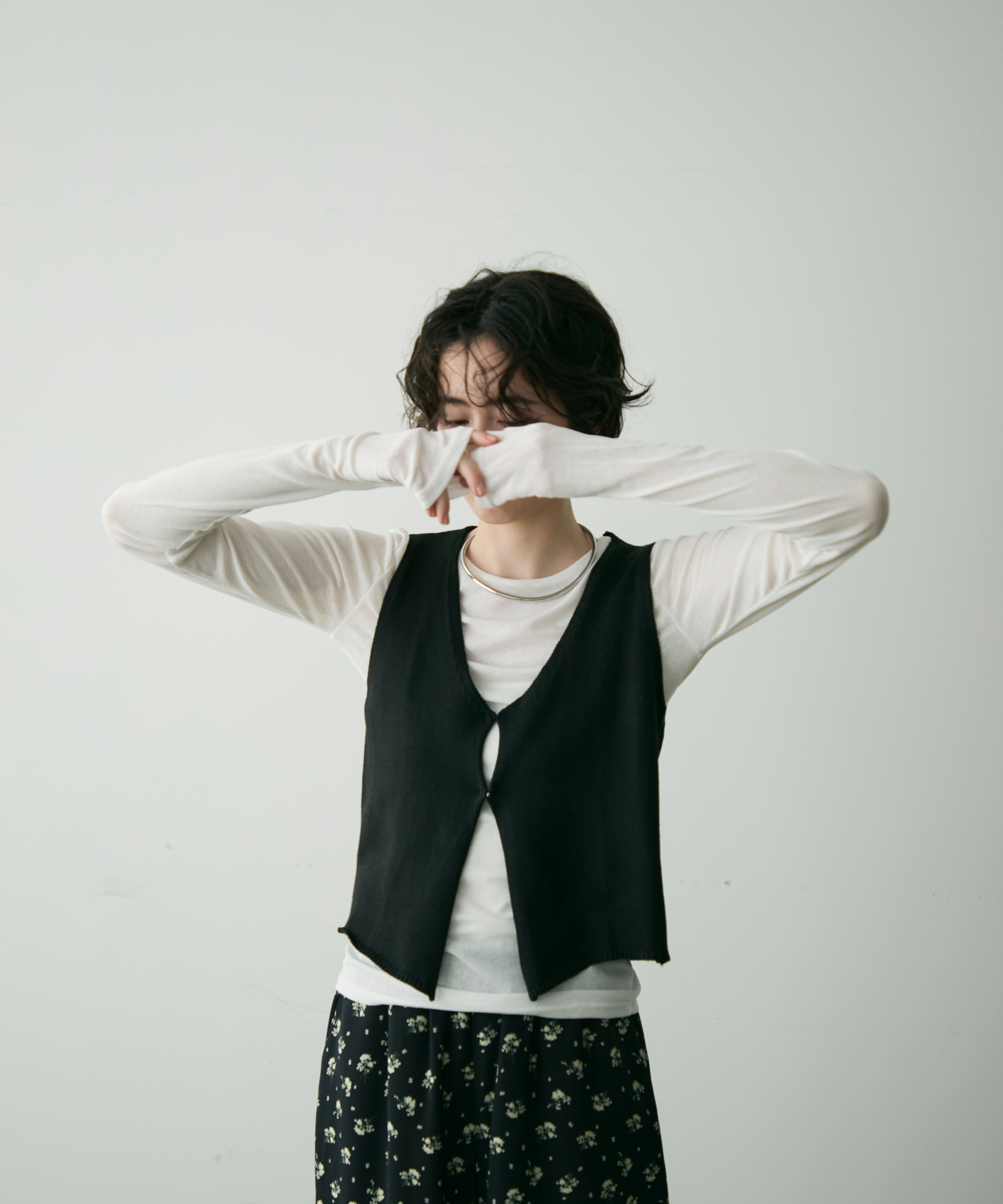 ノースリーブで涼しげな印象で着用いただくのはもちろんのこと、TシャツとレイヤードしてもOK。
