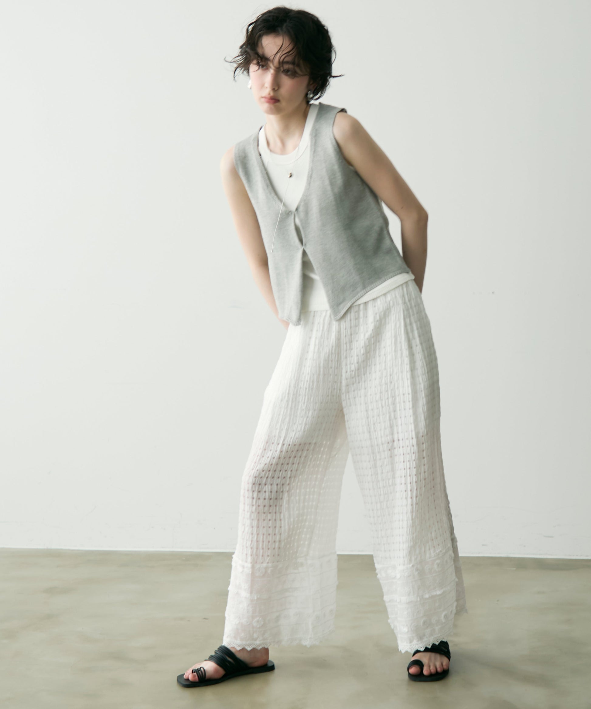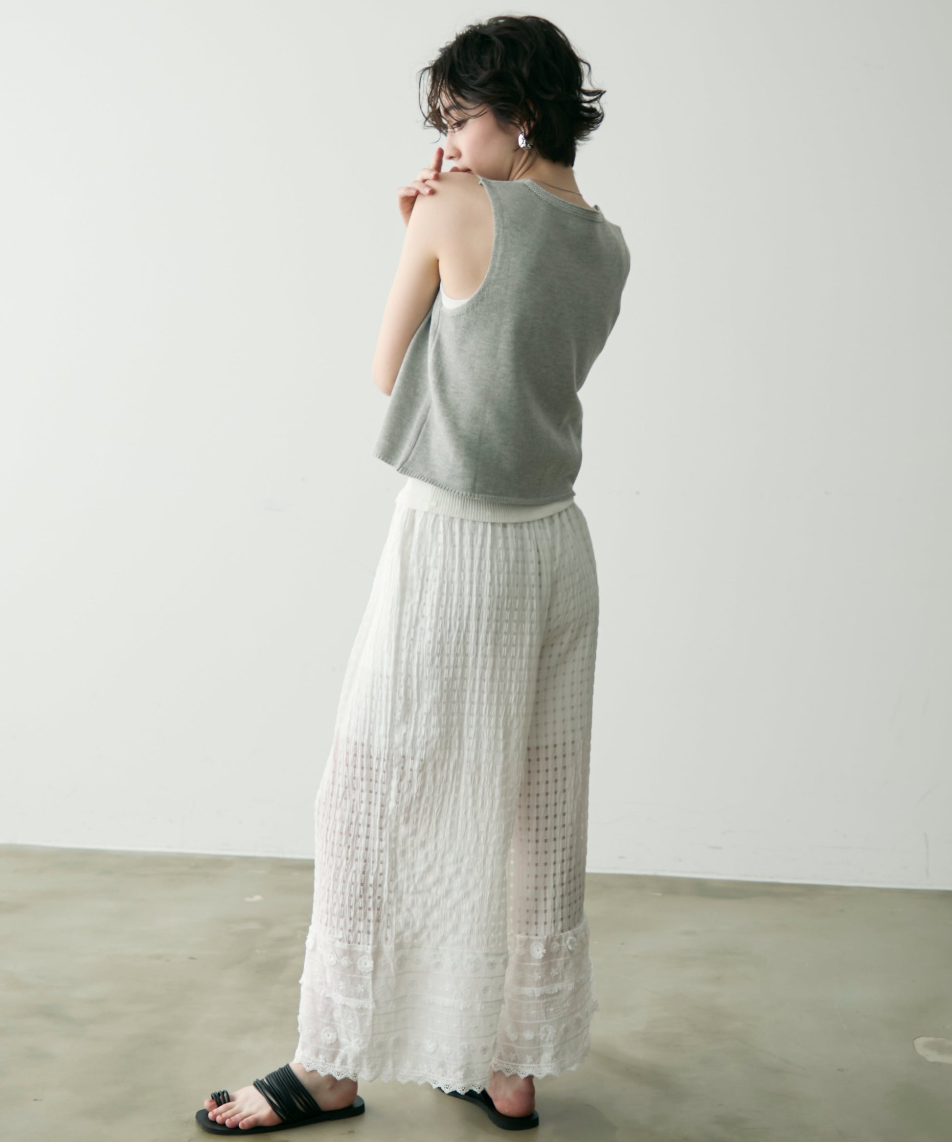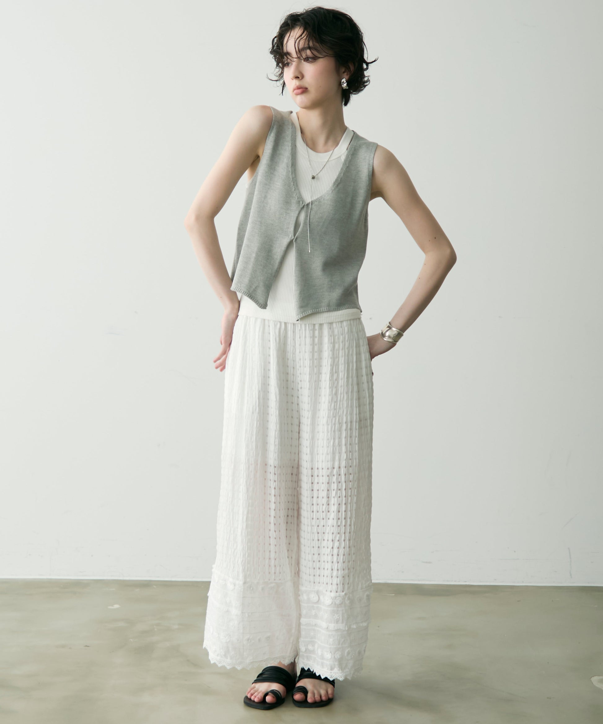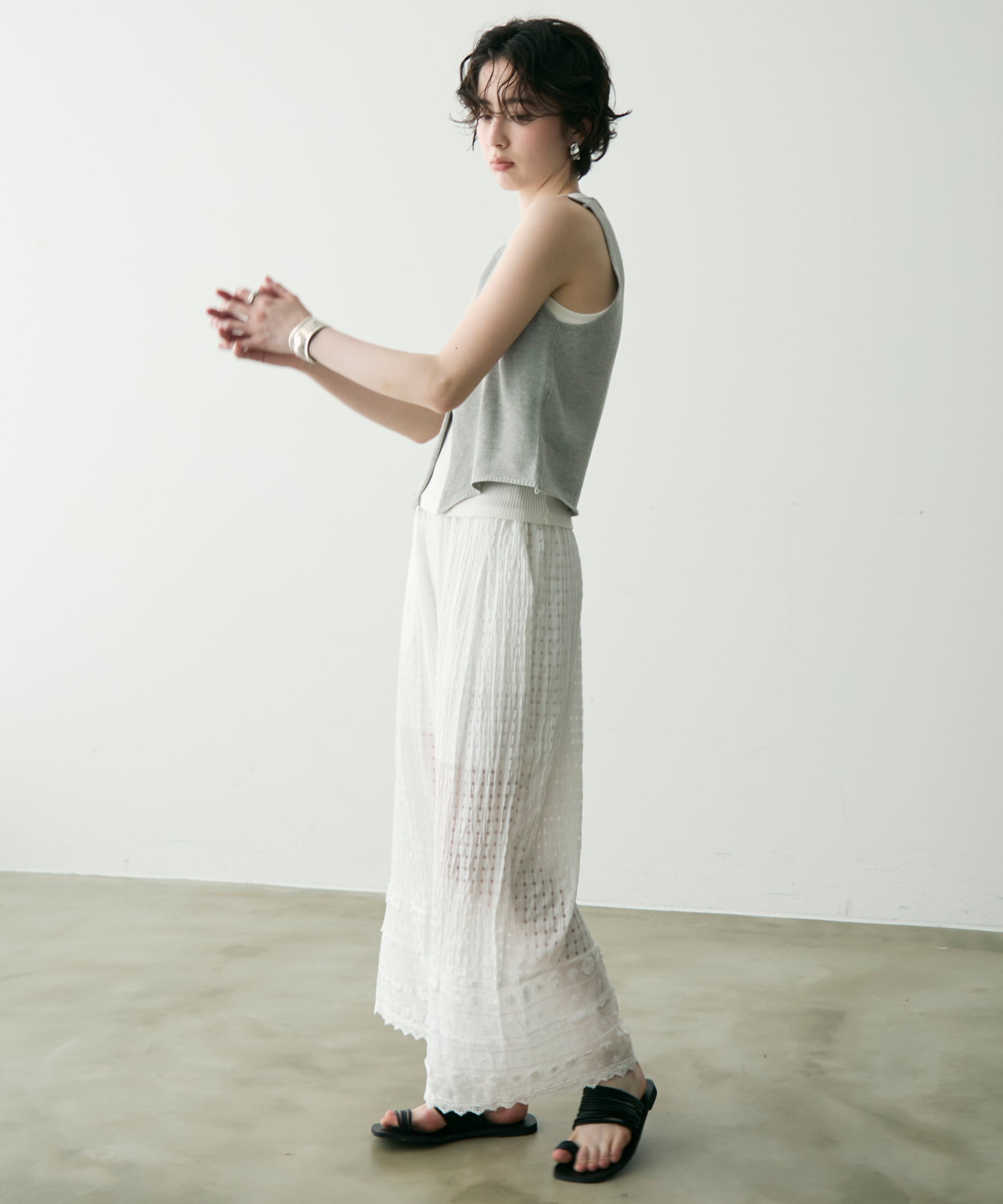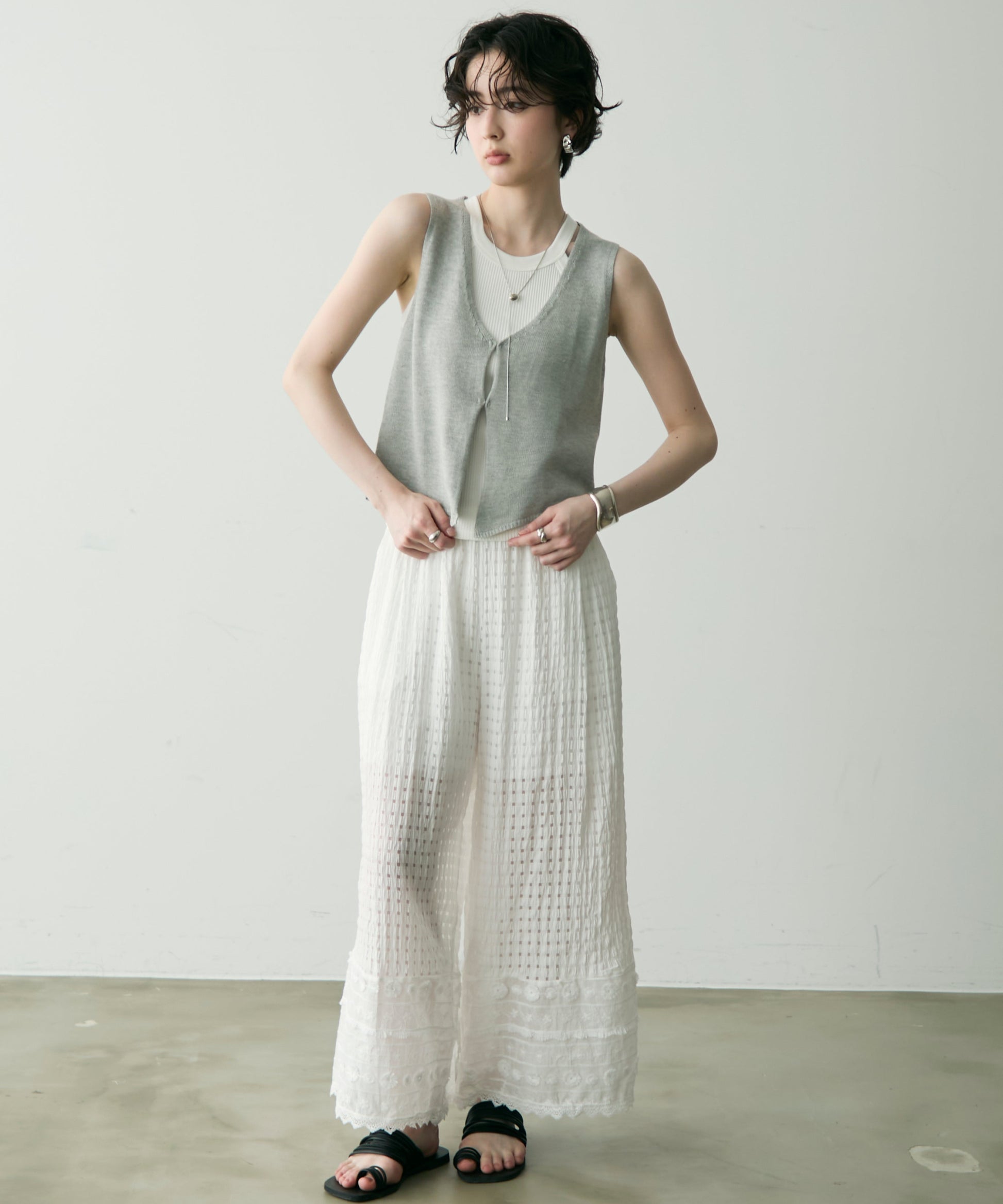 ノースリーブで涼しげな印象で着用いただくのはもちろんのこと、TシャツとレイヤードしてもOK。