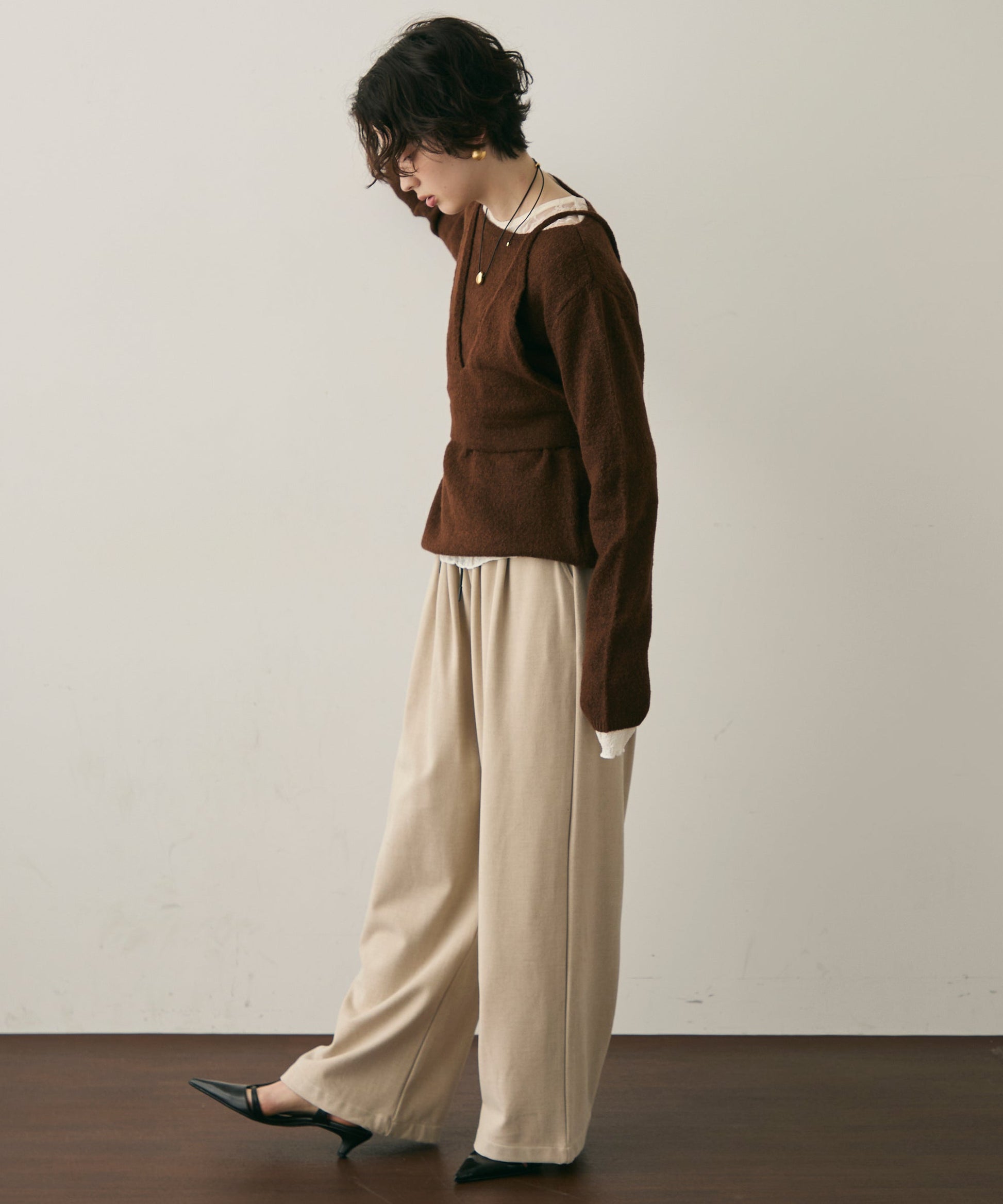 シンプルながらも計算されたレイヤードデザインで、1枚でこなれた着こなしが完成します。
