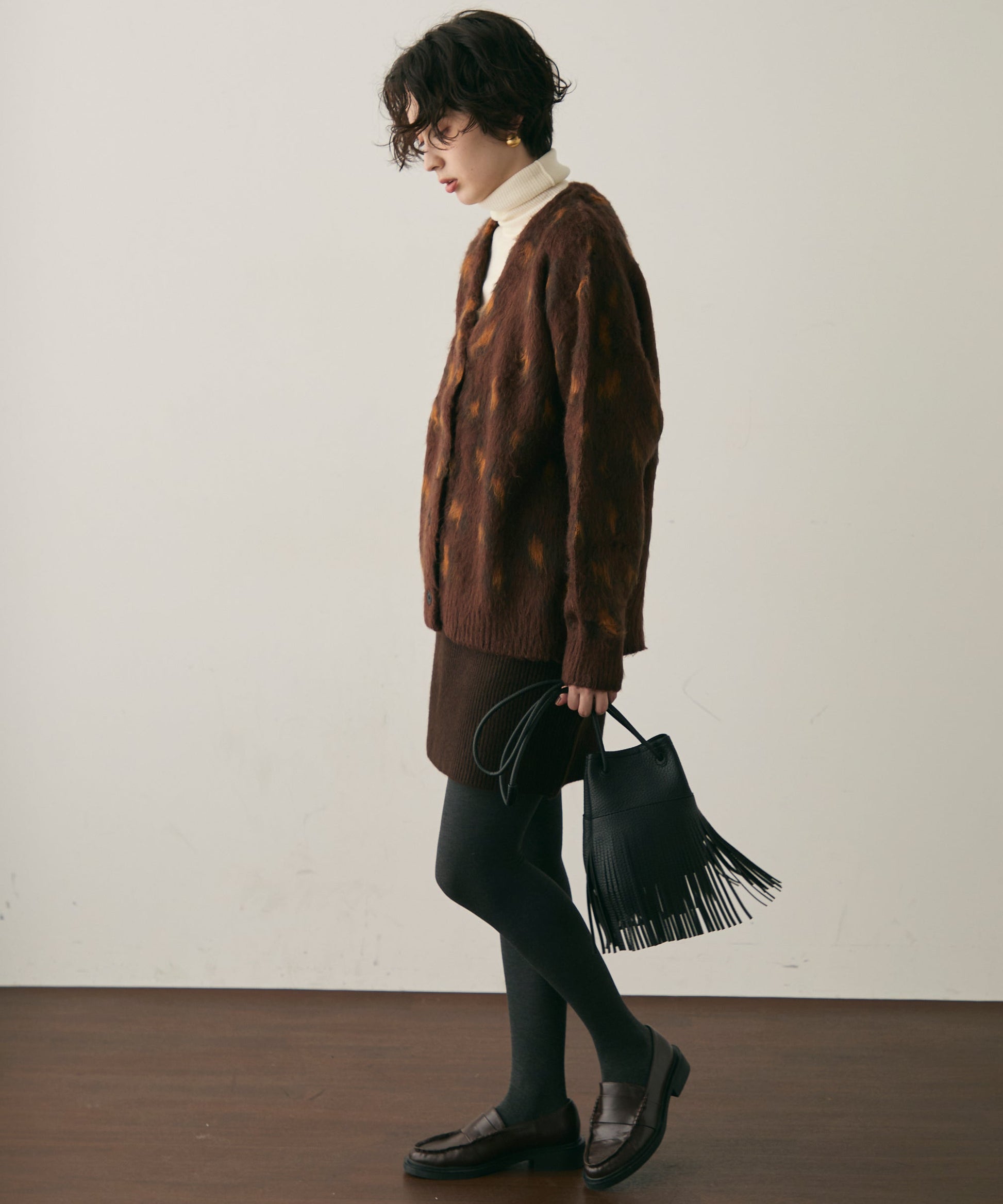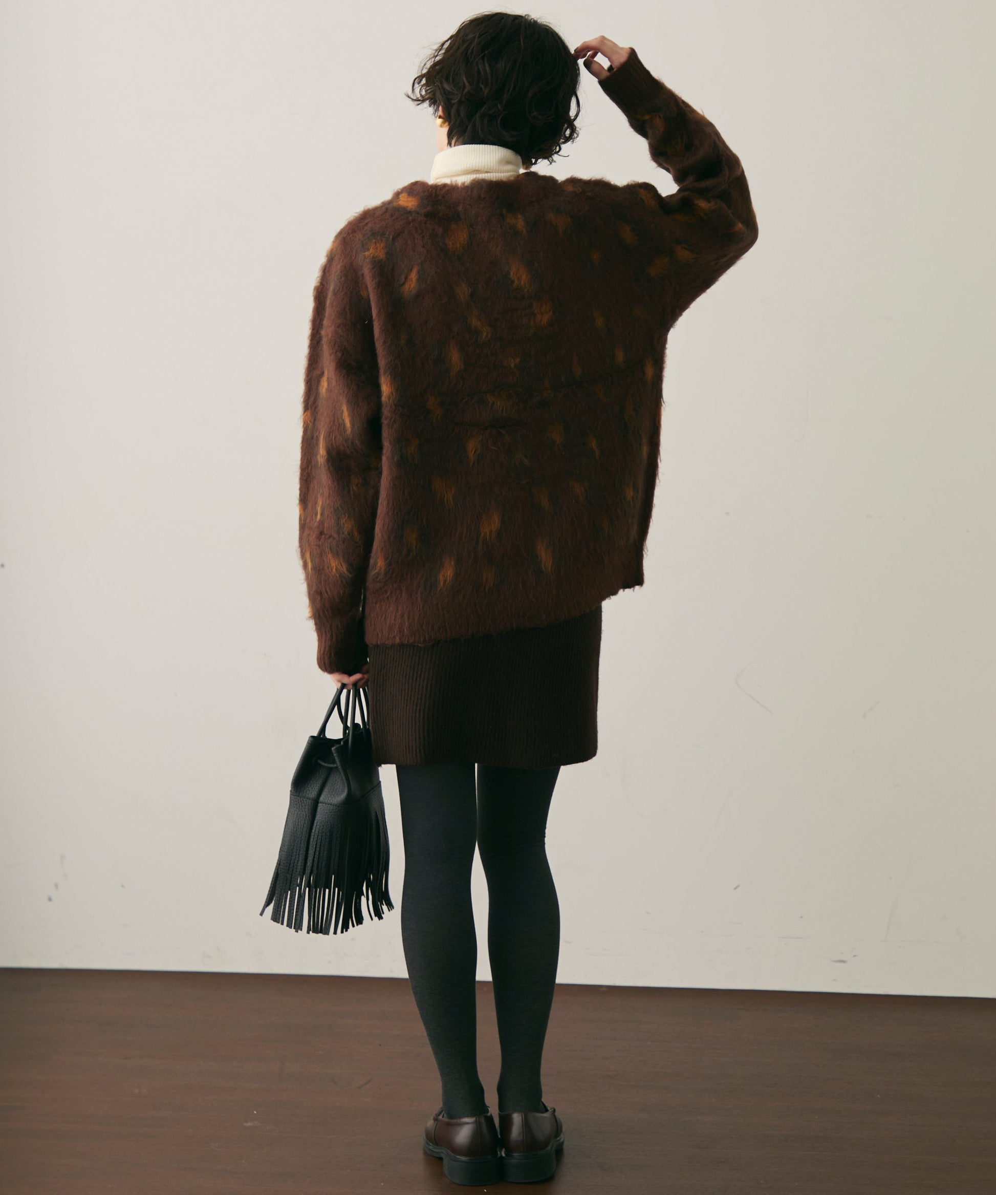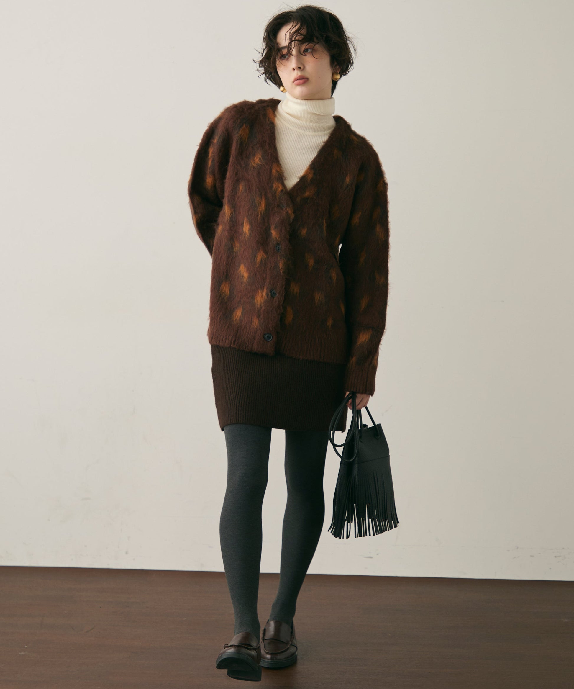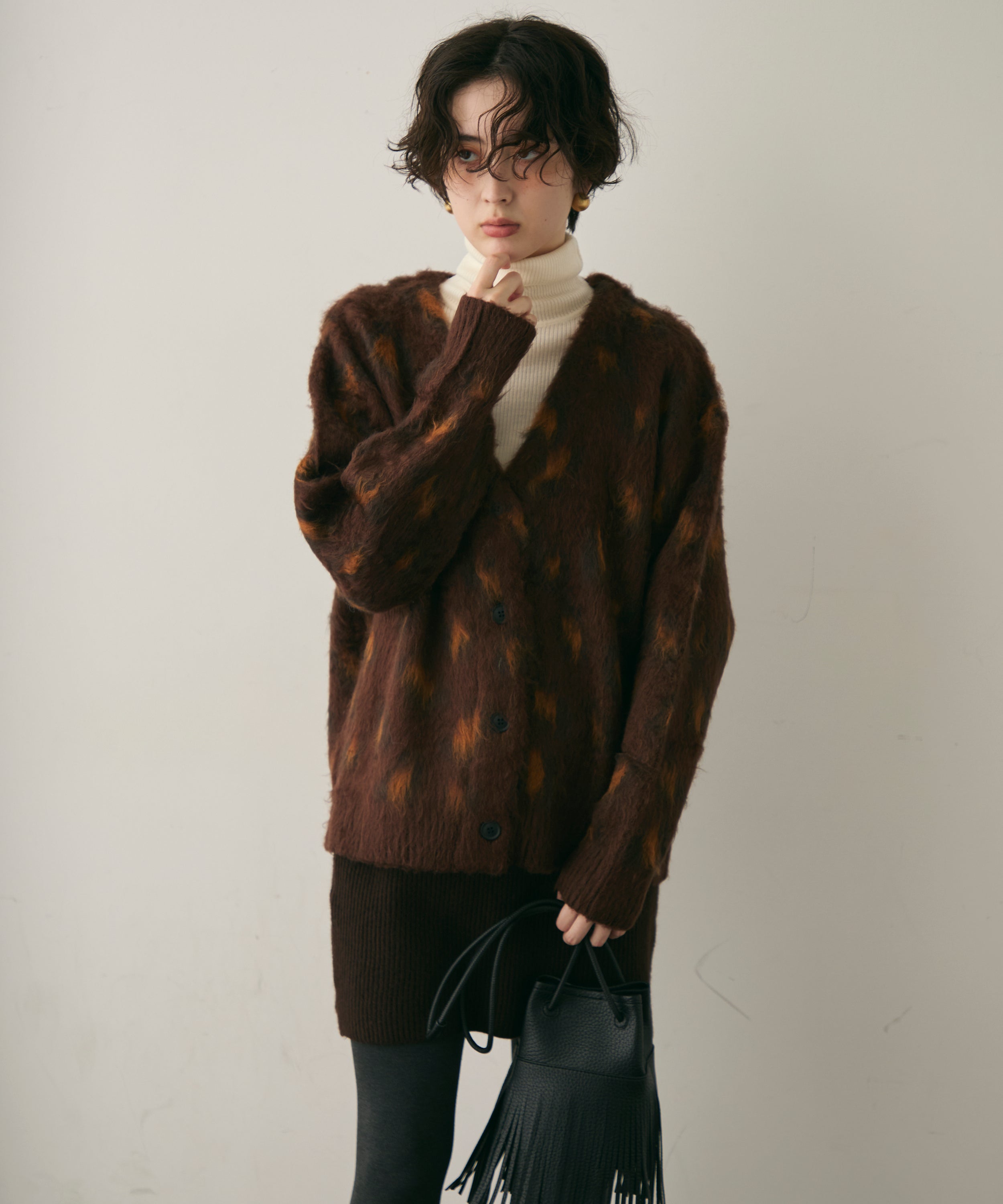 ふんわりとしたモヘアタッチ素材が魅力のレオパード柄カーディガン。