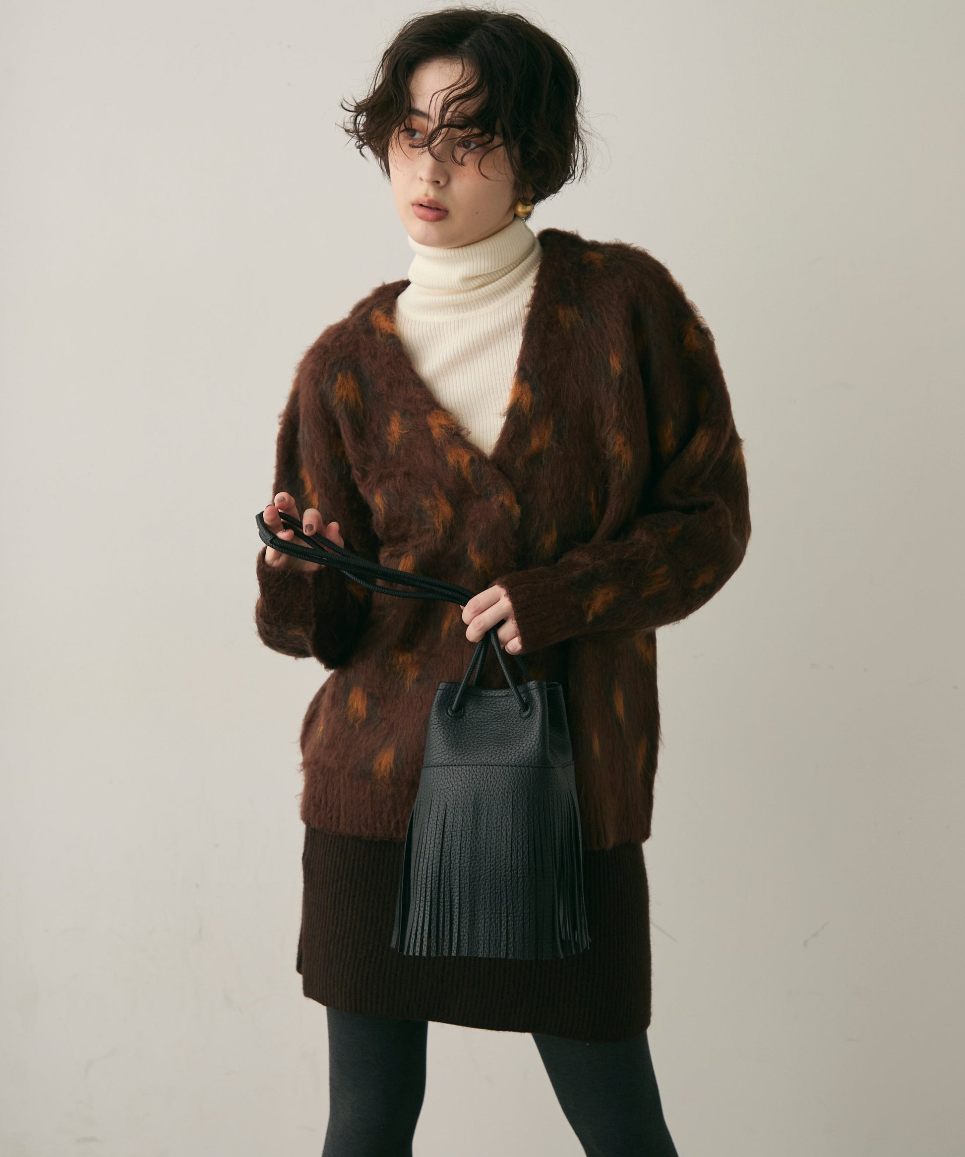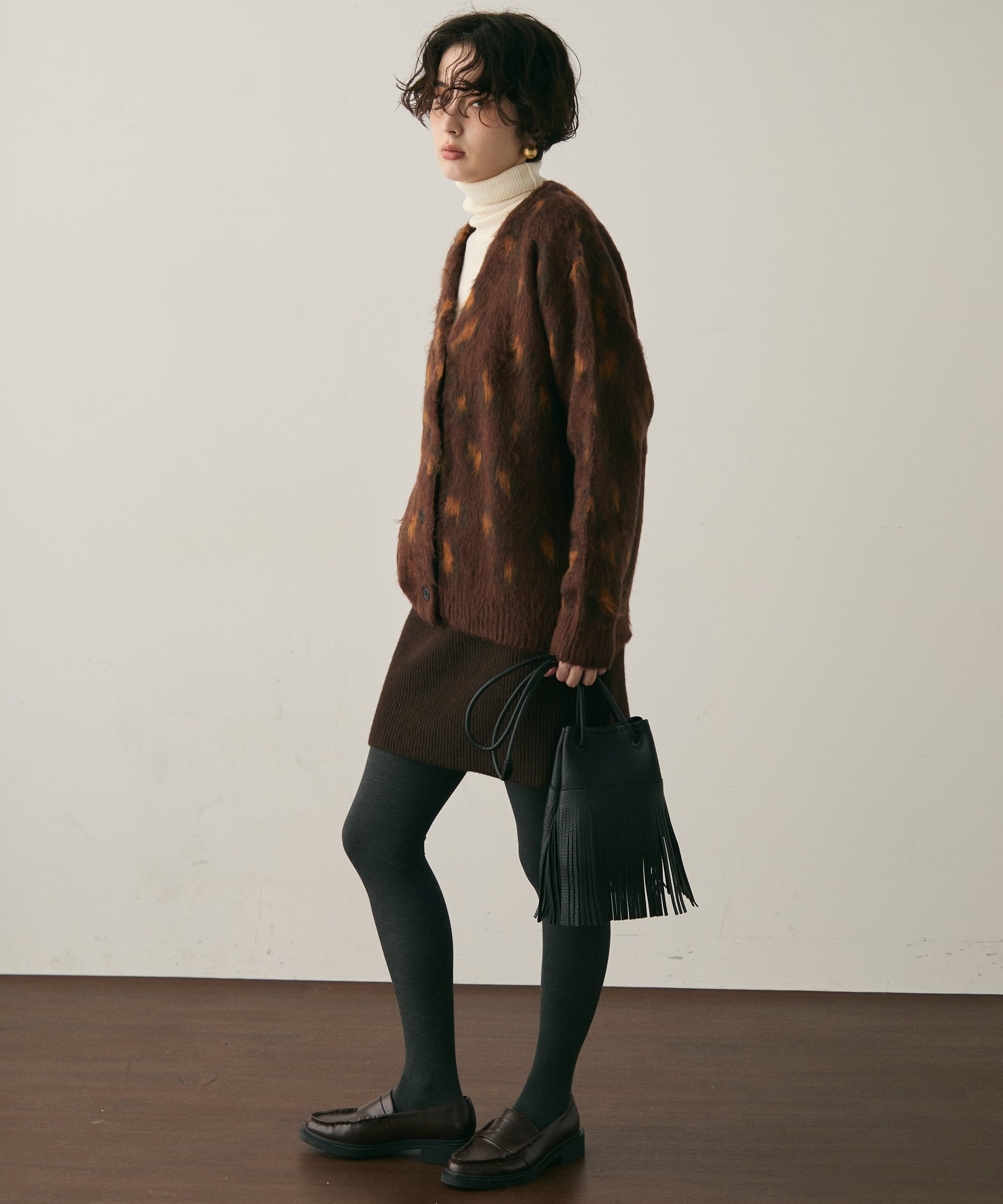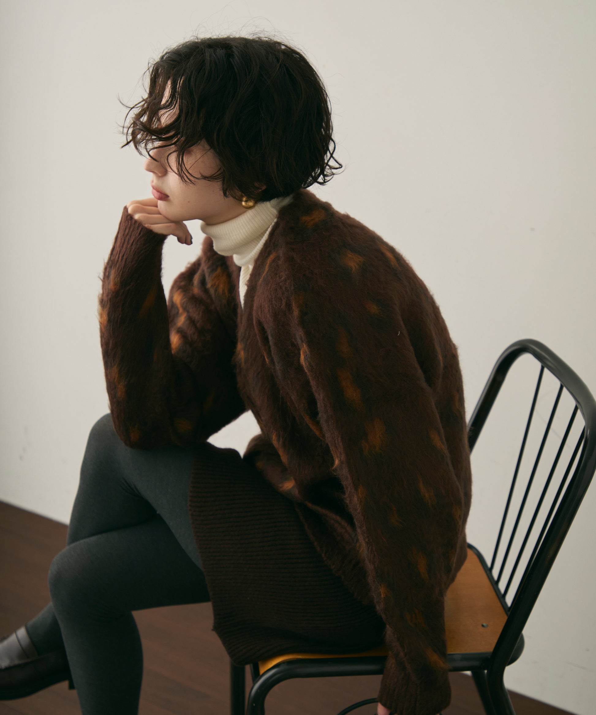 ふんわりとしたモヘアタッチ素材が魅力のレオパード柄カーディガン。