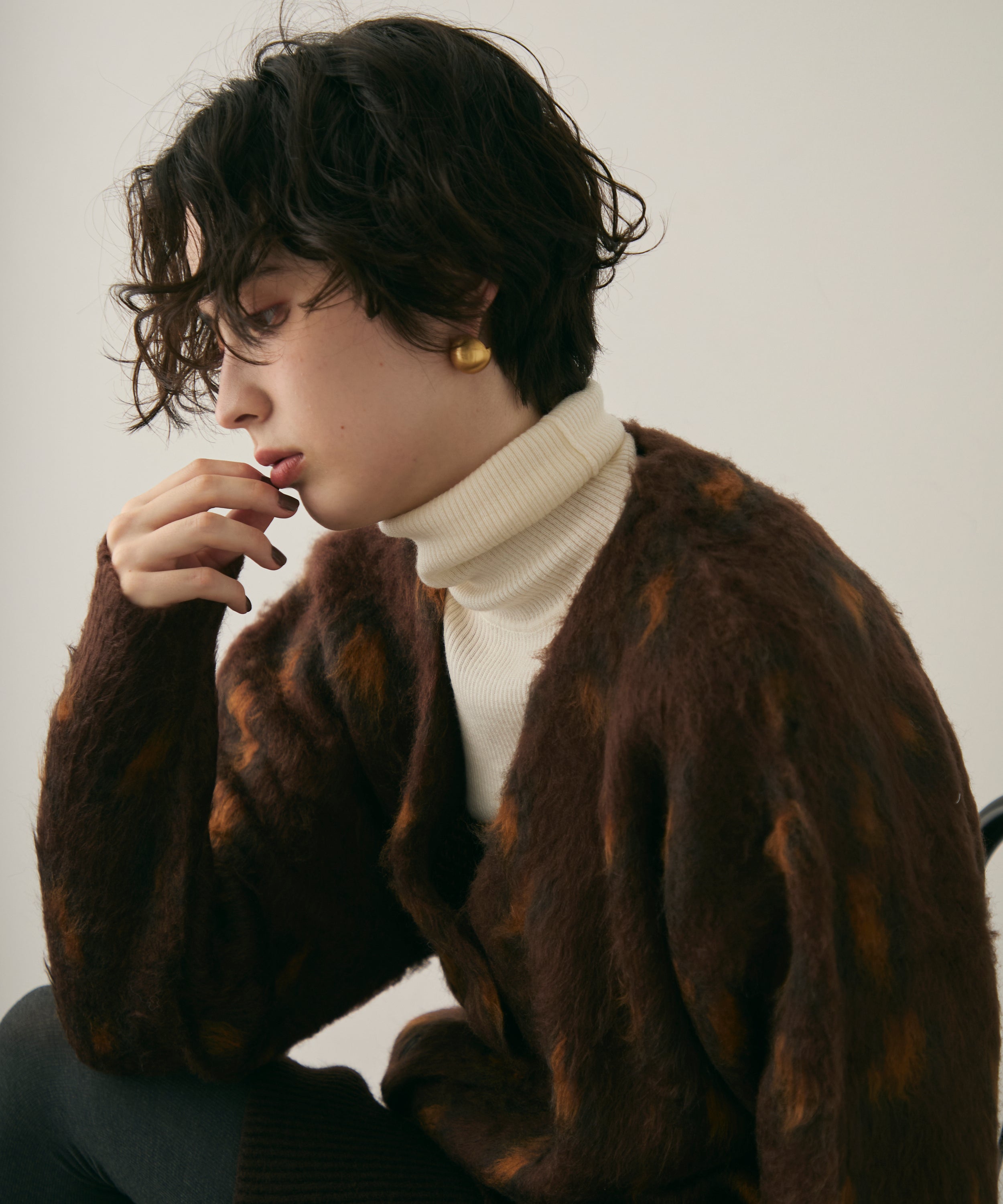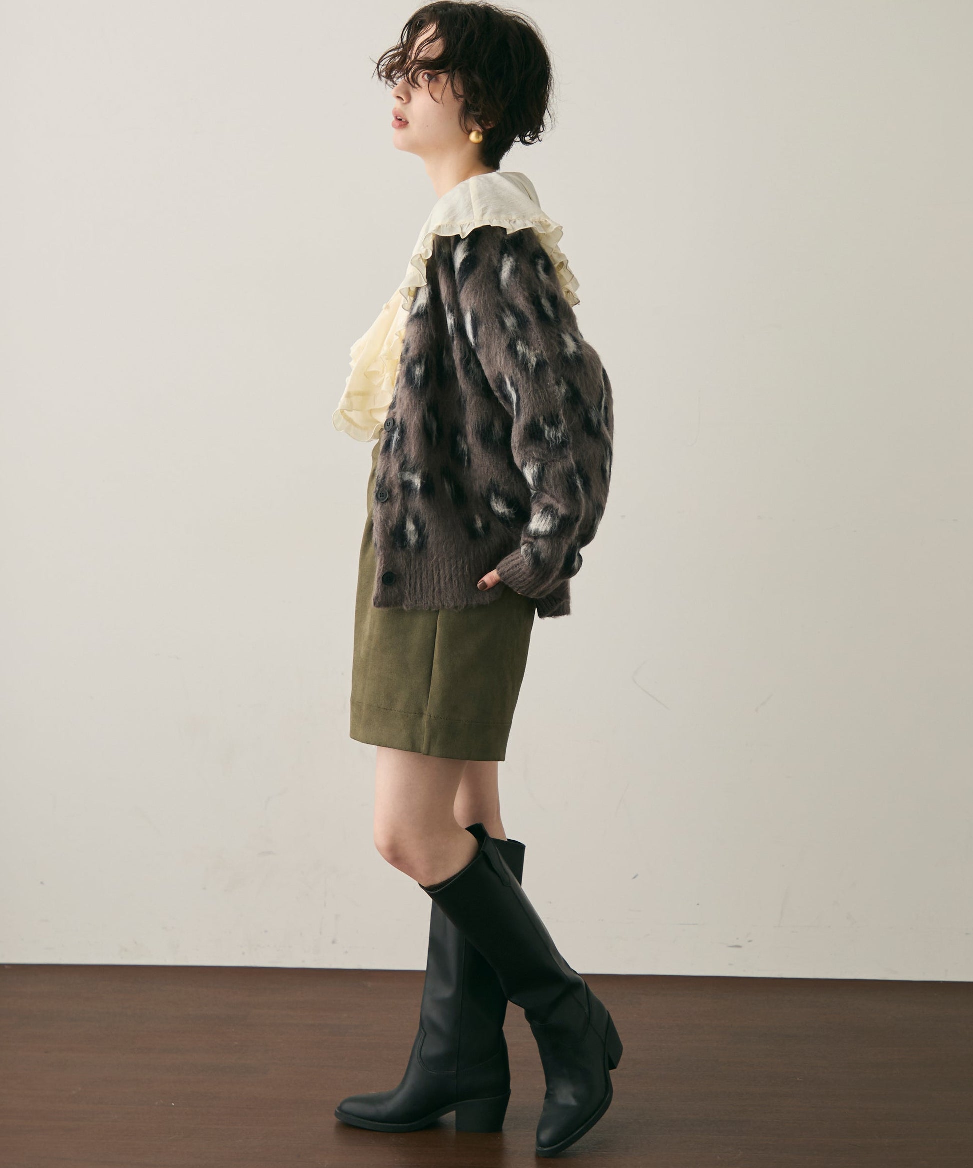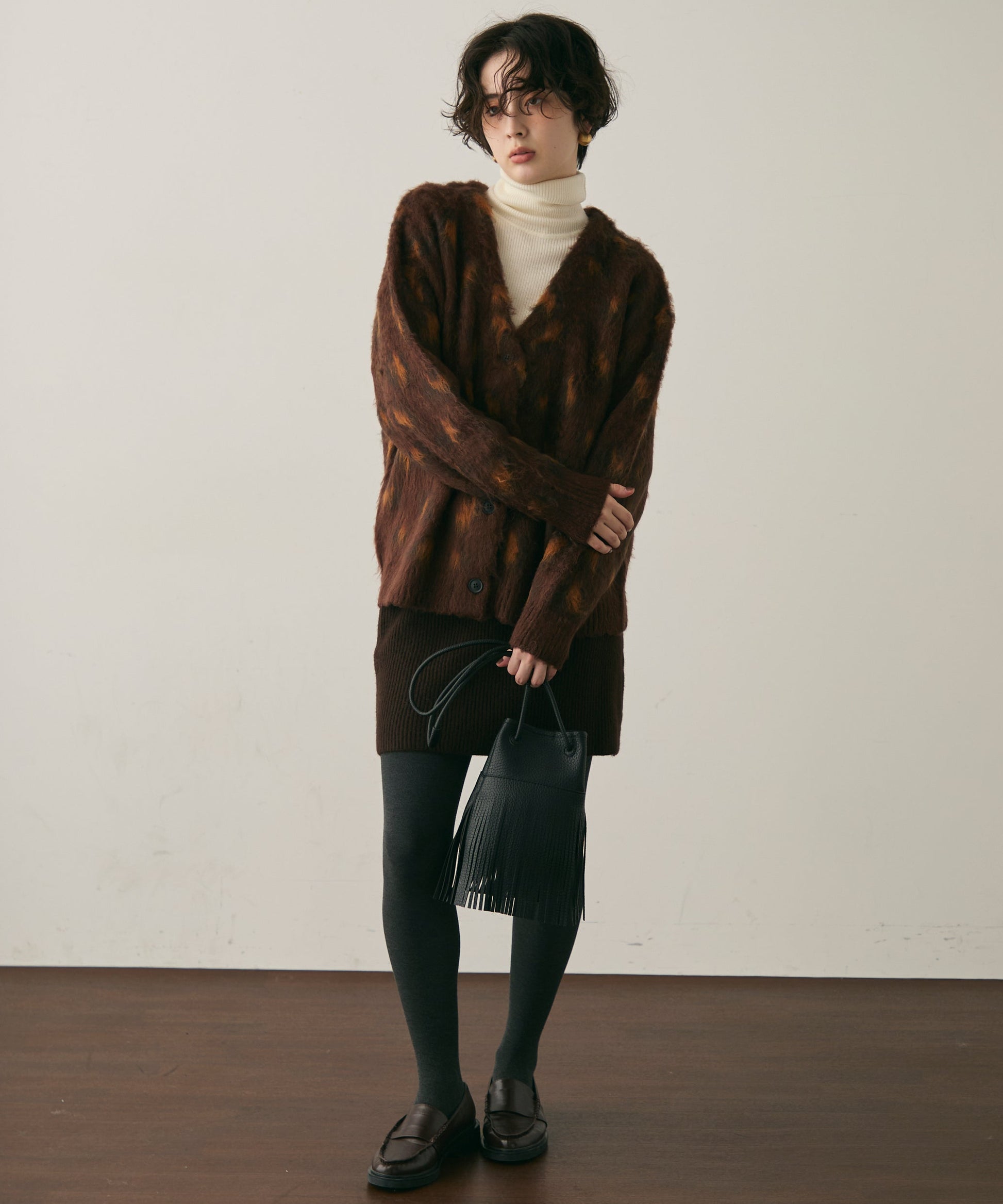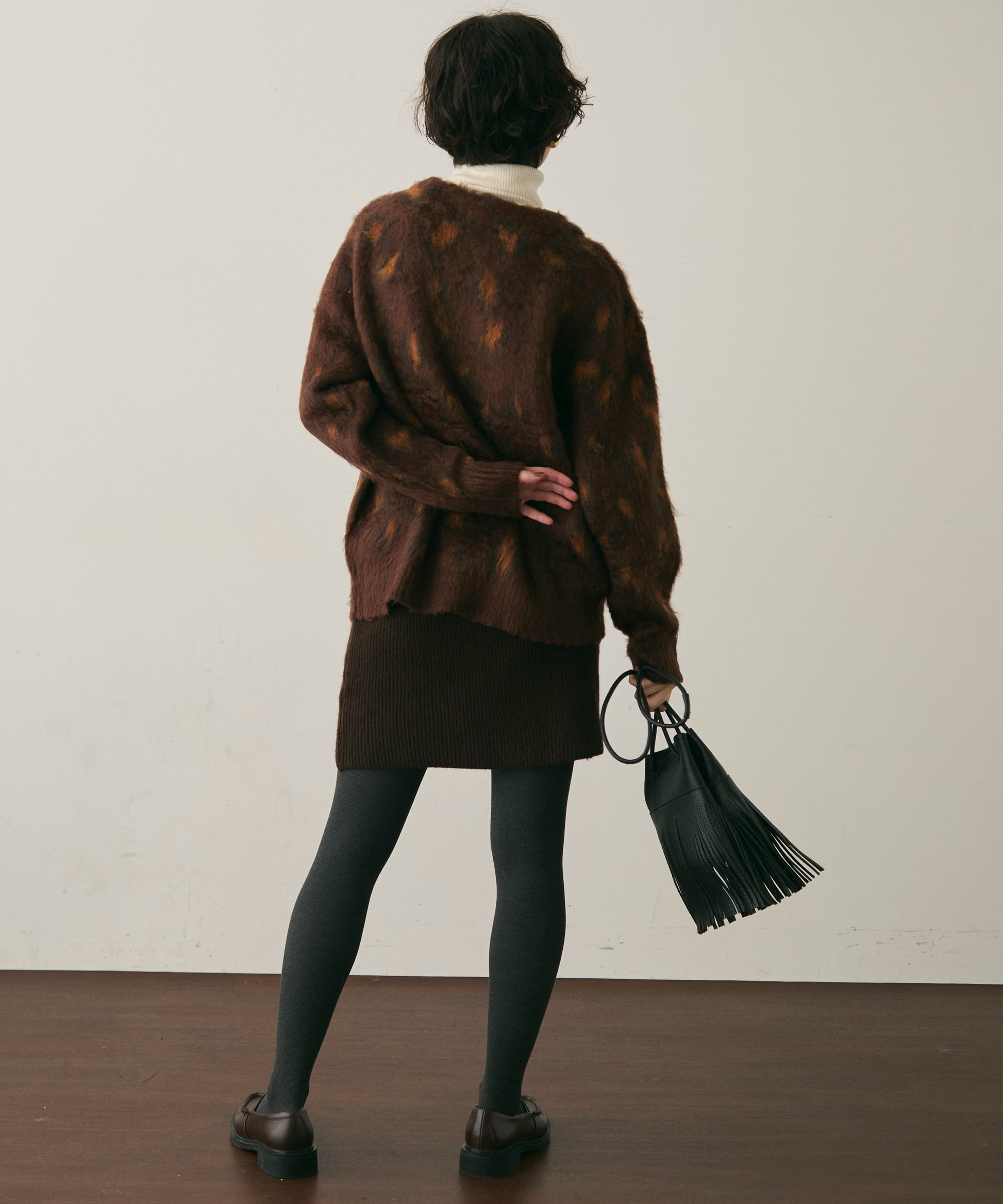 ふんわりとしたモヘアタッチ素材が魅力のレオパード柄カーディガン。