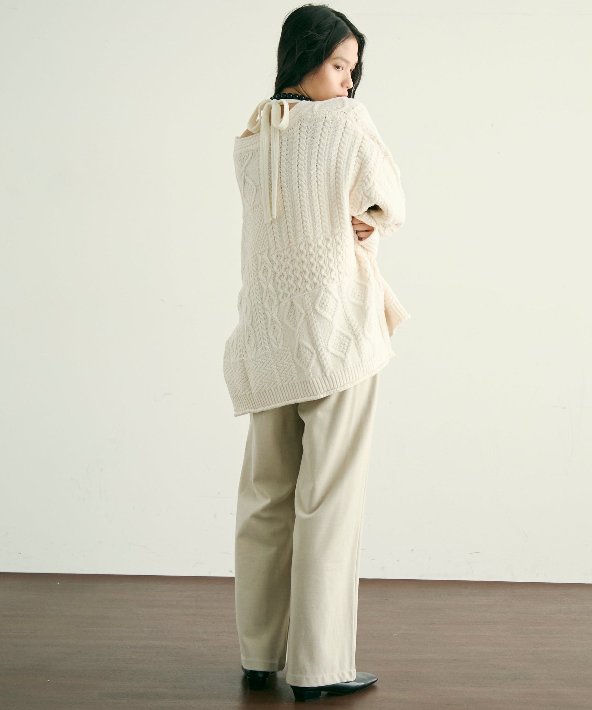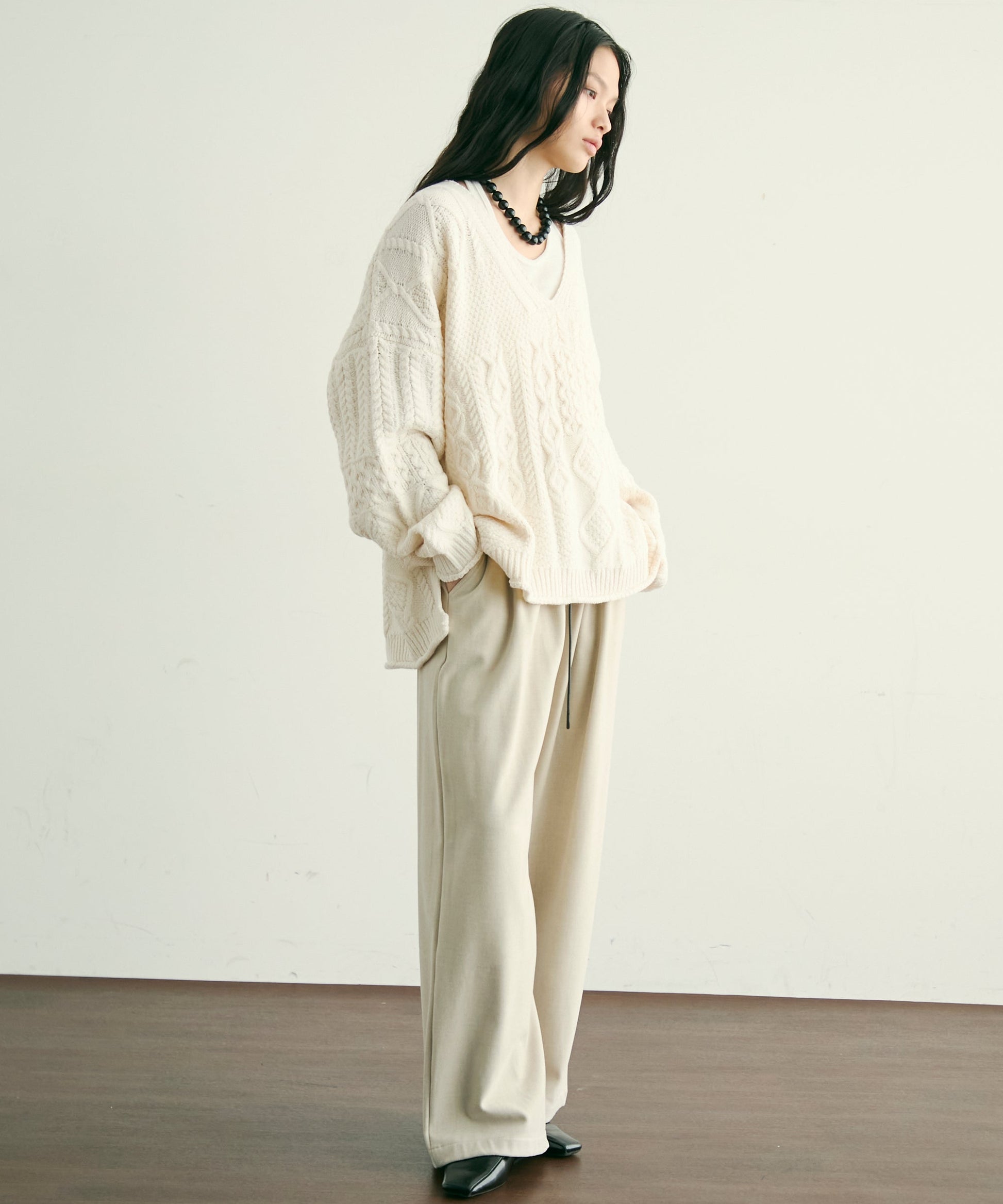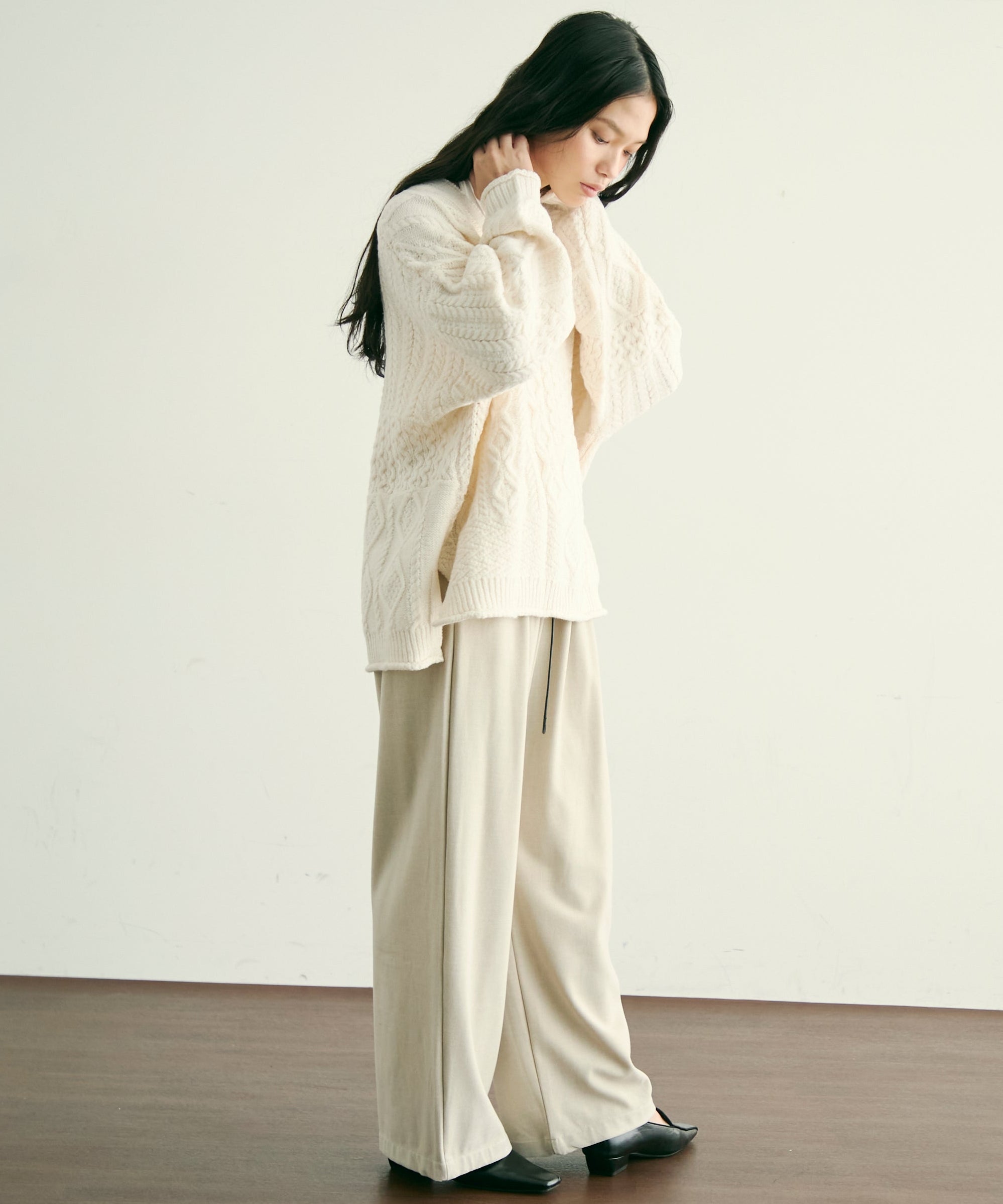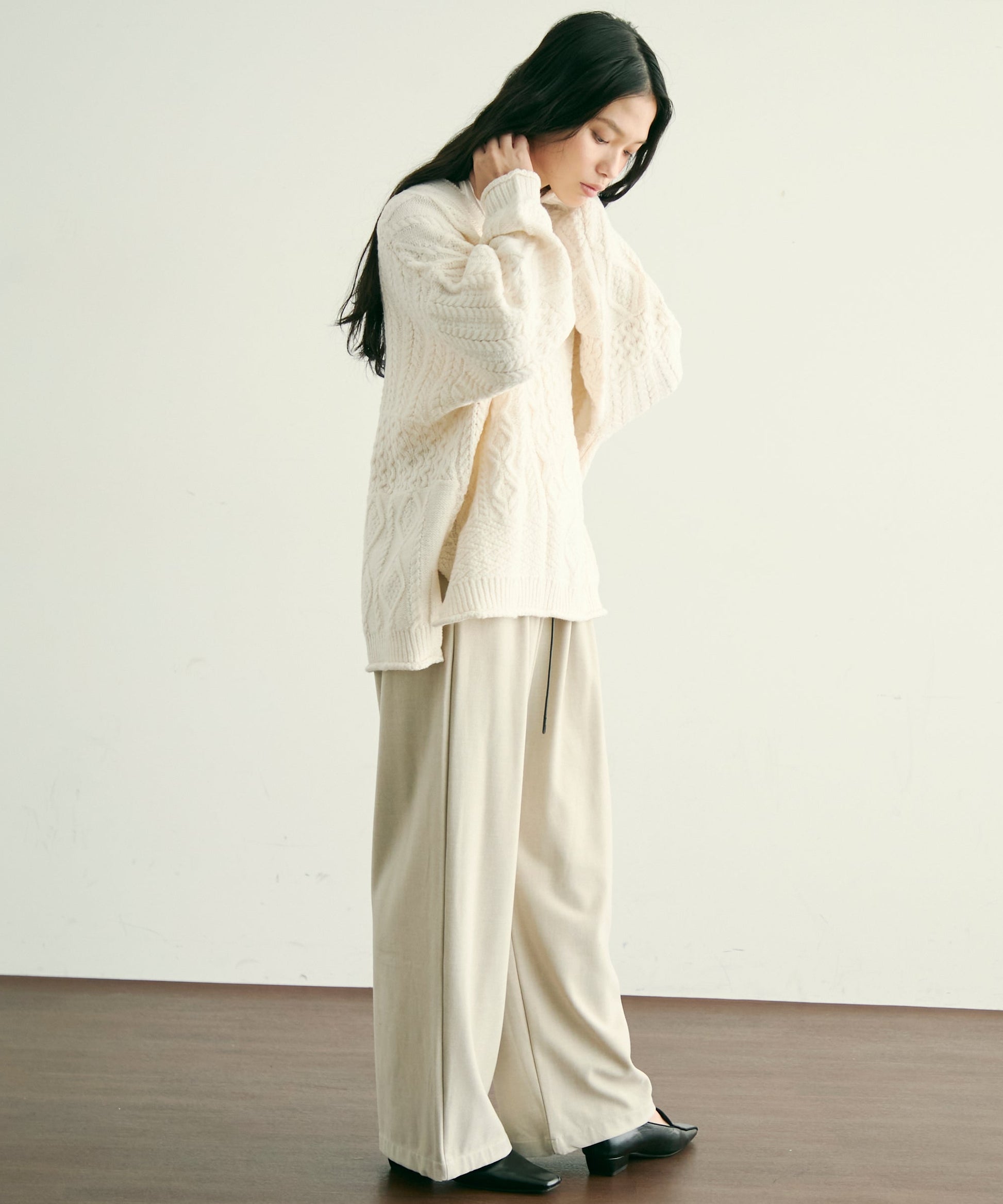立体感のある編地とゆったりシルエットで、リラックス感の中にもトレンド感を演出します。