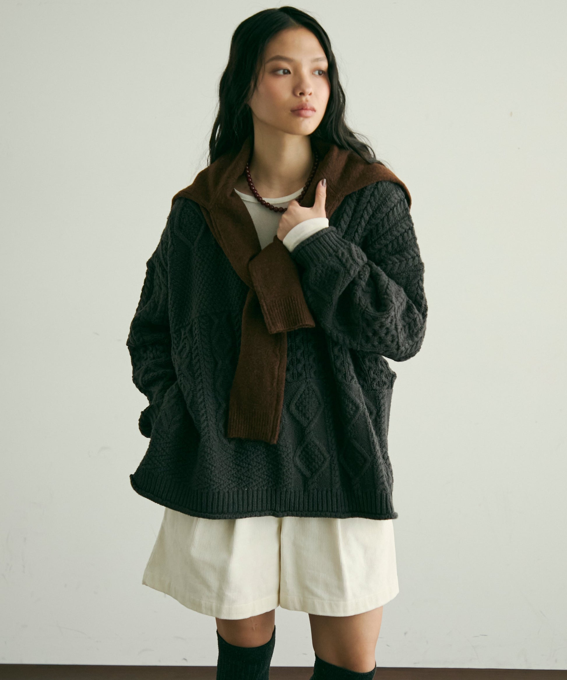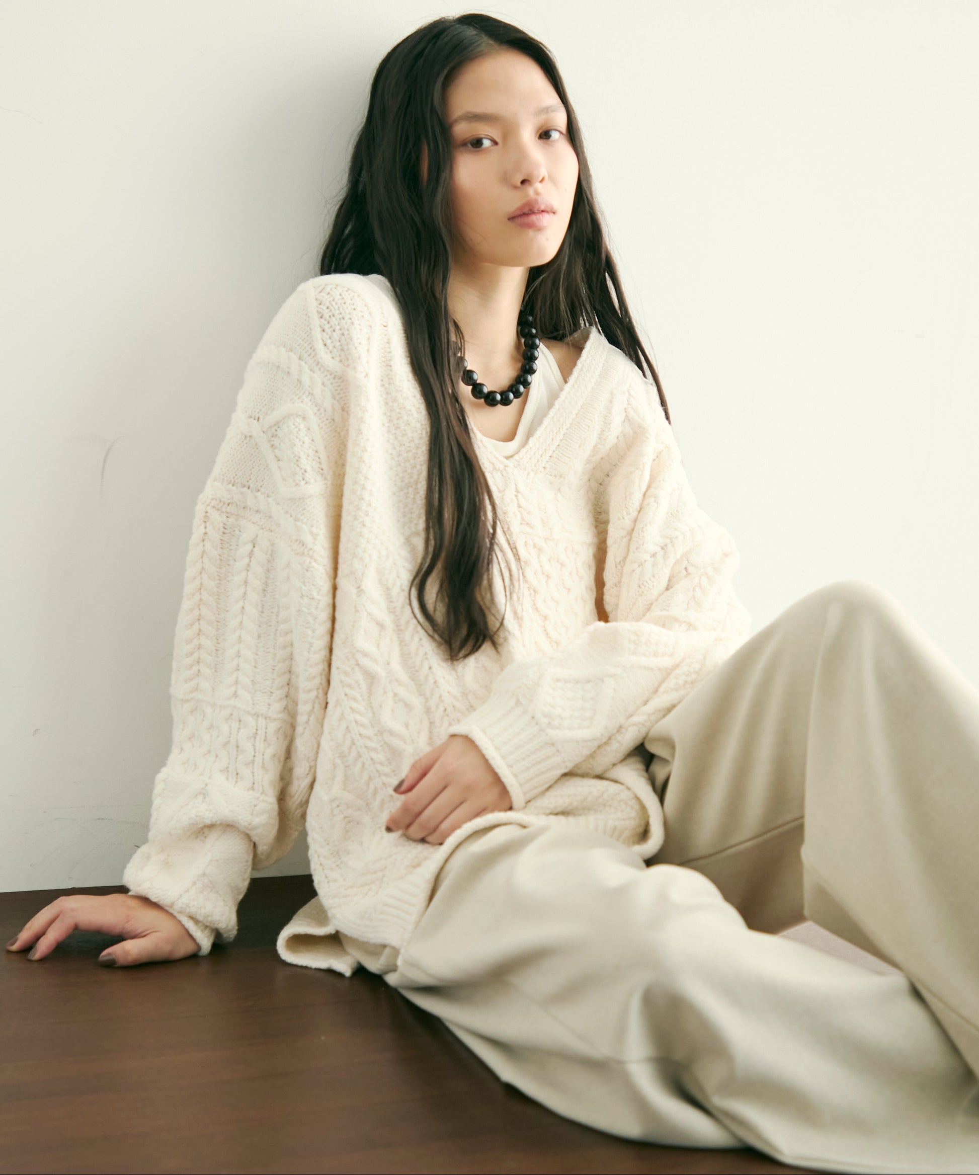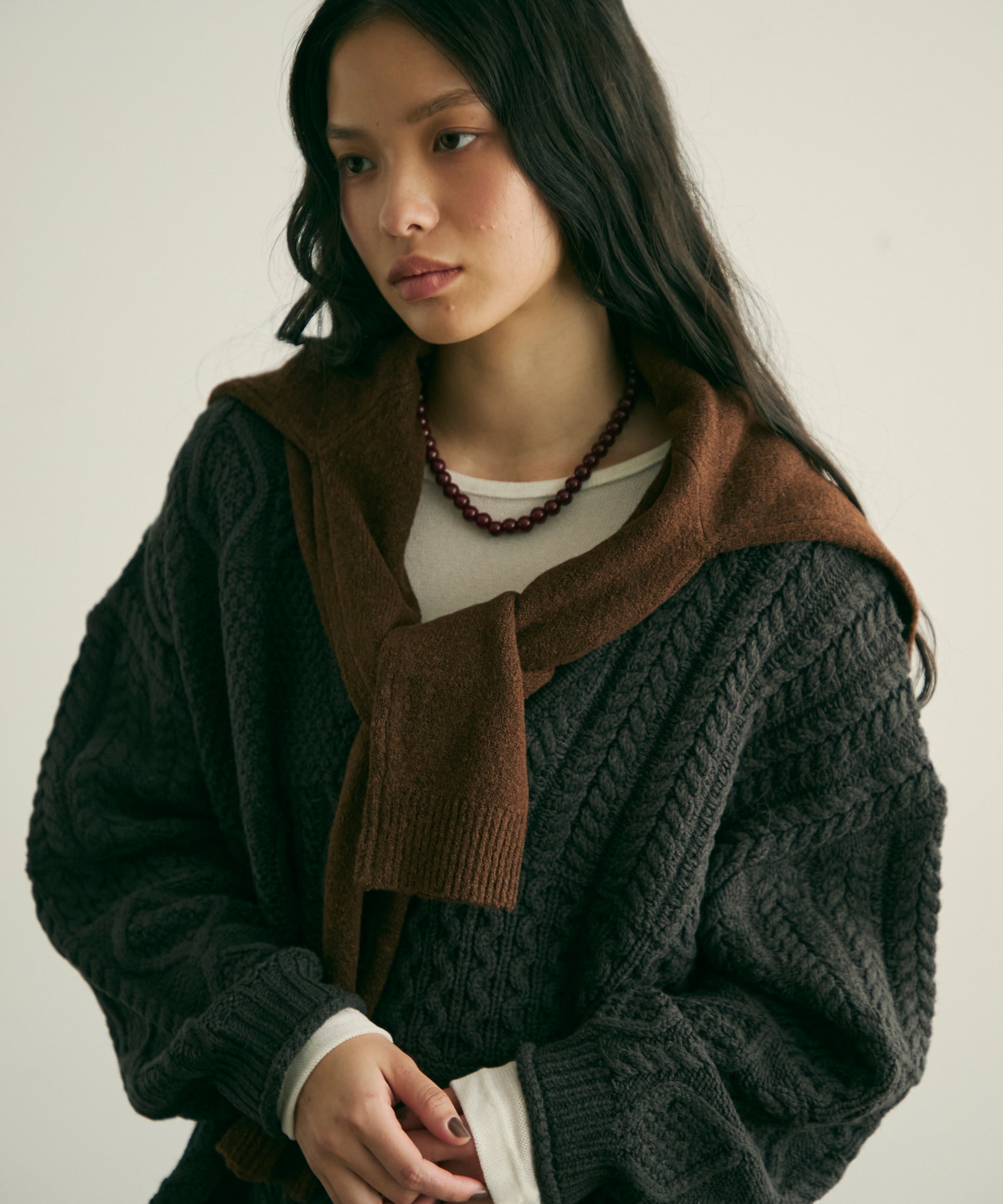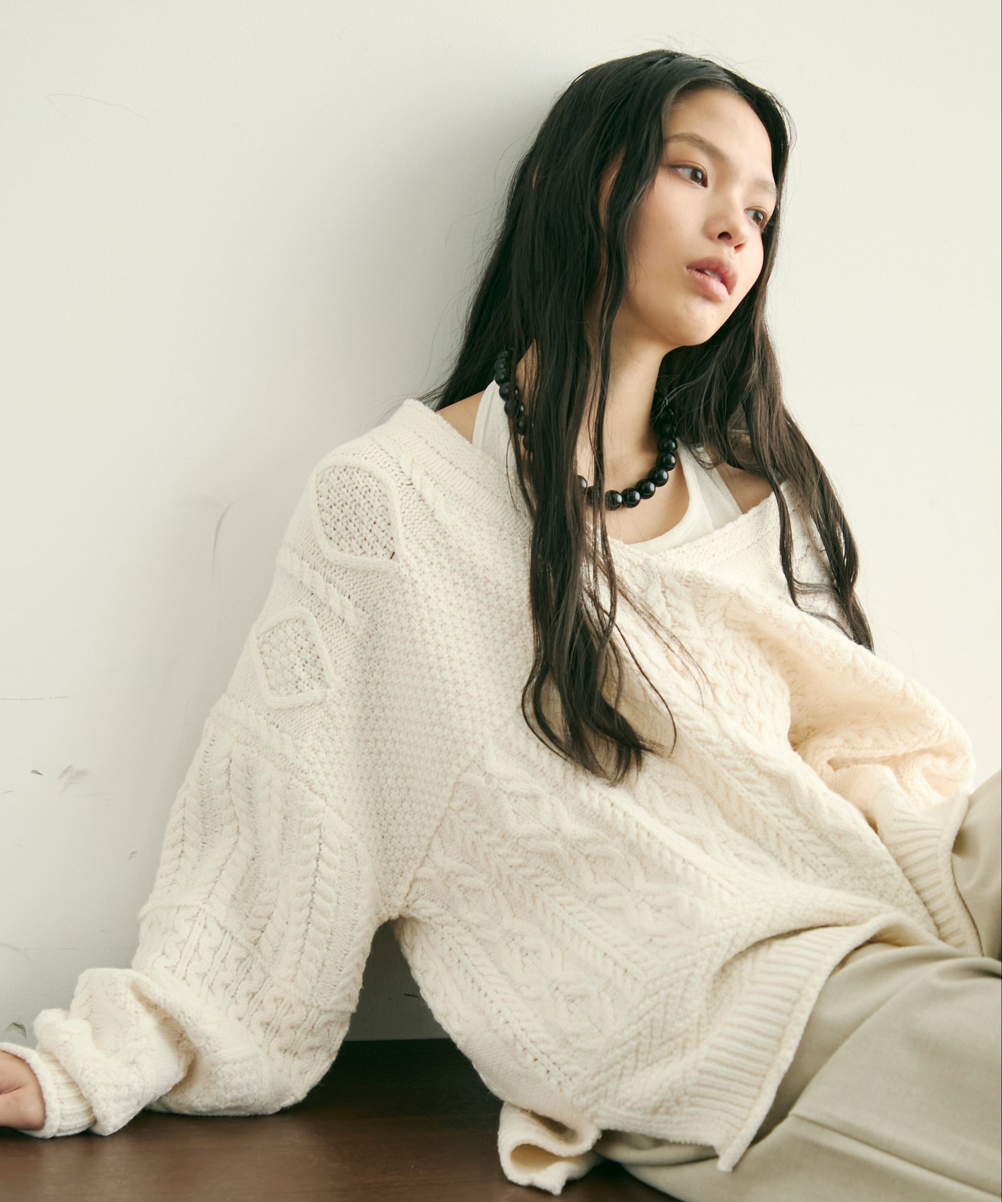 ざっくりとしたケーブル編みが魅力のバルキーニットプルオーバー。
