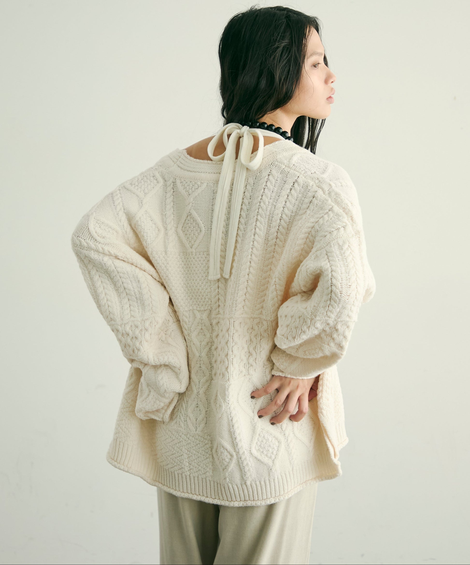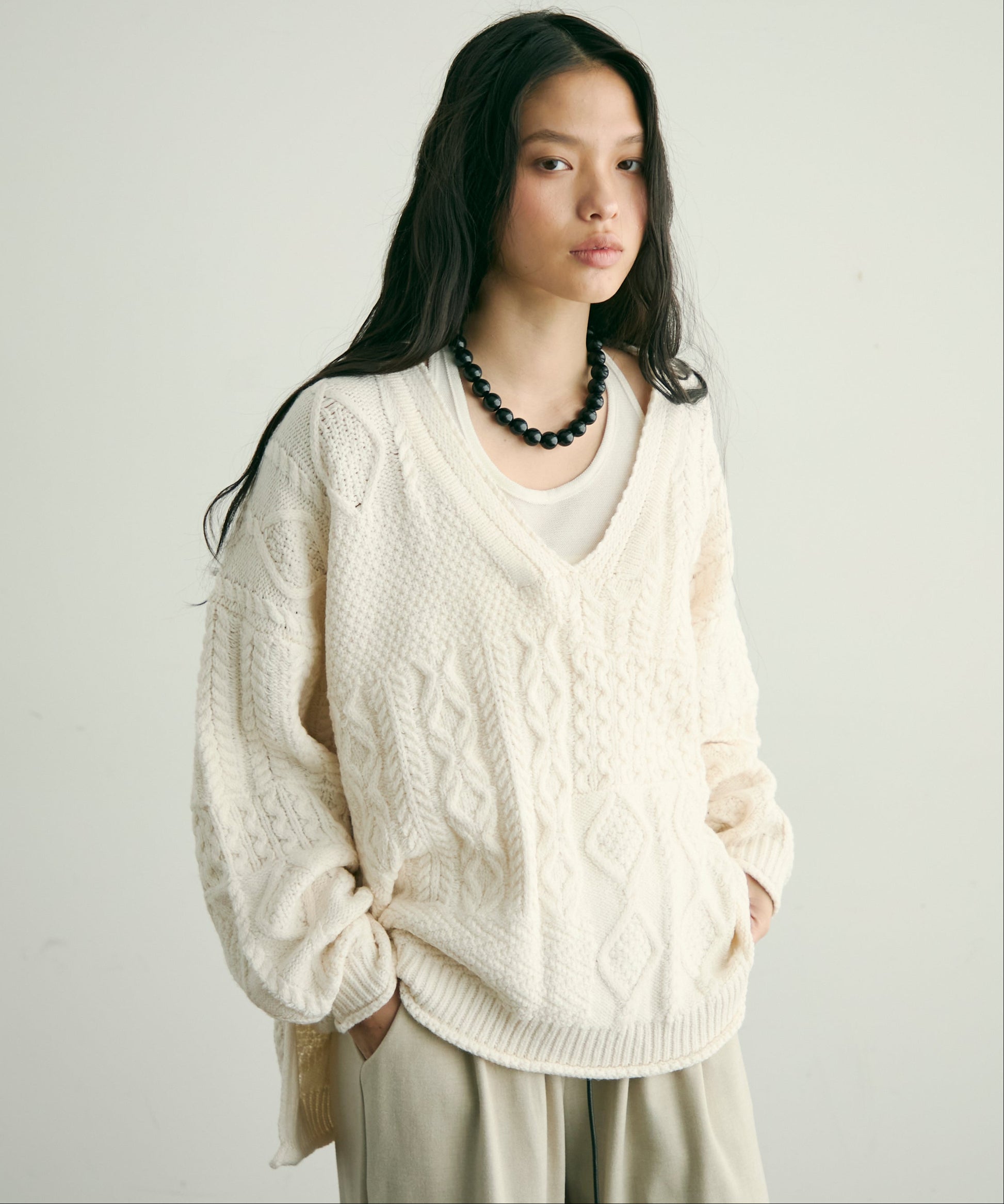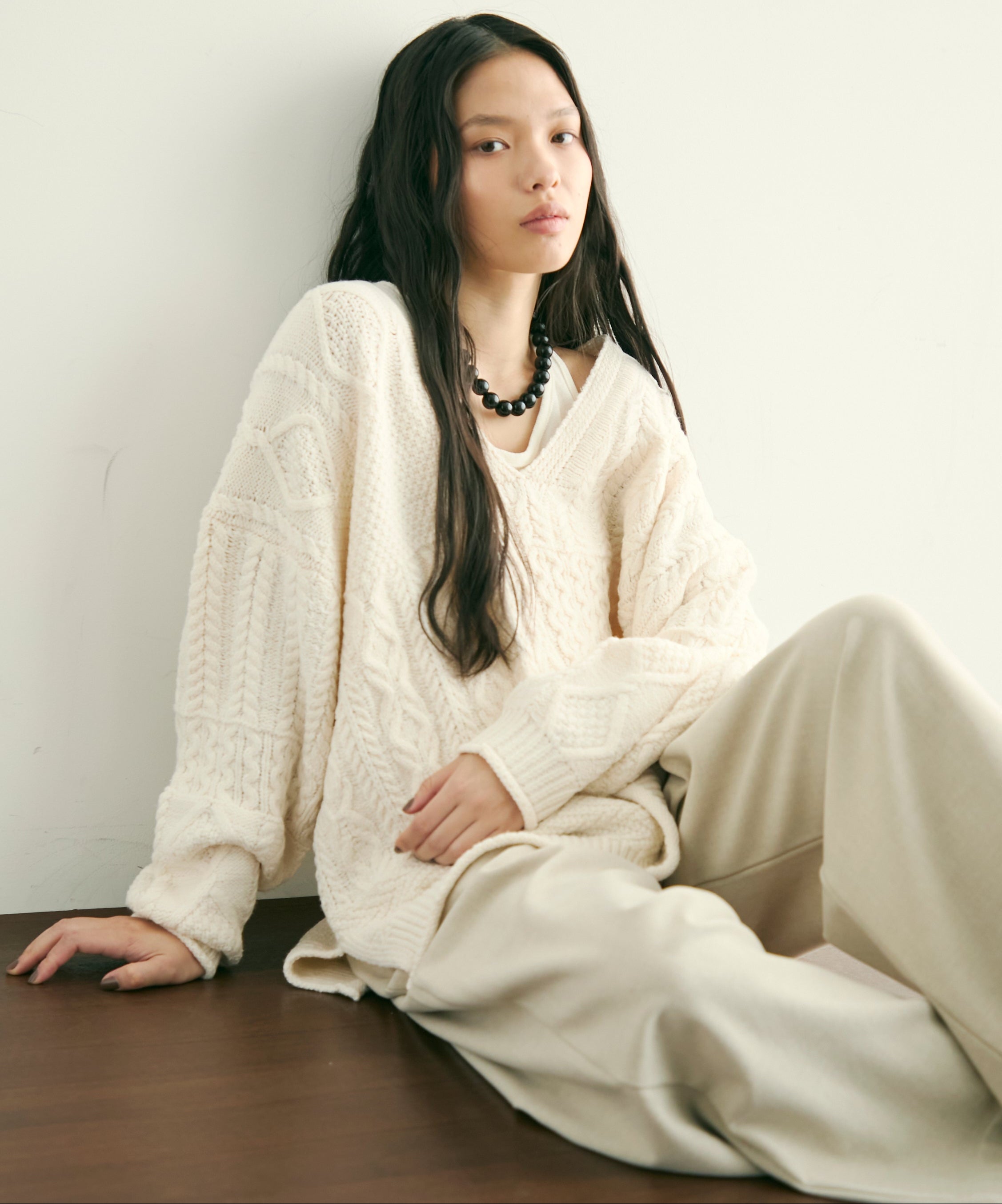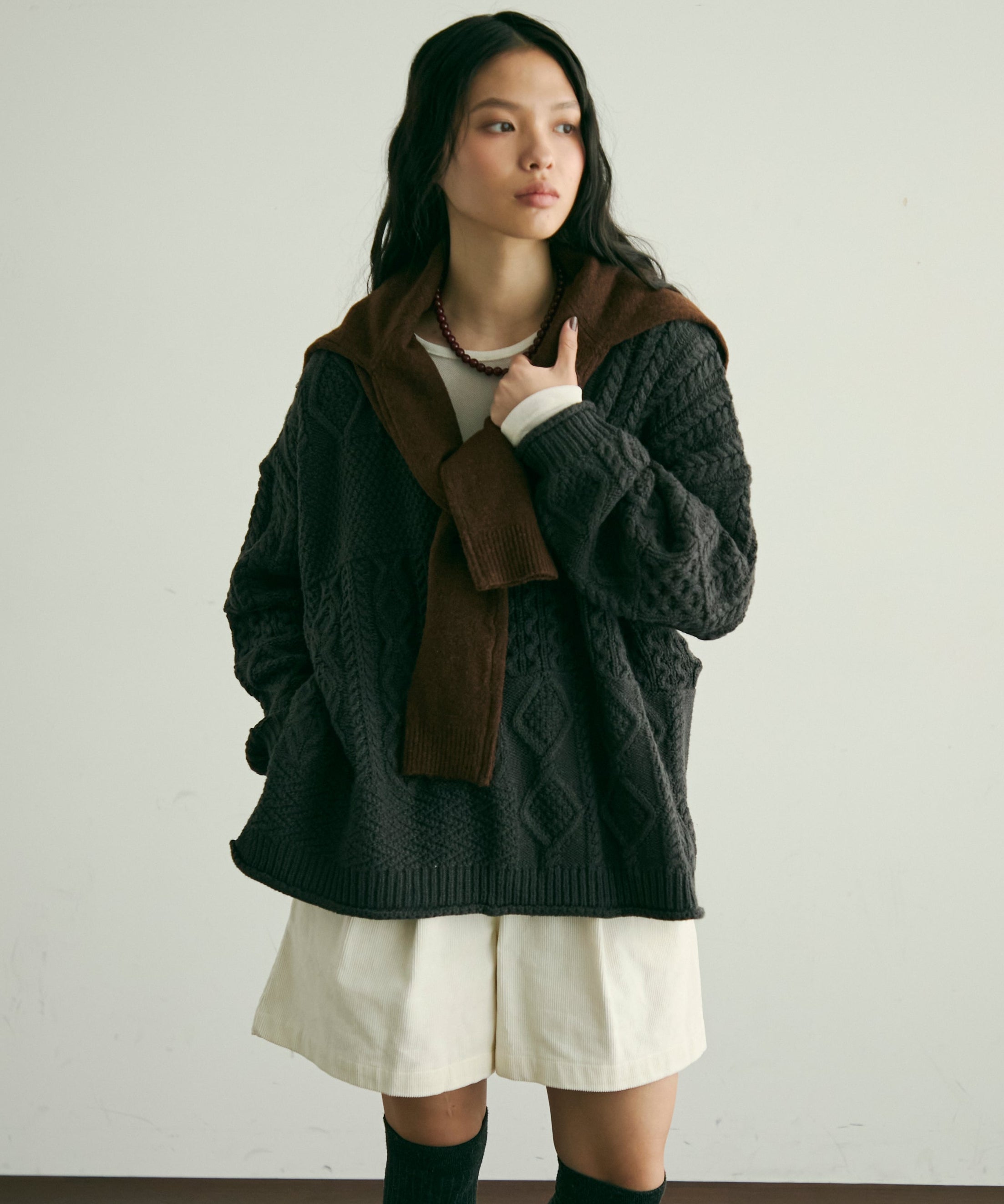 ざっくりとしたケーブル編みが魅力のバルキーニットプルオーバー。