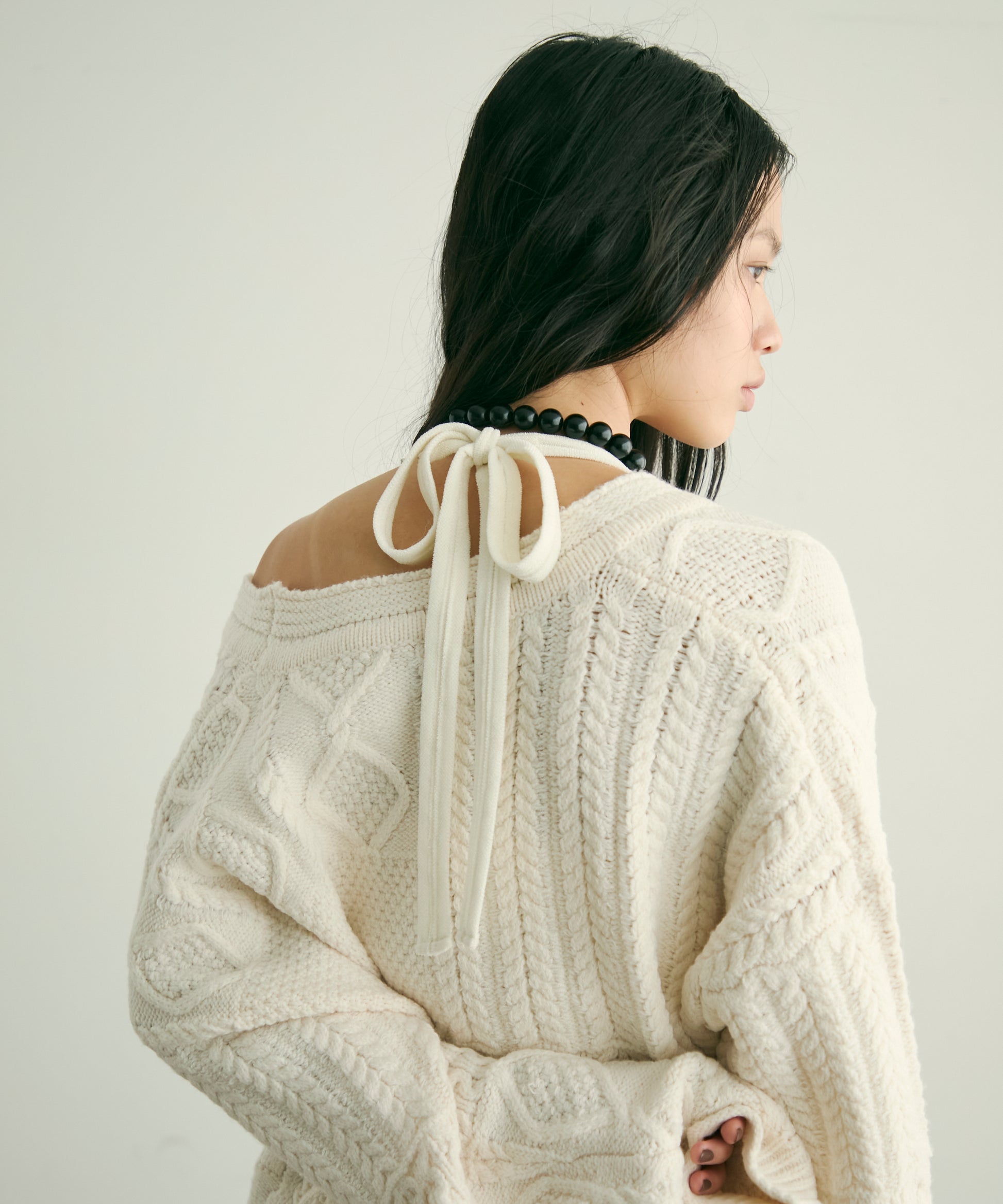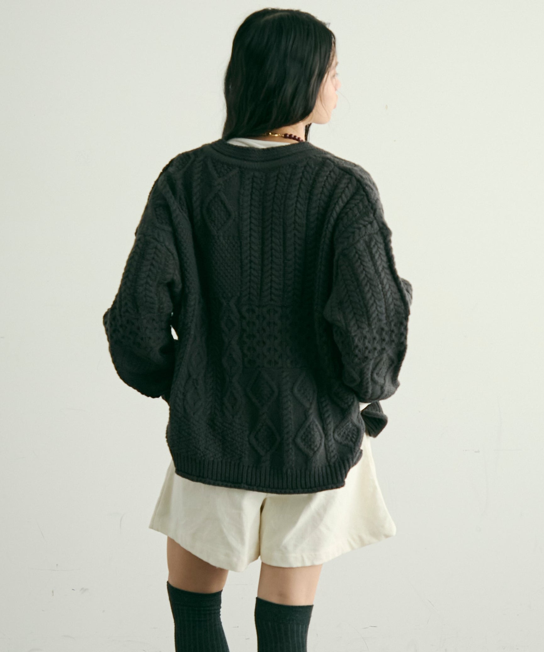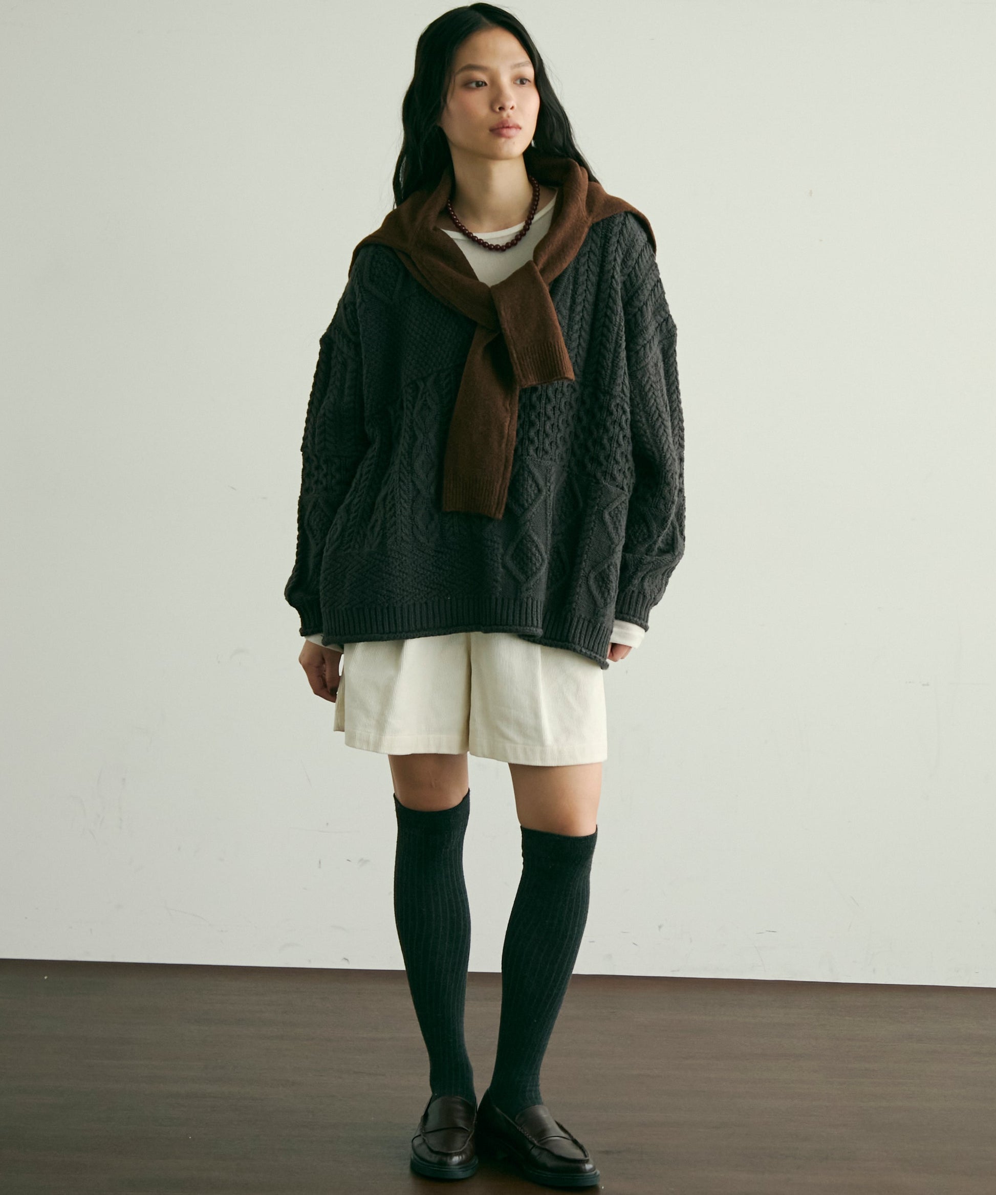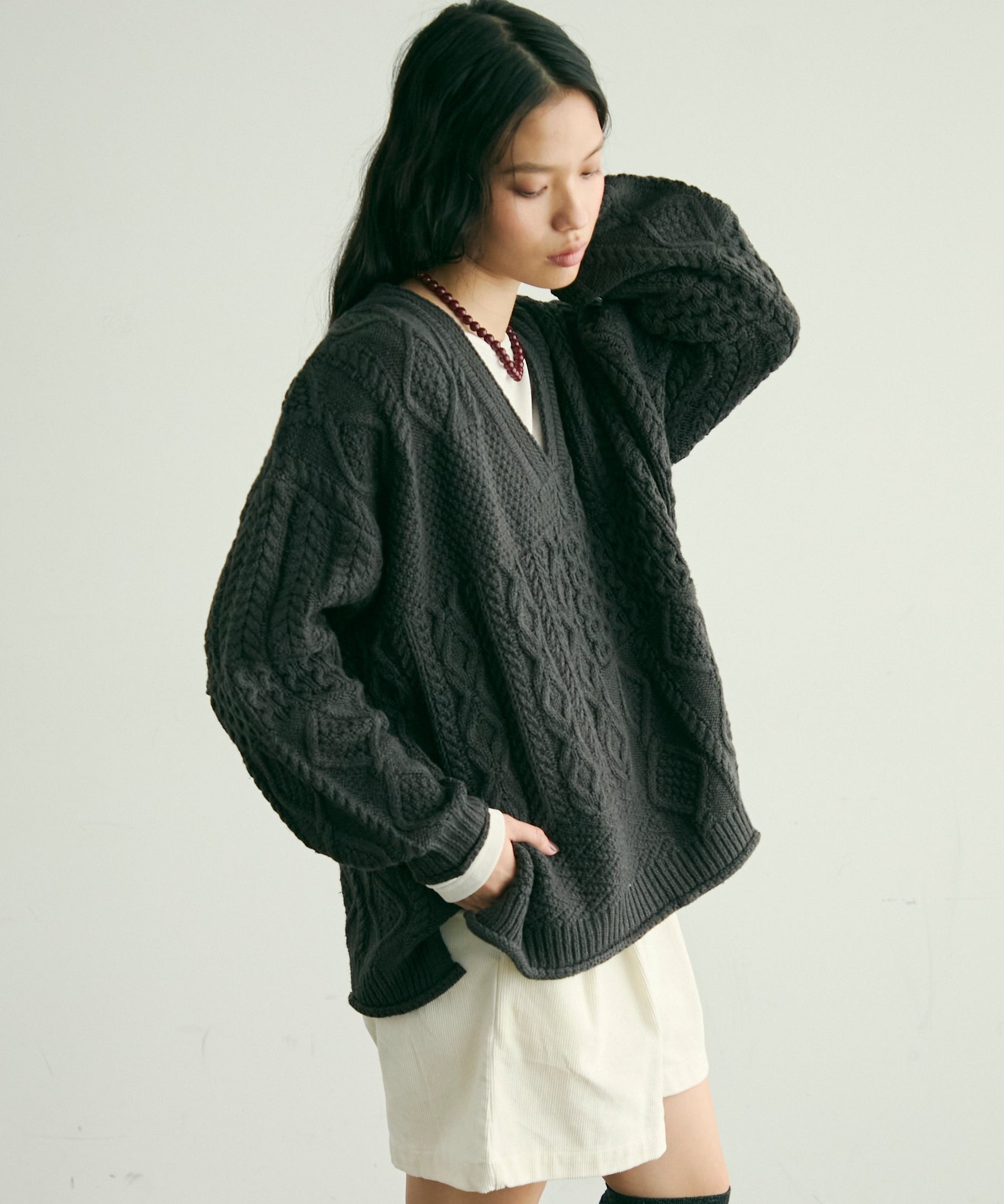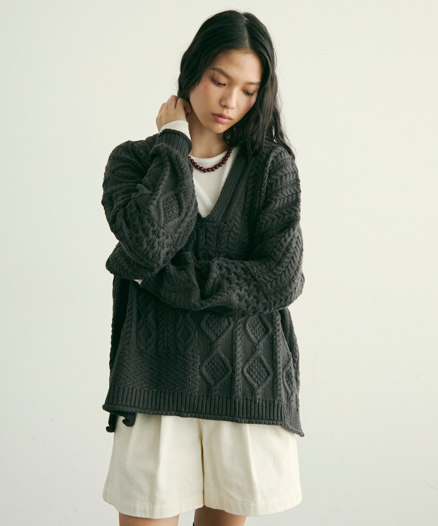 ざっくりとしたケーブル編みが魅力のバルキーニットプルオーバー。
