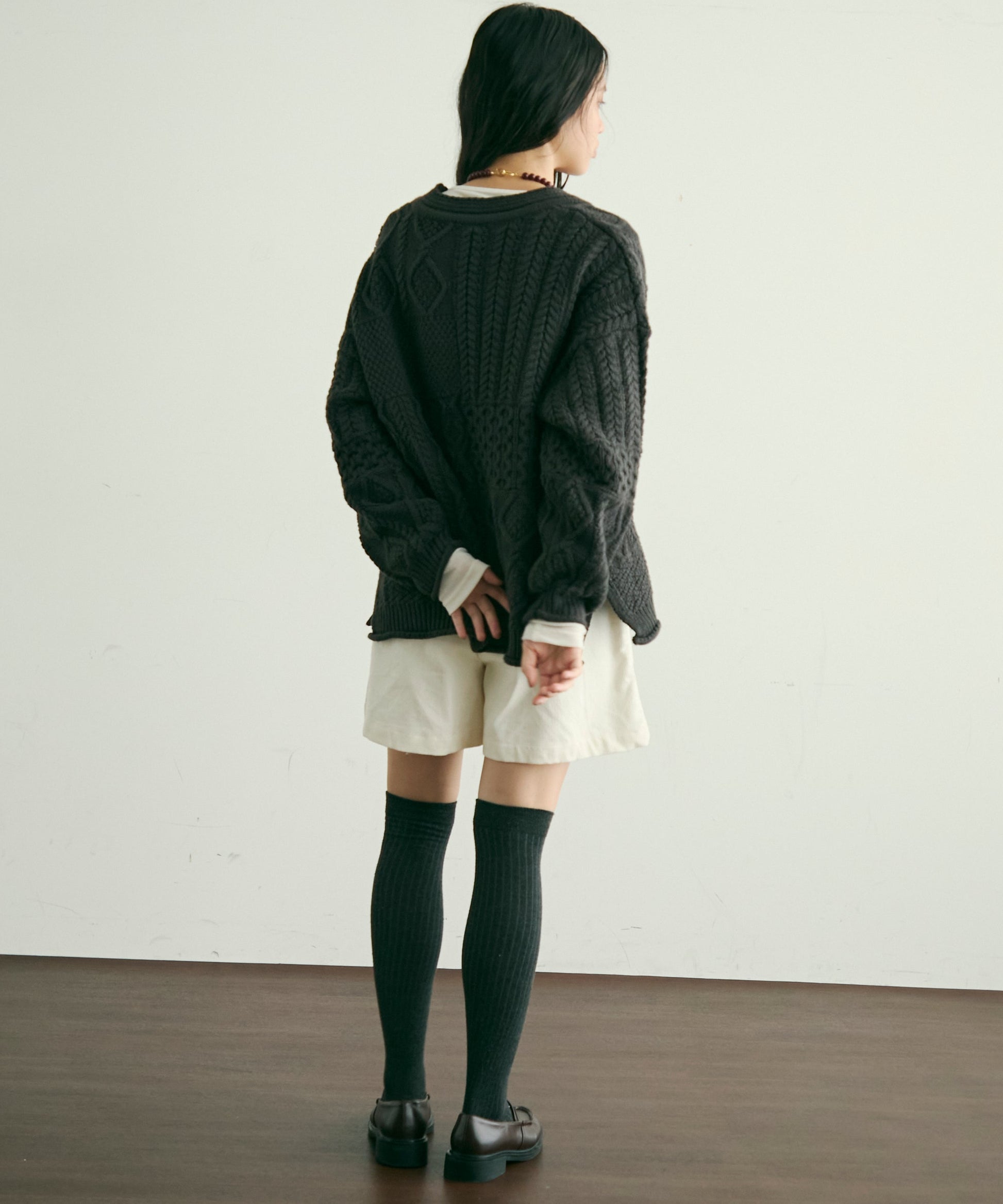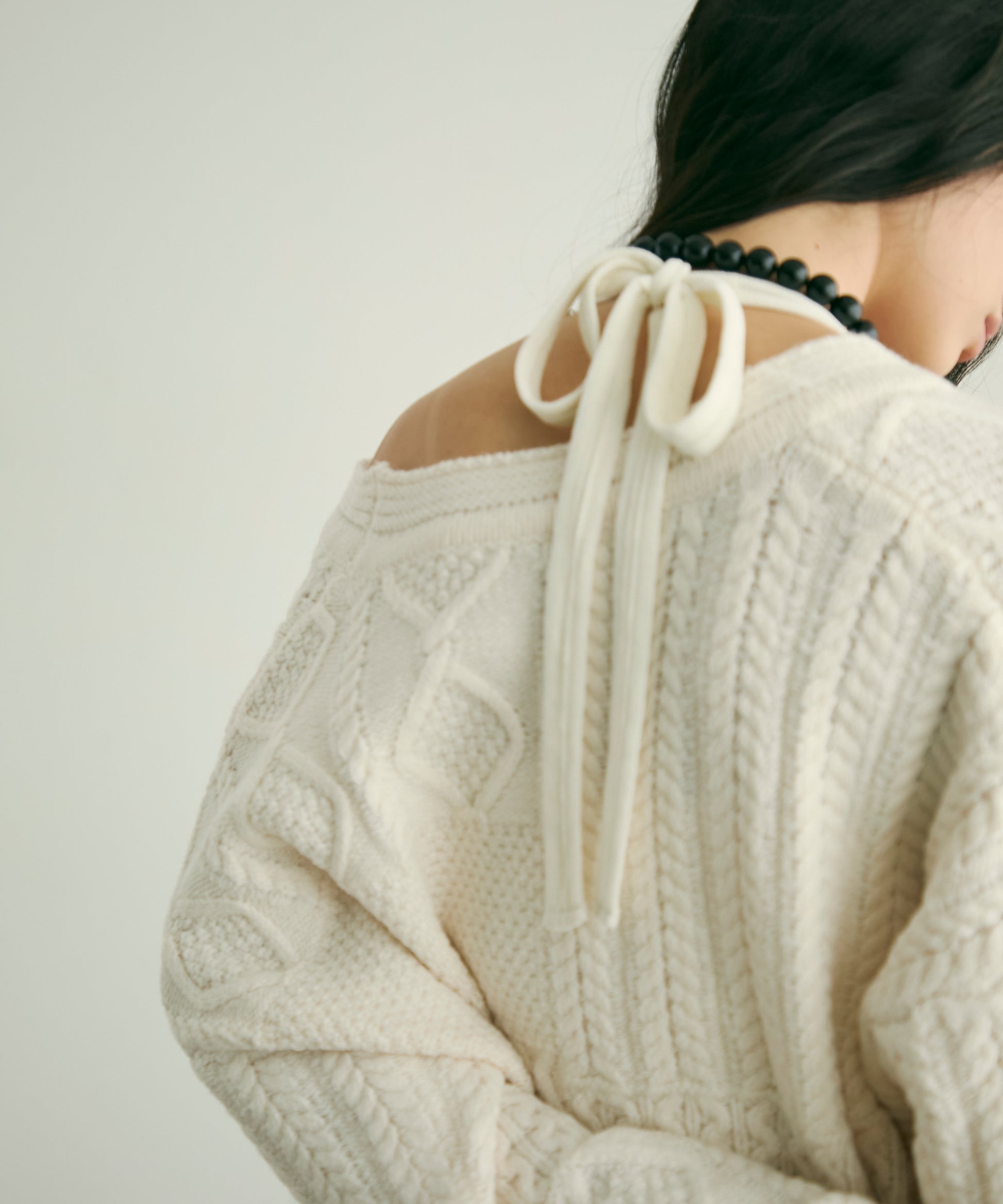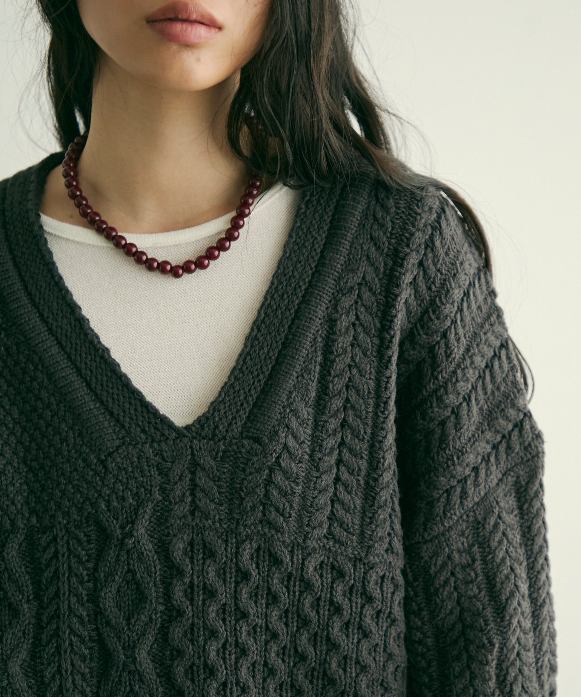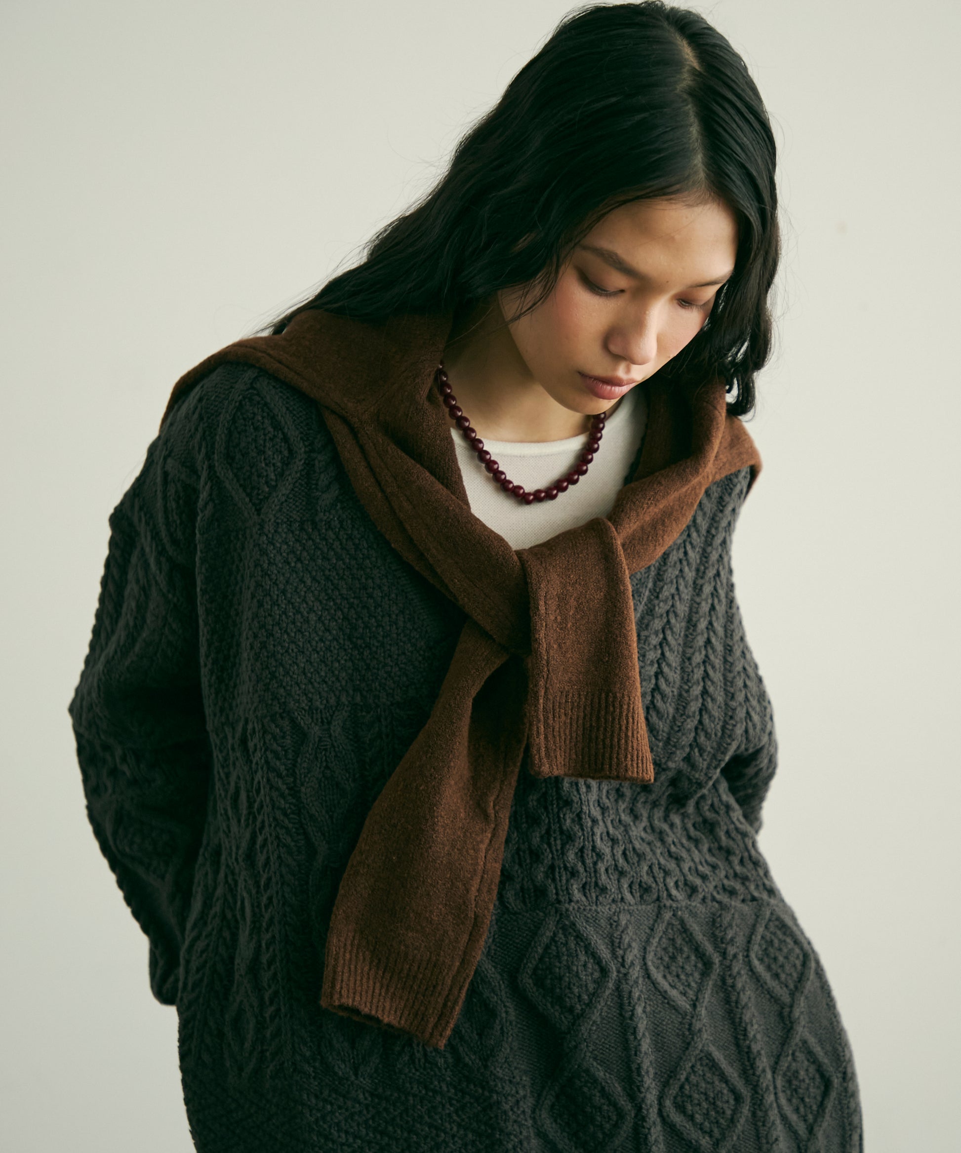 ざっくりとしたケーブル編みが魅力のバルキーニットプルオーバー。