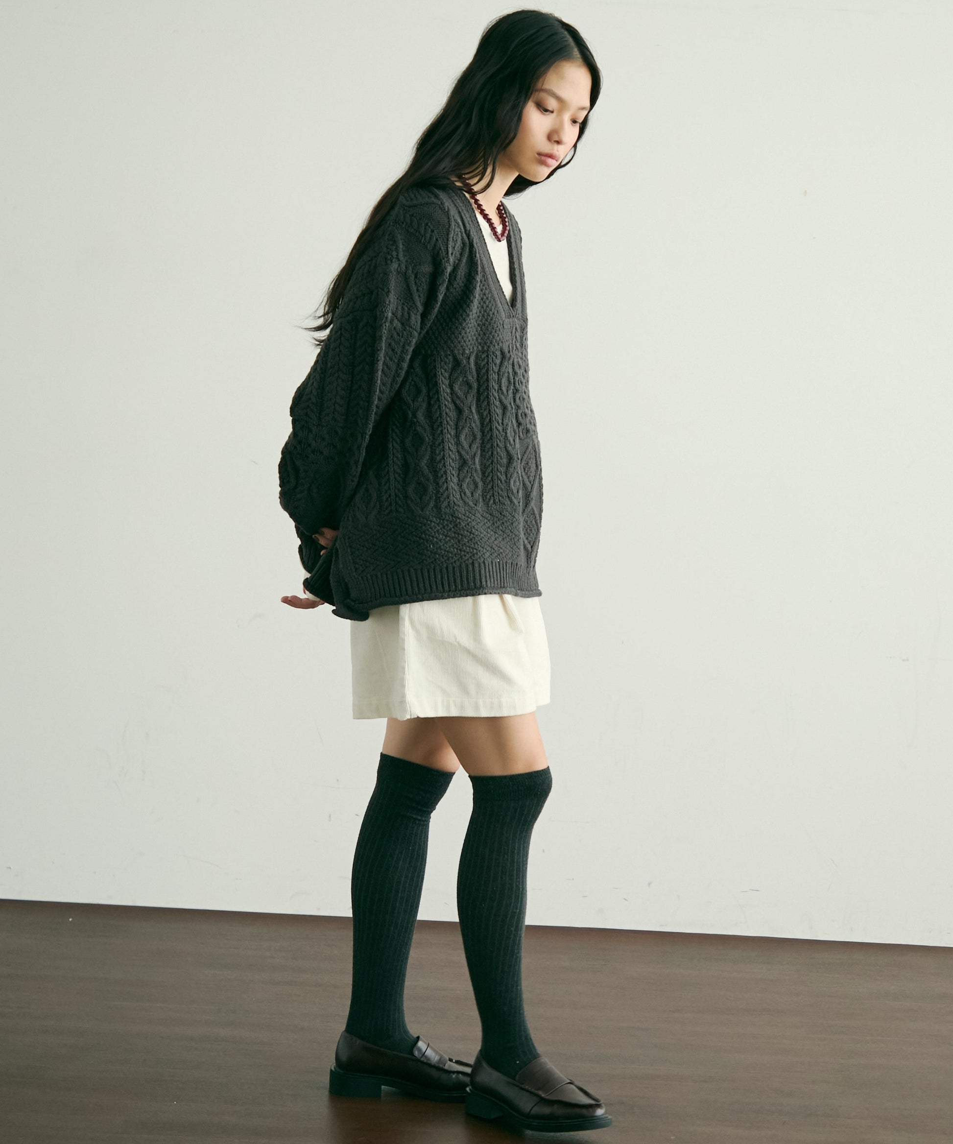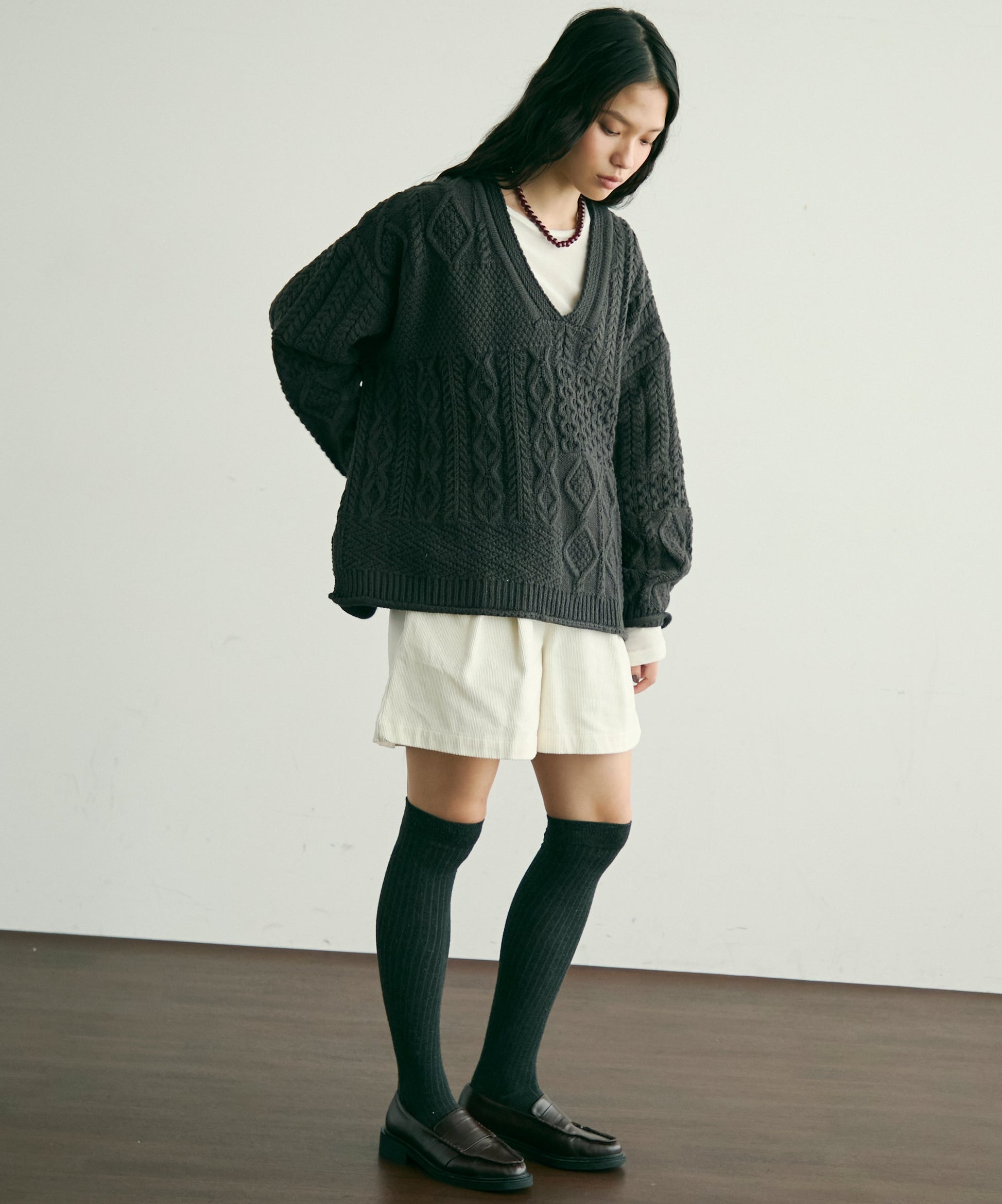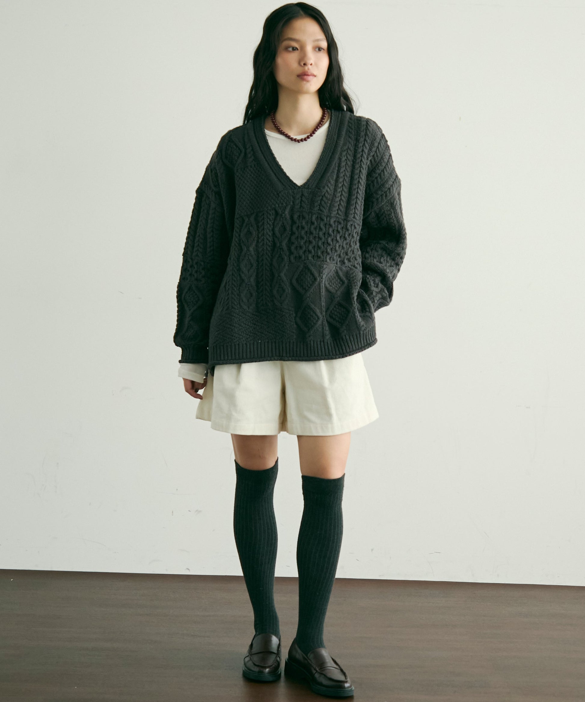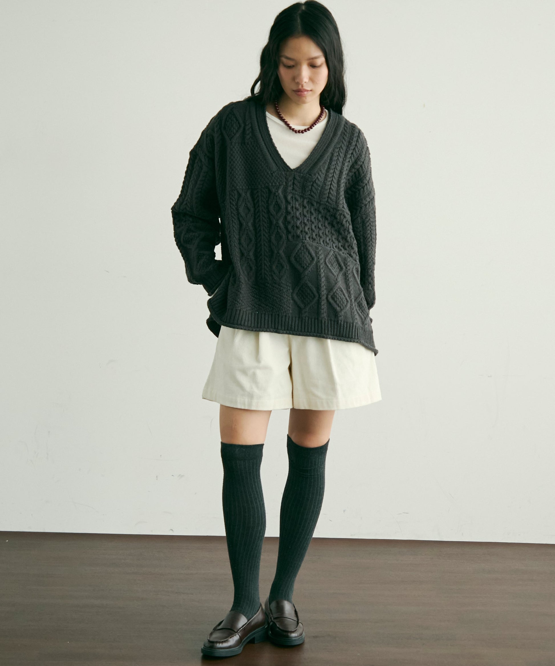 ざっくりとしたケーブル編みが魅力のバルキーニットプルオーバー。