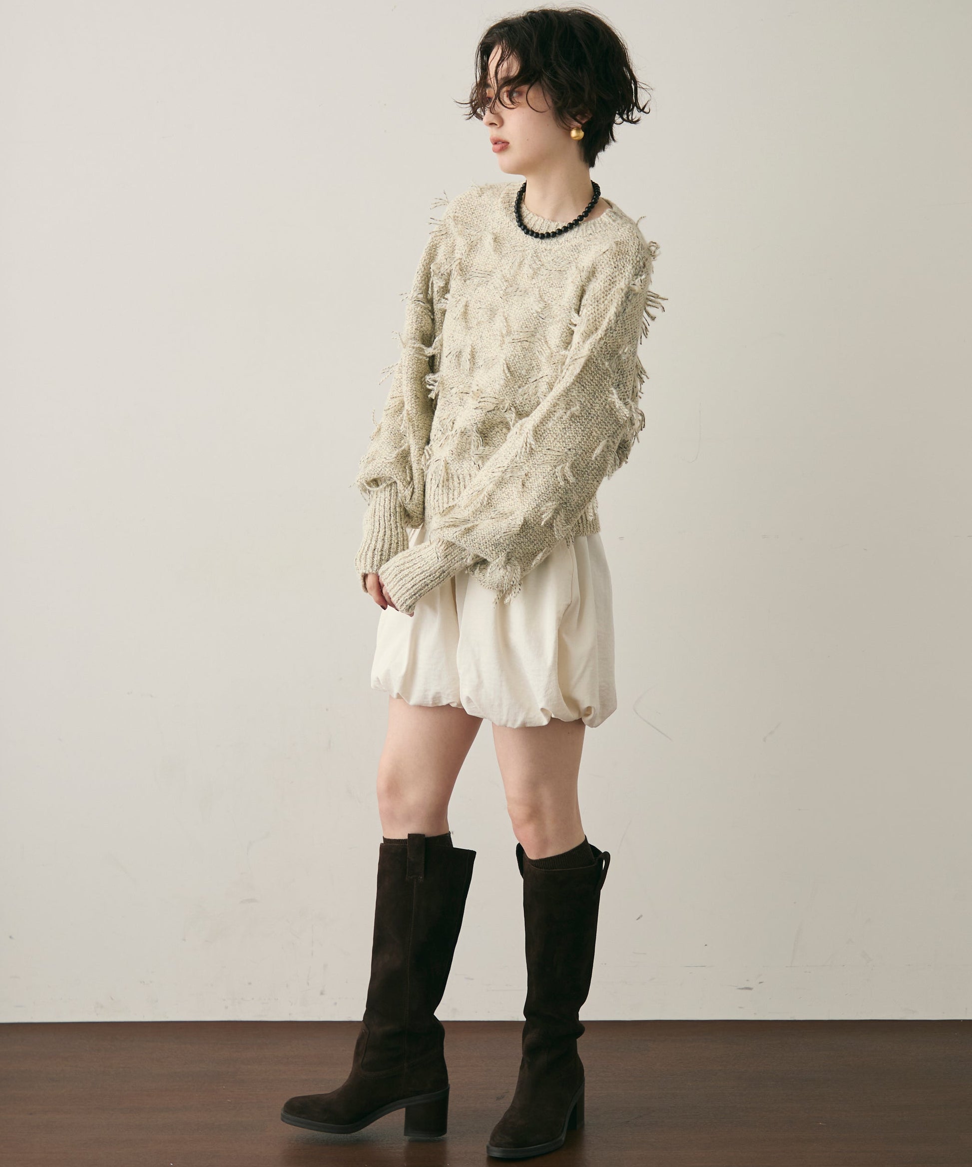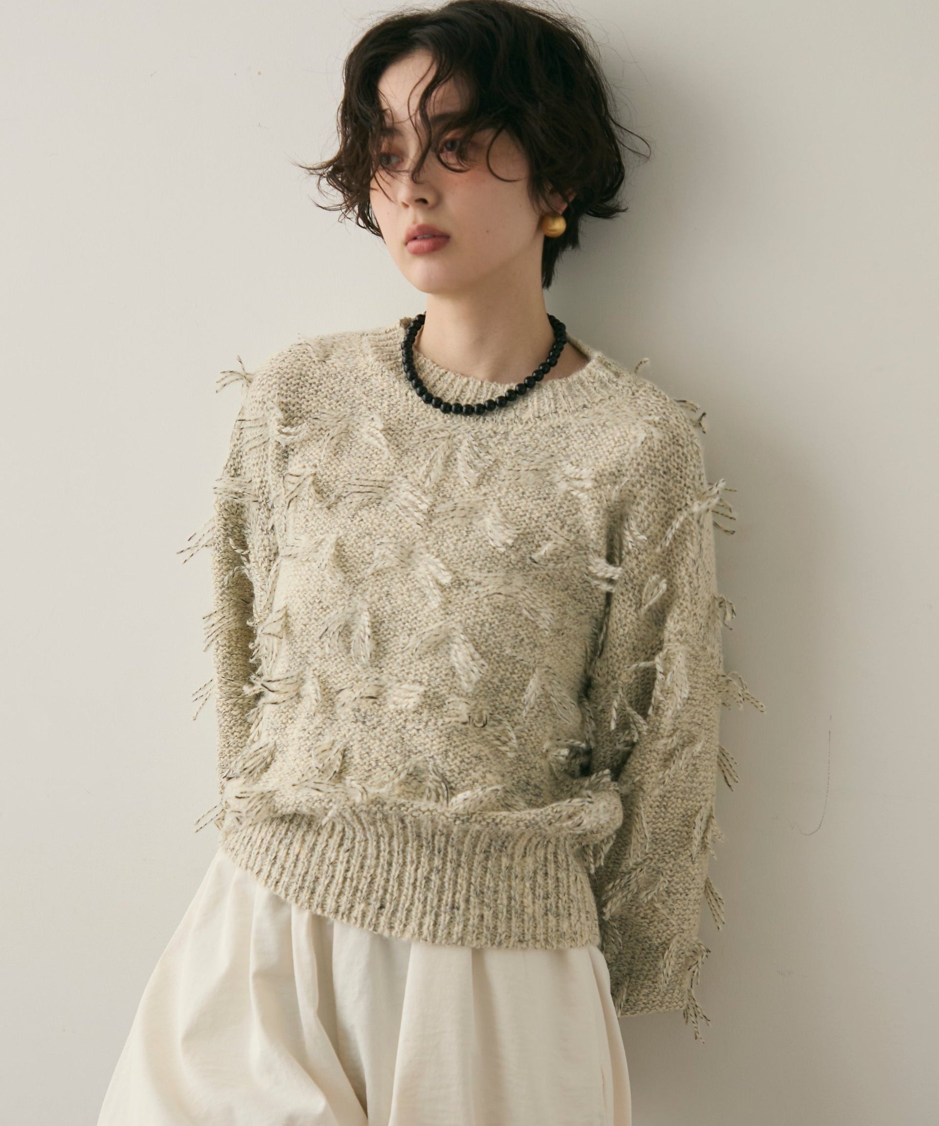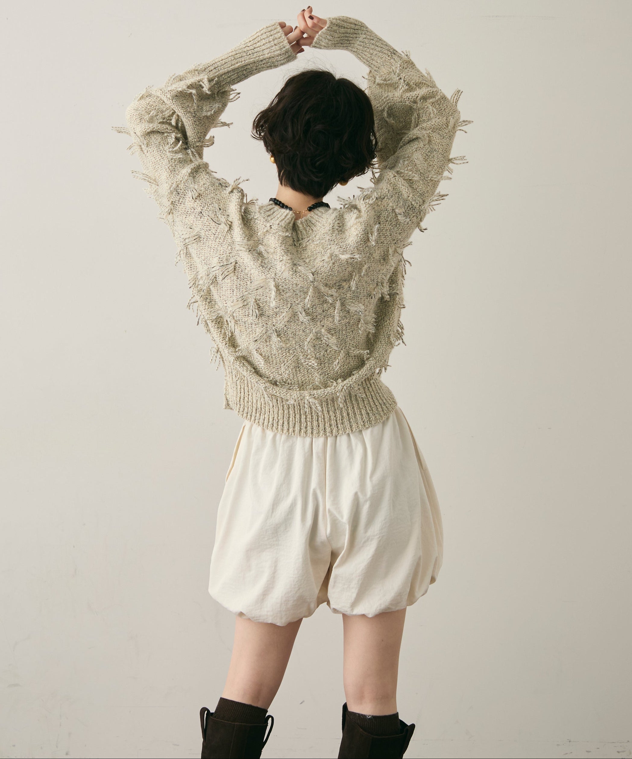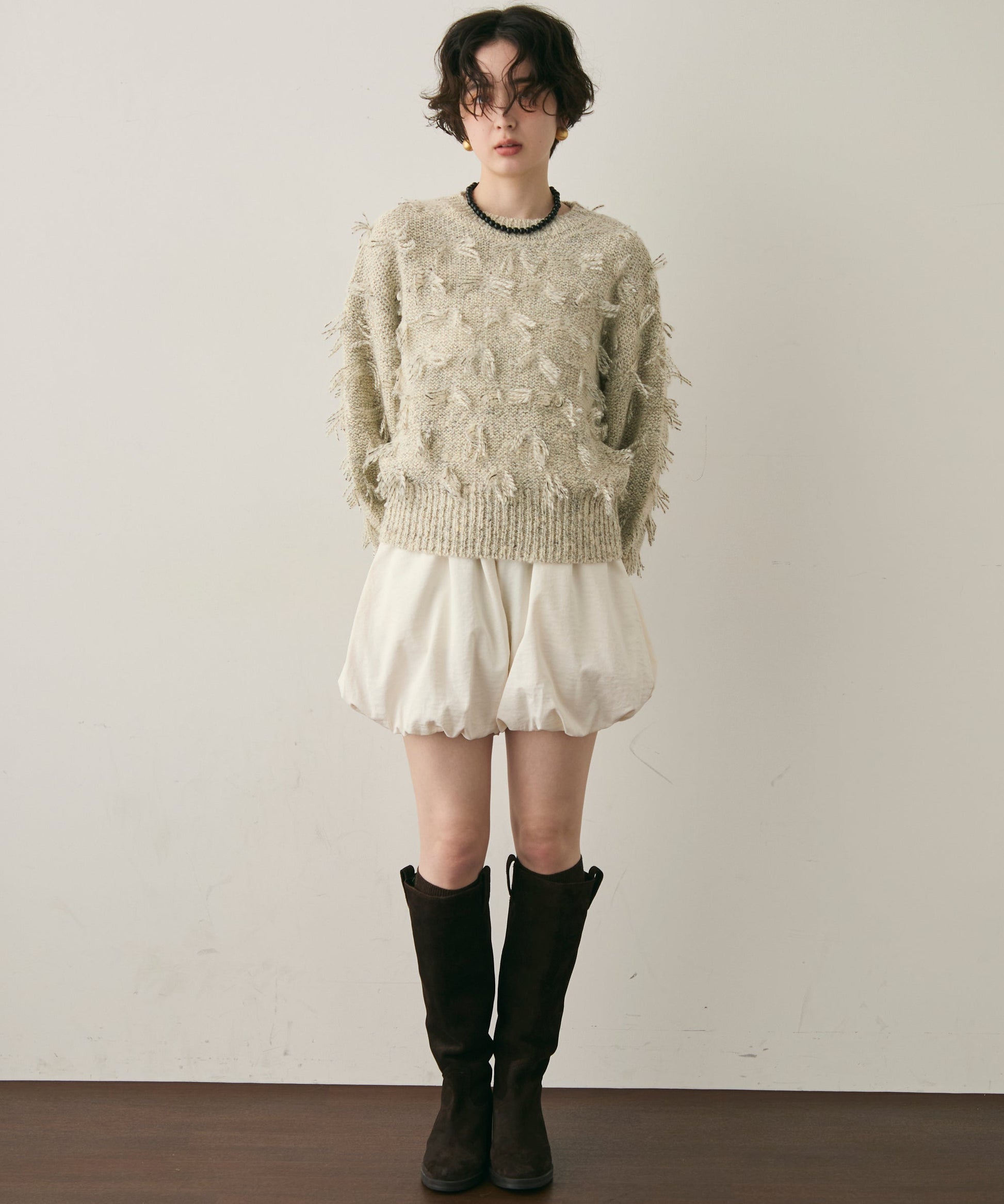 ランダムフリンジパフスリーブプルオーバートレンド感たっぷりの“ランダムフリンジ”が目を引くプルオーバー。