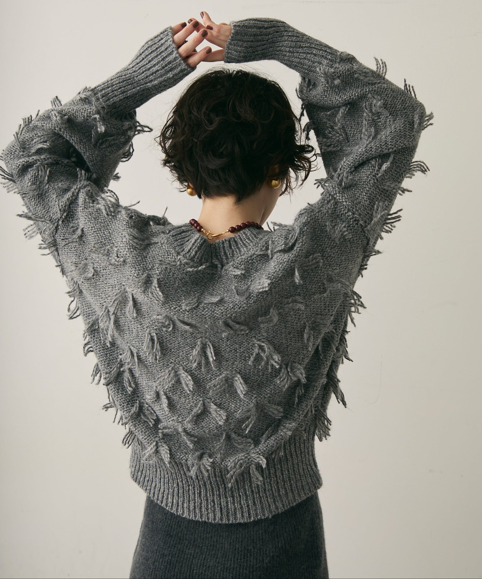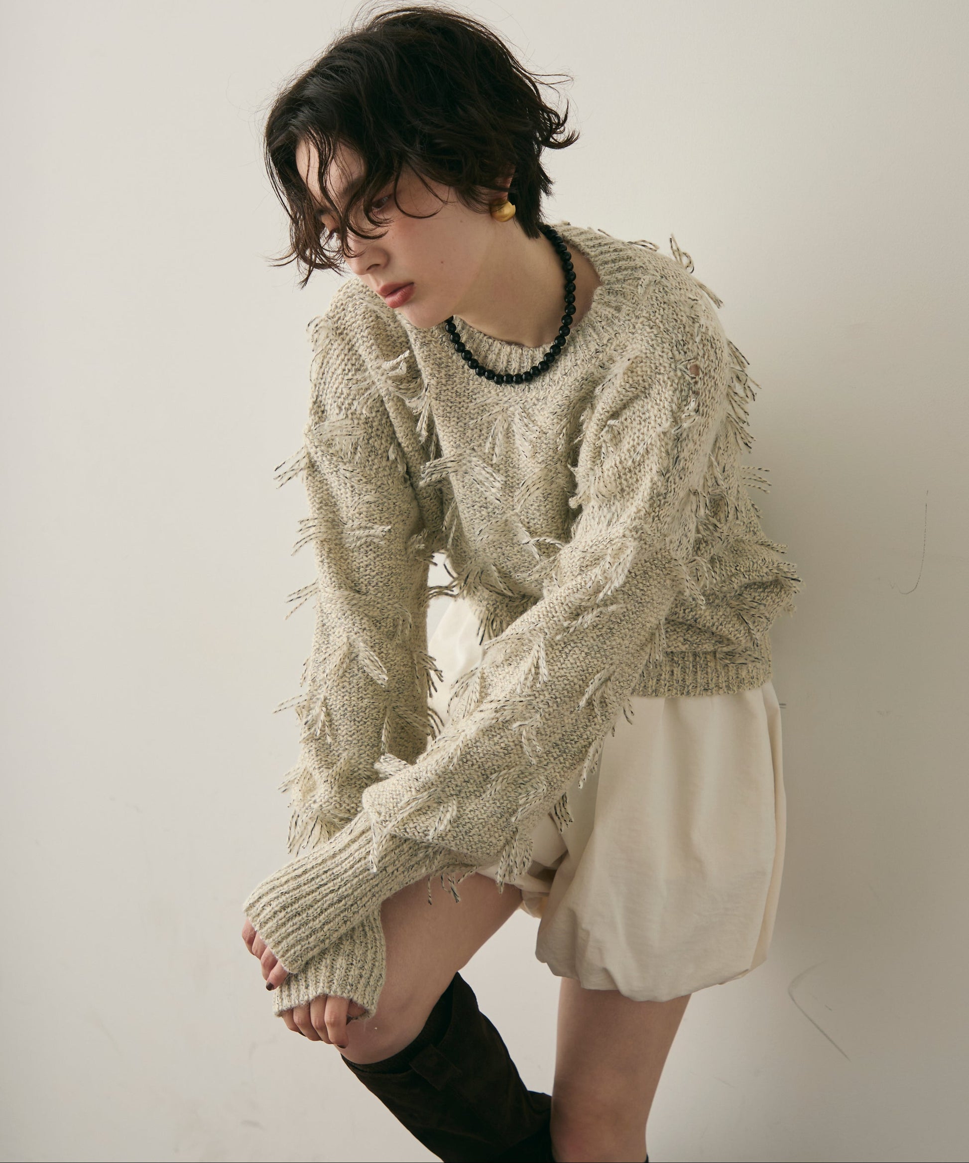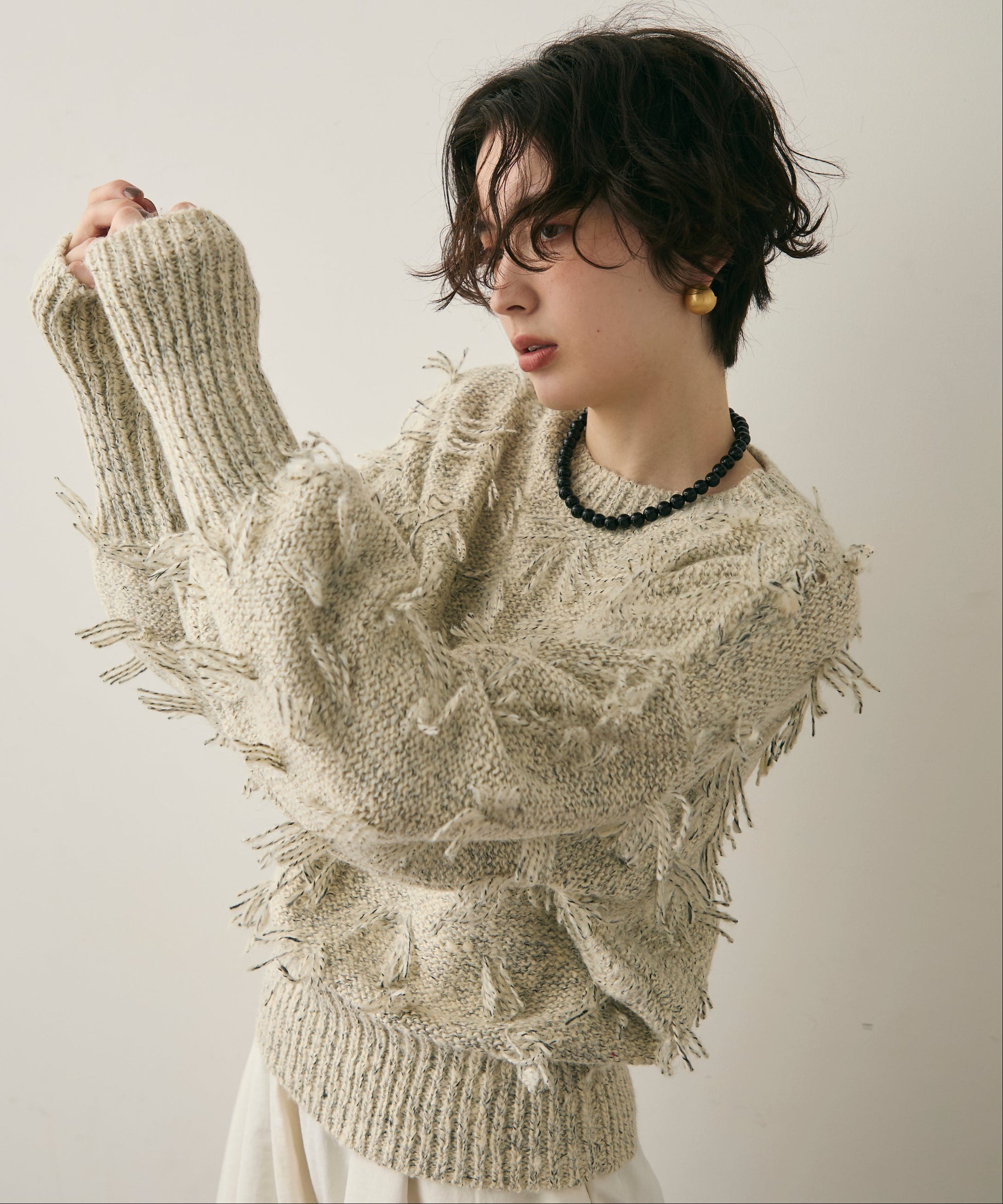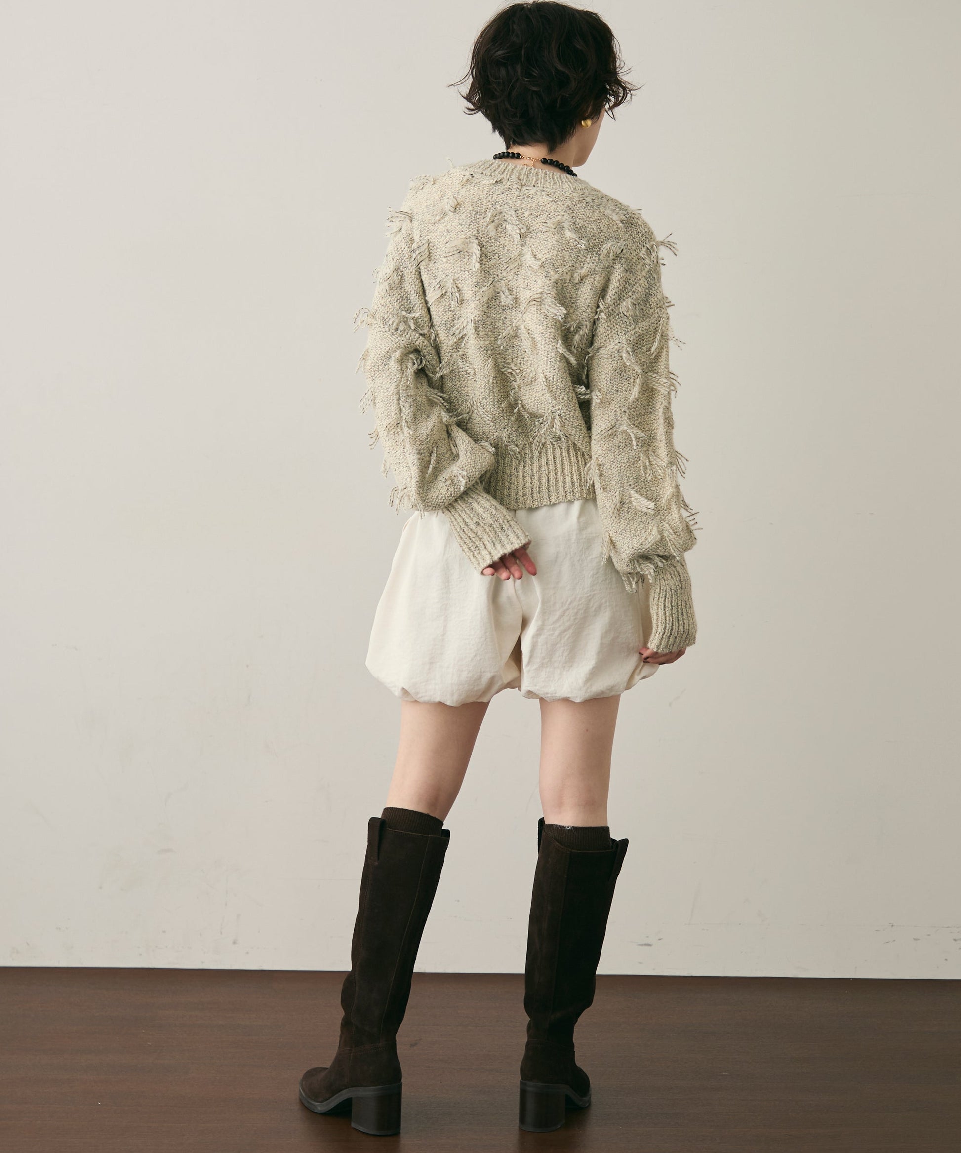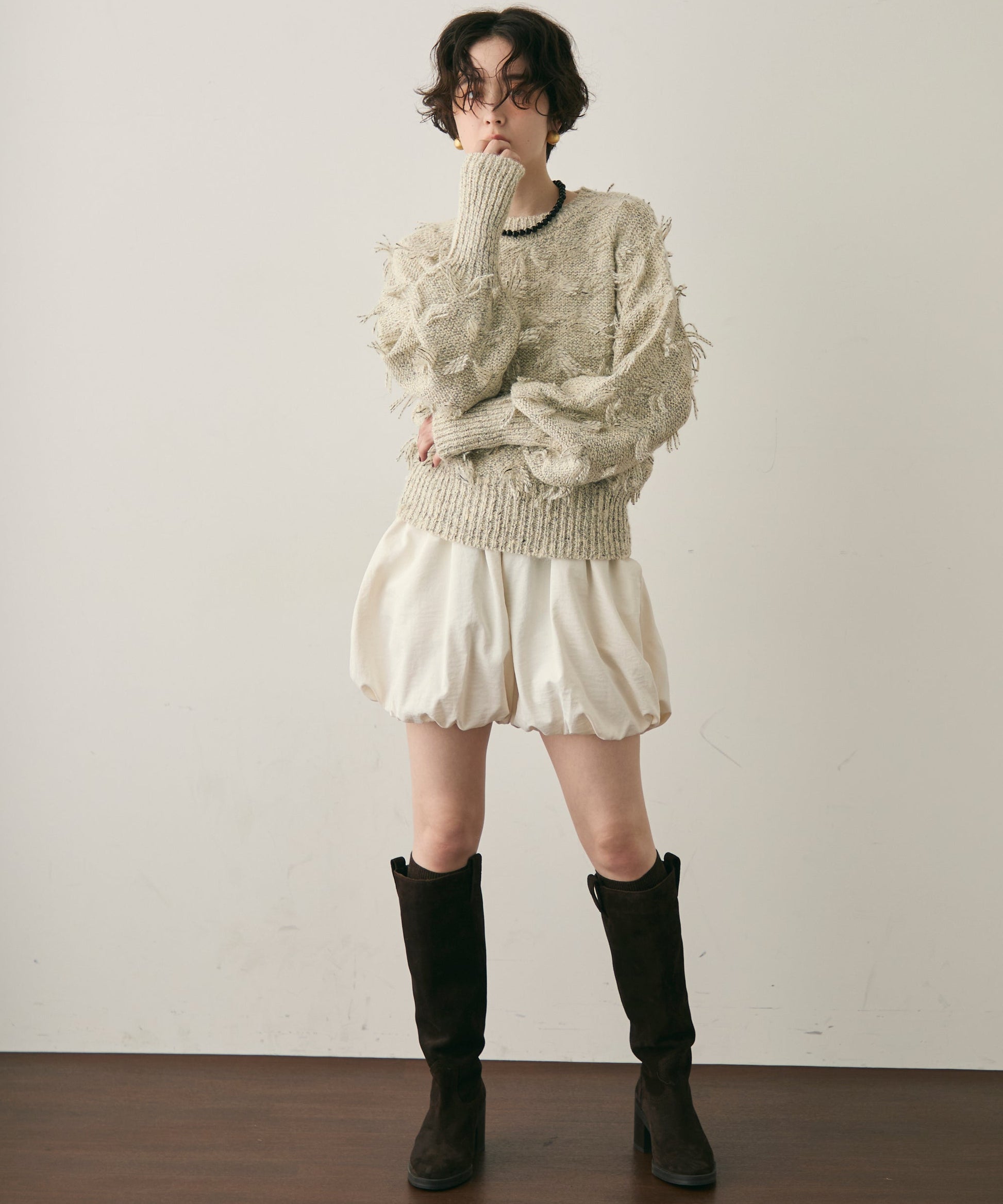 ランダムフリンジパフスリーブプルオーバートレンド感たっぷりの“ランダムフリンジ”が目を引くプルオーバー。