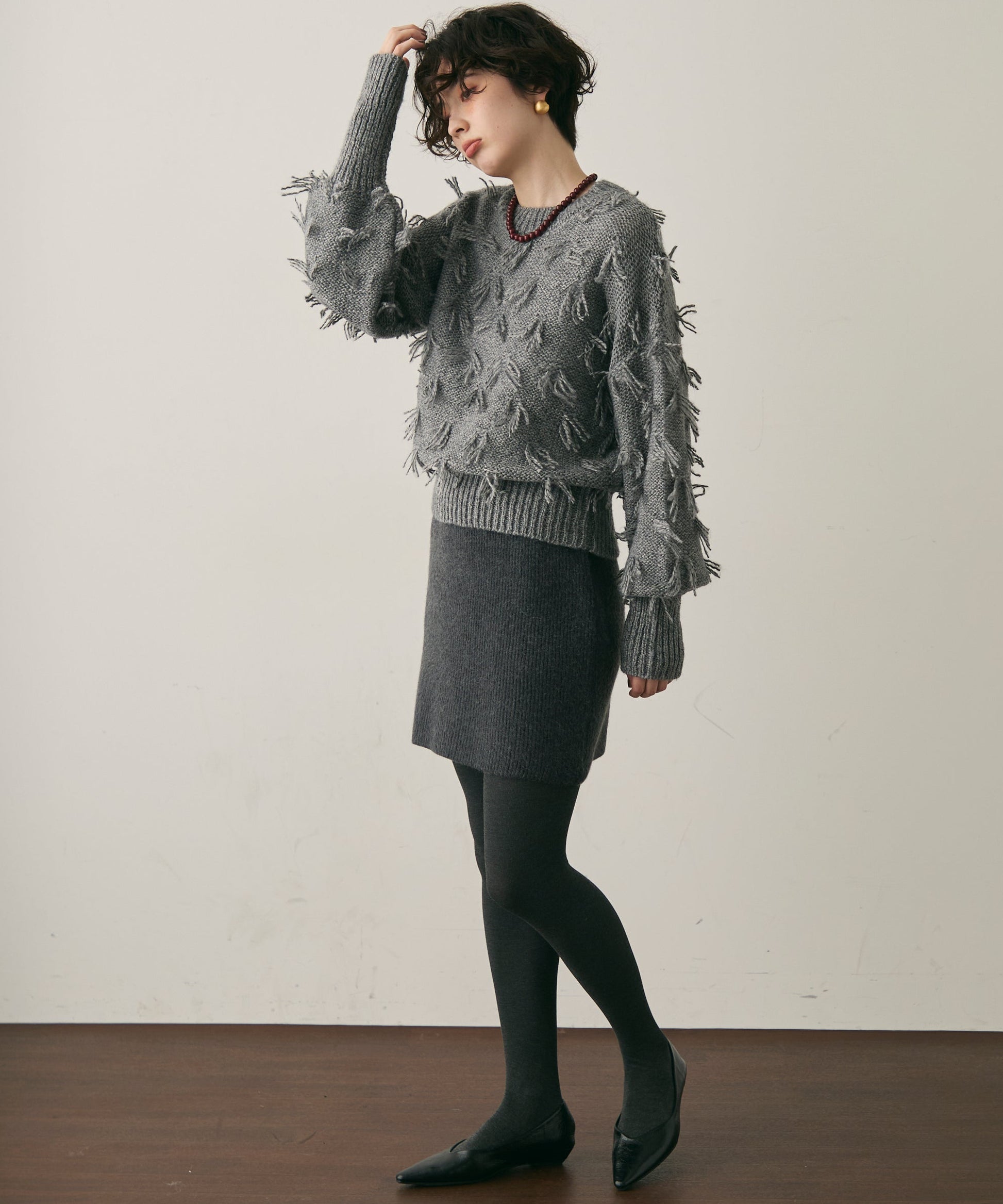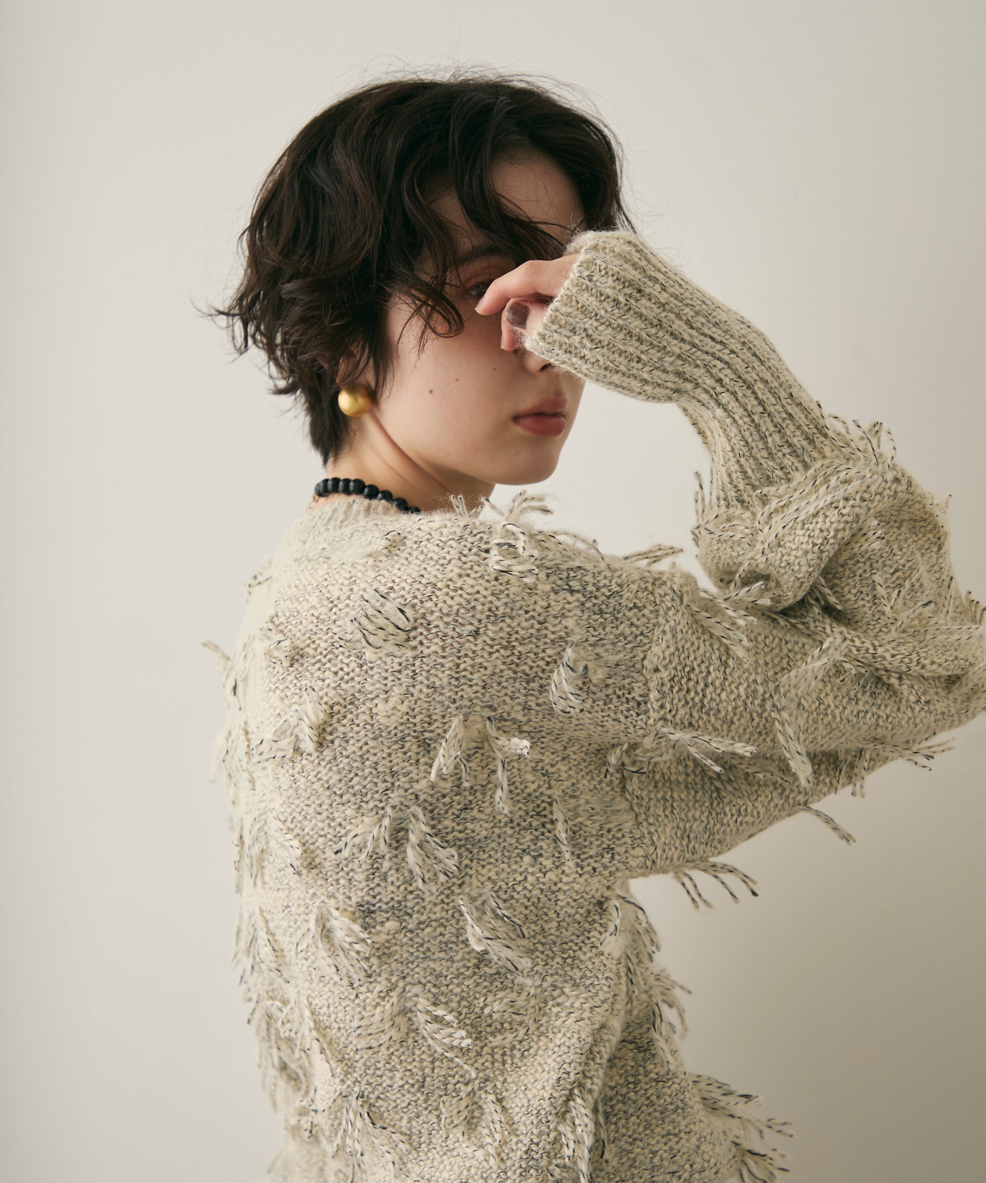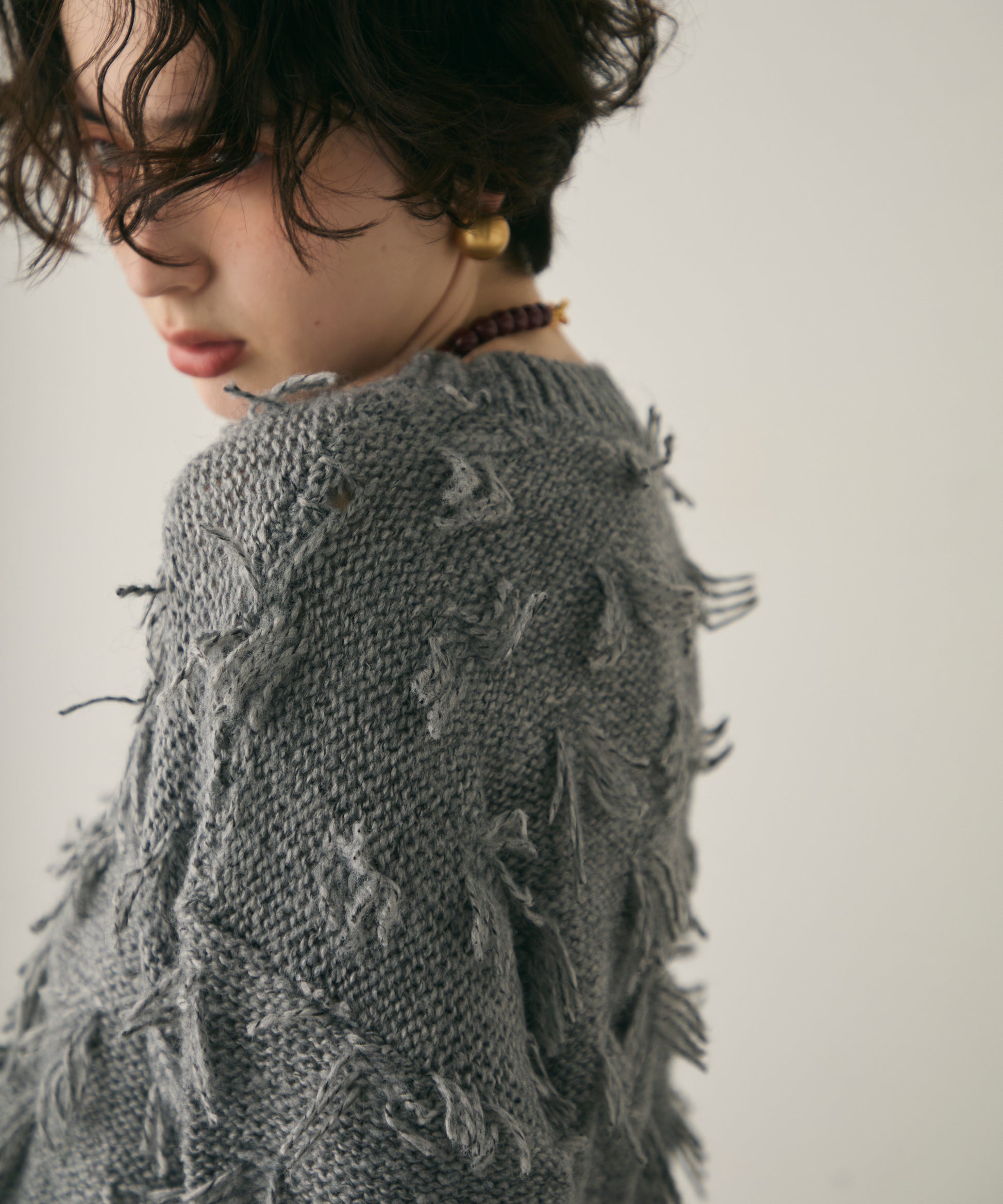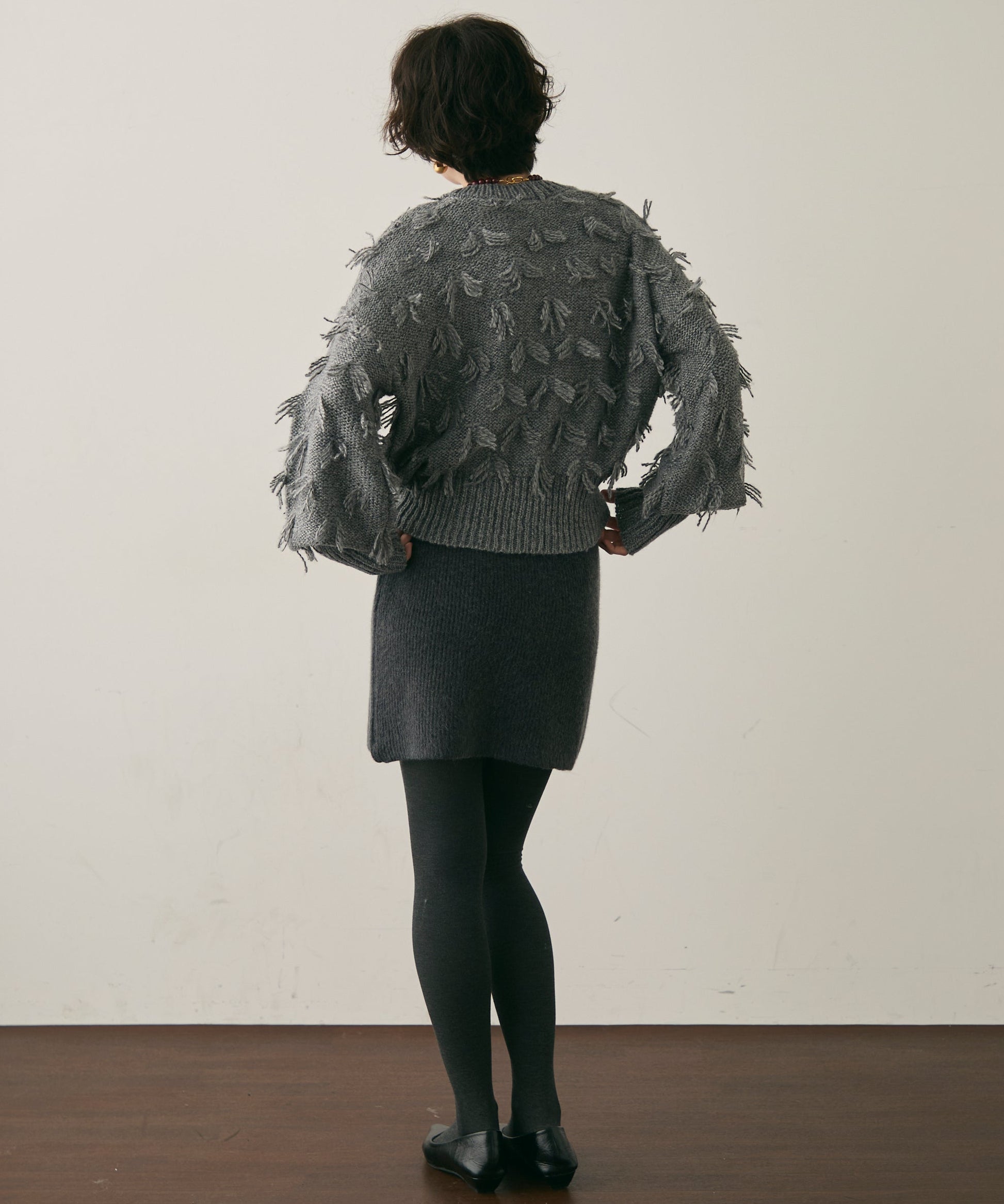 ランダムフリンジパフスリーブプルオーバートレンド感たっぷりの“ランダムフリンジ”が目を引くプルオーバー。