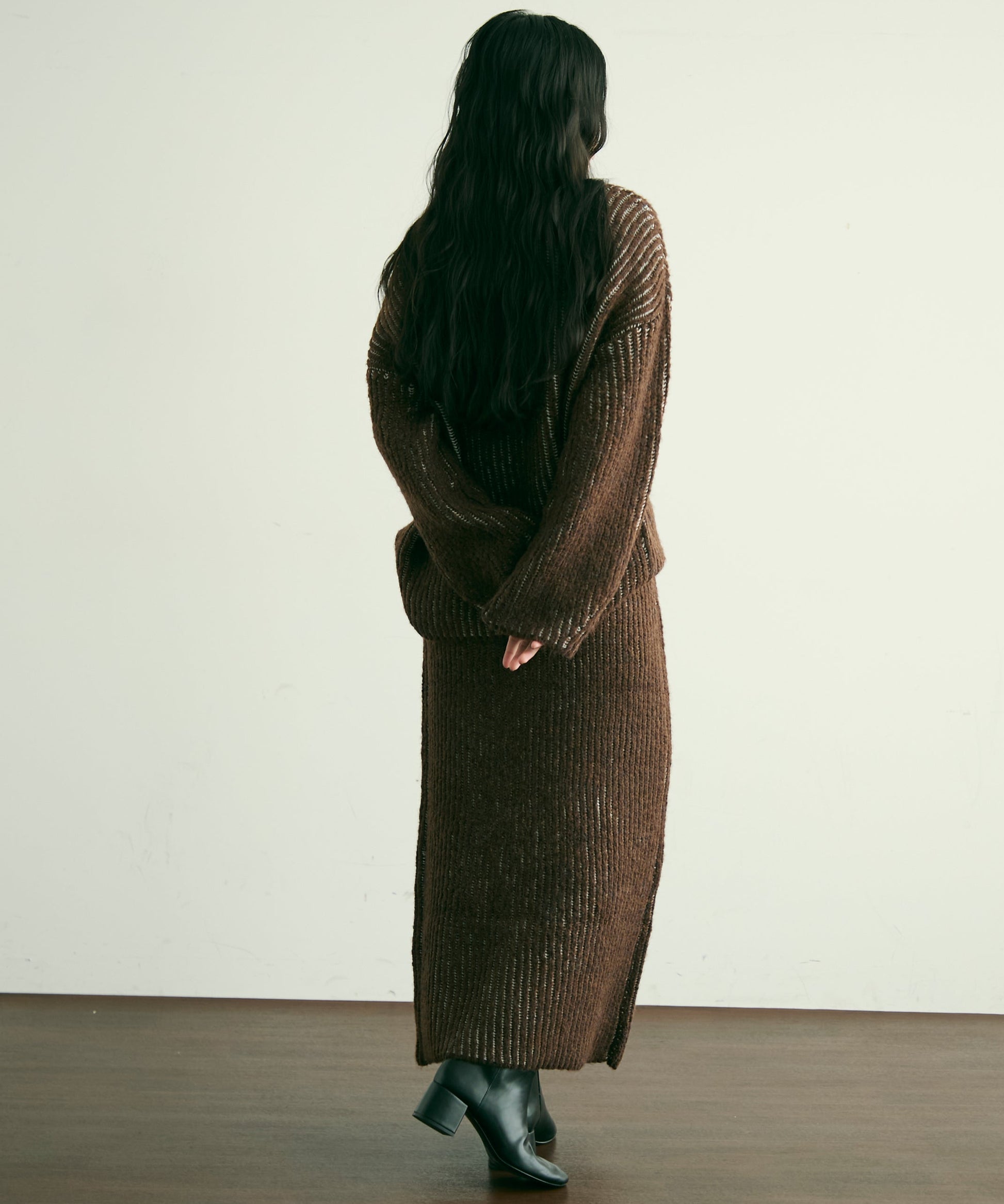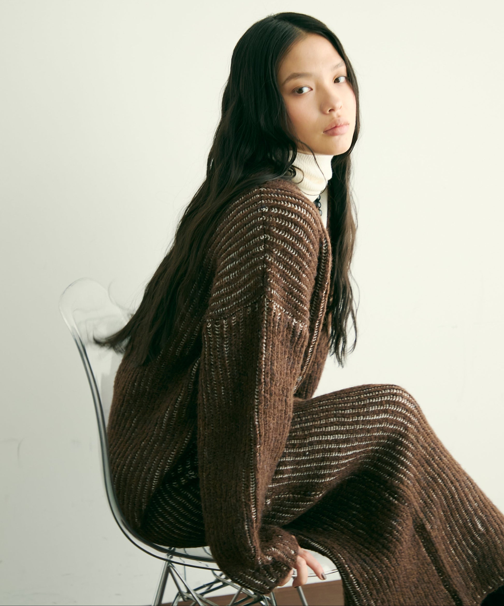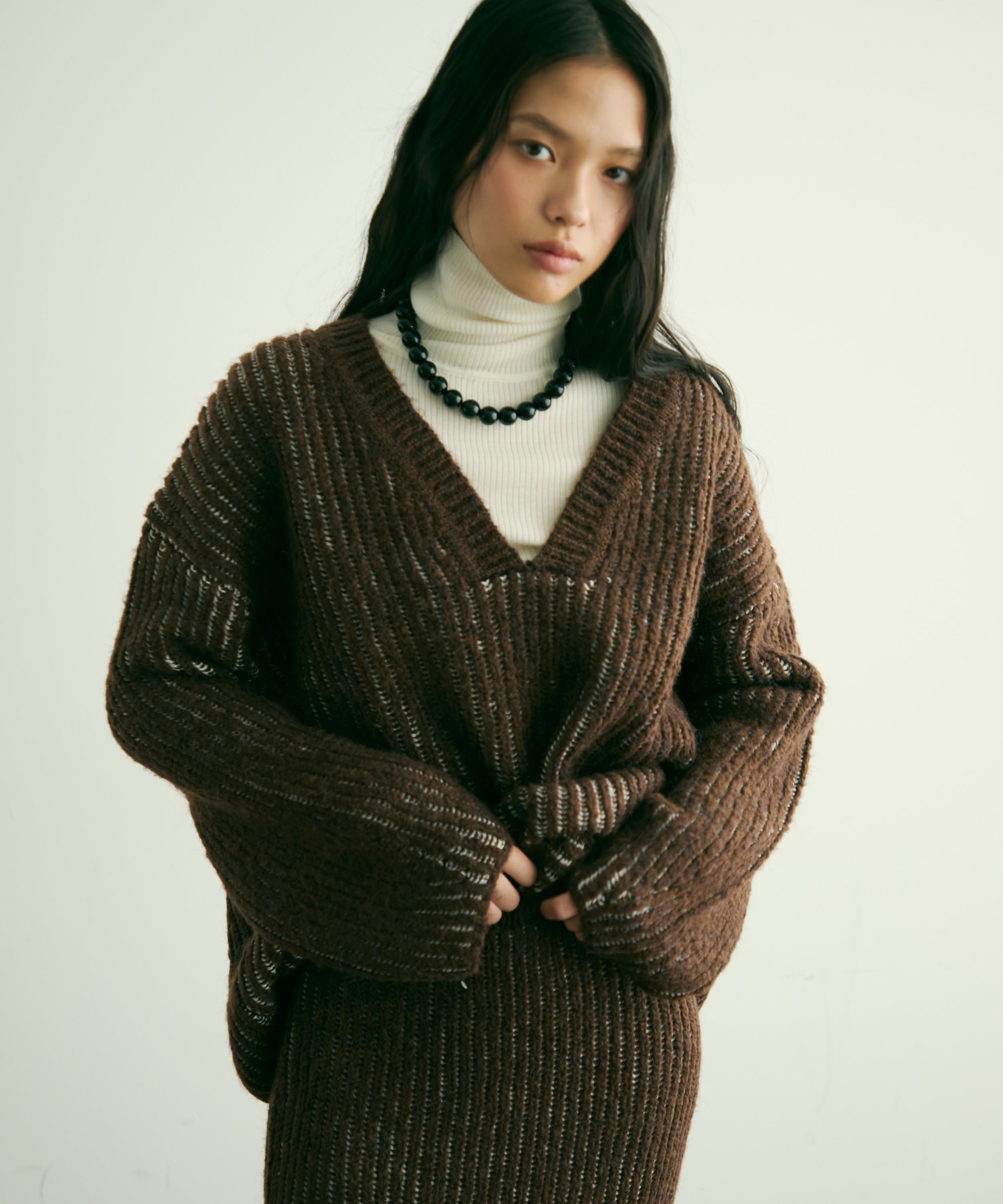 柔らかなアルパカタッチ素材で仕立てた、シーズンムード高まる深Vネックニット。