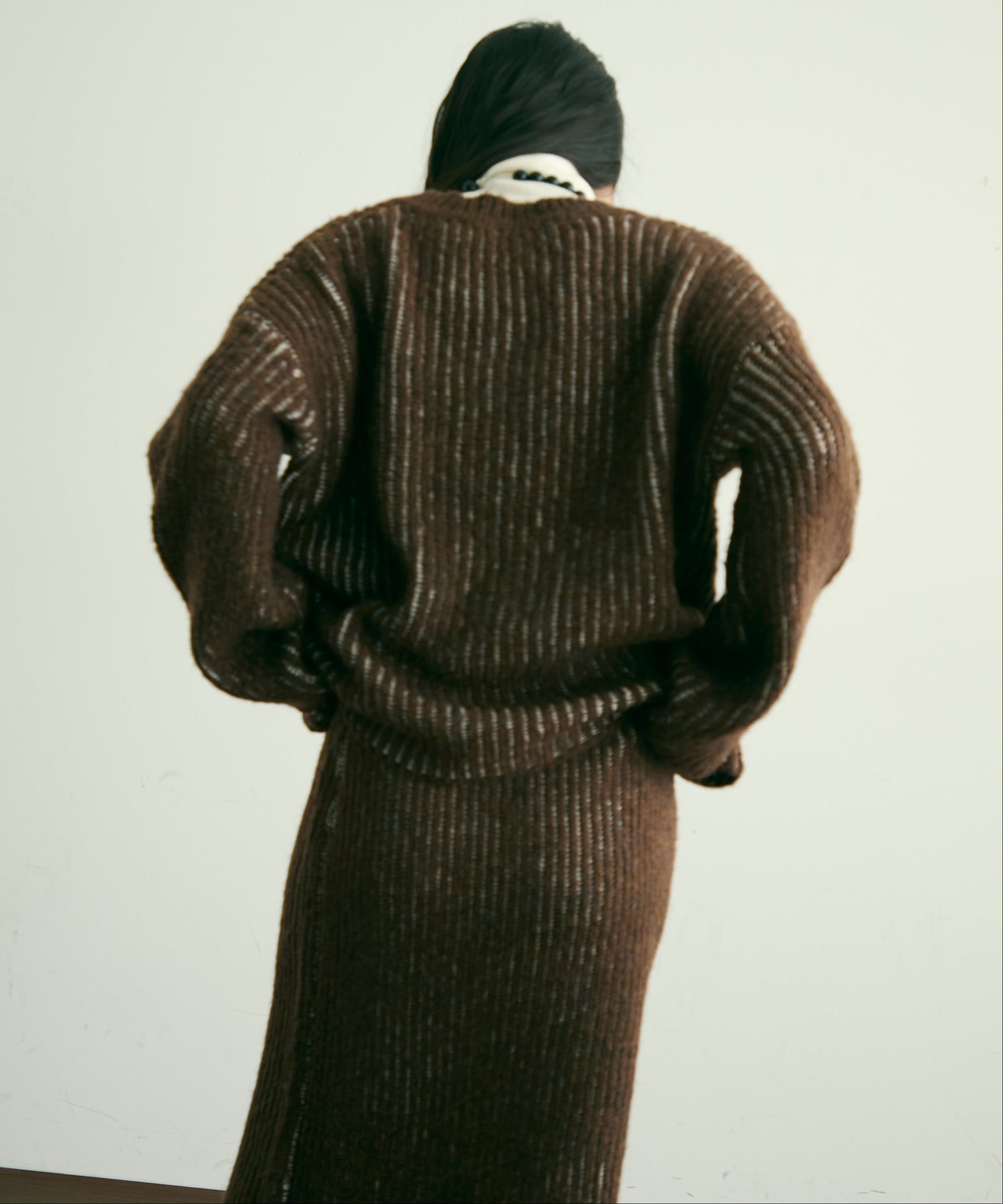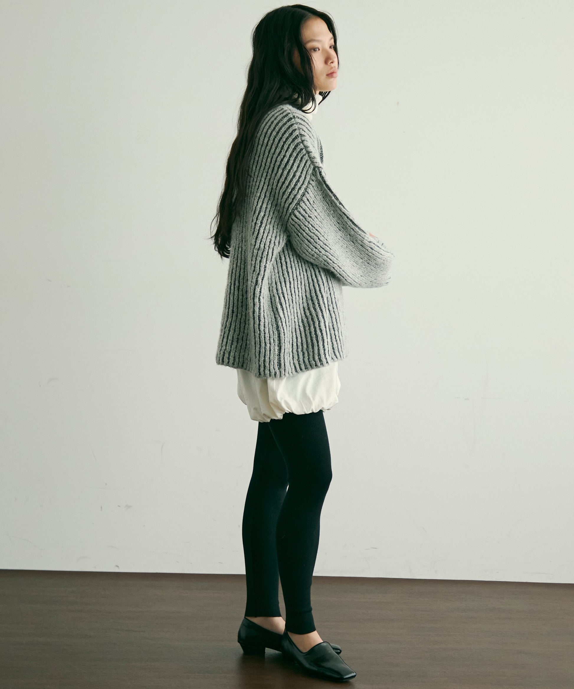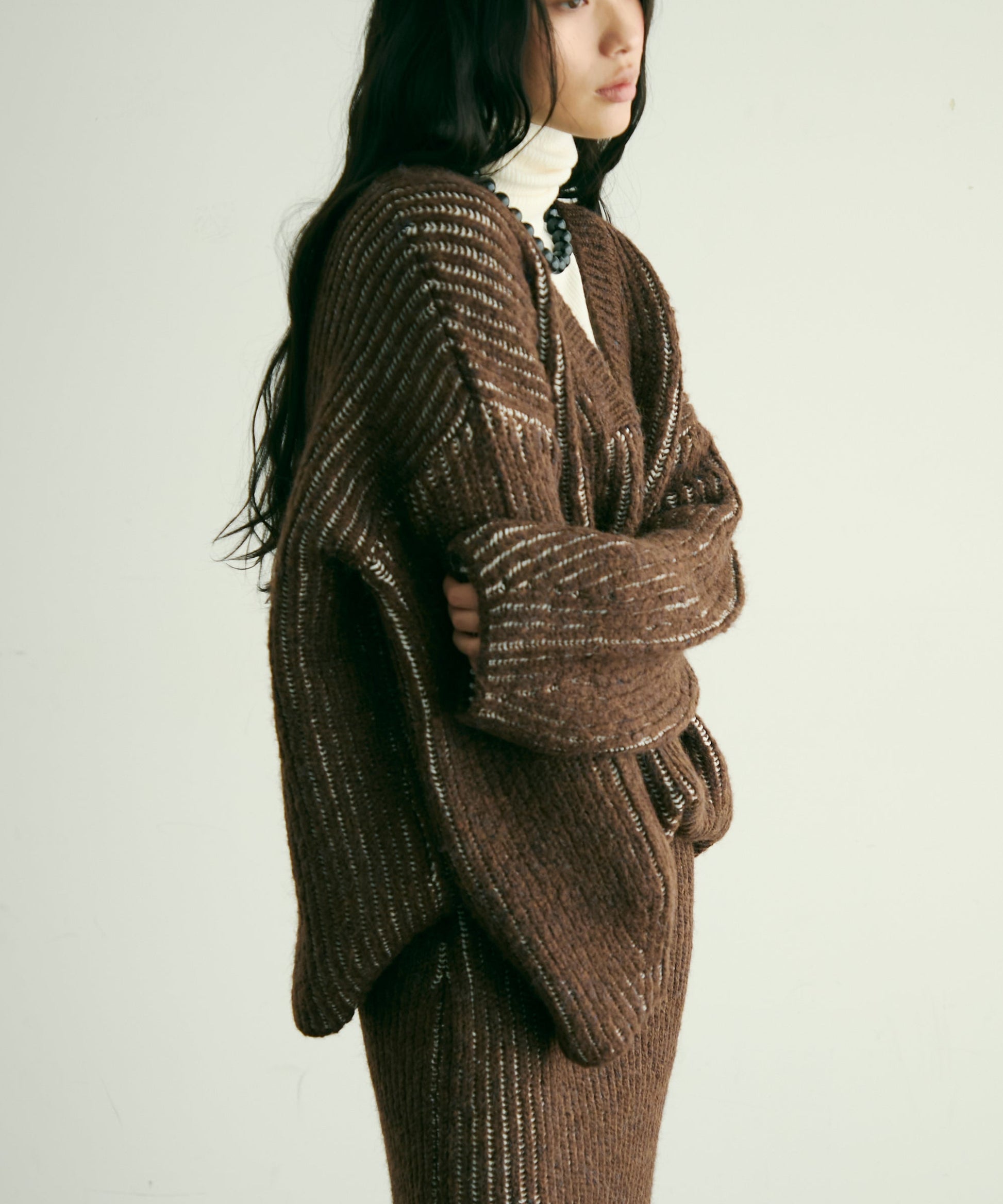 立体感のある両畦編みとストライプ柄が、シンプルながらも洗練された印象を演出します。