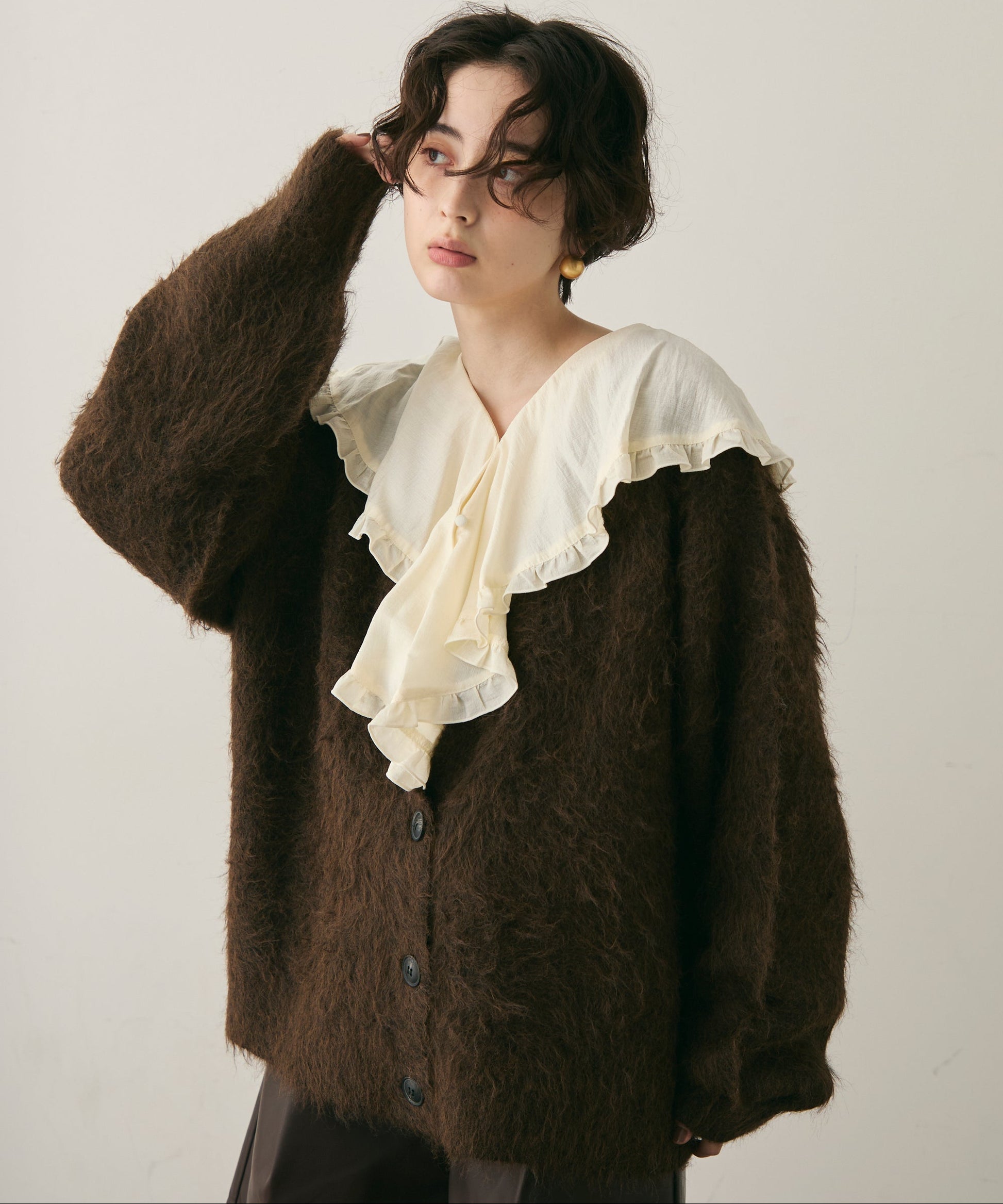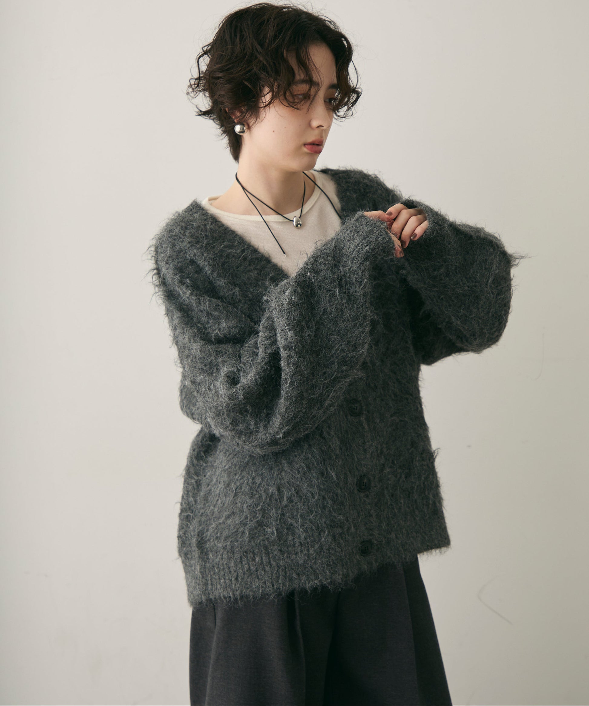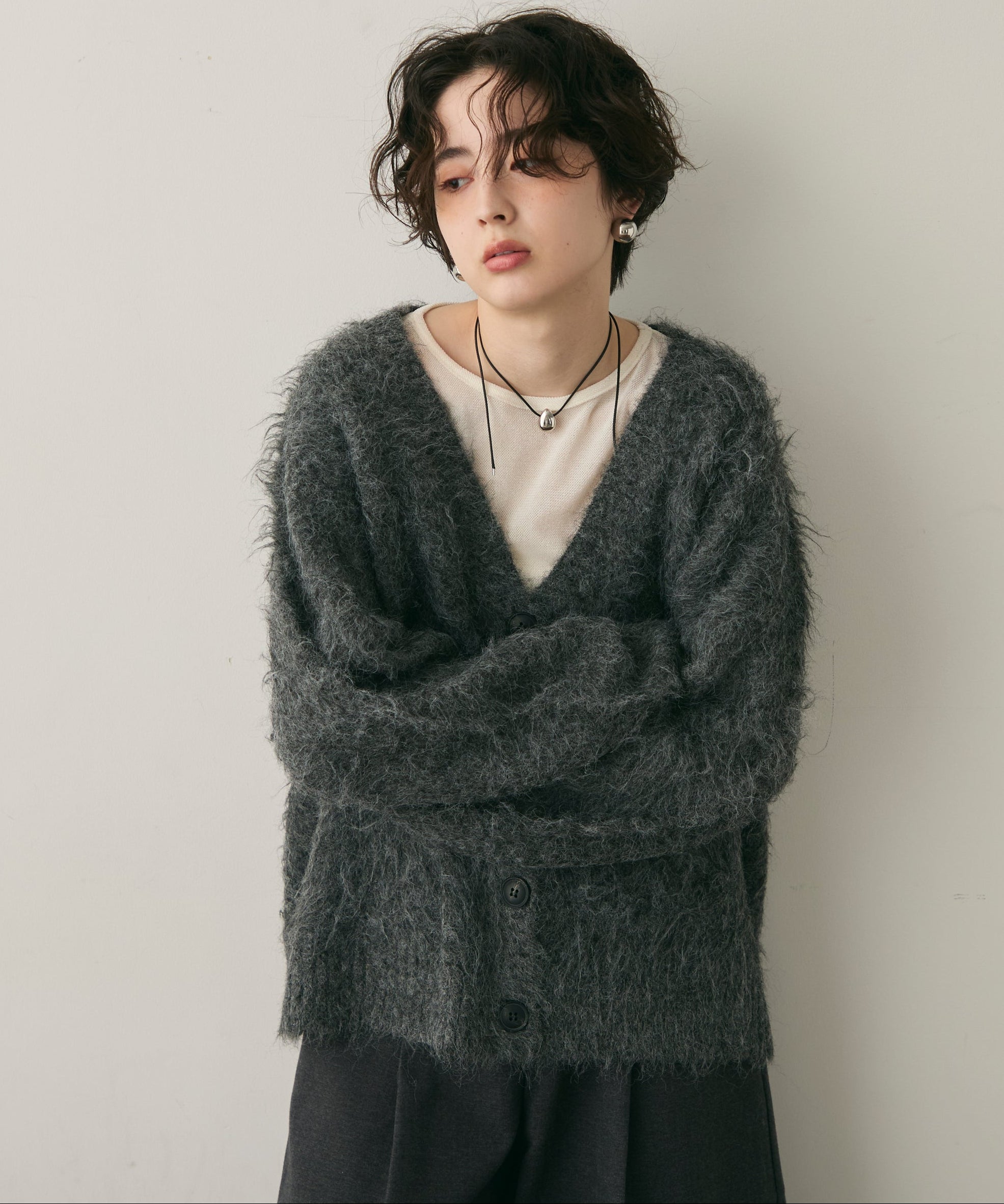 もこもことした“イエティシャギー”素材が魅力のVネックカーディガン。