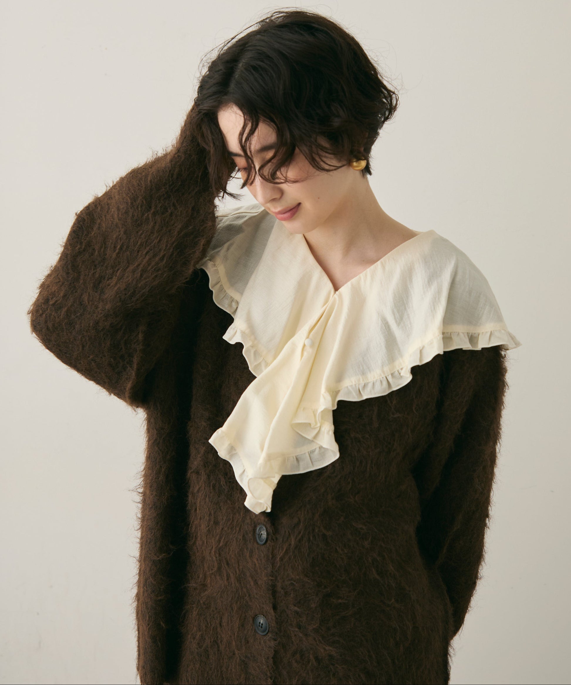 羽織るだけで季節感とトレンド感を演出し、思わず触れたくなるようなふわふわの質感がポイントです。