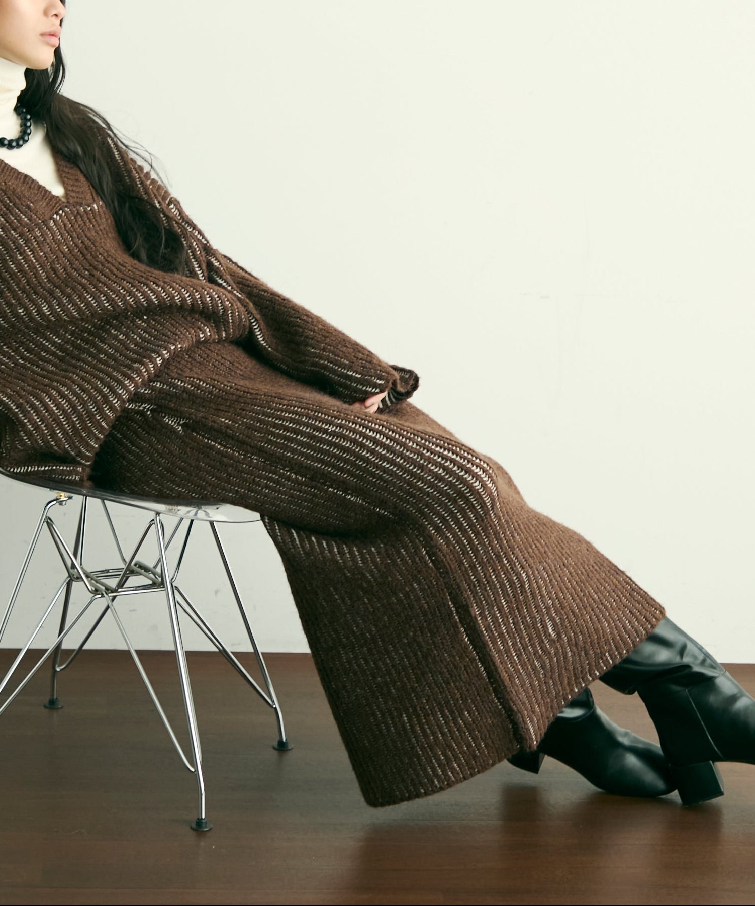 カジュアルにもきれいめにも合わせやすく、秋冬のスタイリングに重宝する一枚です。