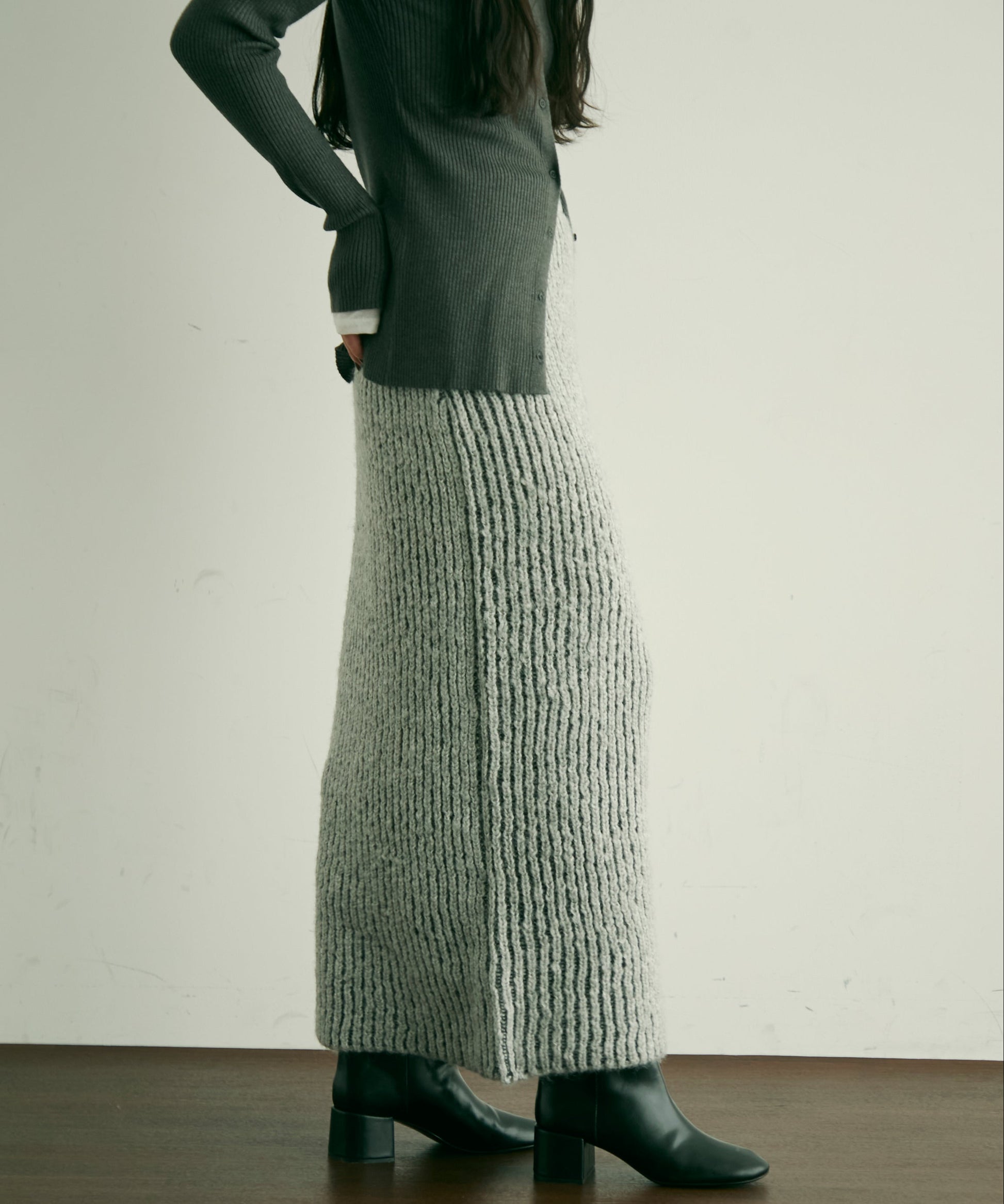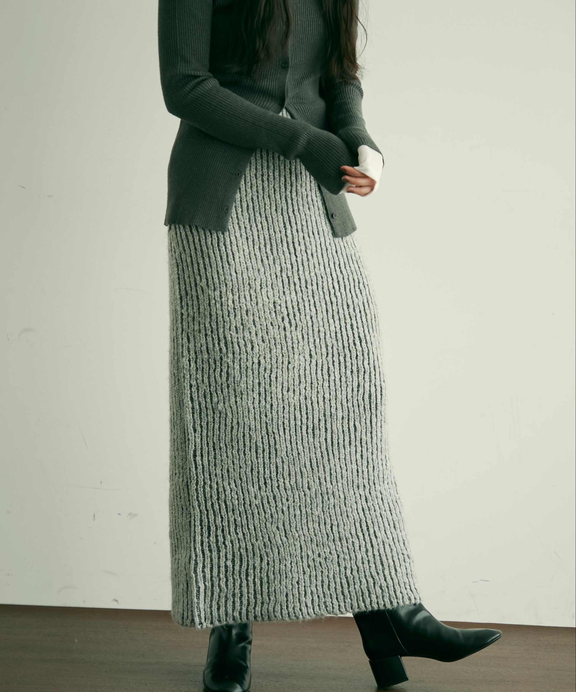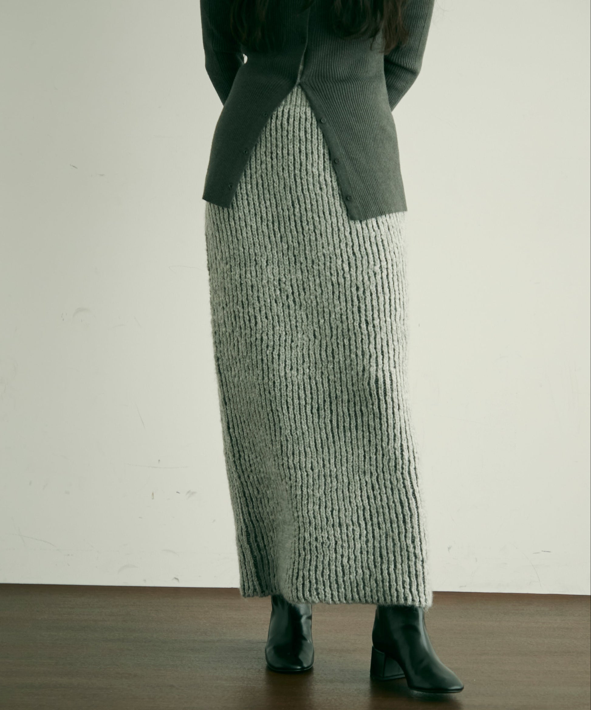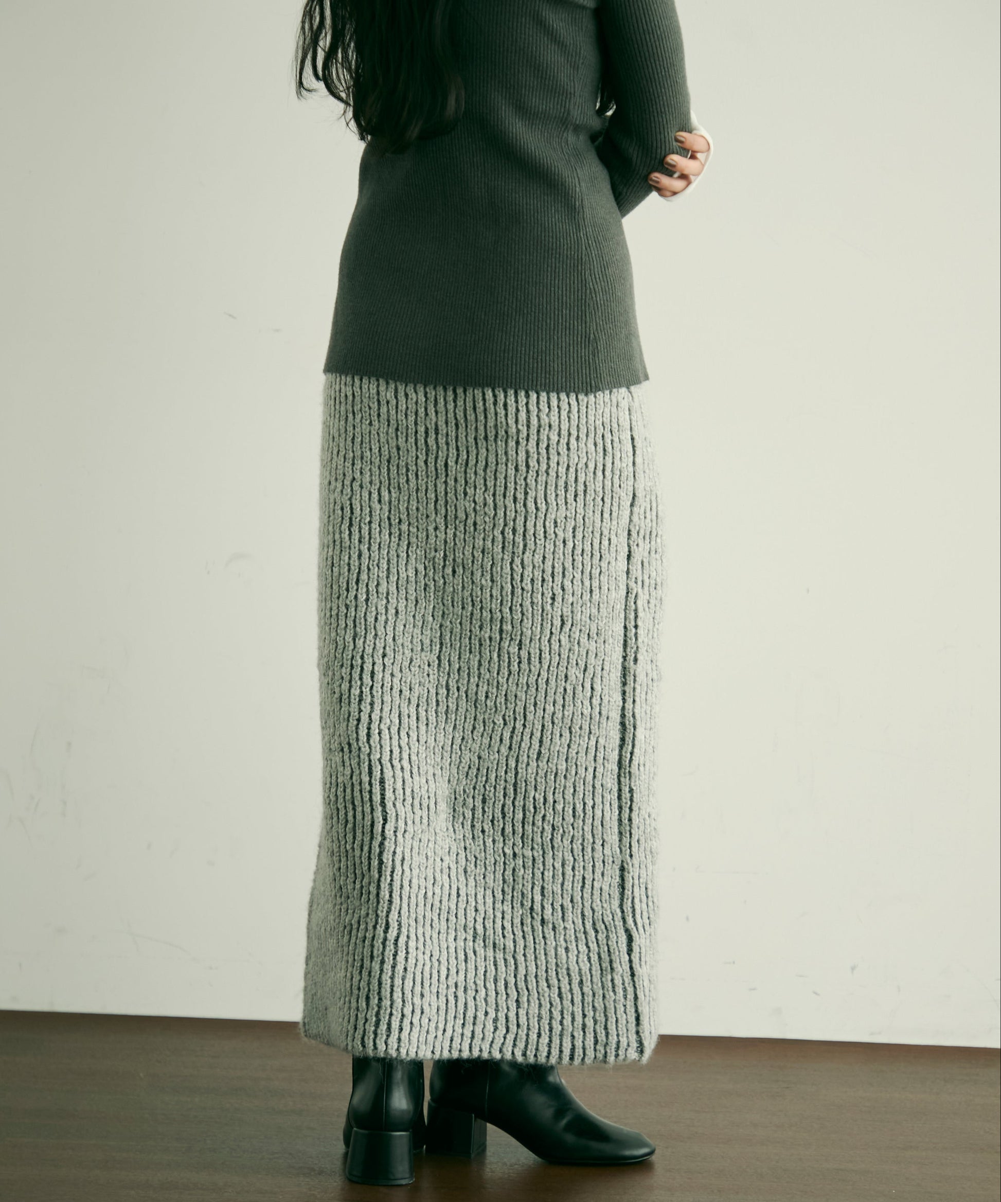 ふんわりとしたアルパカタッチの素材感が魅力のタイトスカート。
