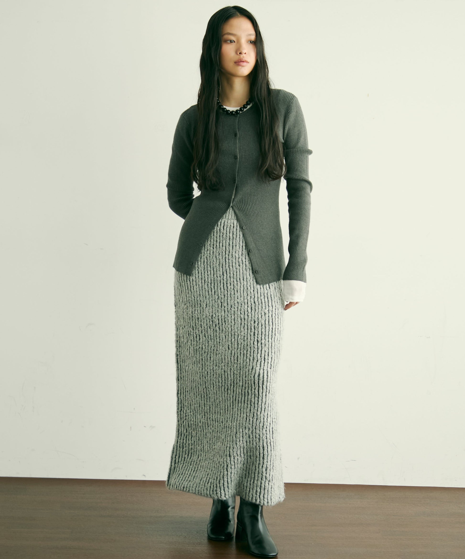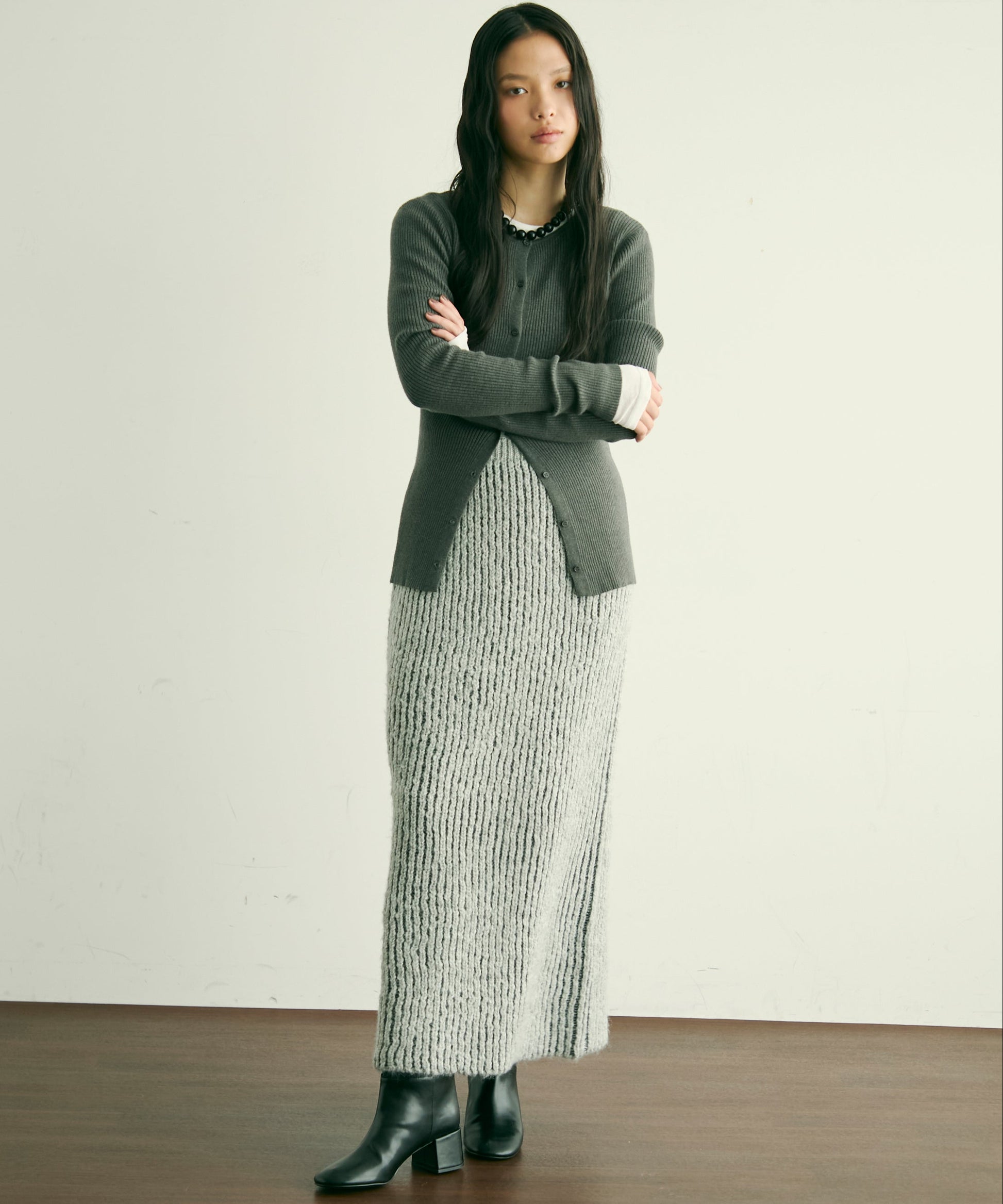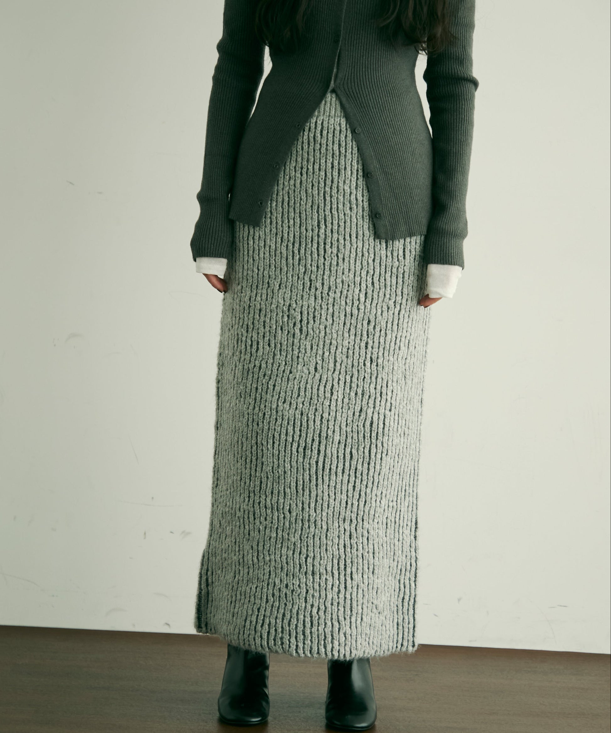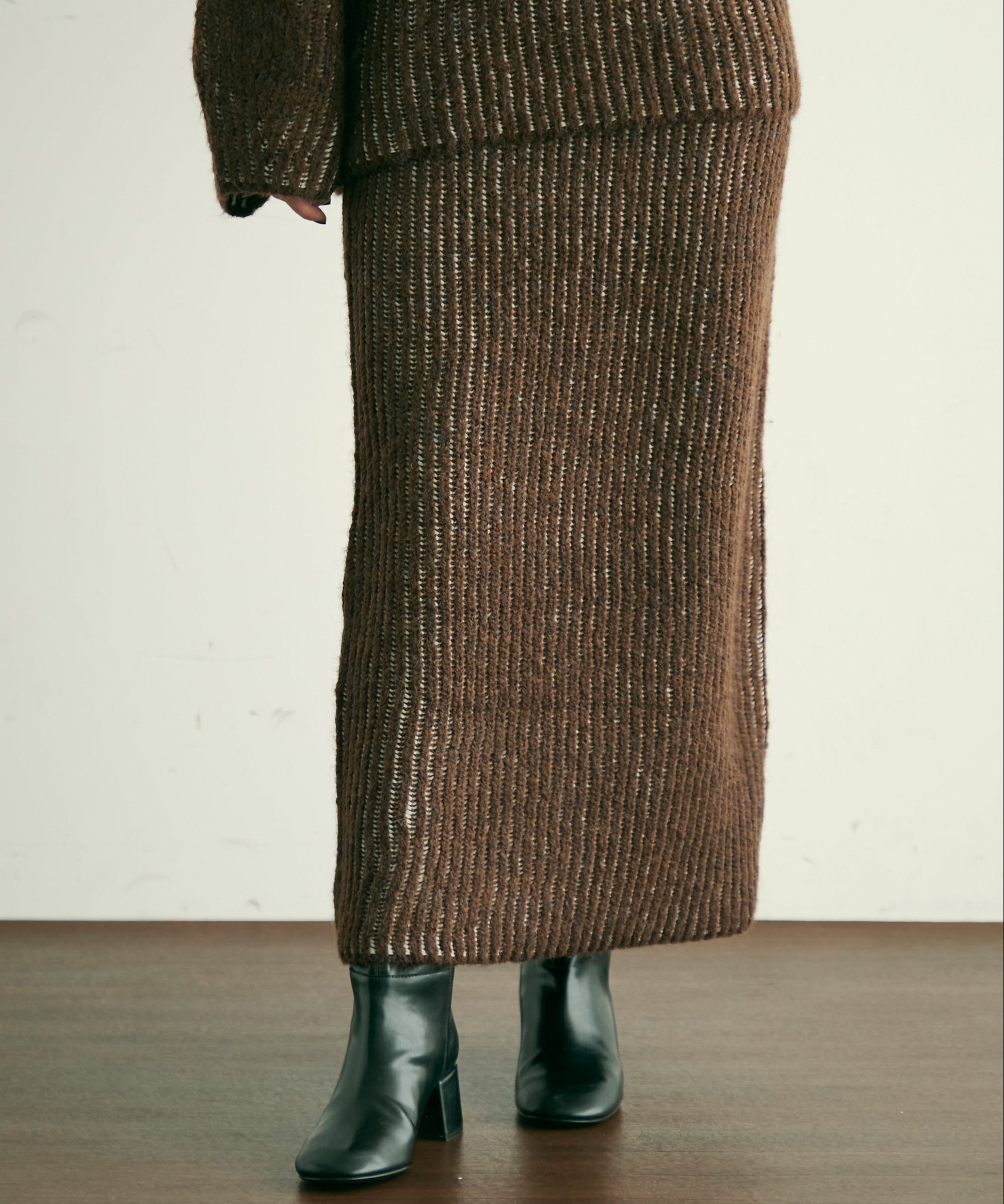 ふんわりとしたアルパカタッチの素材感が魅力のタイトスカート。