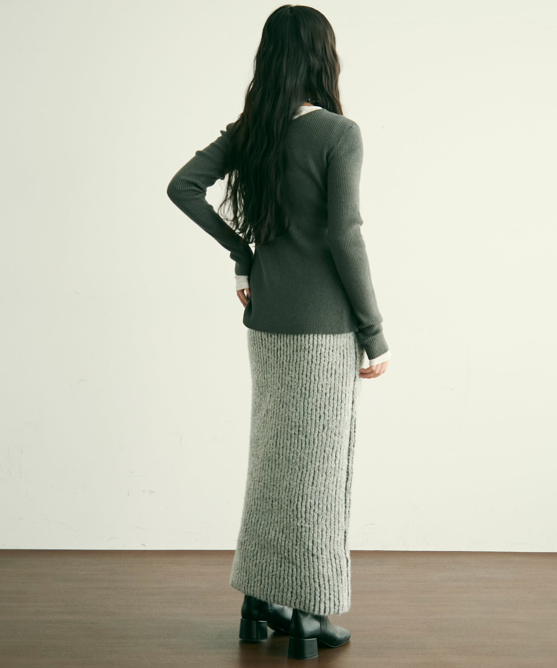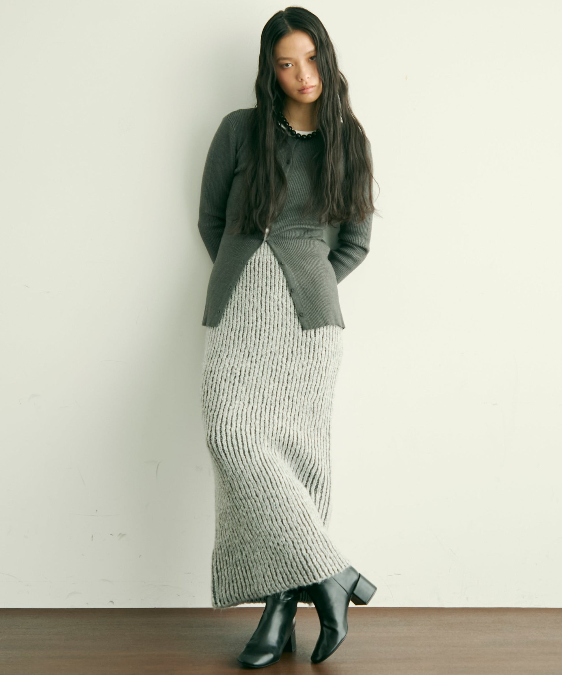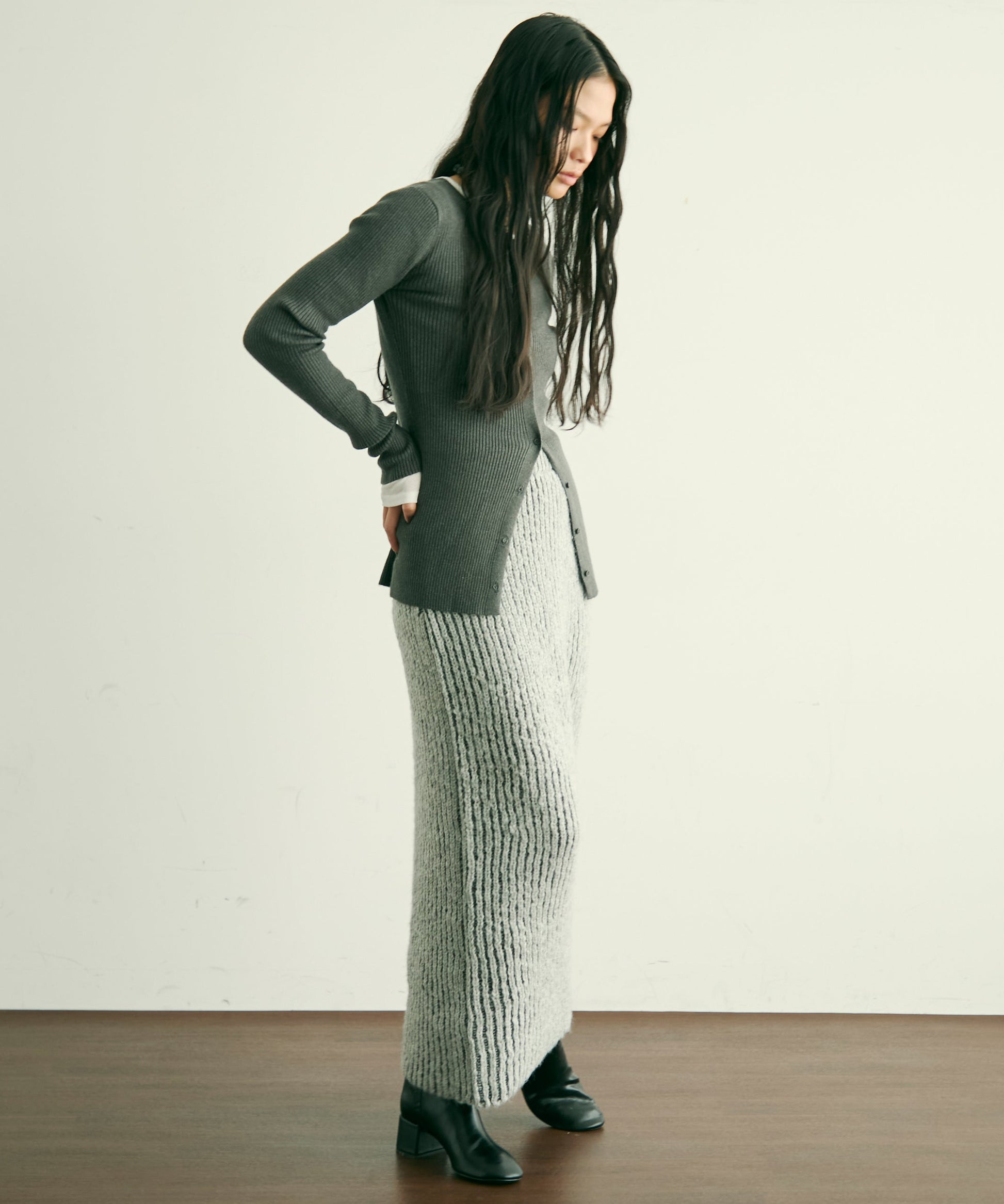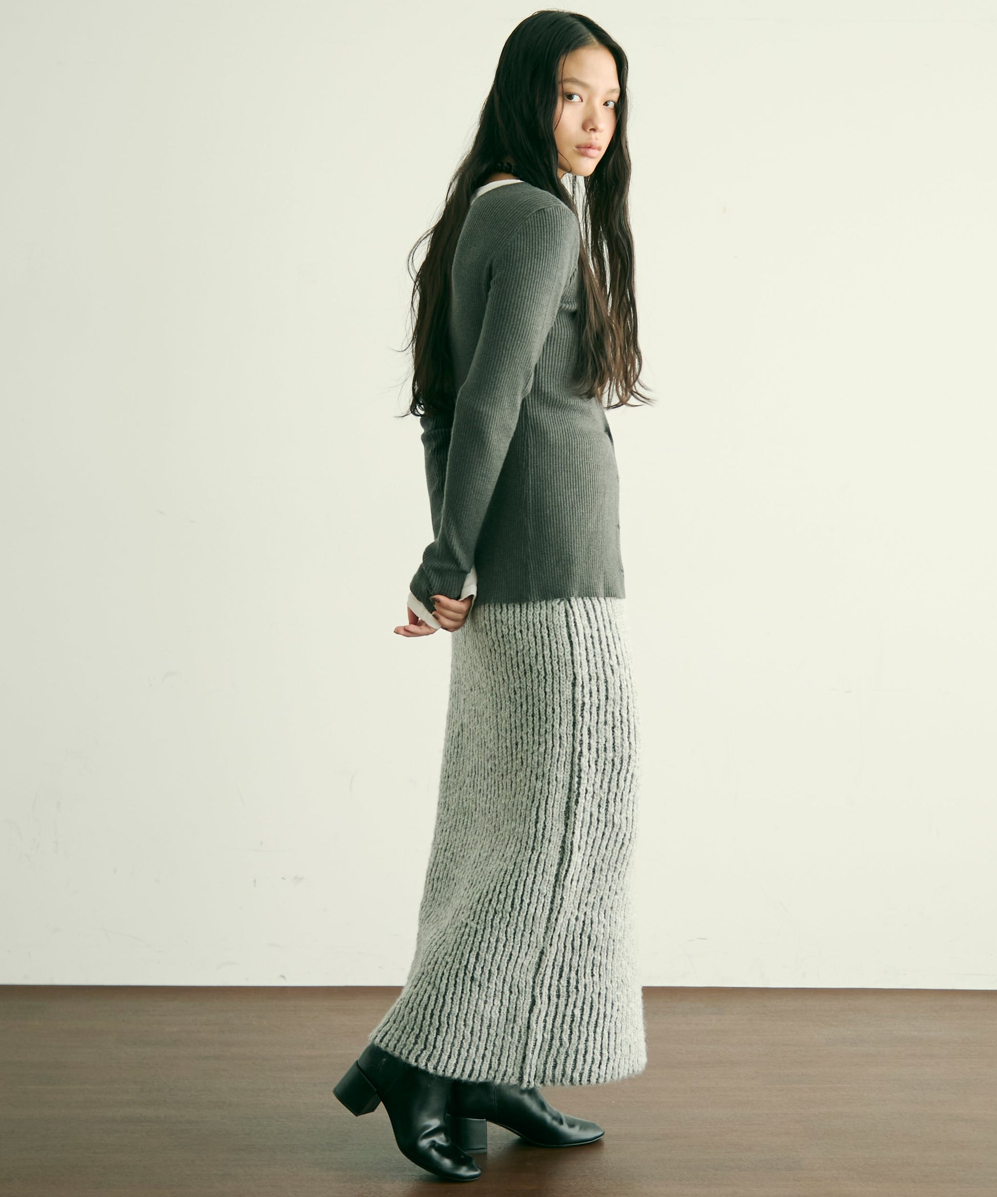 ふんわりとしたアルパカタッチの素材感が魅力のタイトスカート。