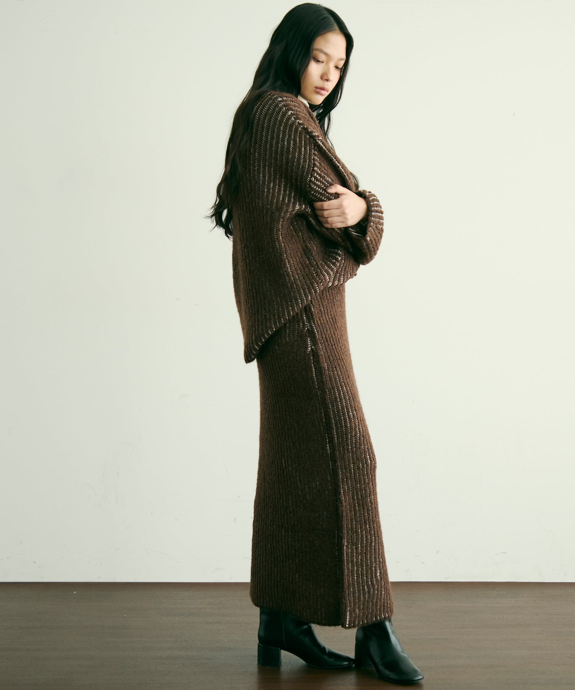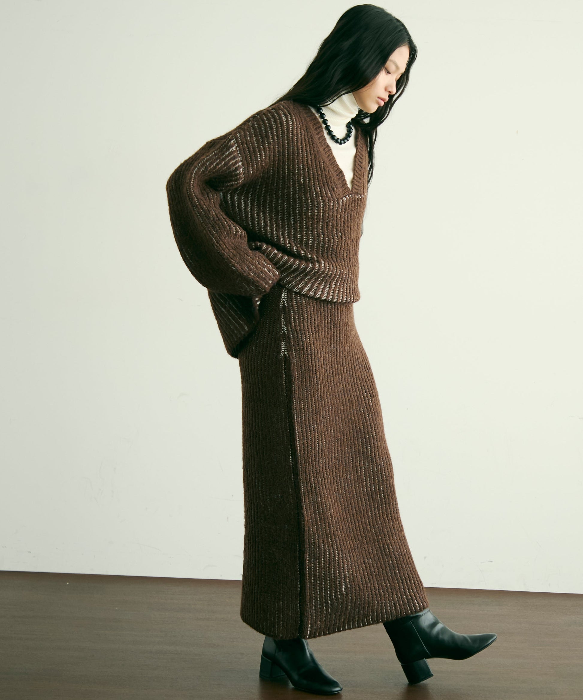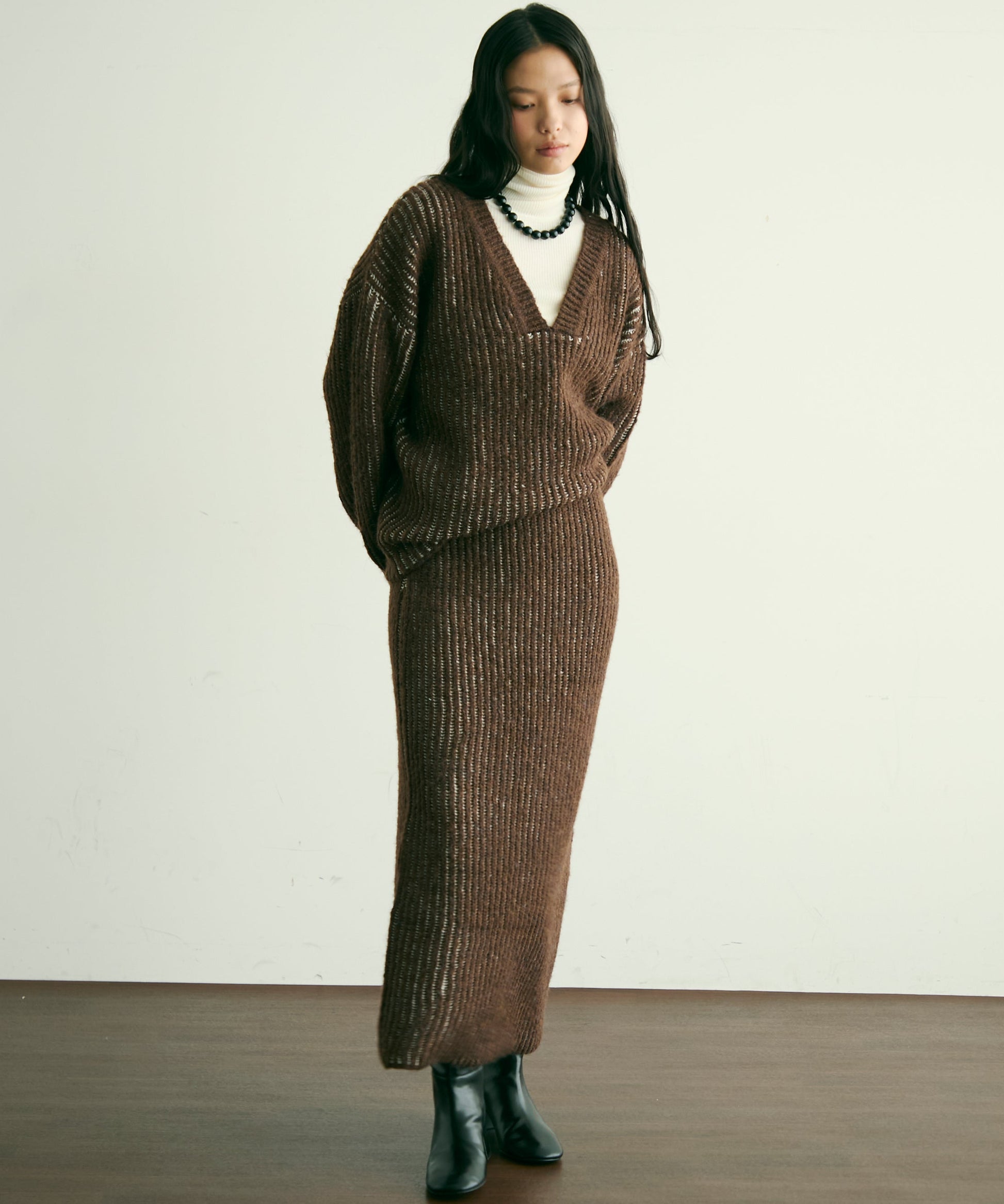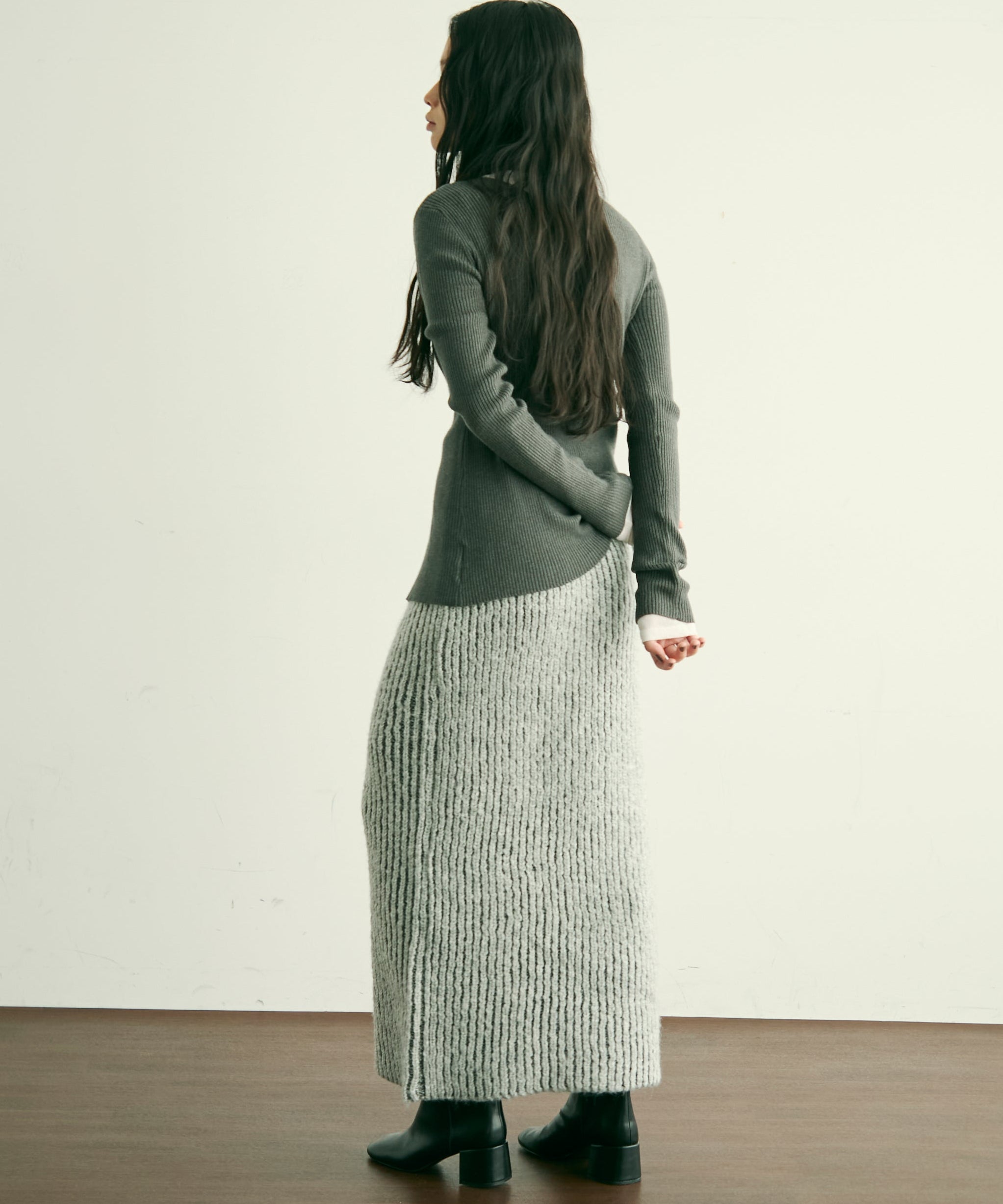 ふんわりとしたアルパカタッチの素材感が魅力のタイトスカート。
