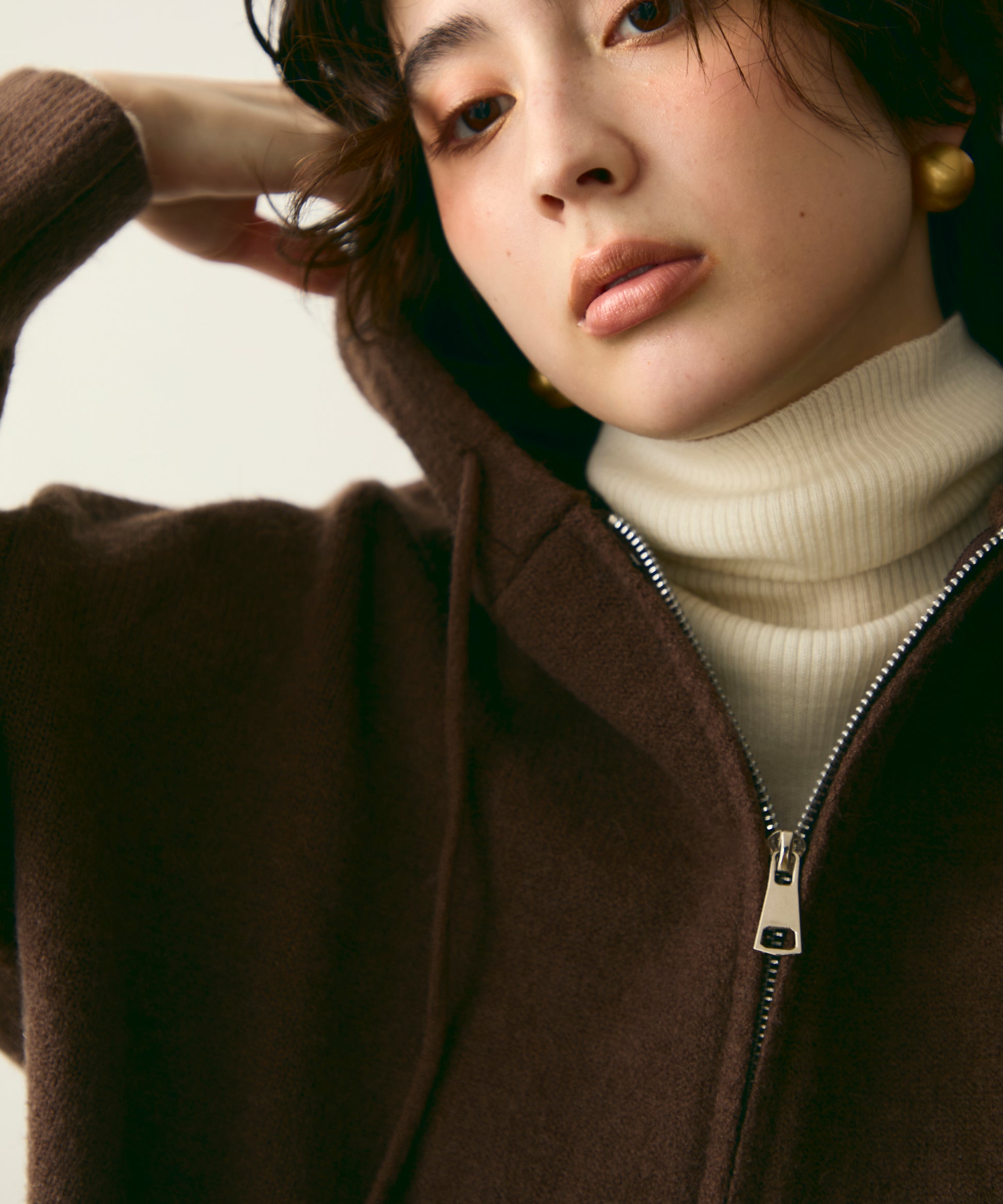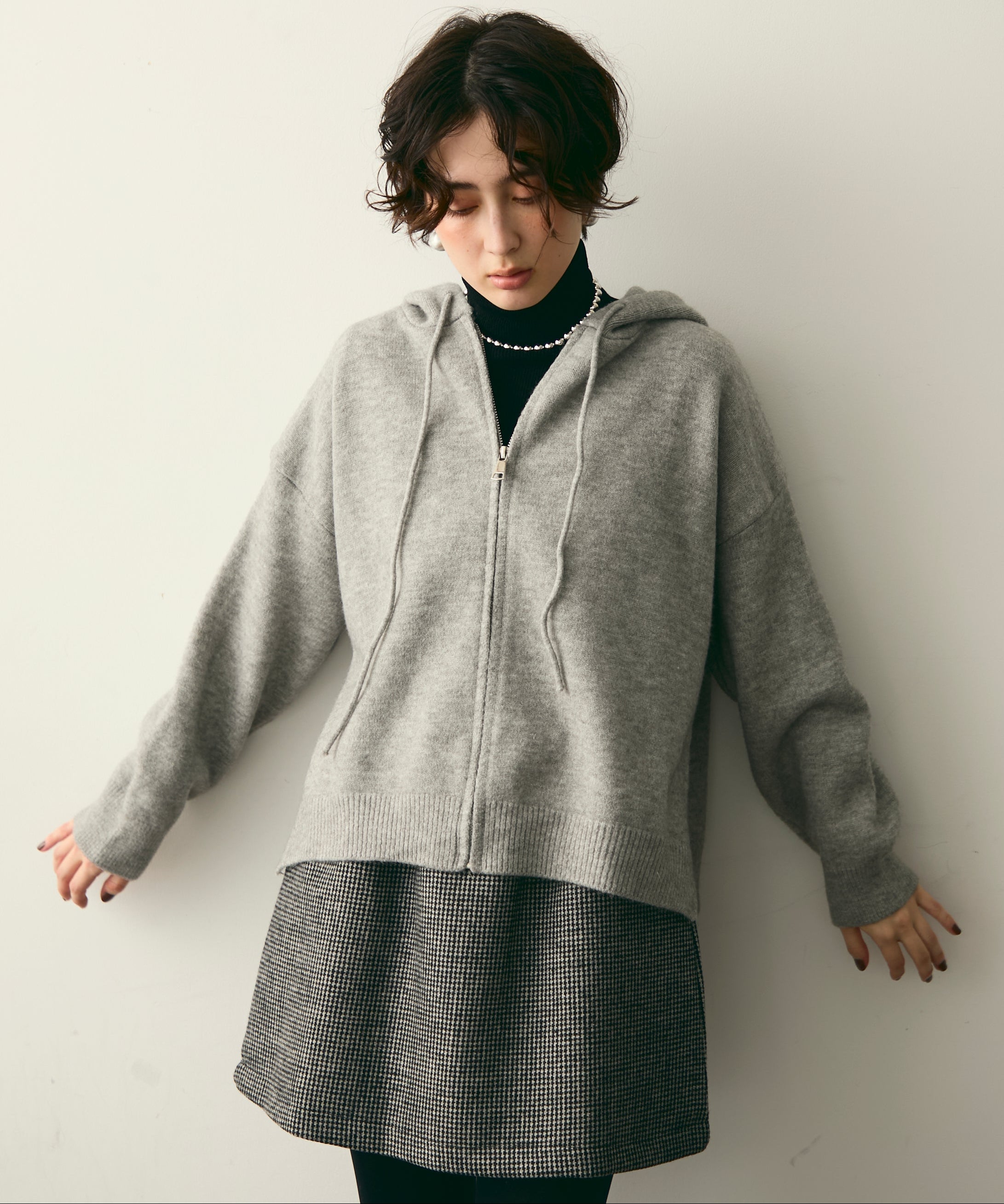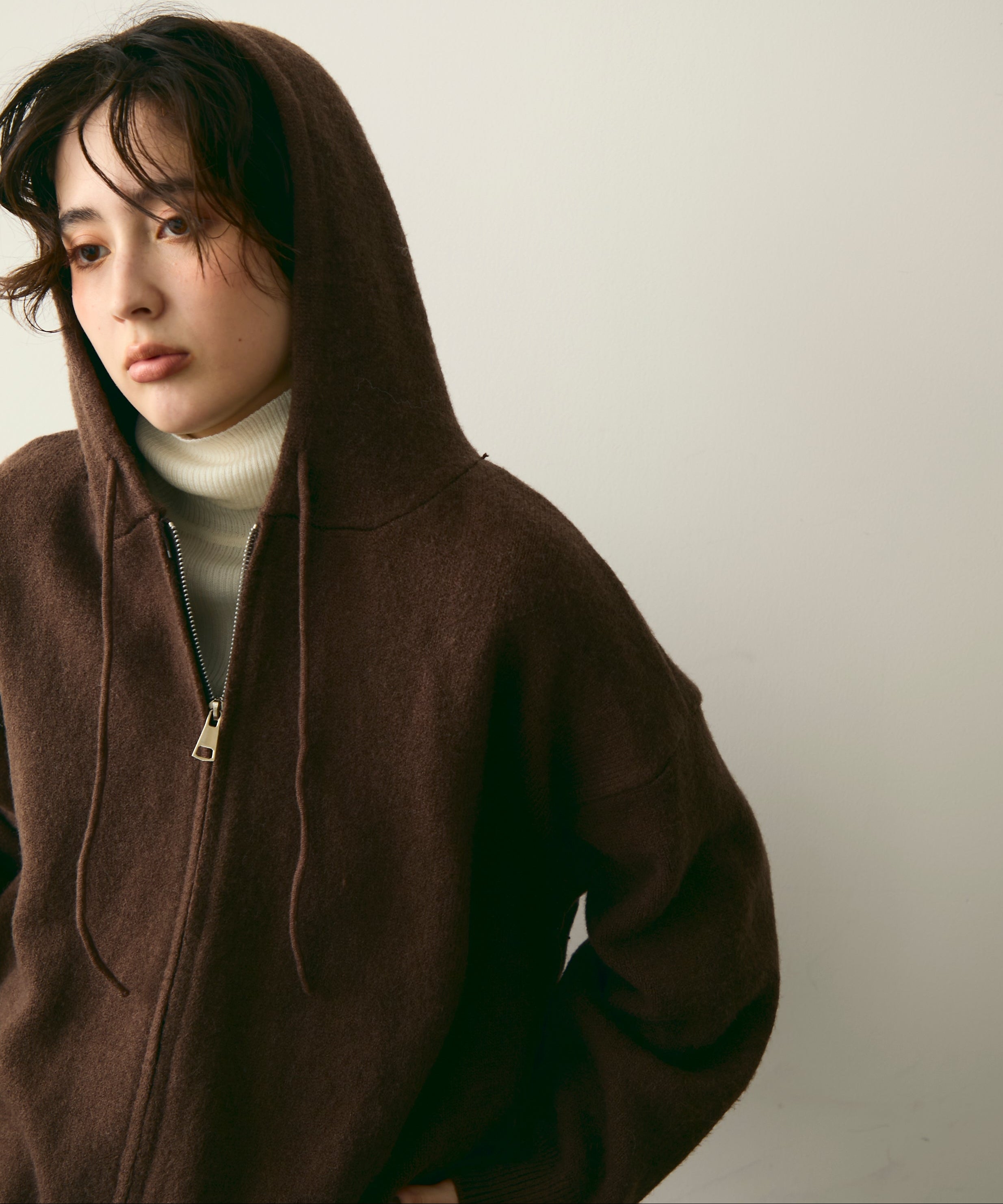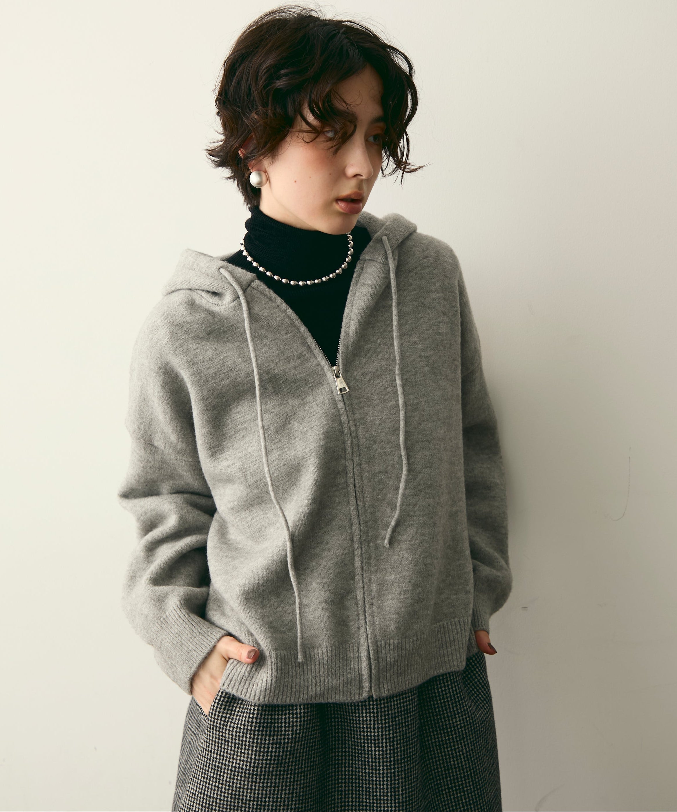 表情豊かなメランジニット素材を使用した、カジュアルで着回しやすいZIPパーカーです。