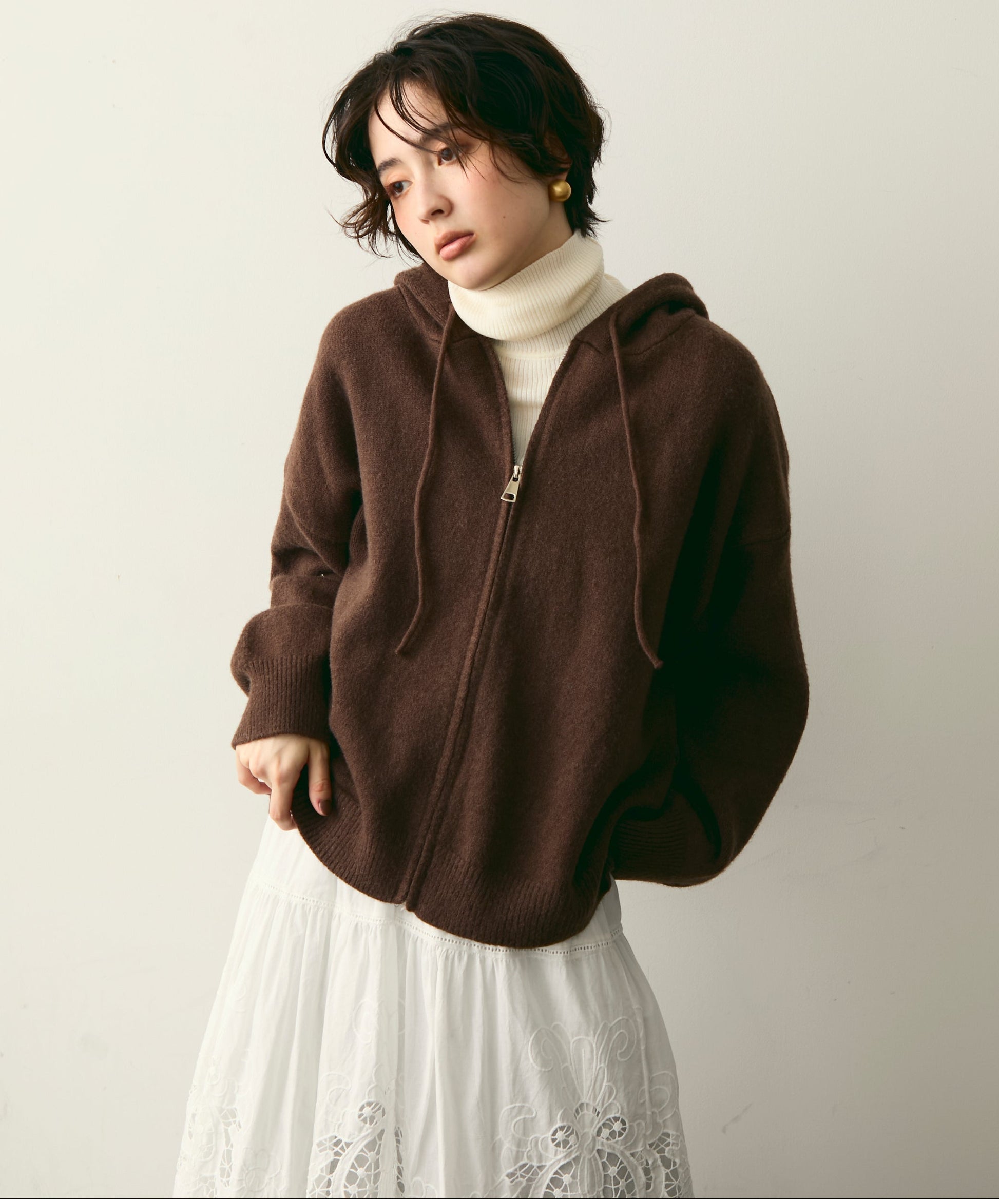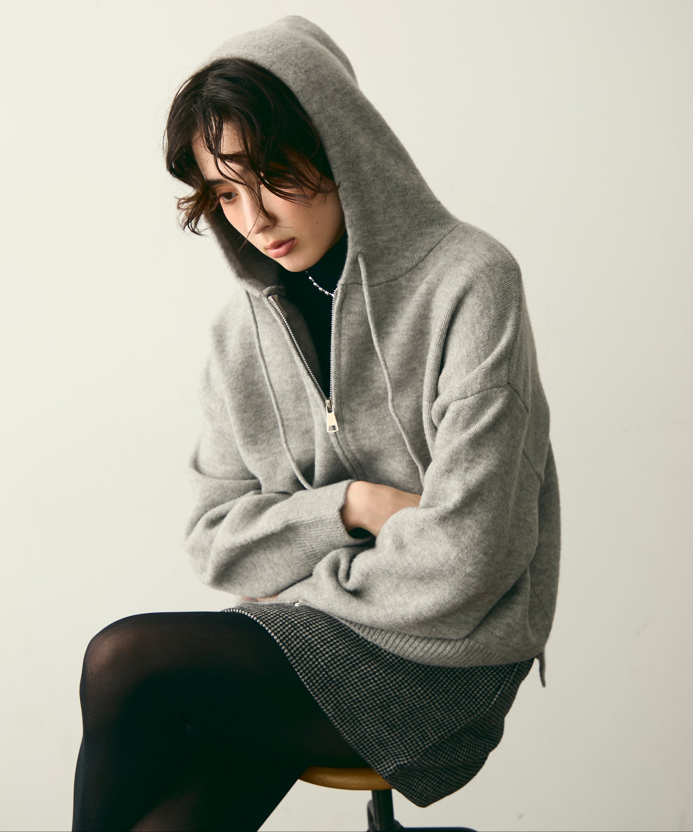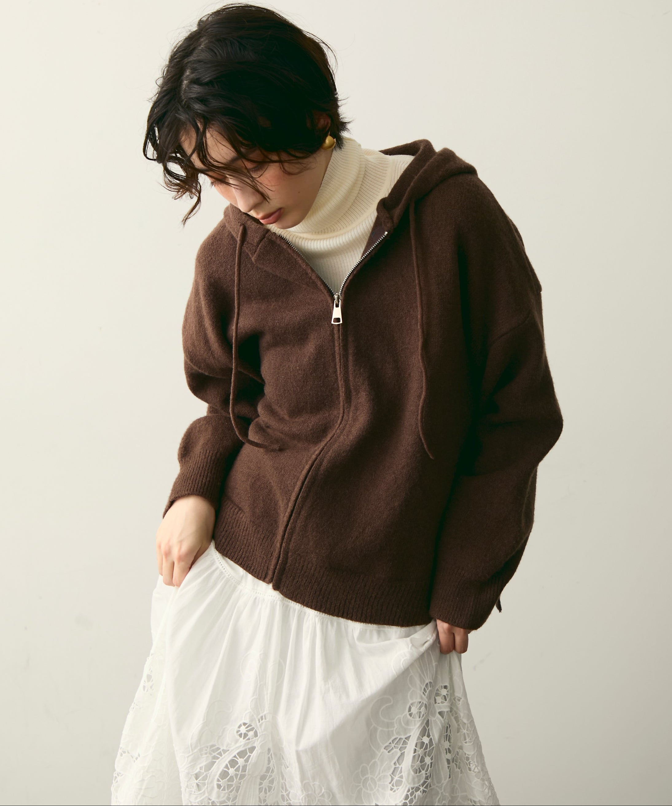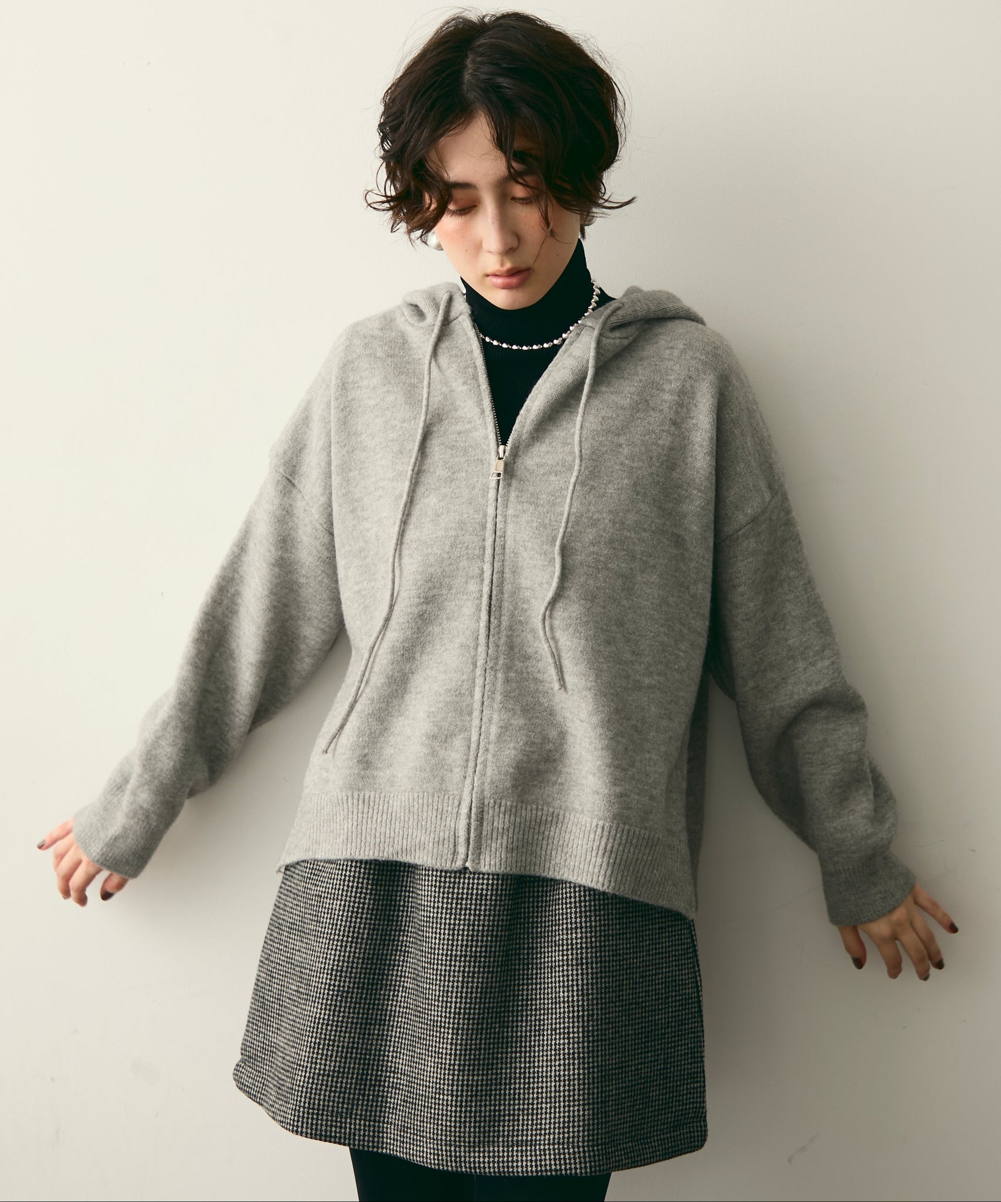 表情豊かなメランジニット素材を使用した、カジュアルで着回しやすいZIPパーカーです。