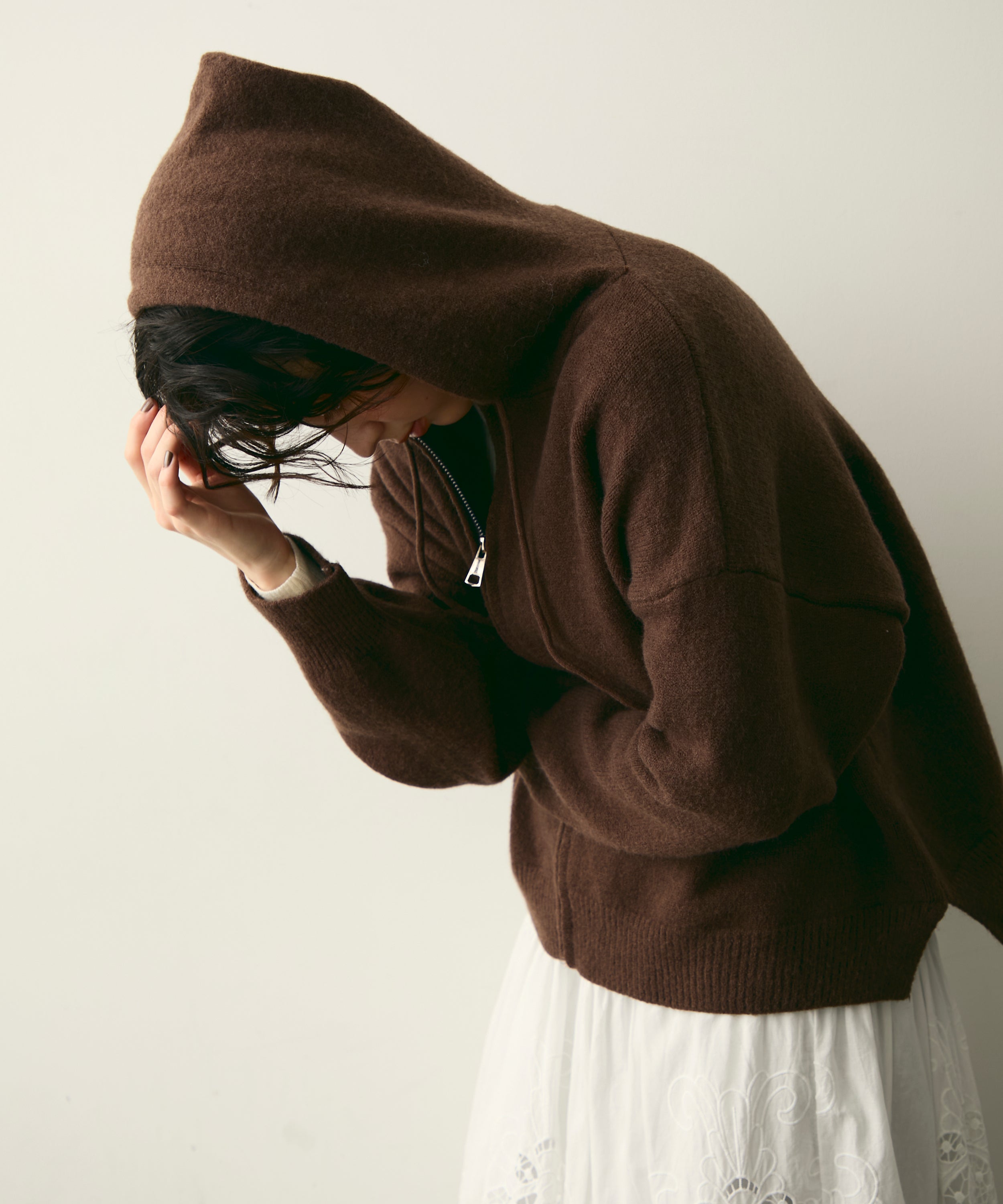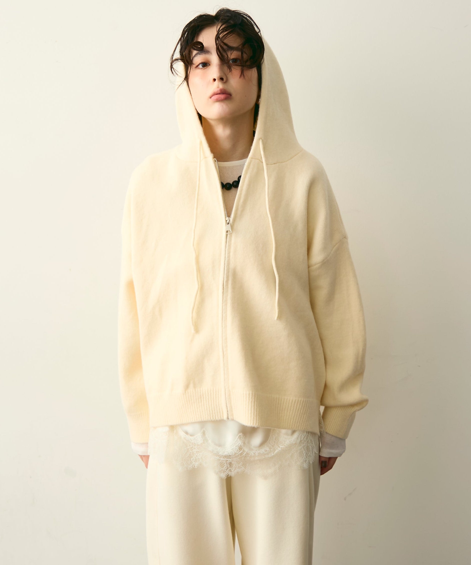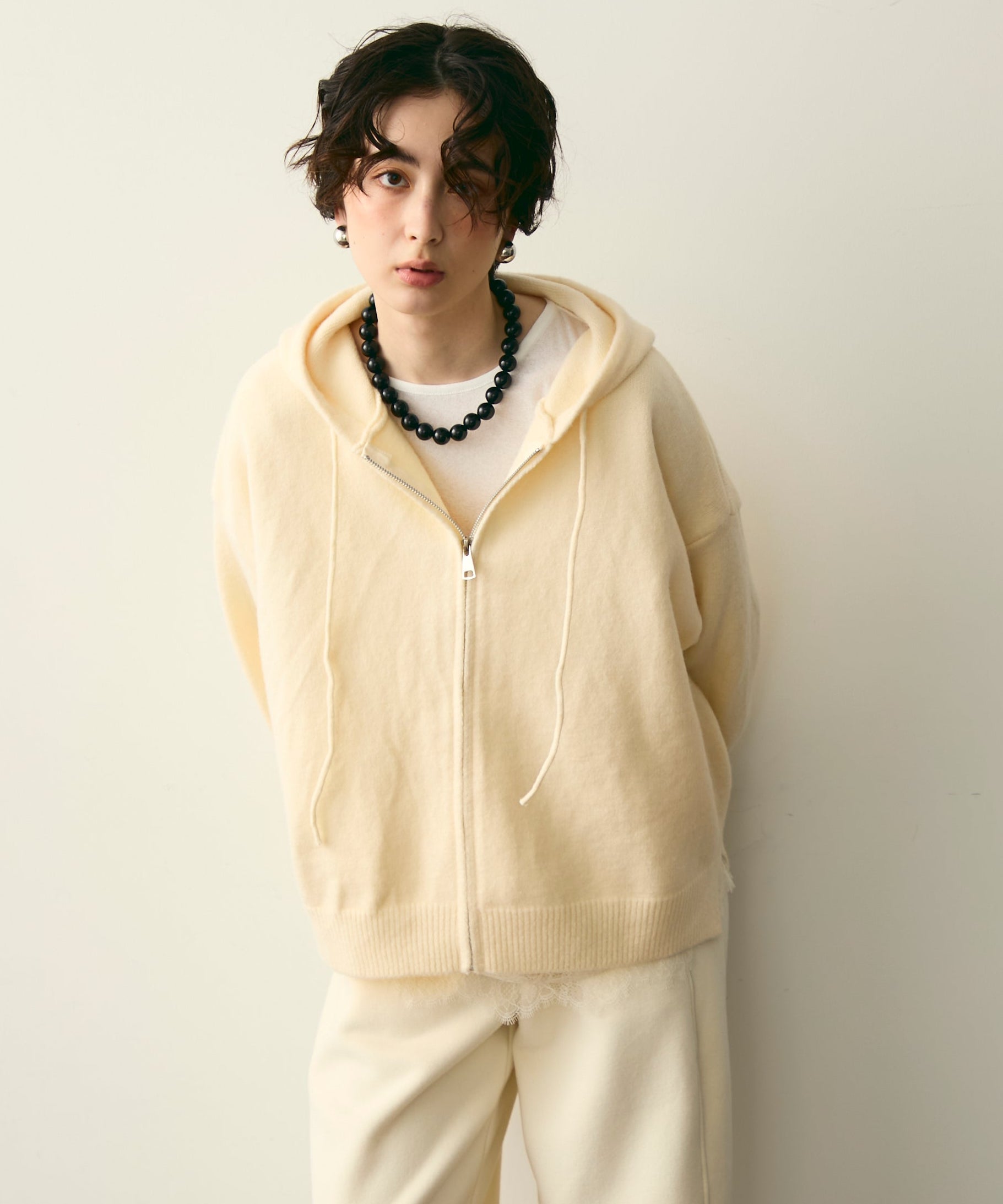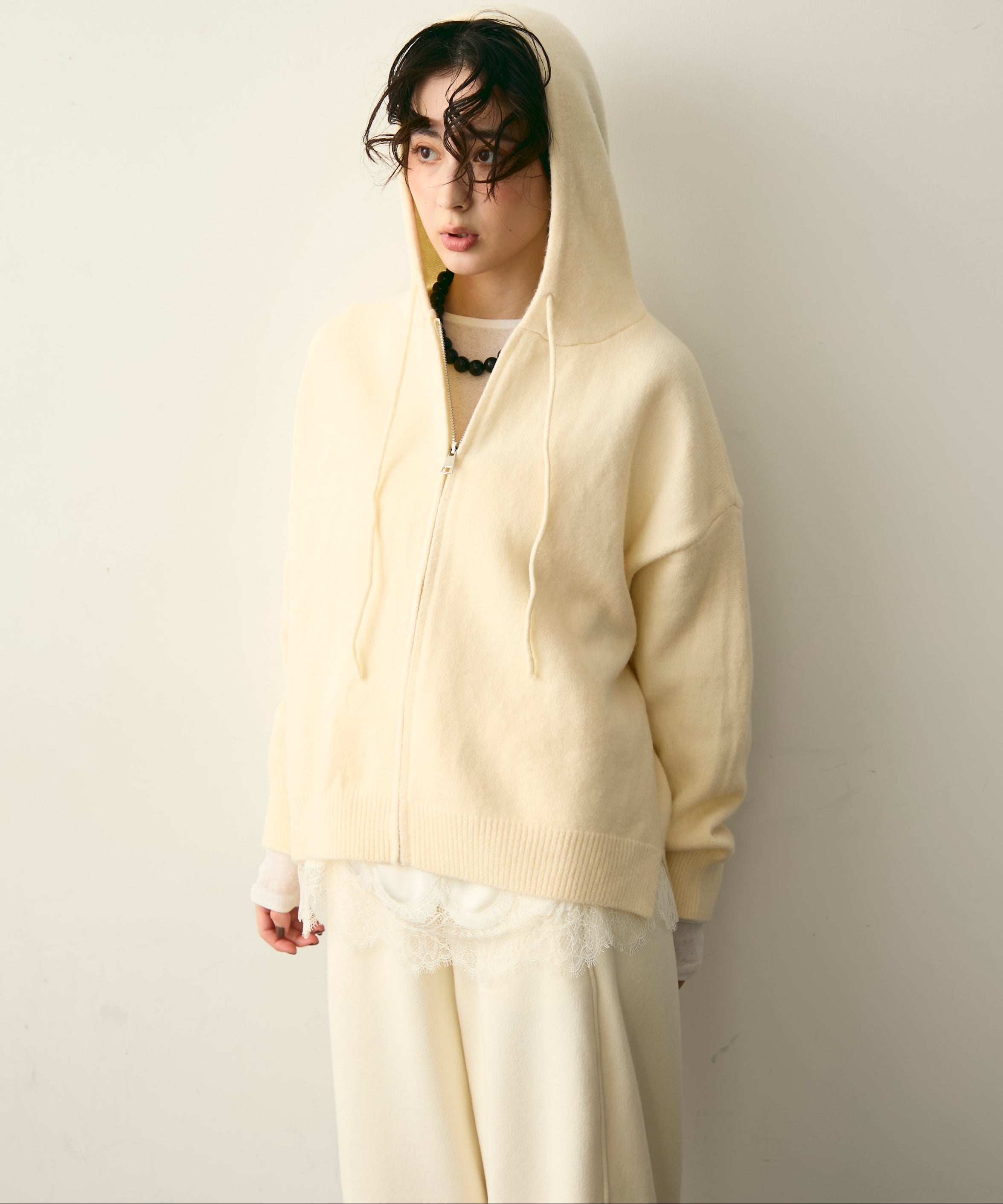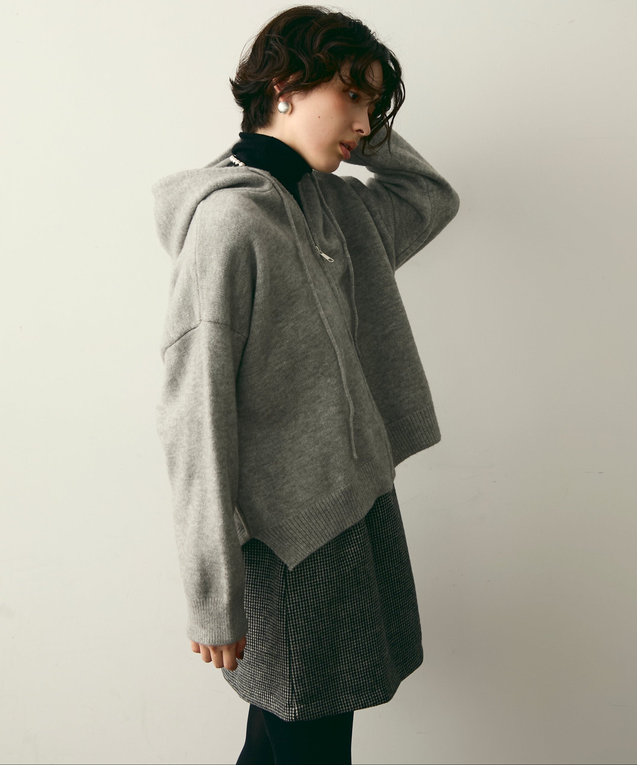 表情豊かなメランジニット素材を使用した、カジュアルで着回しやすいZIPパーカーです。