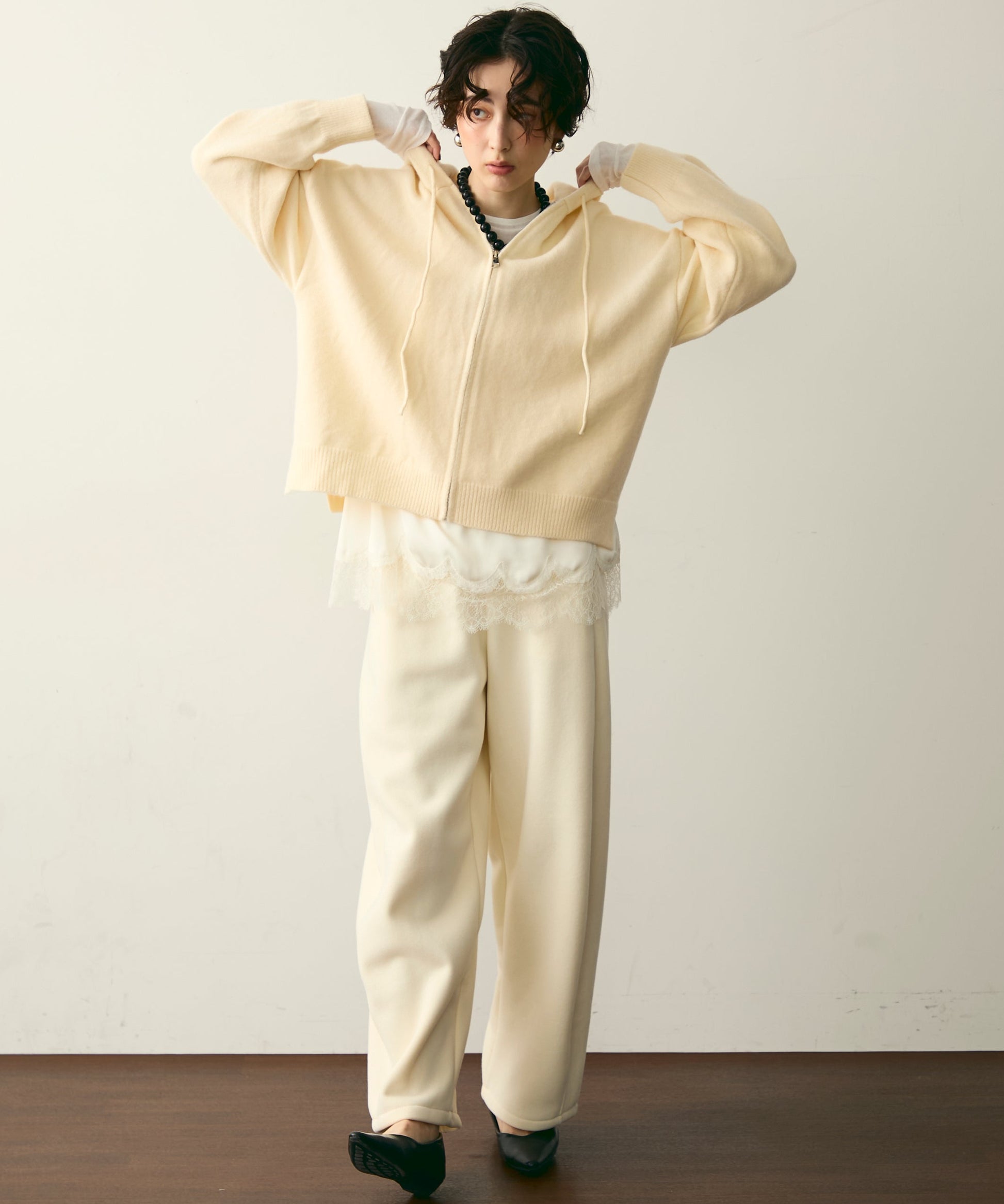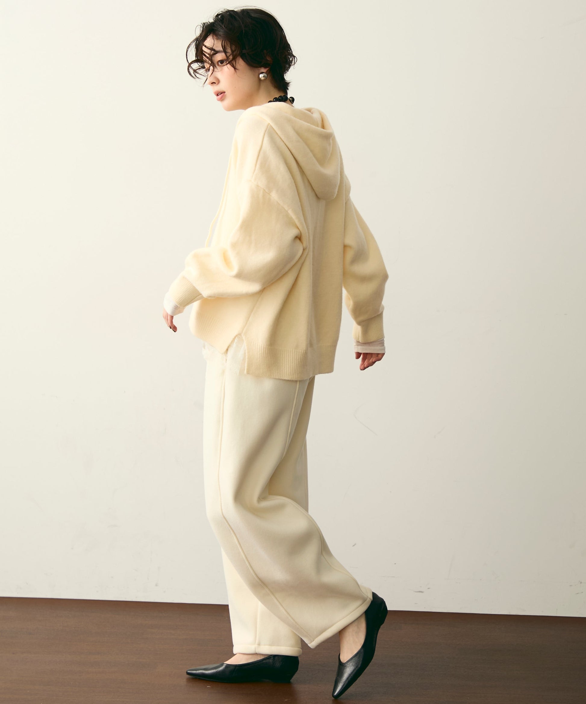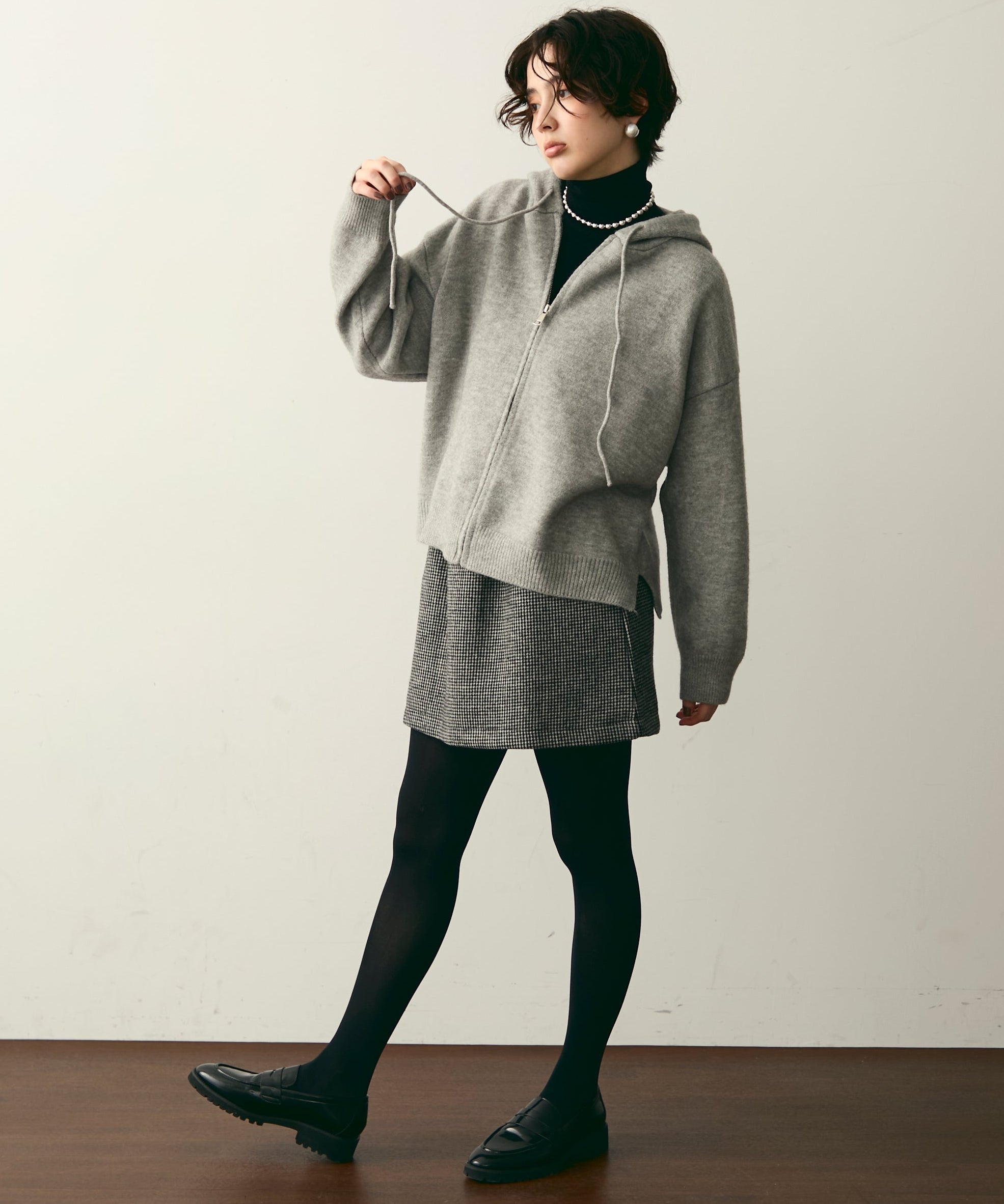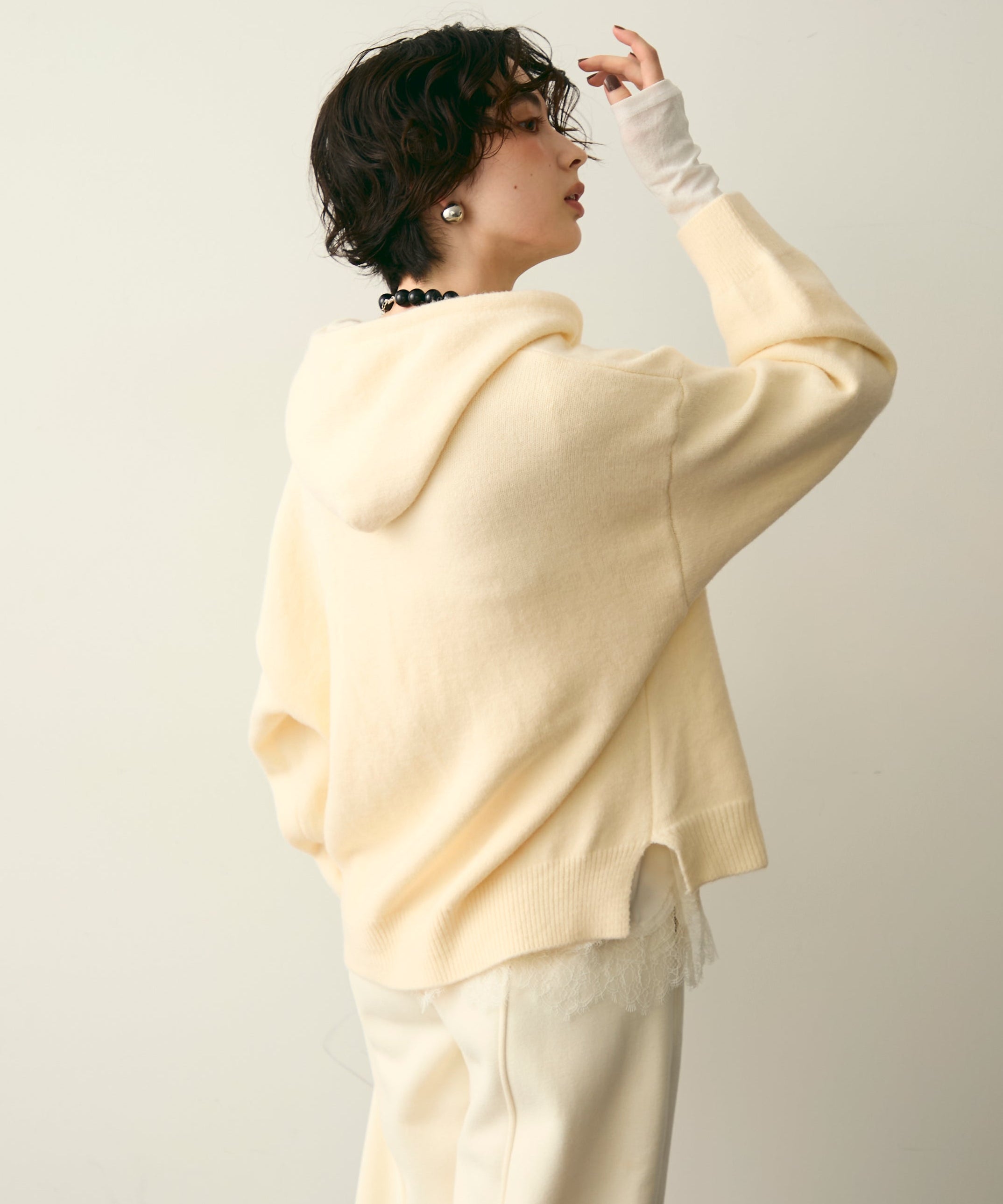 表情豊かなメランジニット素材を使用した、カジュアルで着回しやすいZIPパーカーです。