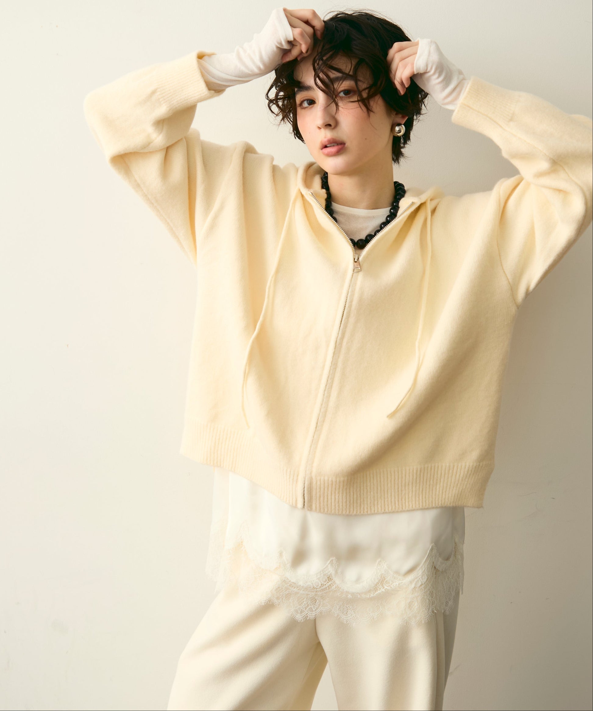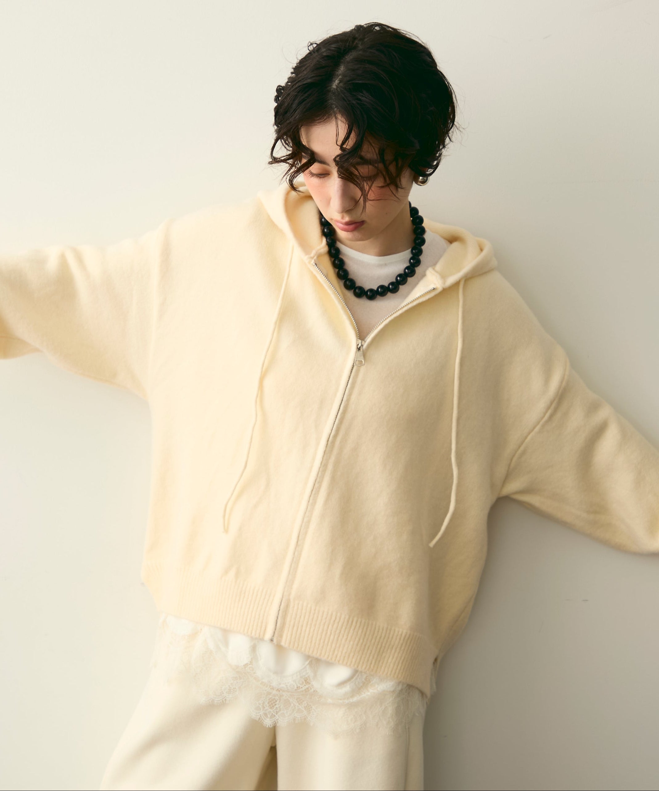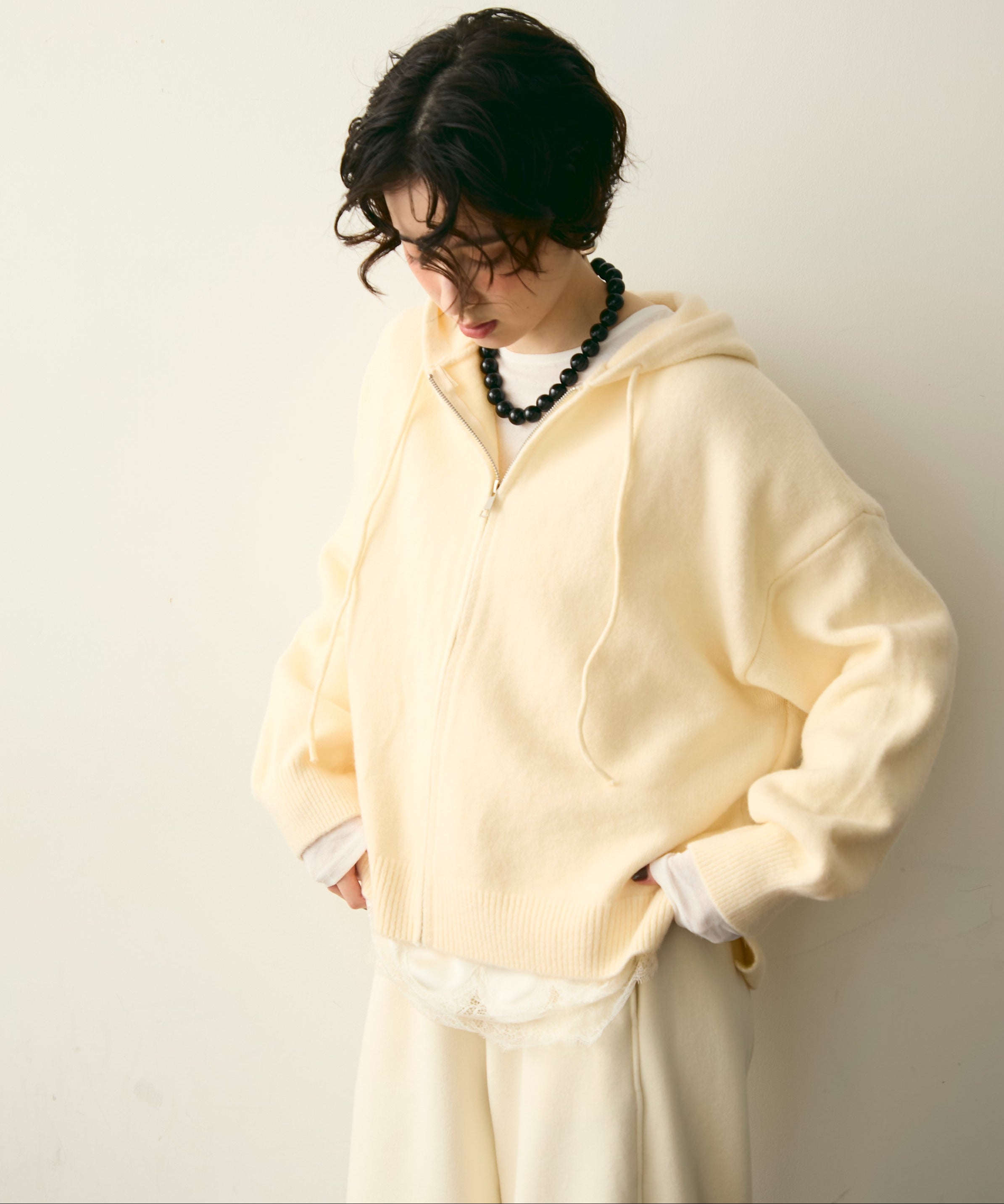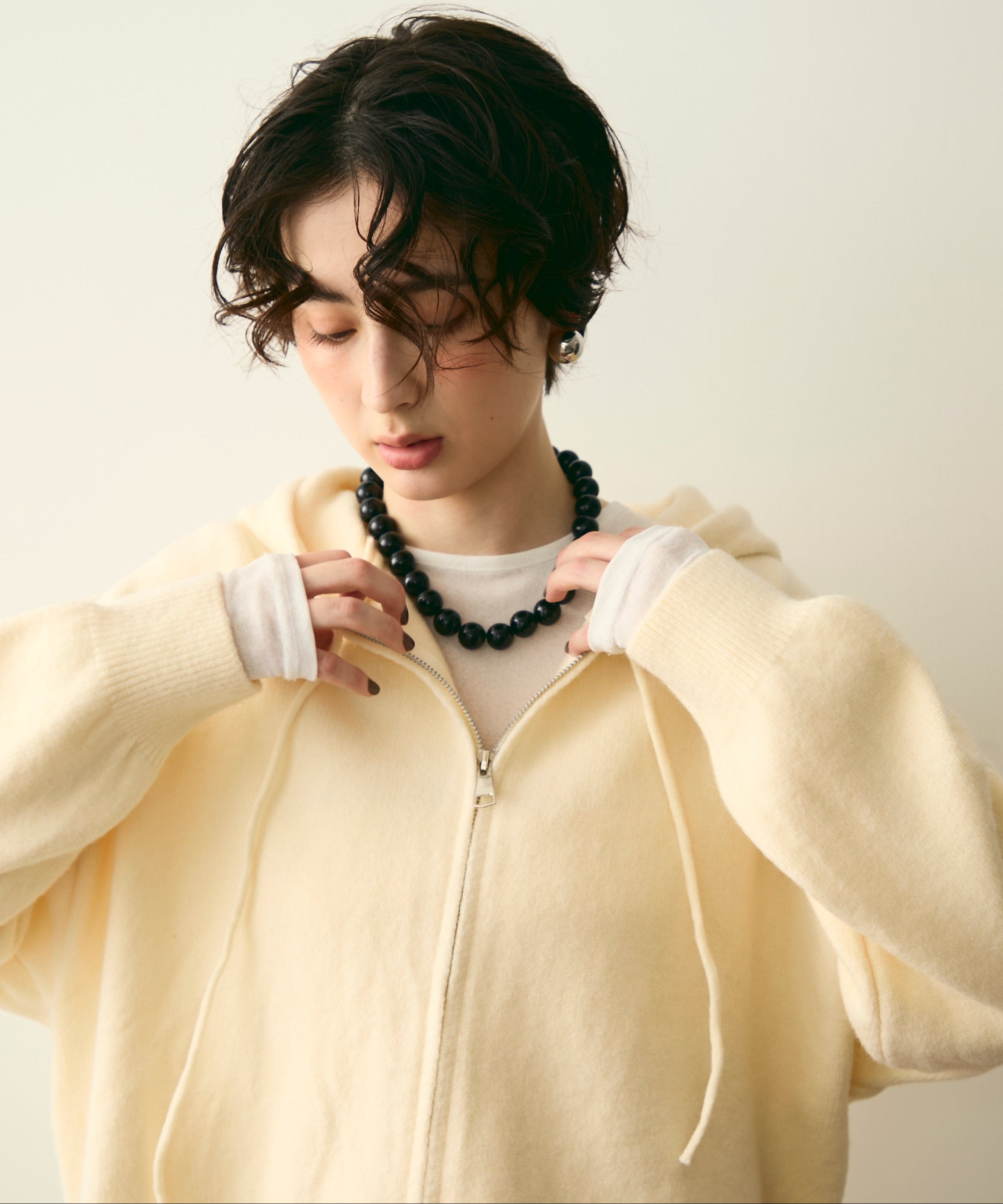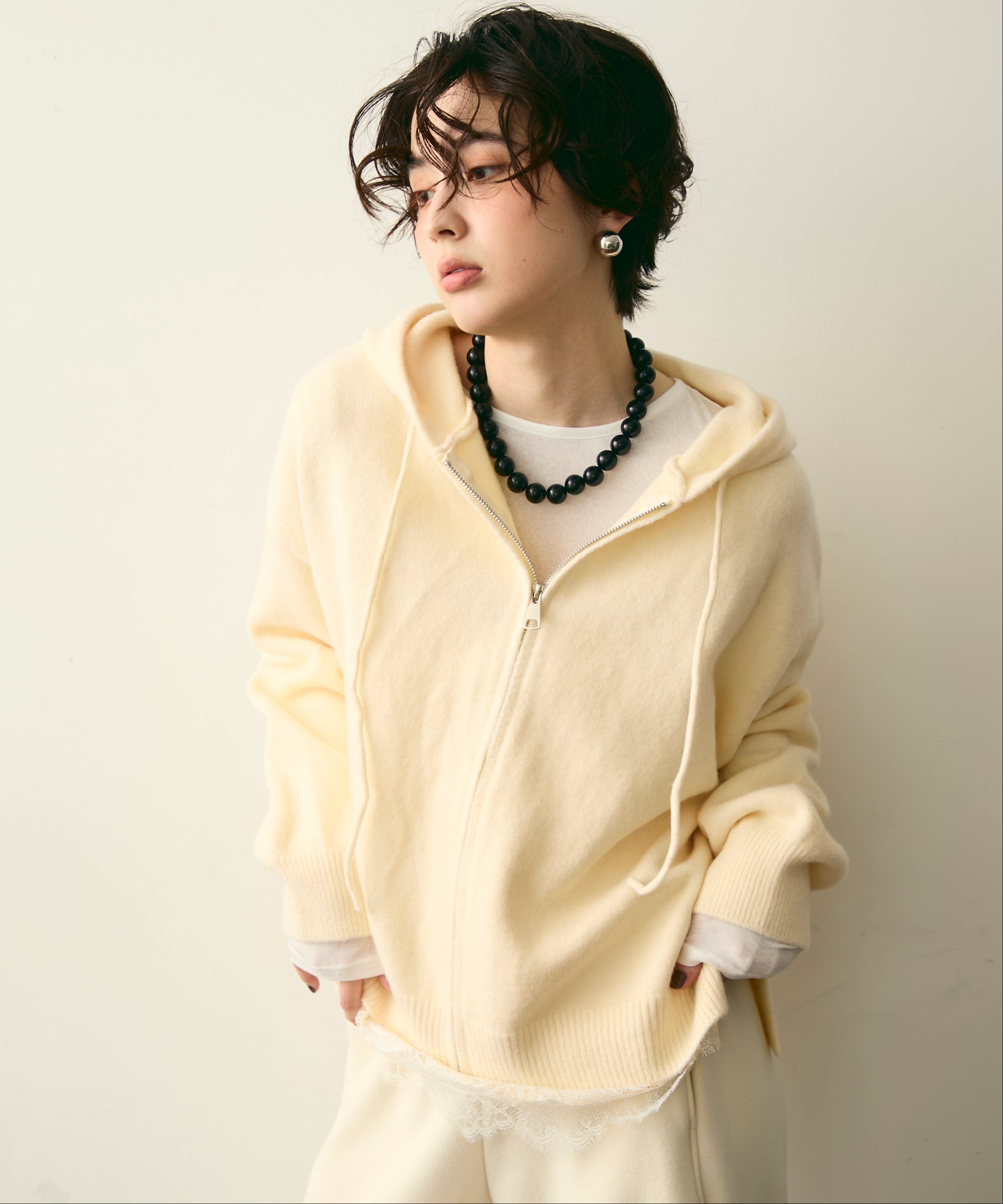 ジップ仕様で着脱がしやすく、レイヤードスタイルにもぴったり。
