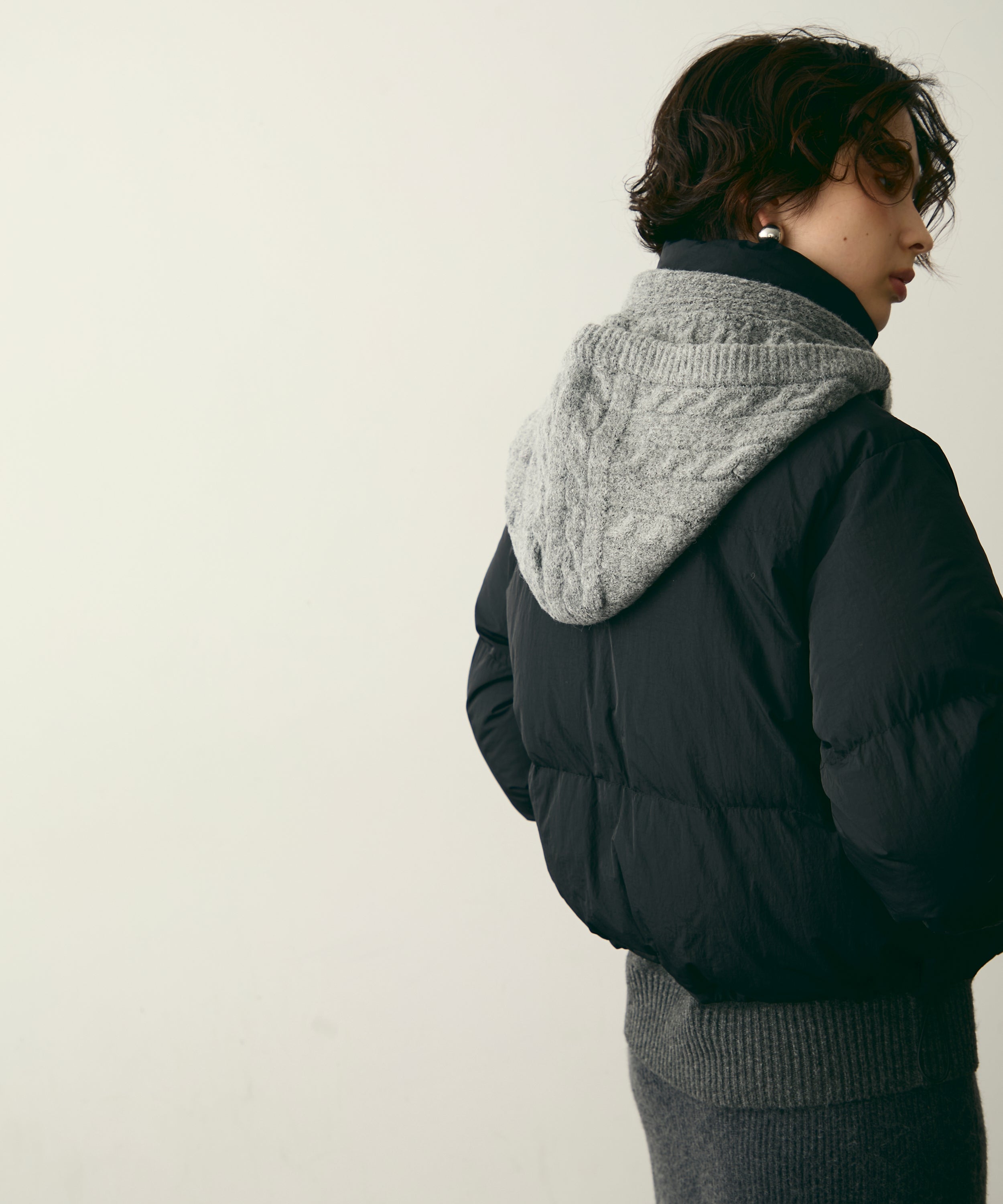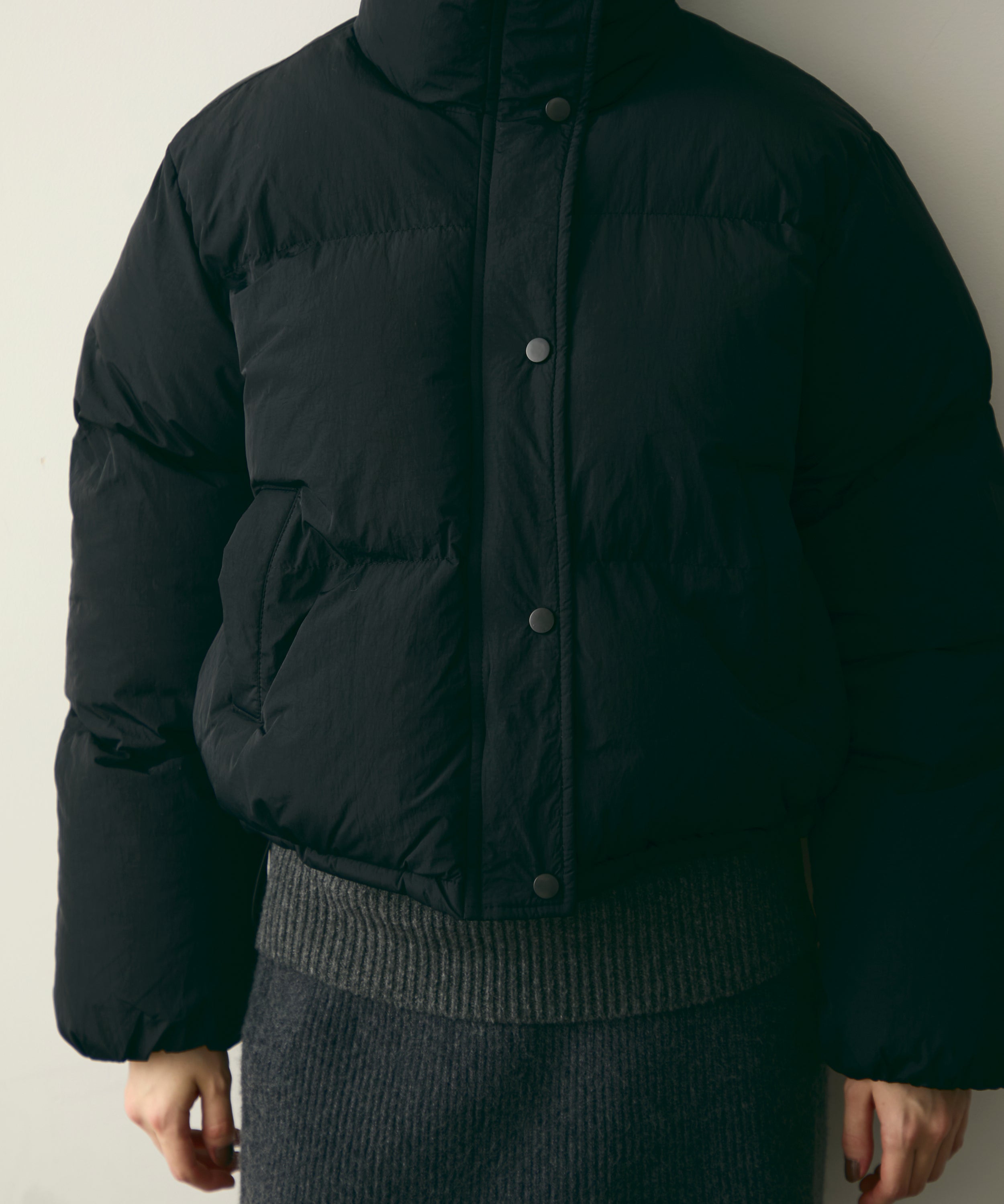 ふんわりとした、ハイネック仕様ショートジャケットです。