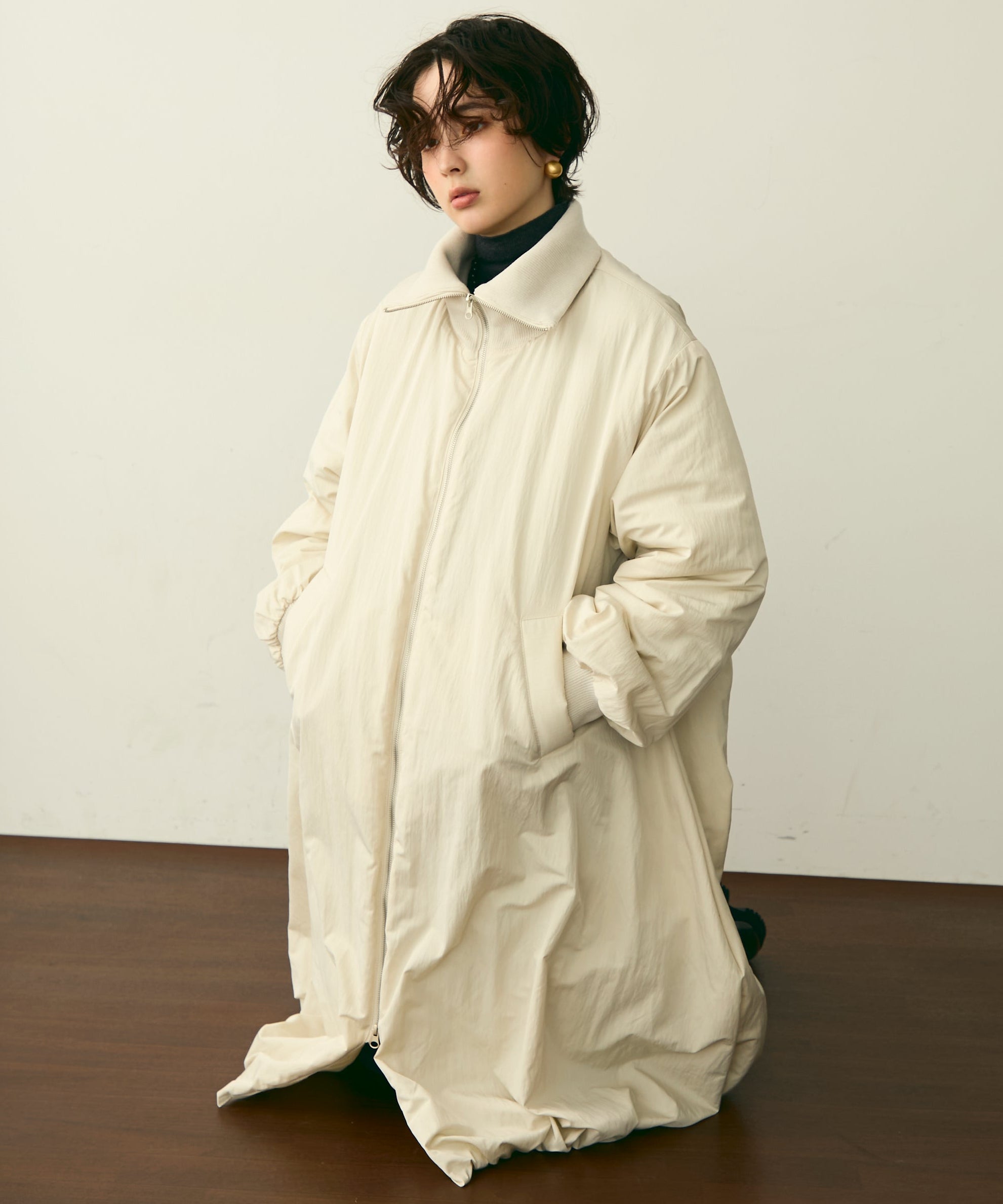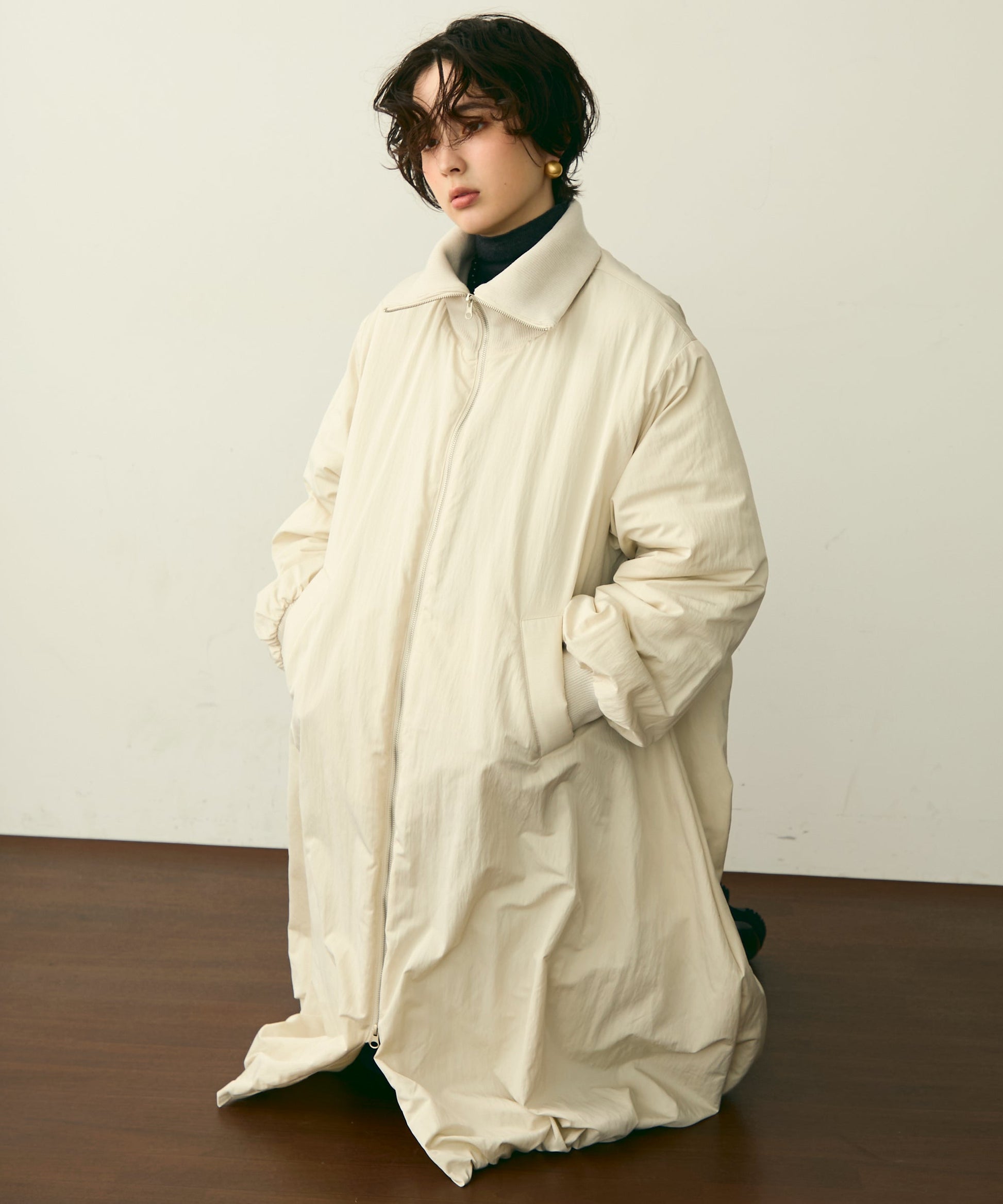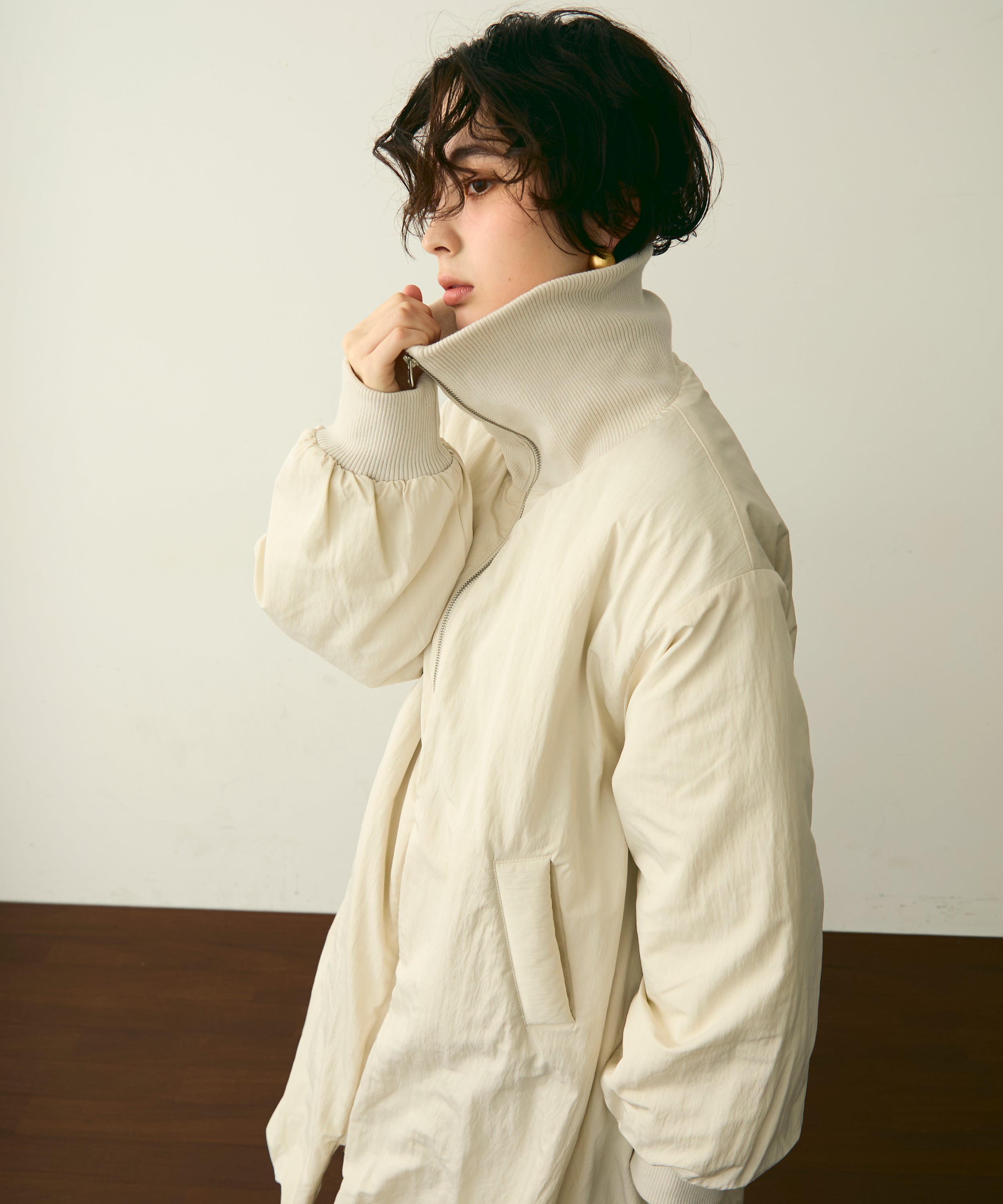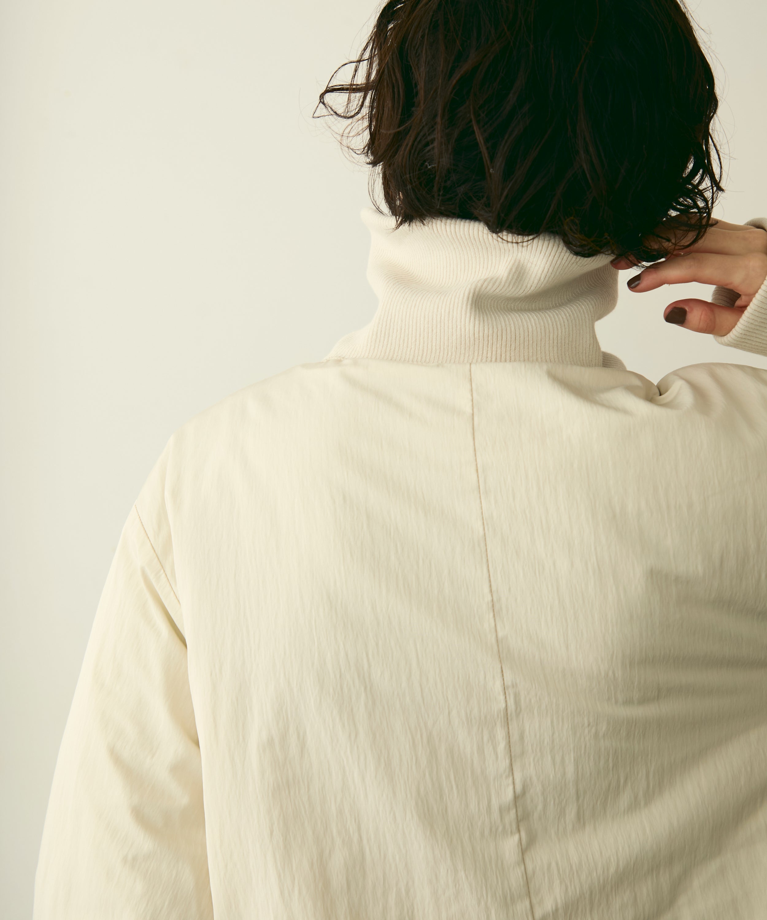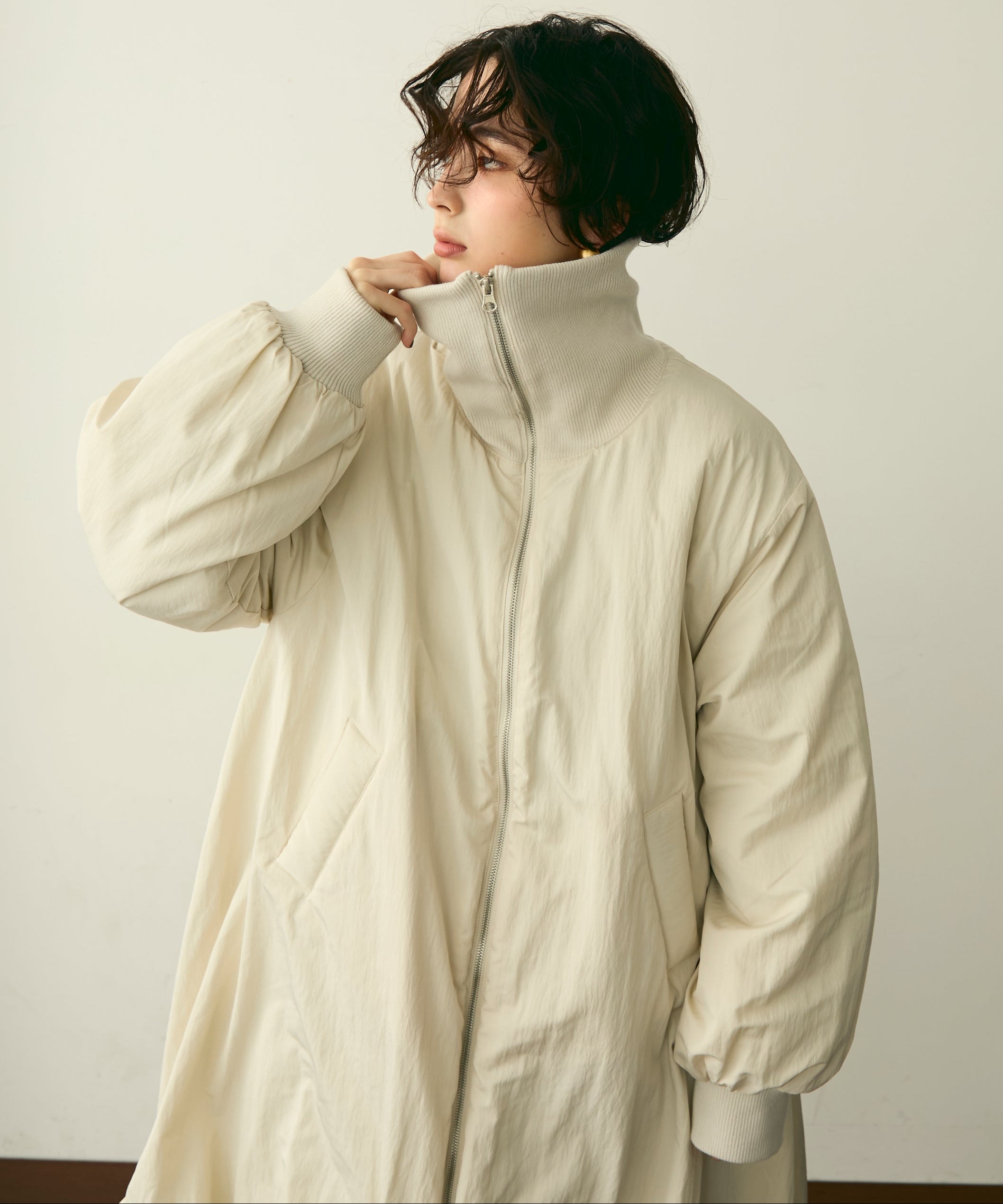 軽やかなT/Nタフタ素材に中わたを仕込んだ、ふんわりとしたバルーンシルエットが魅力のリブコート。