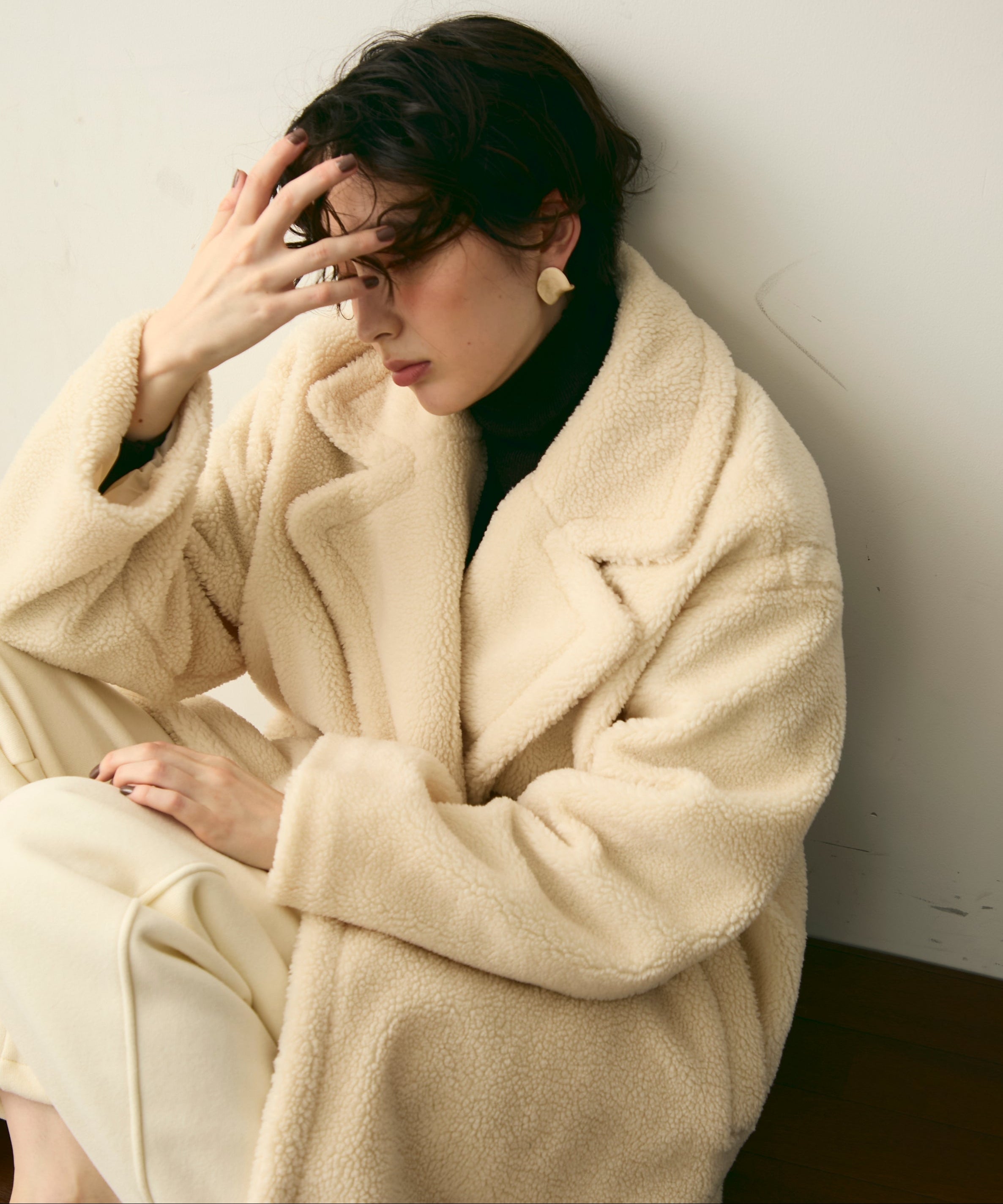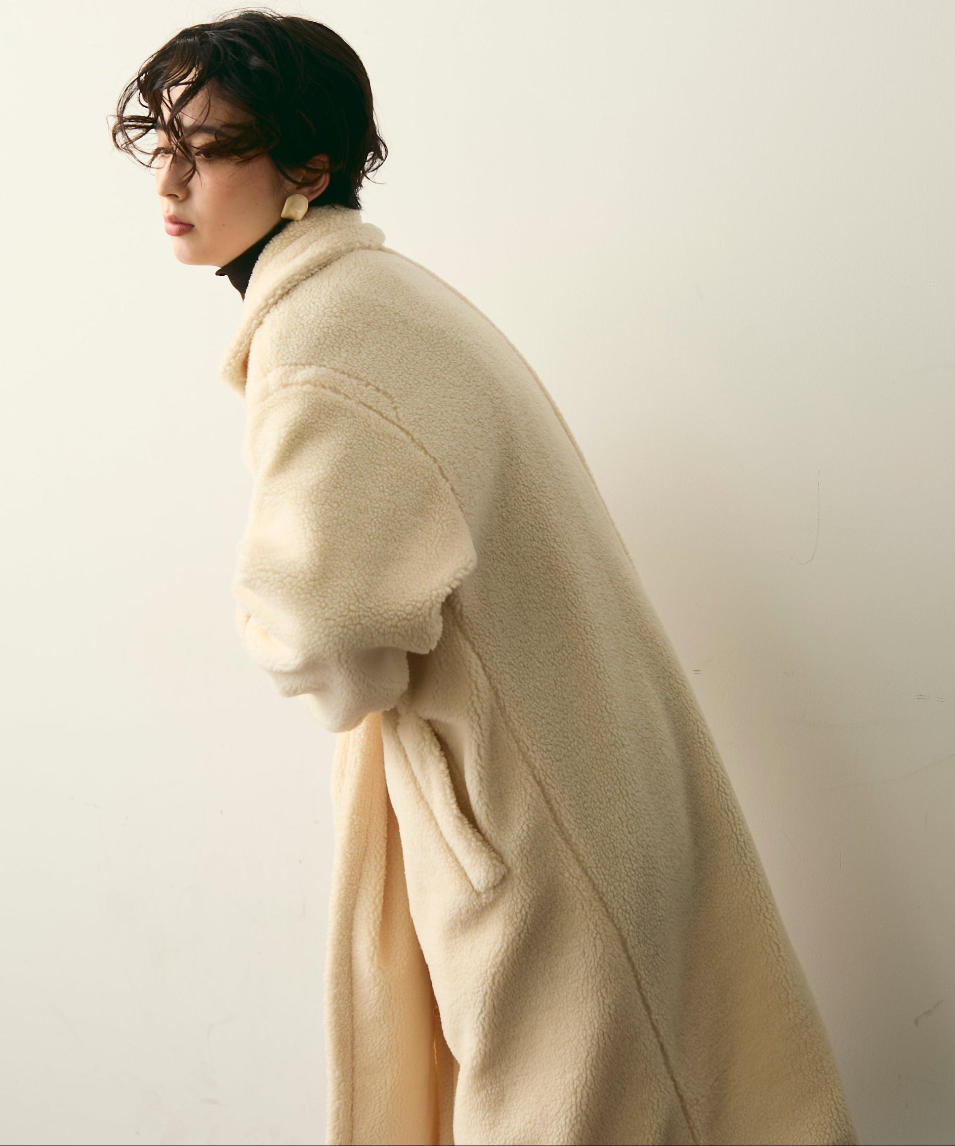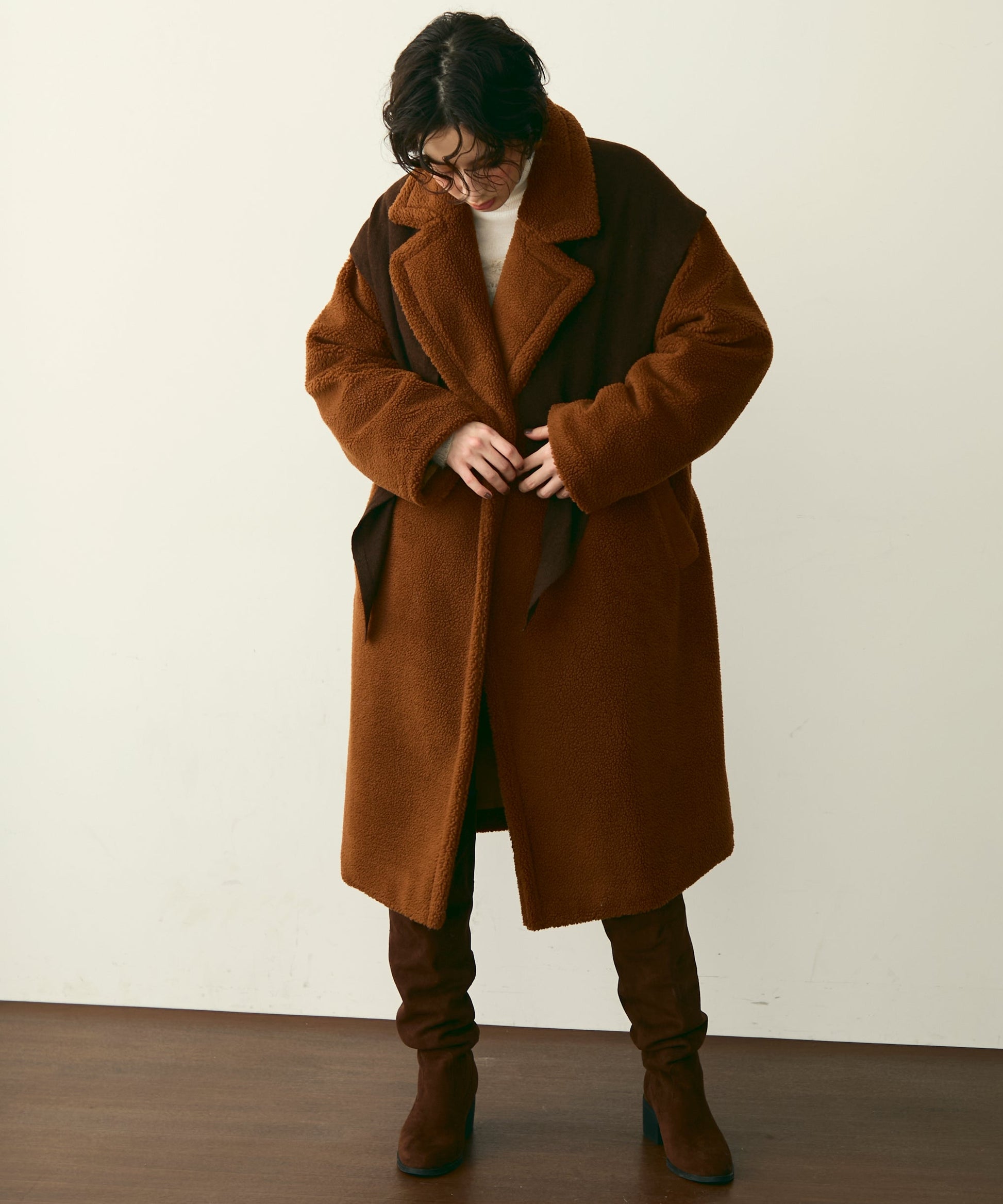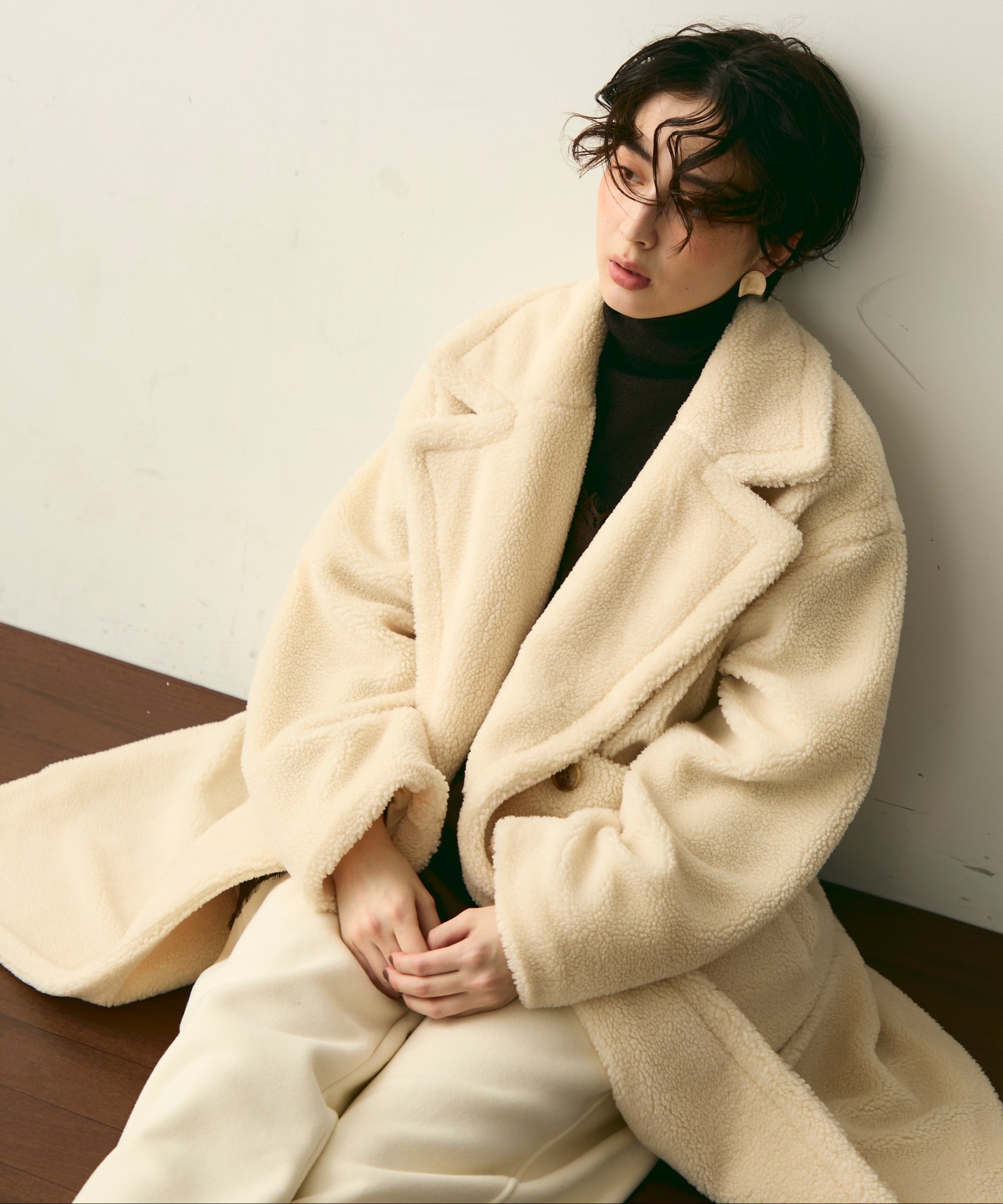 ふんわりとしたボア素材が季節感たっぷりのダブルロングコート。ロング丈ながら軽やかな着心地で、羽織るだけでこなれ感を演出。クラシカルなダブルボタンが上品さをプラスし、カジュアルにもきれいめにもマッチします。ゆったりとしたシルエットで厚手のニットももたつかず、真冬まで活躍。